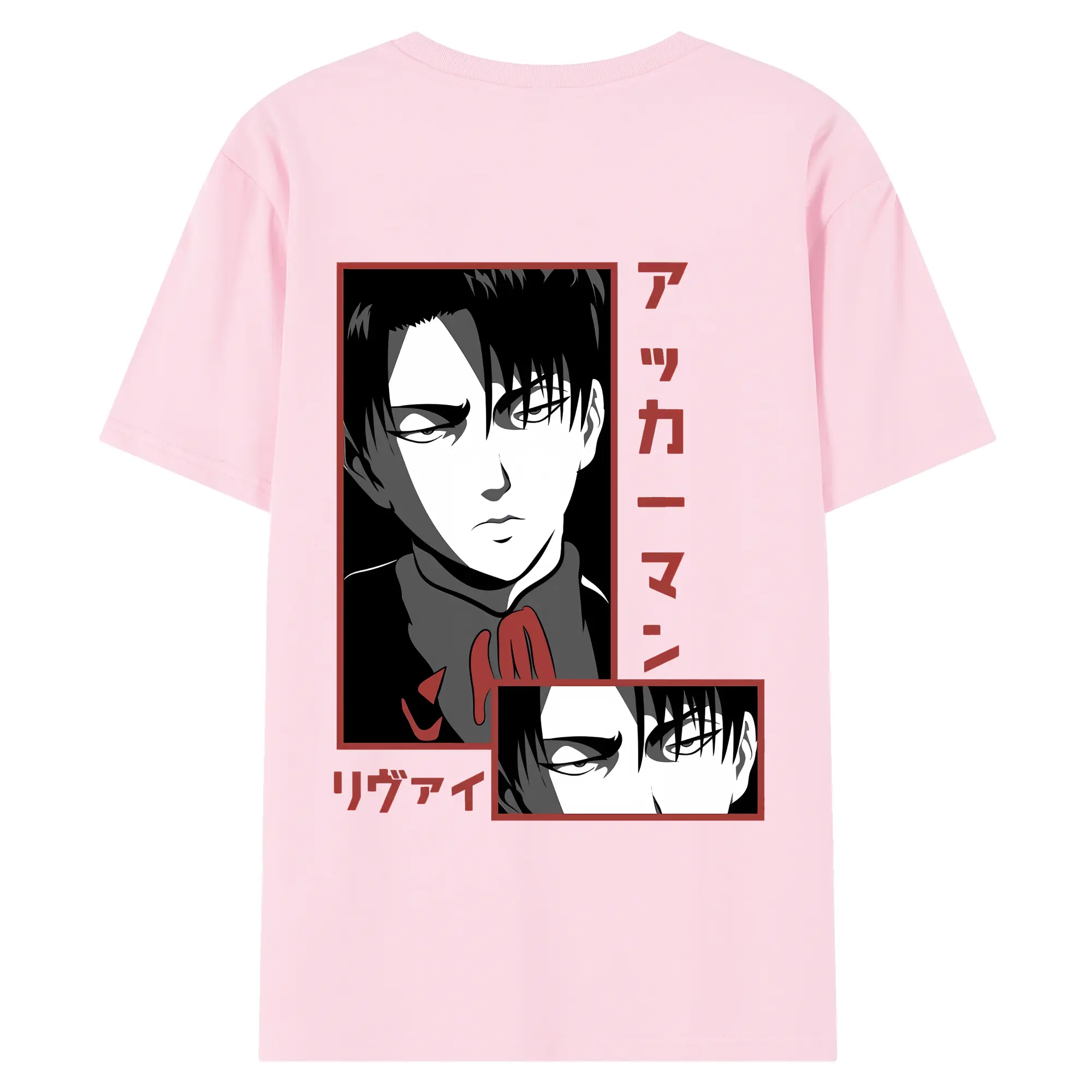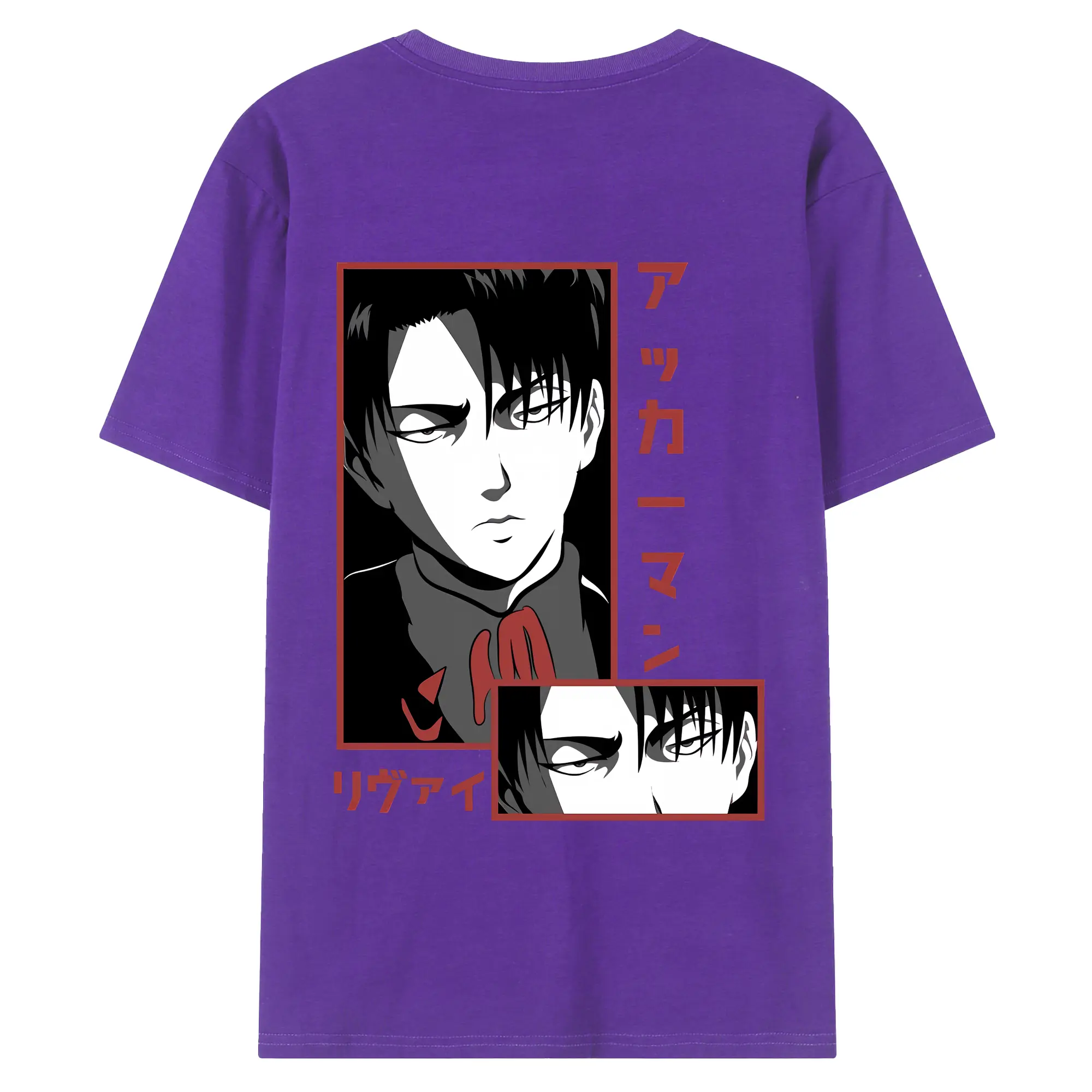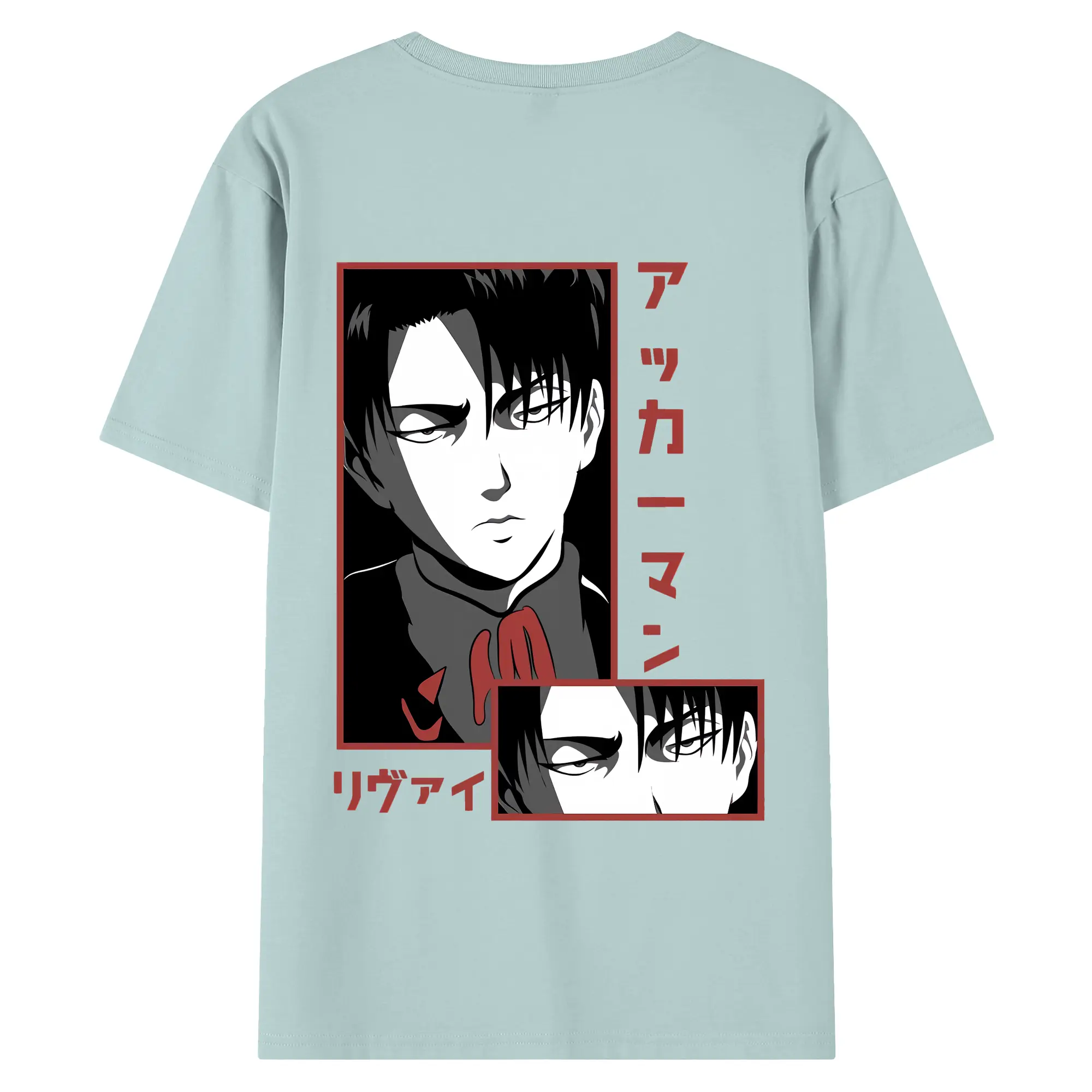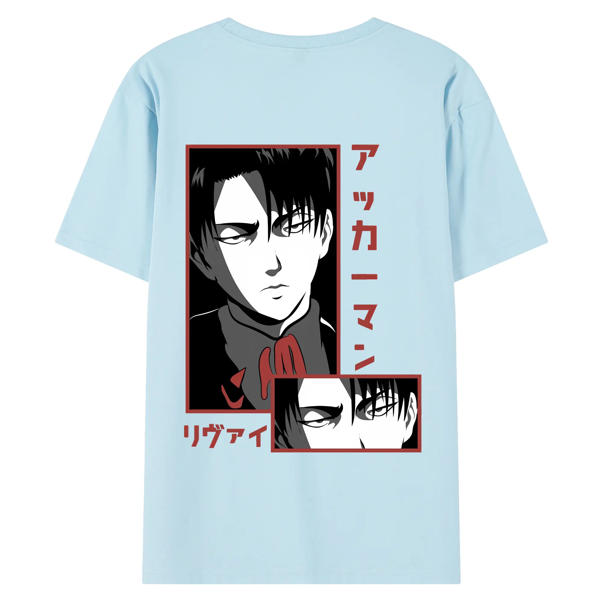 進撃の巨人 グッズ リヴァイ・アッカーマン - 綿100% 半袖Tシャツ ・ フロントプリント ・ 快適 通気性 ・ 日常使い 散歩 スポーツ用