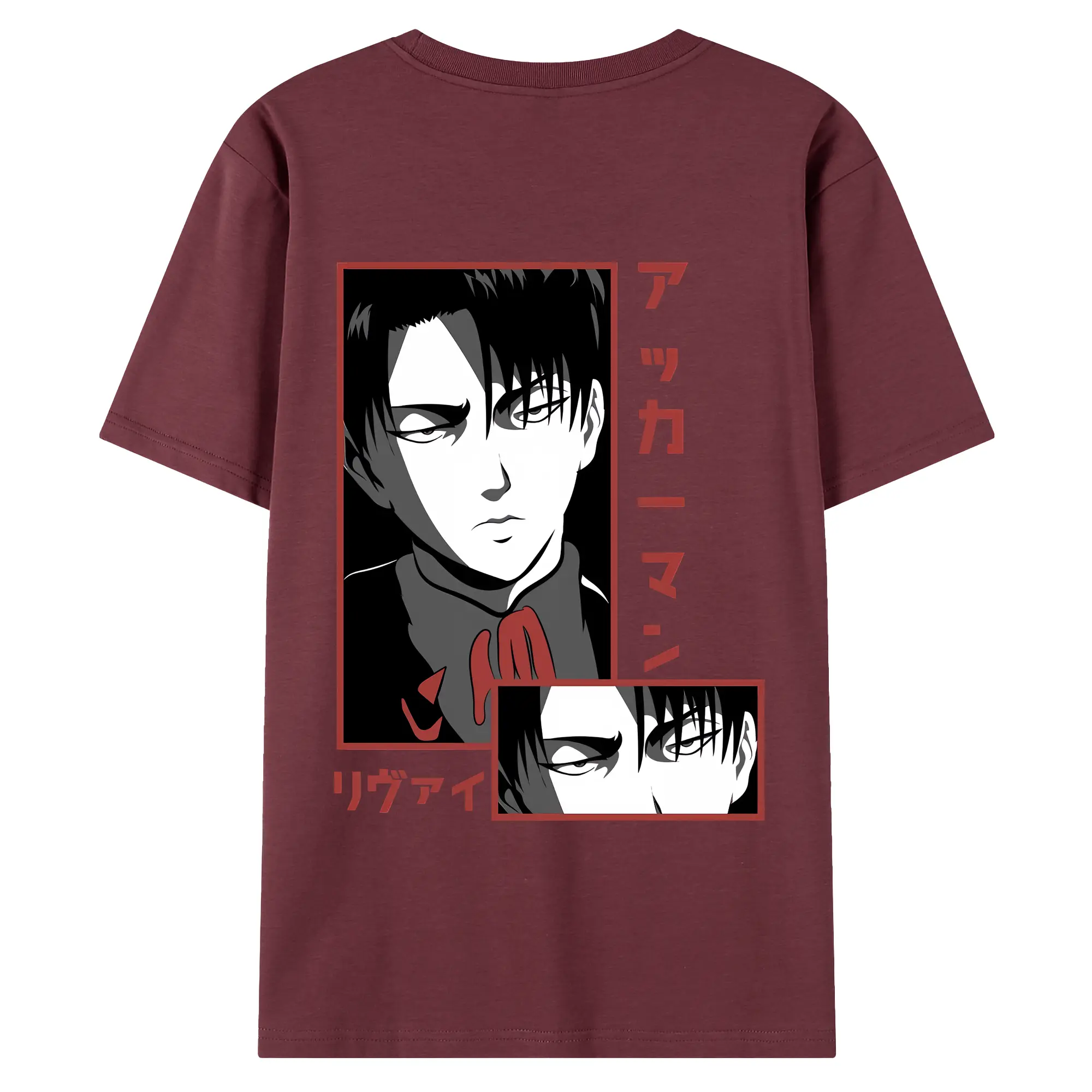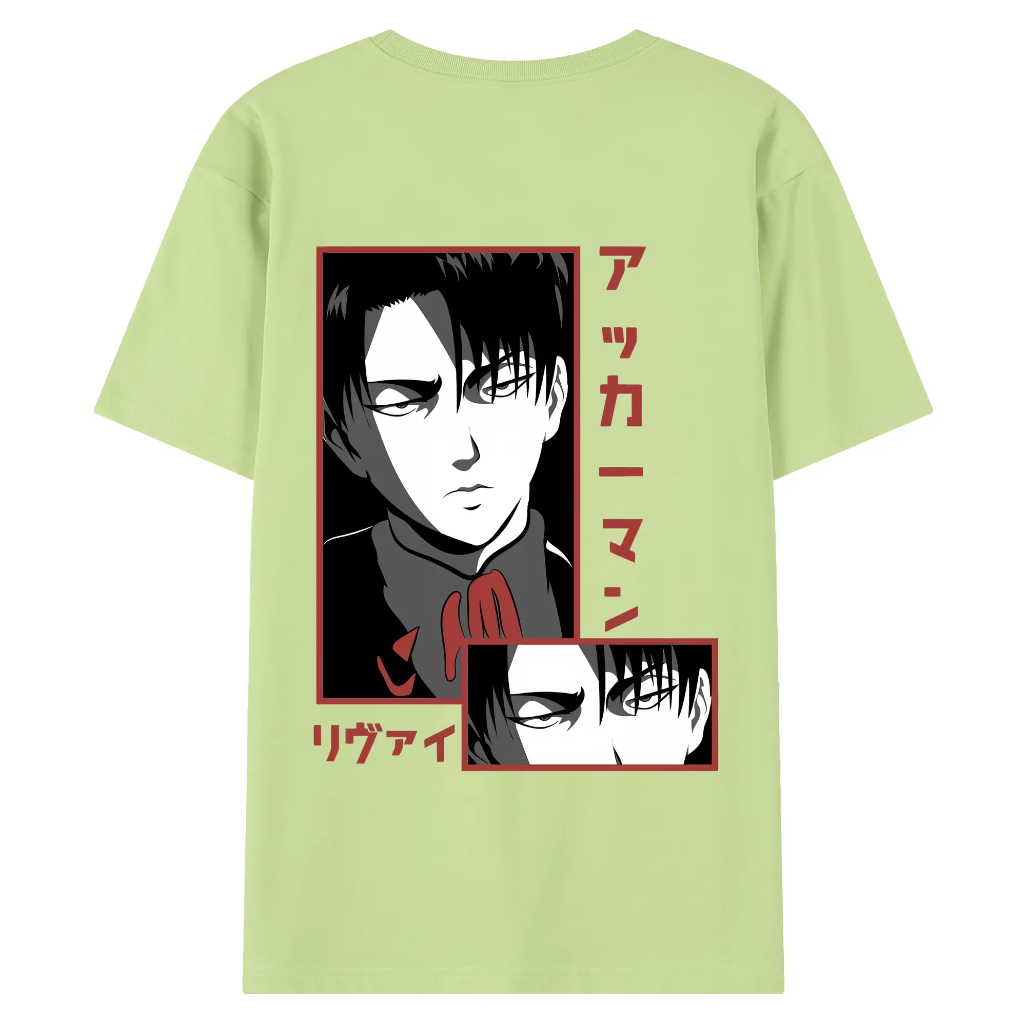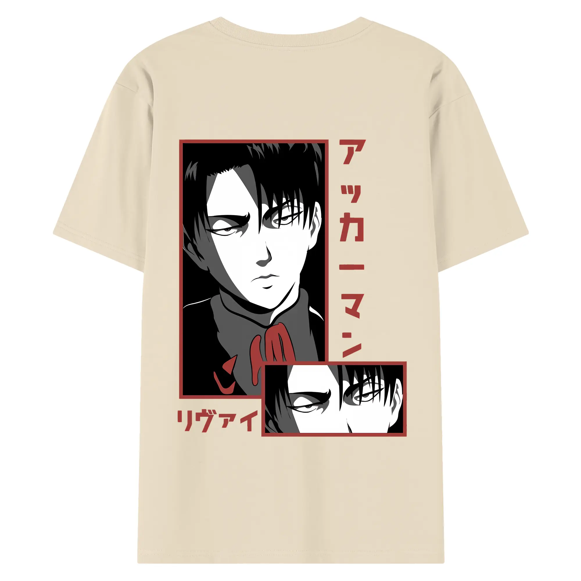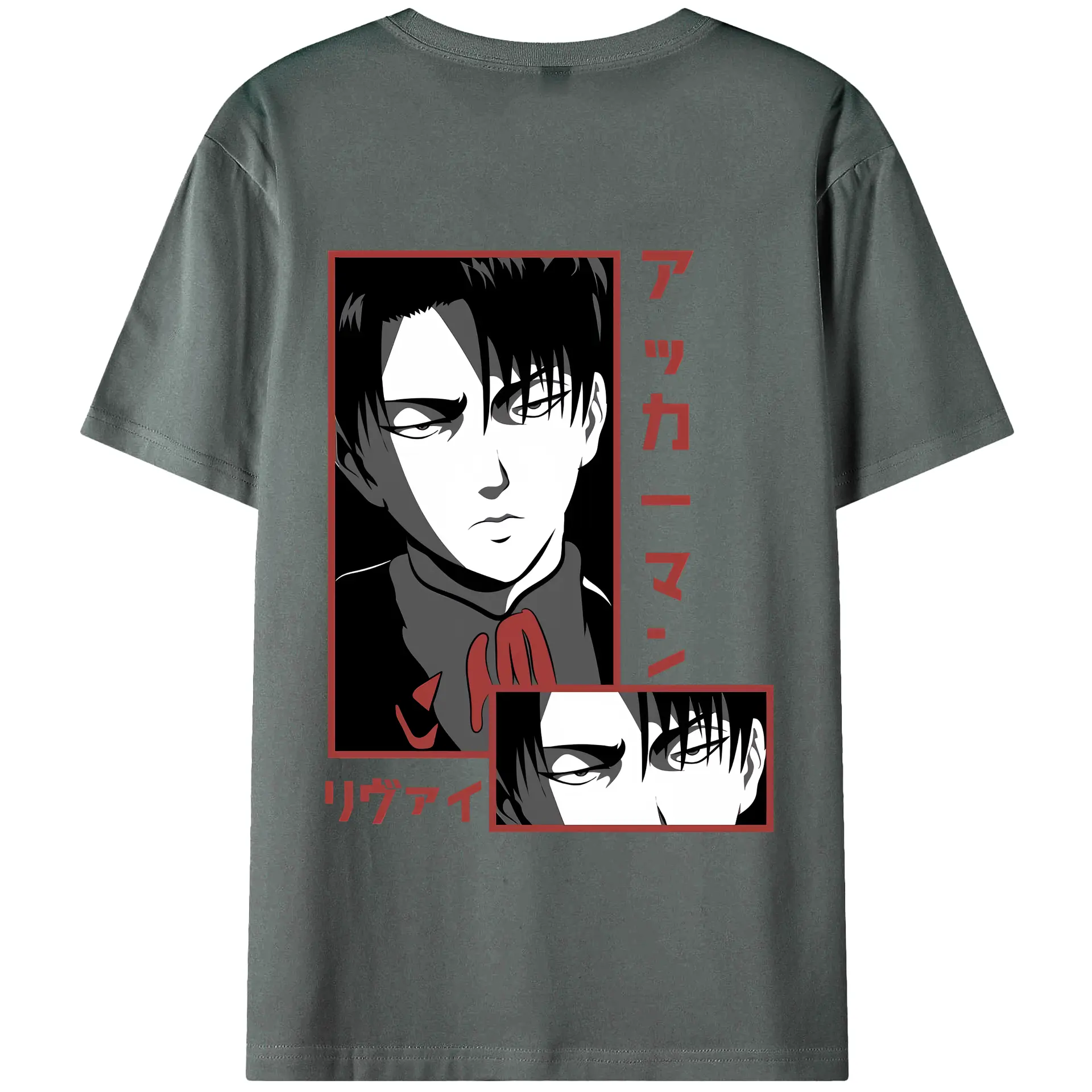 進撃の巨人 グッズ リヴァイ・アッカーマン - 綿100% ヴィンテージ風 半袖Tシャツ ・ 背面プリント ・ 柔らか肌触り ・ 通気性 快適 ・ スポーツ カジュアル 外出用