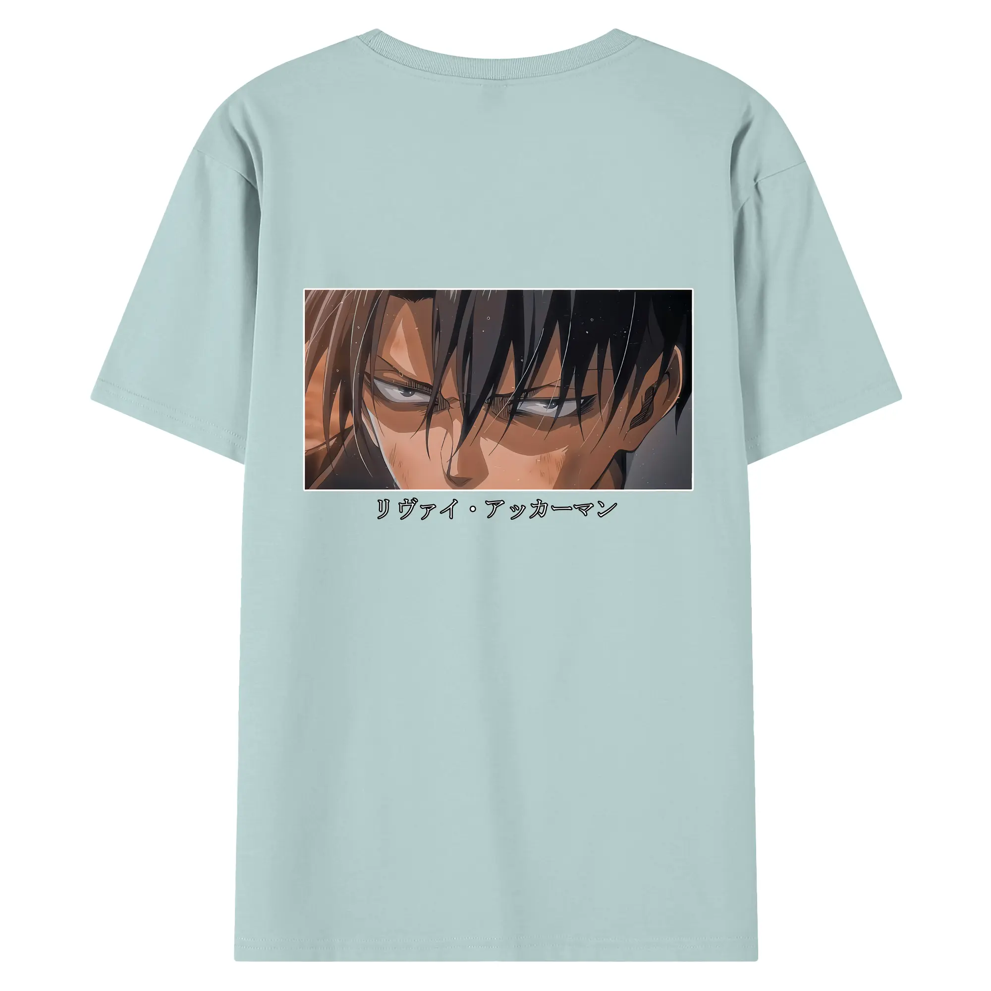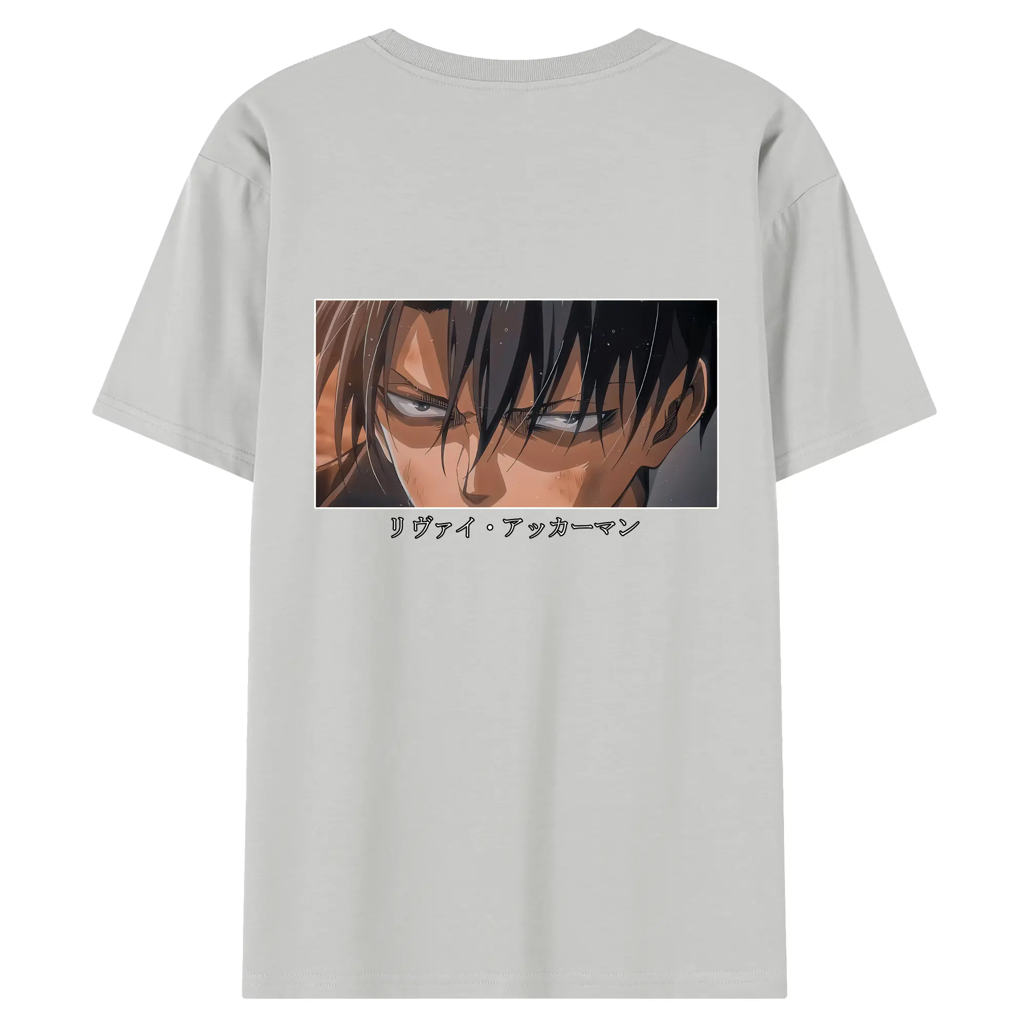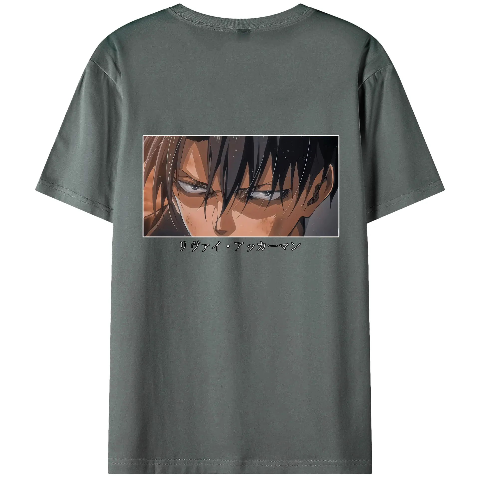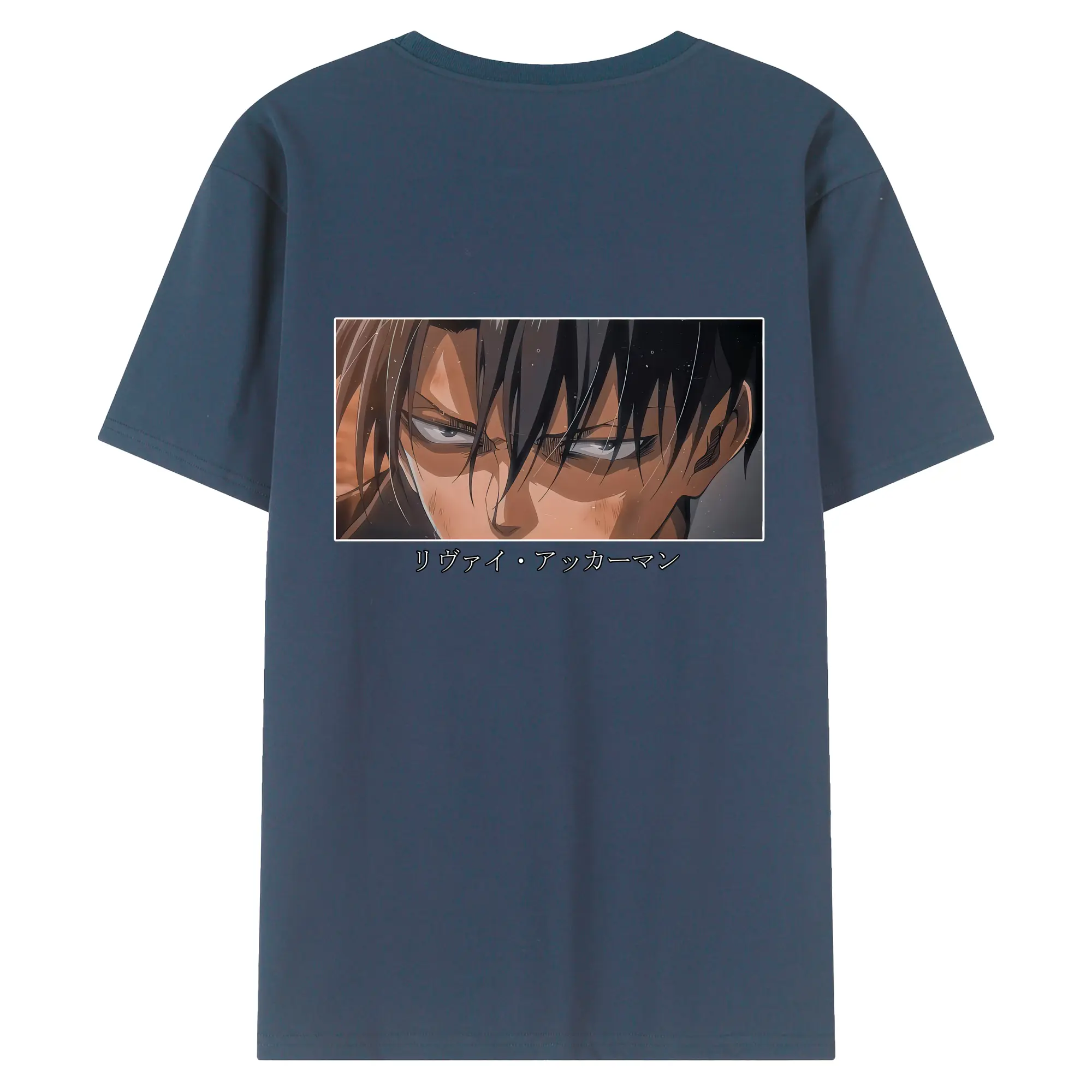進撃の巨人 グッズ リヴァイ・アッカーマン - 綿100% ヴィンテージ風 半袖Tシャツ ・ 背面プリント ・ 柔らか肌触り ・ 通気性 快適 ・ スポーツ カジュアル 外出用