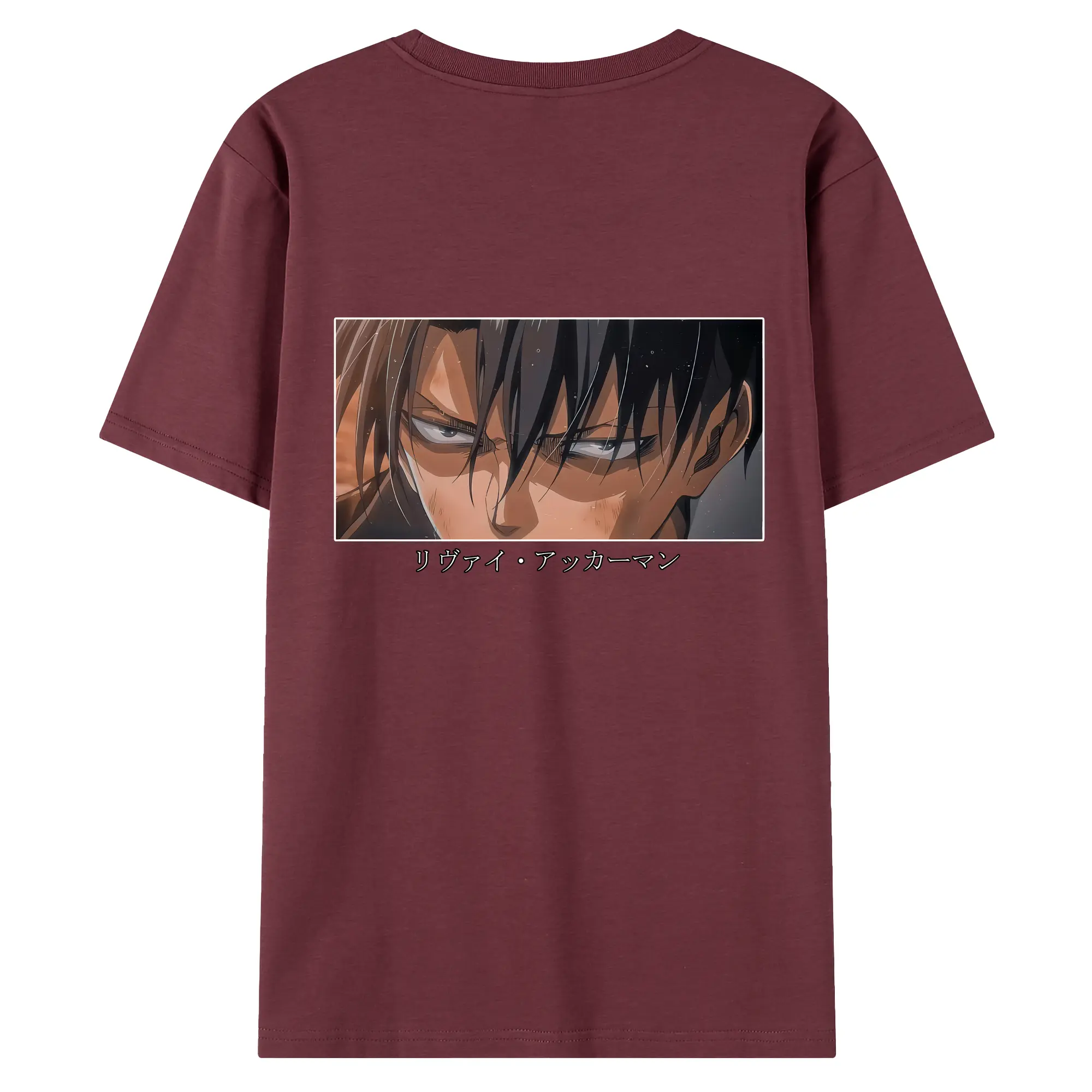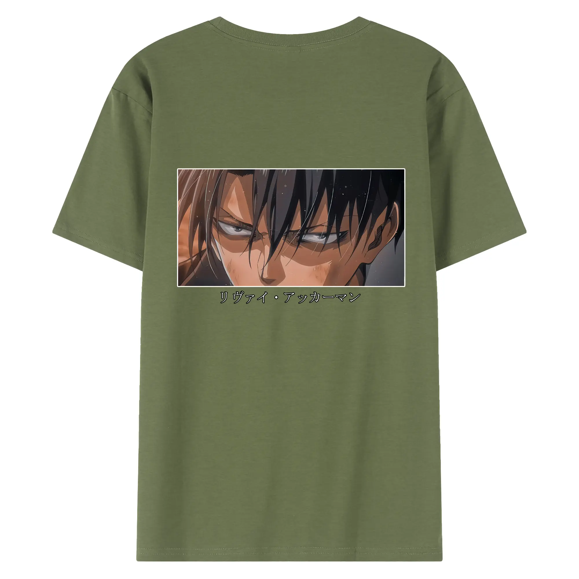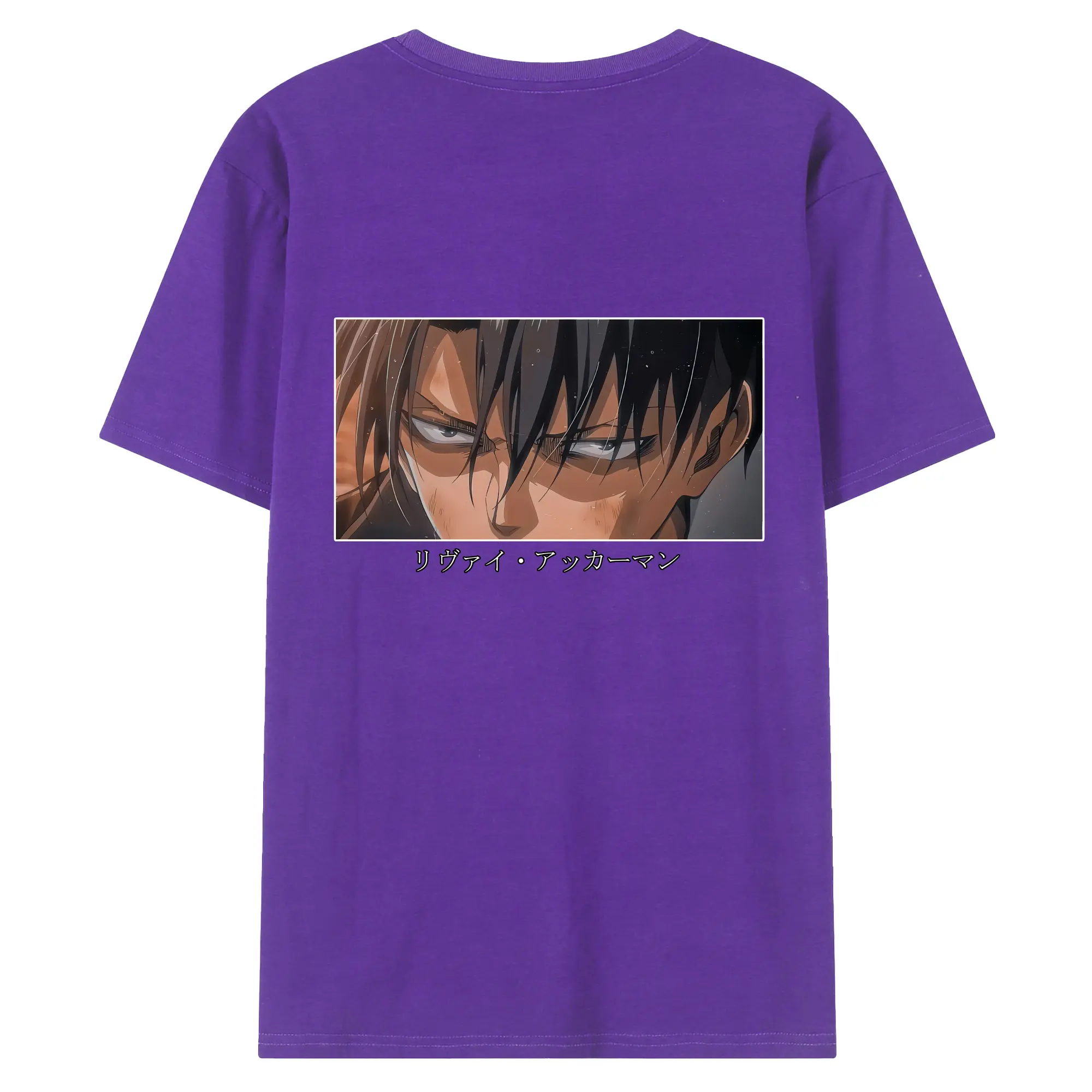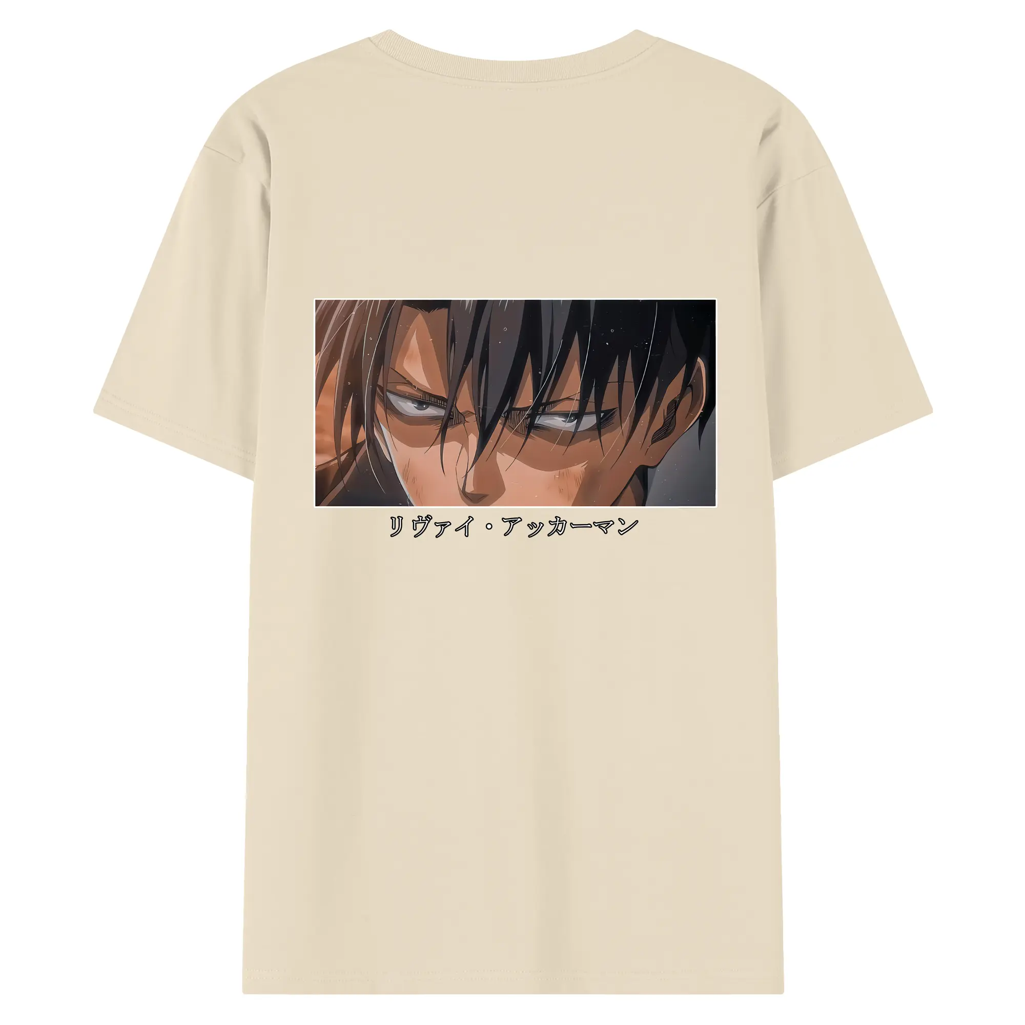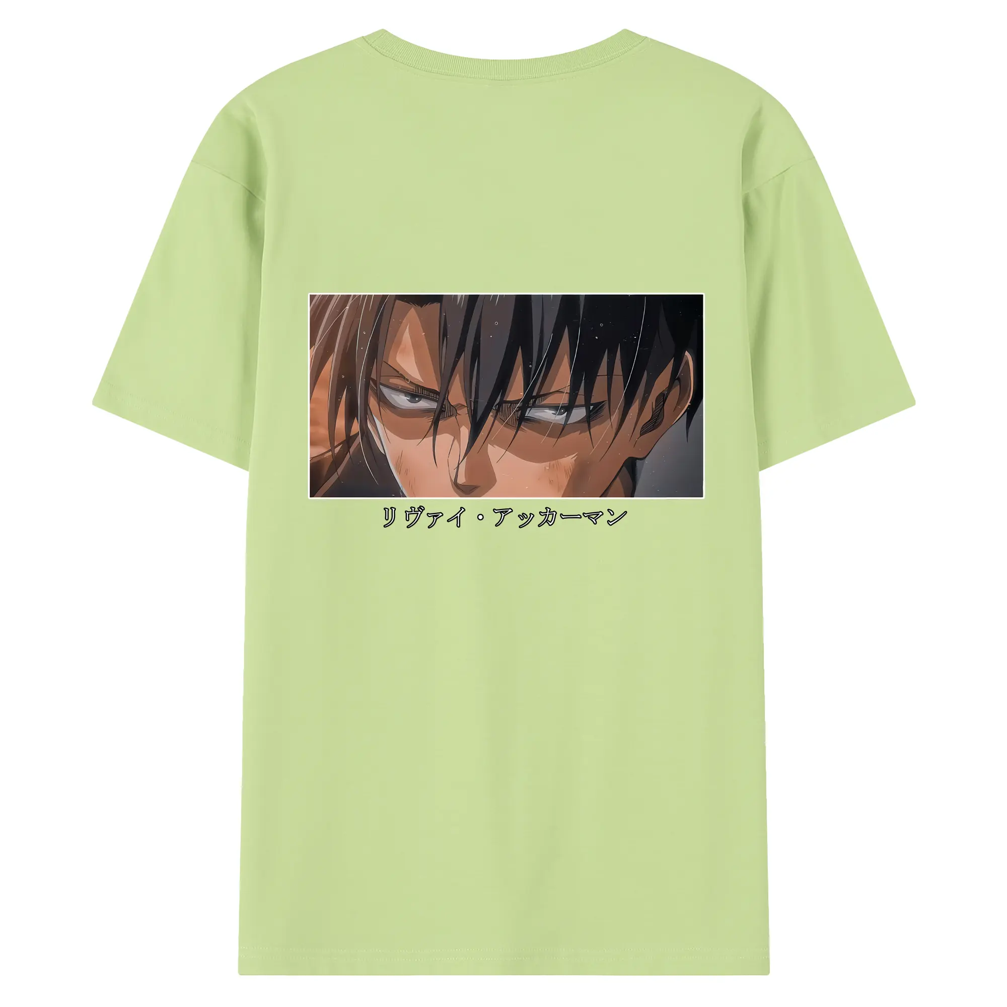 進撃の巨人 グッズ リヴァイ・アッカーマン - 綿100% ヴィンテージ風 半袖Tシャツ ・ 背面プリント ・ 柔らか肌触り ・ 通気性 快適 ・ スポーツ カジュアル 外出用