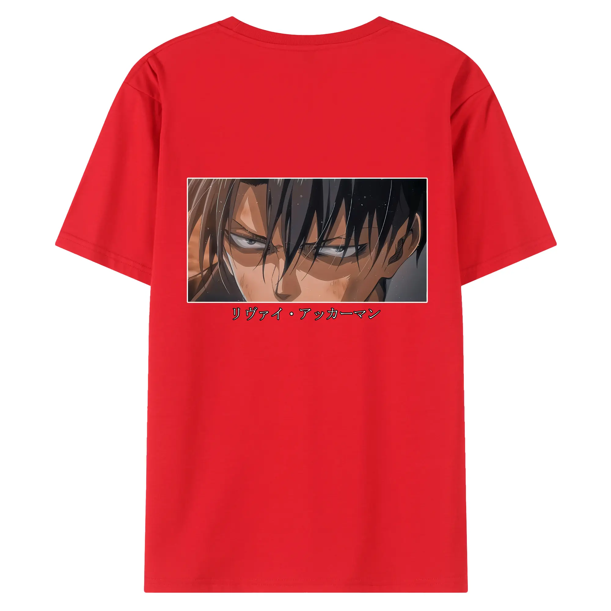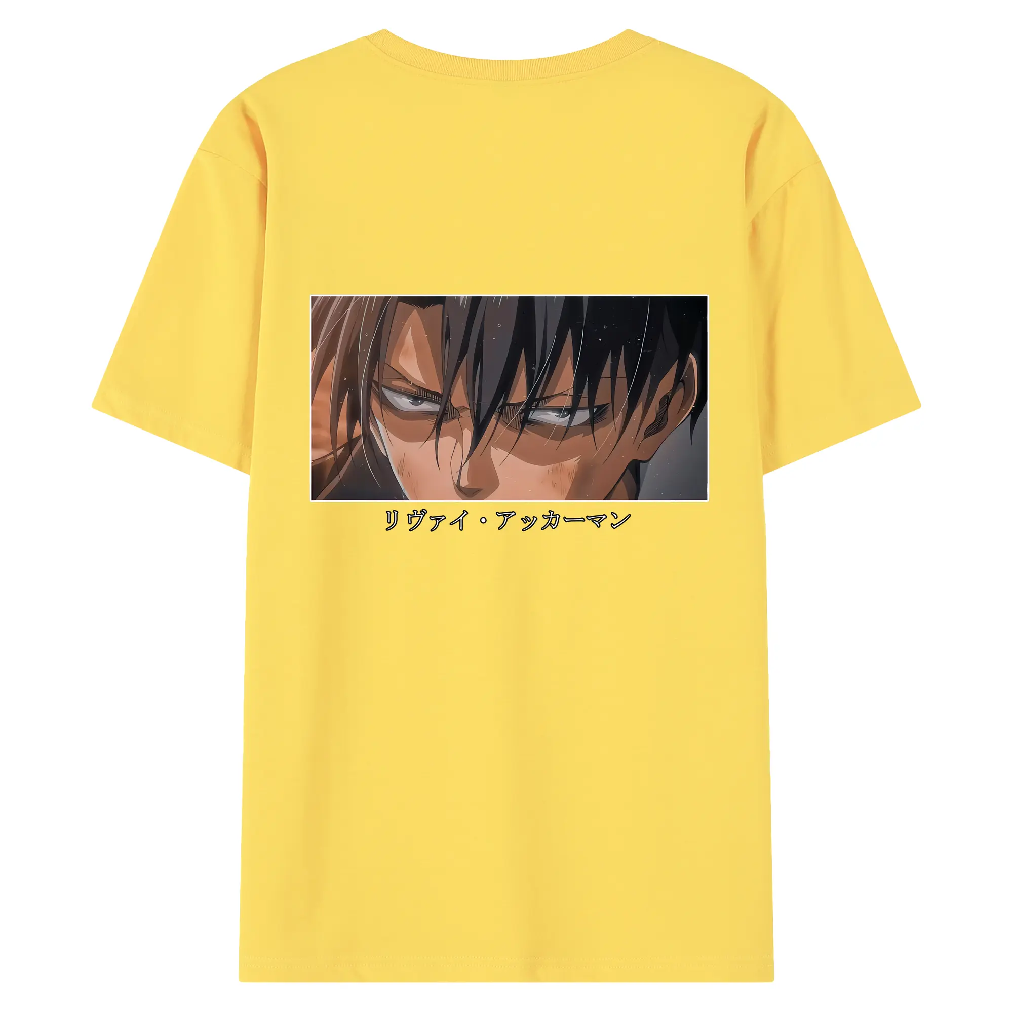 進撃の巨人 グッズ リヴァイ・アッカーマン - 綿100% 半袖Tシャツ ・ フロントプリント ・ 快適 通気性 ・ 日常使い 散歩 スポーツ用