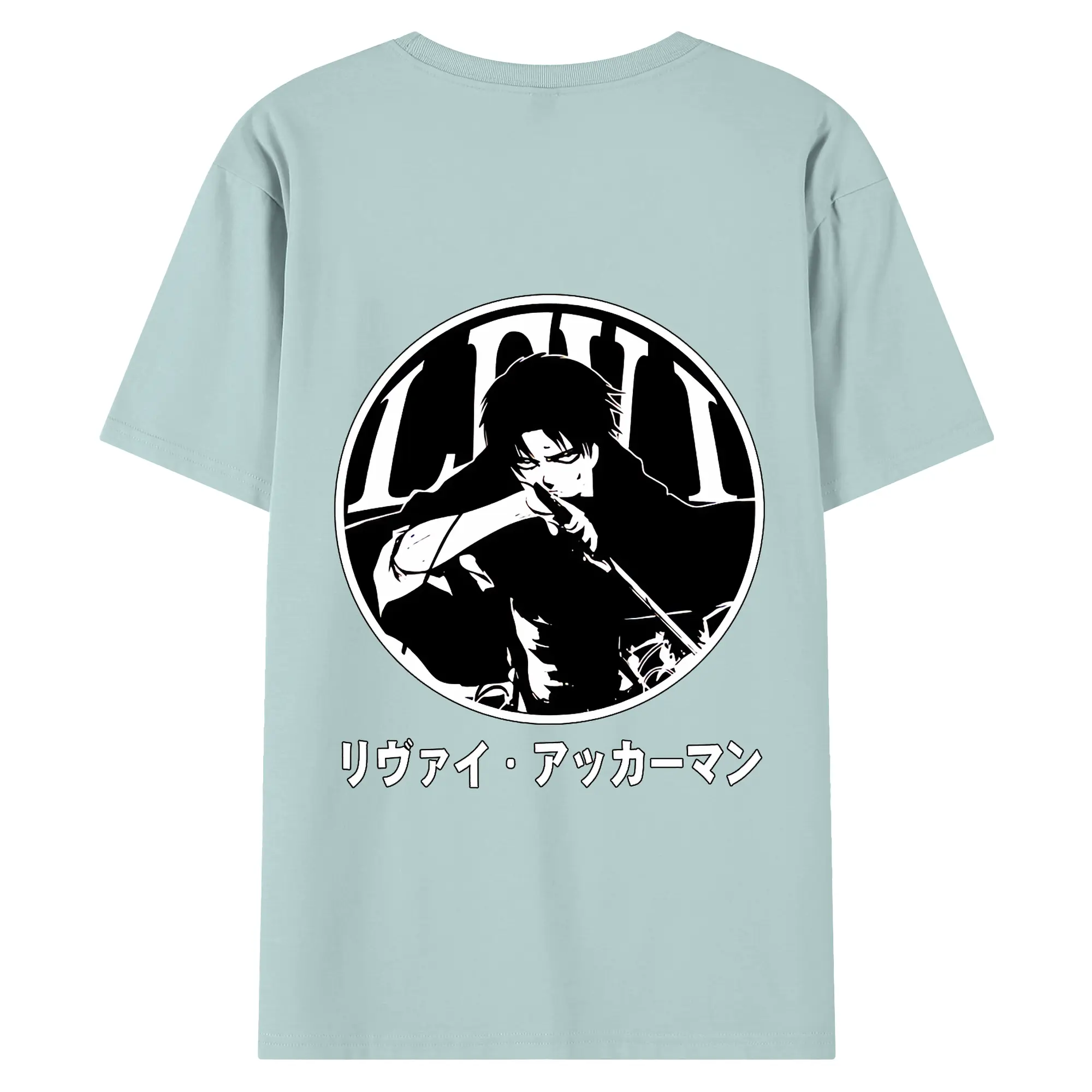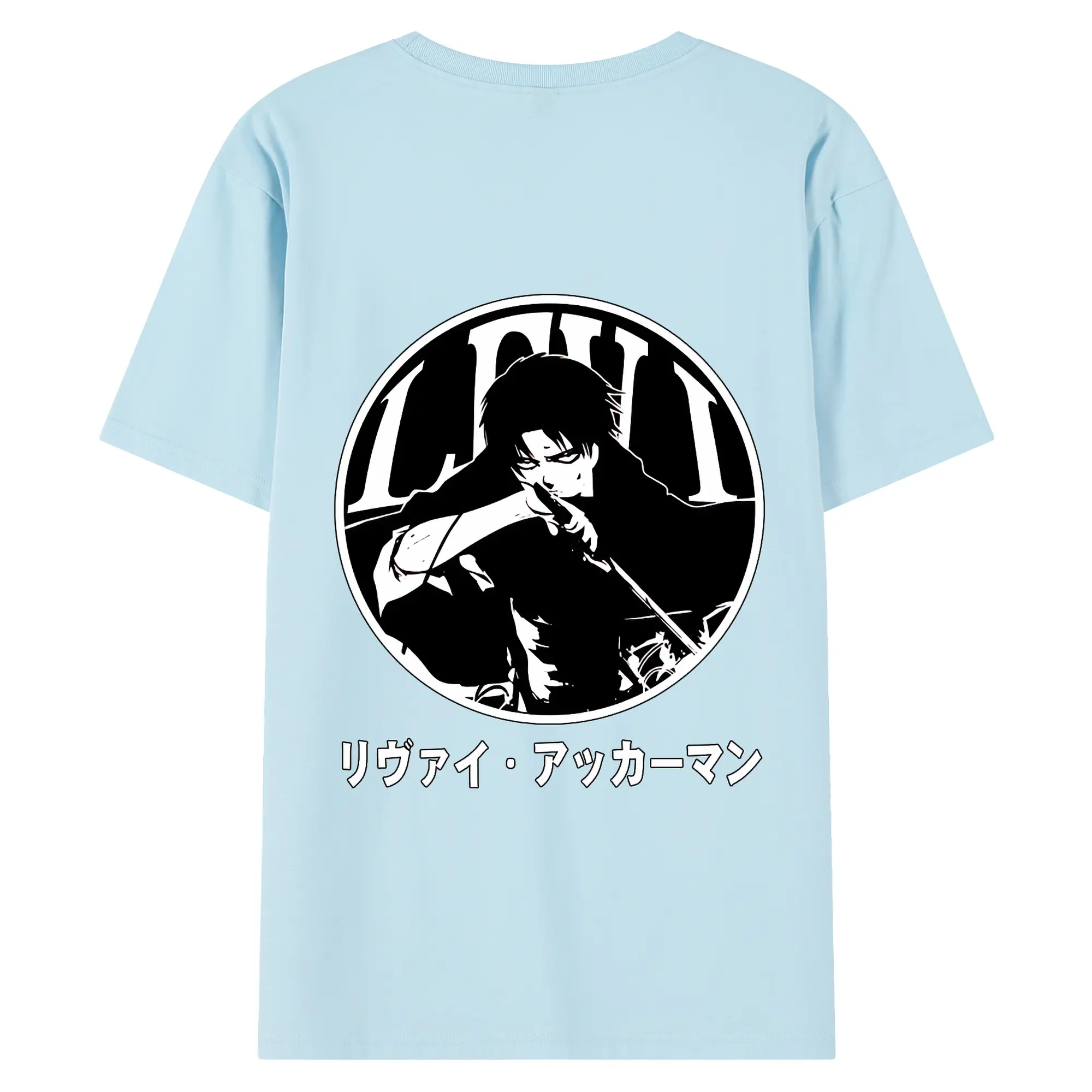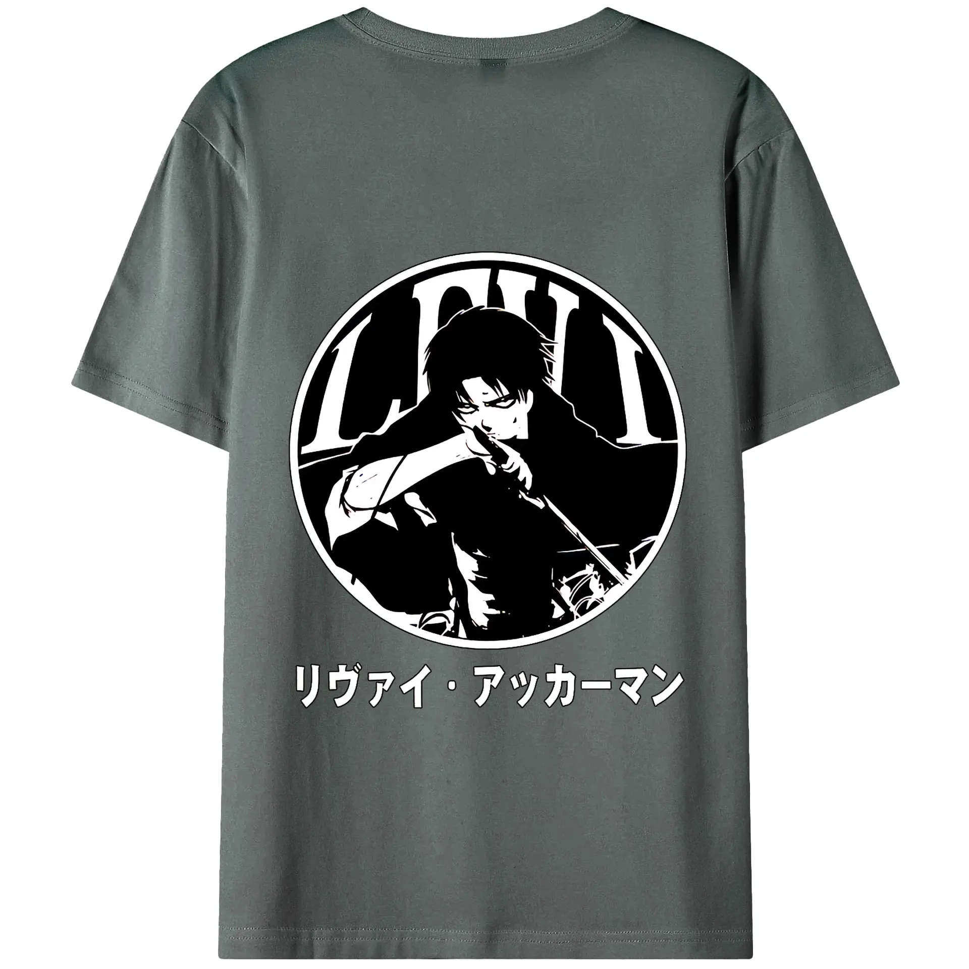 進撃の巨人 グッズ リヴァイ・アッカーマン - 綿100% 半袖Tシャツ ・ フロントプリント ・ 快適 通気性 ・ 日常使い 散歩 スポーツ用