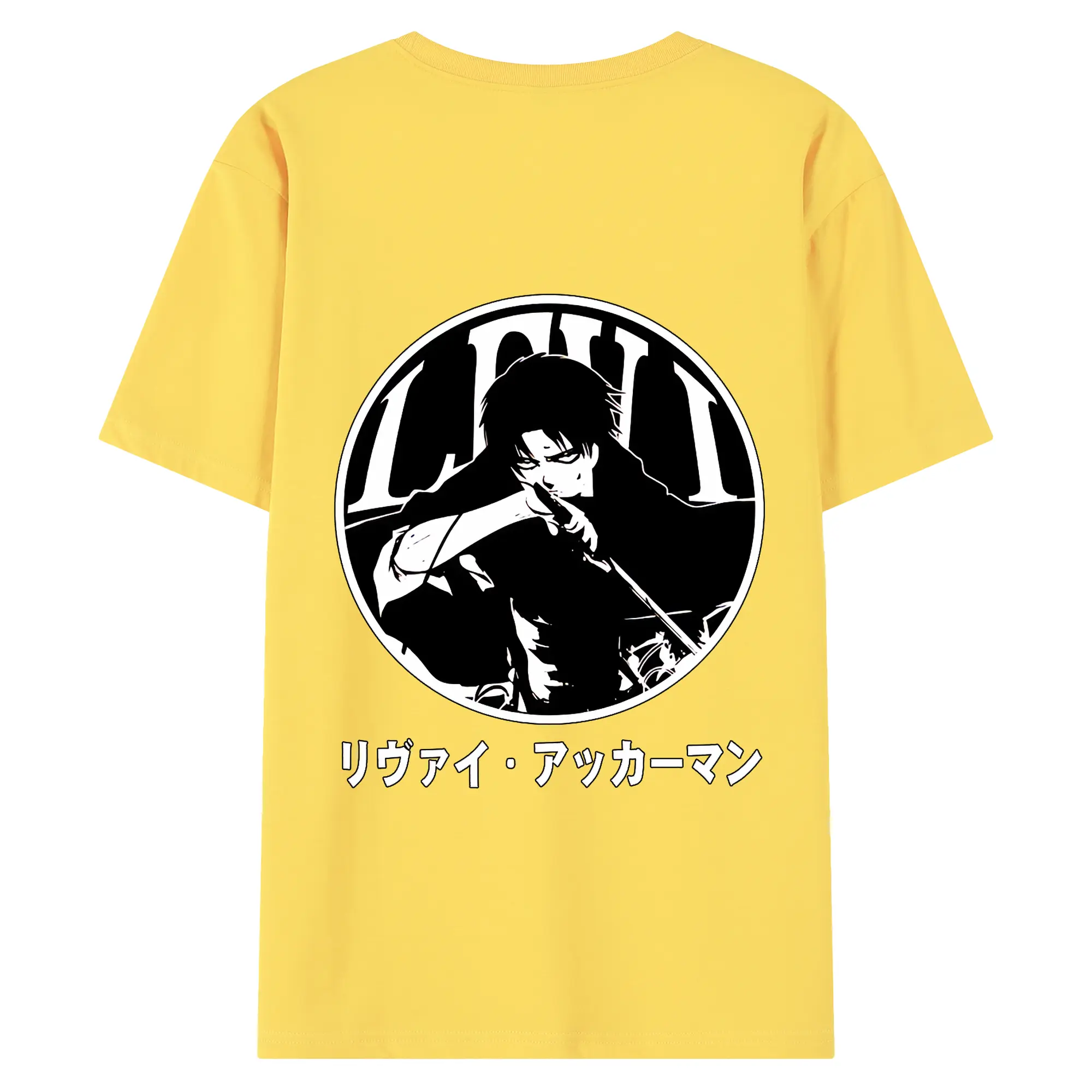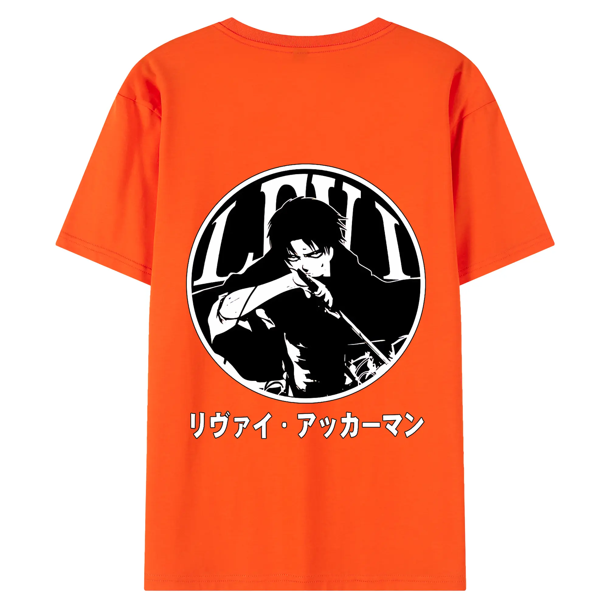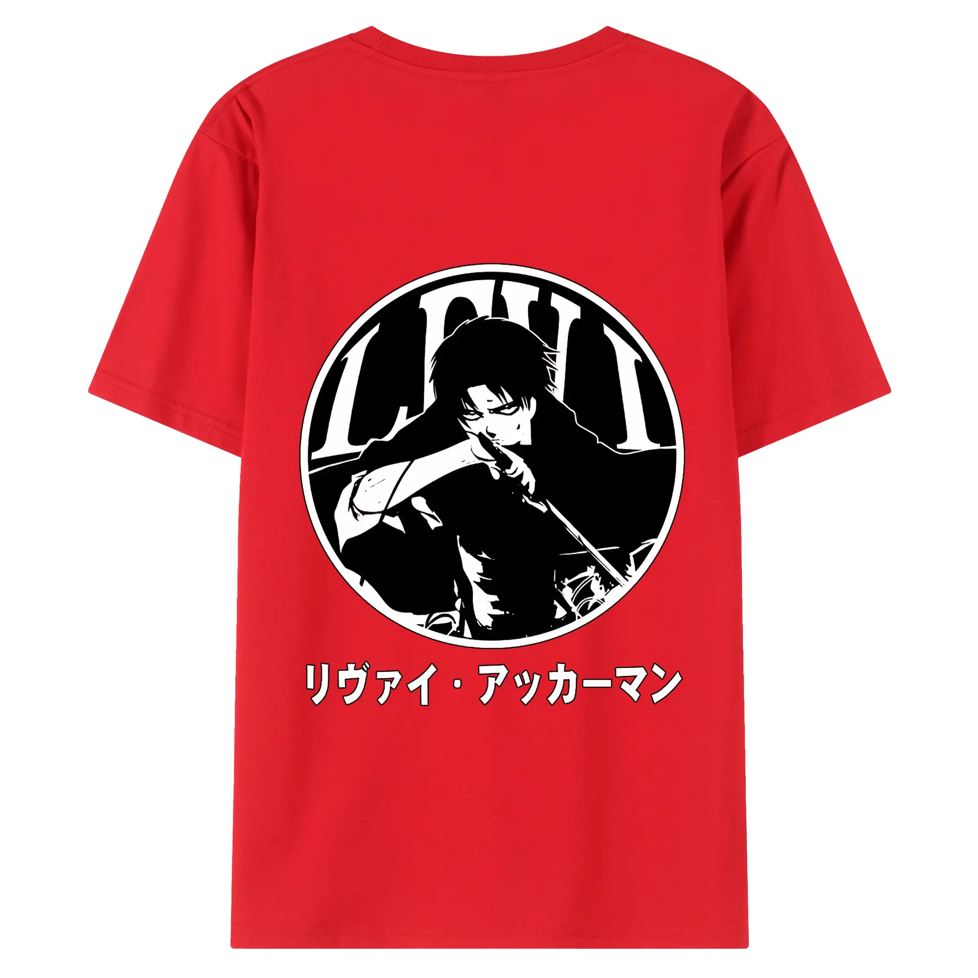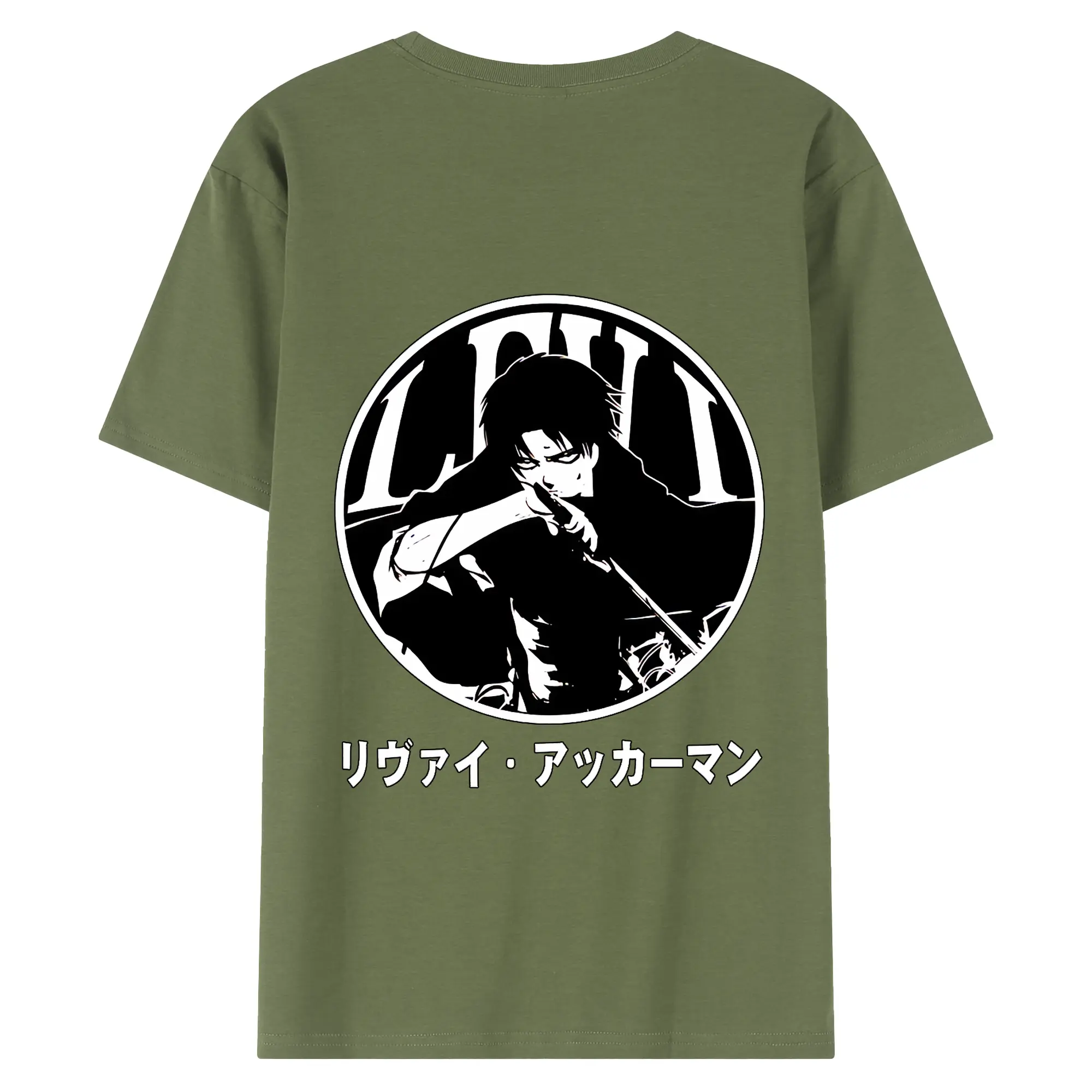 進撃の巨人 グッズ リヴァイ・アッカーマン - 綿100% 半袖Tシャツ ・ フロントプリント ・ 快適 通気性 ・ 日常使い 散歩 スポーツ用