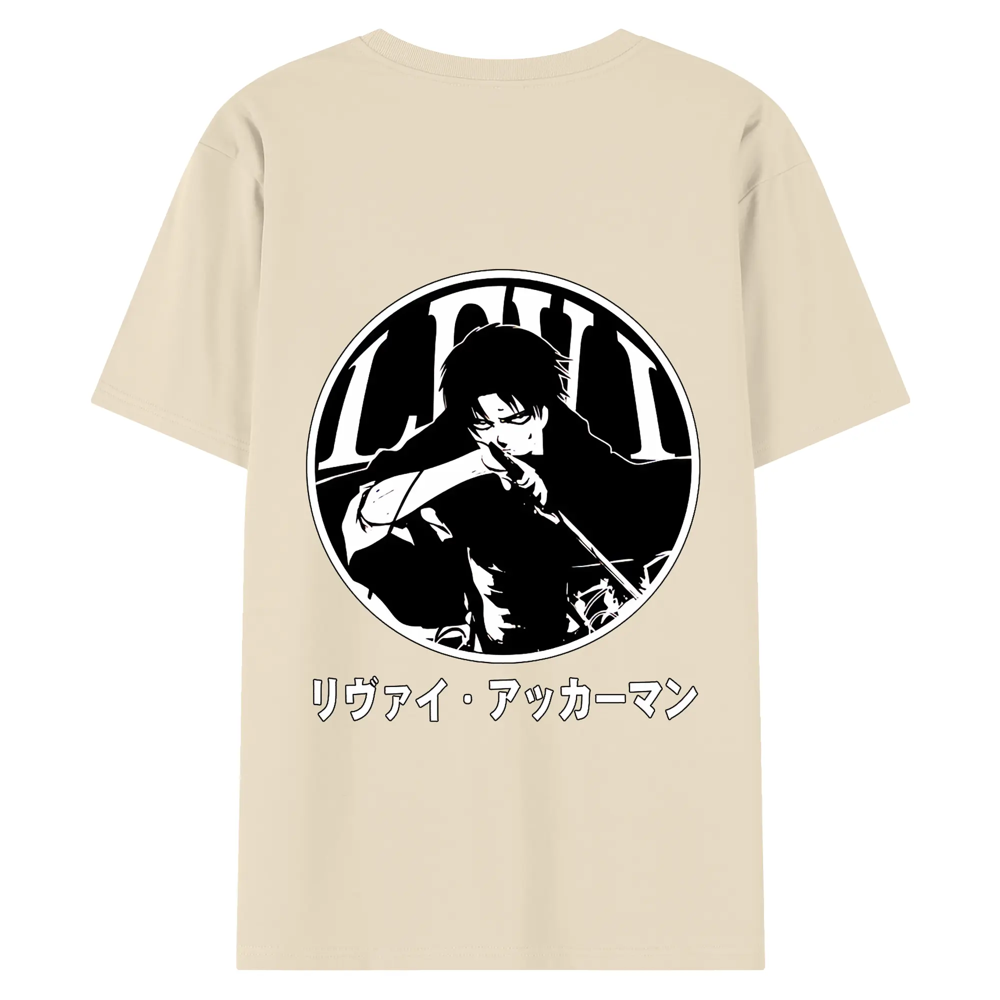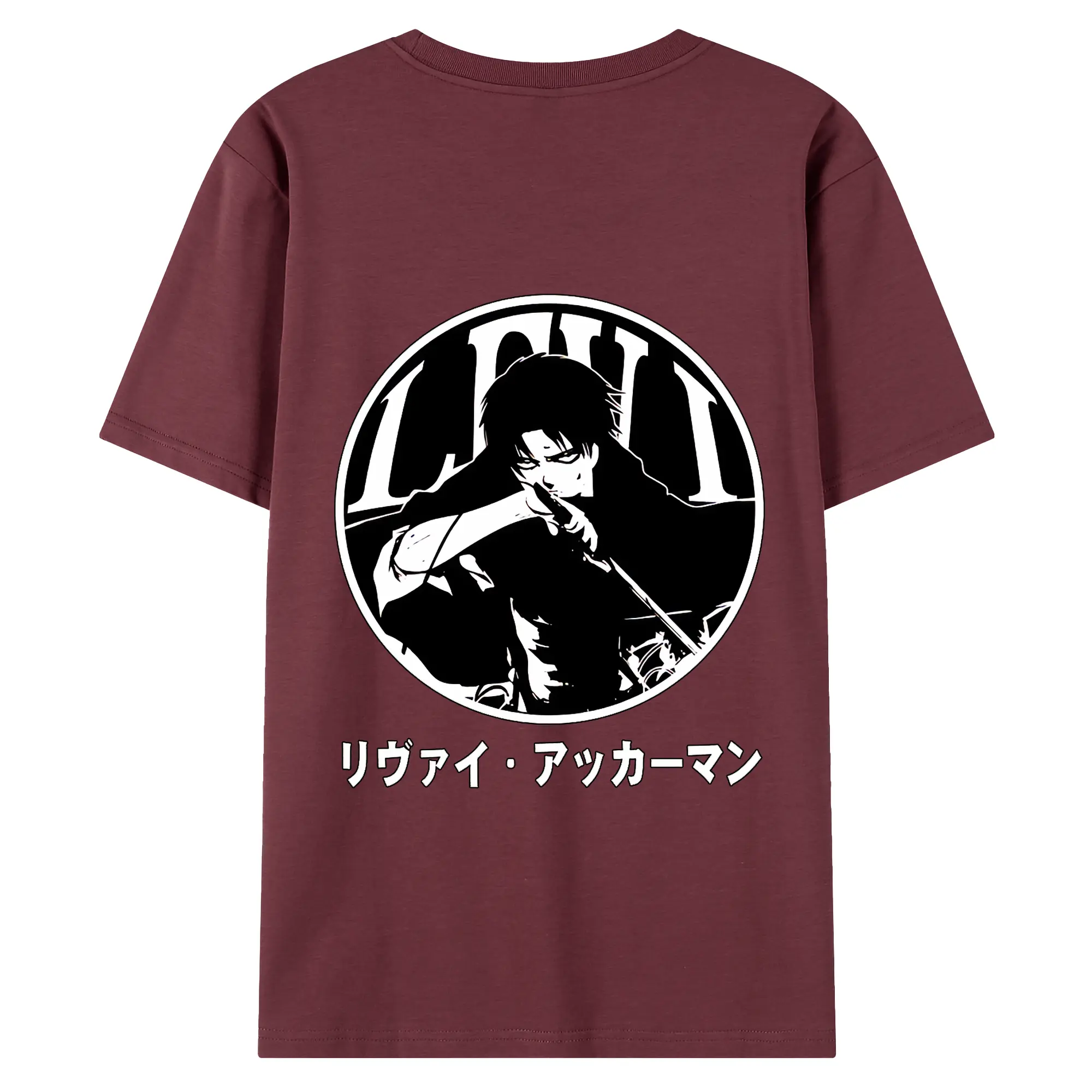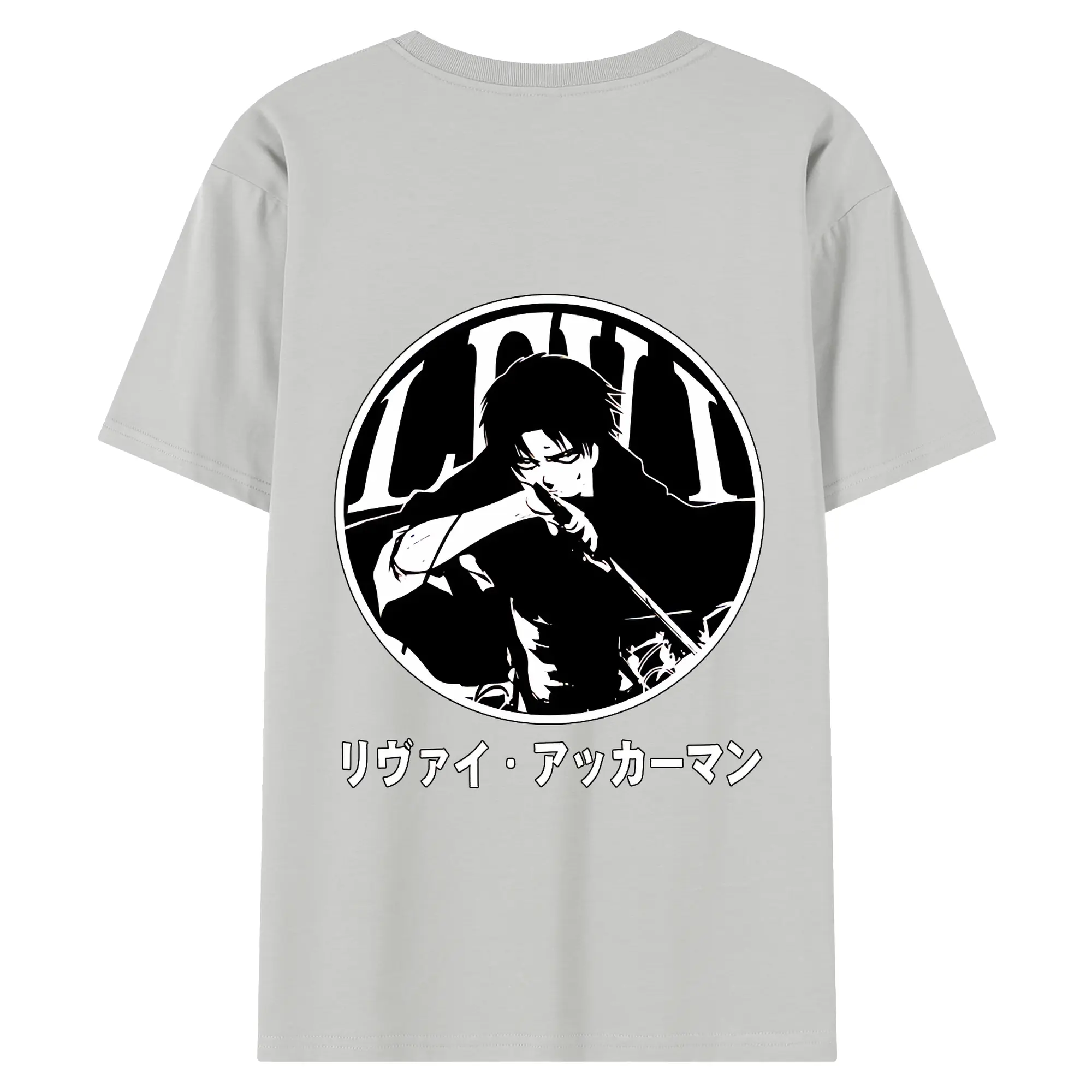 進撃の巨人 グッズ リヴァイ・アッカーマン - 綿100% ヴィンテージ風 半袖Tシャツ ・ 背面プリント ・ 柔らか肌触り ・ 通気性 快適 ・ スポーツ カジュアル 外出用