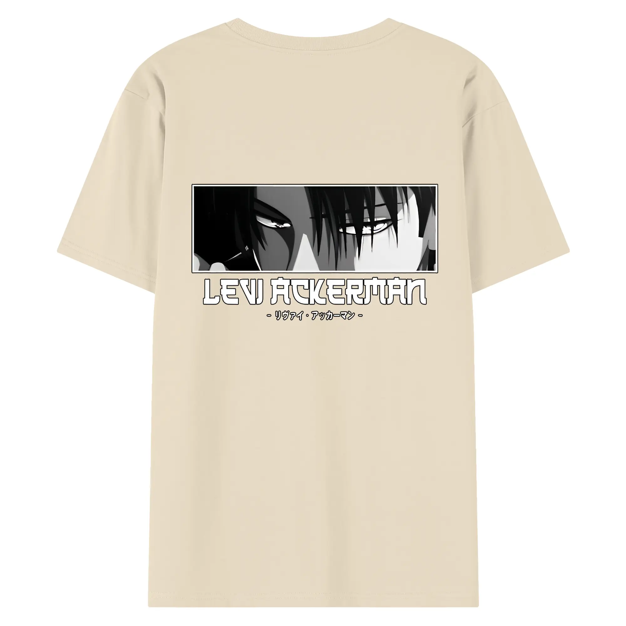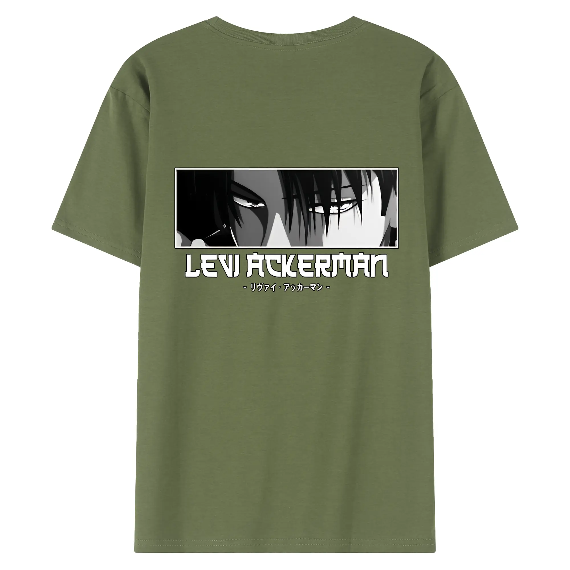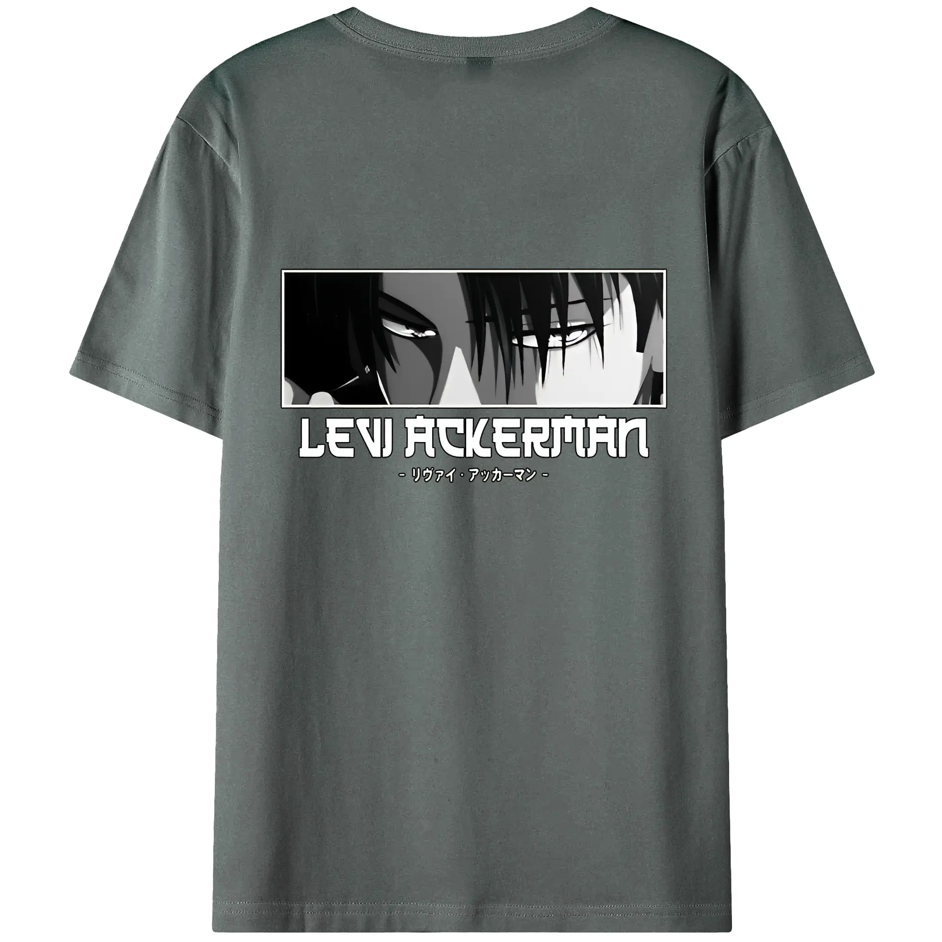 進撃の巨人 グッズ リヴァイ・アッカーマン - 綿100% ヴィンテージ風 半袖Tシャツ ・ フロントプリント ・ 柔らか肌触り ・ 通気性 快適 ・ スポーツ カジュアル 外出用