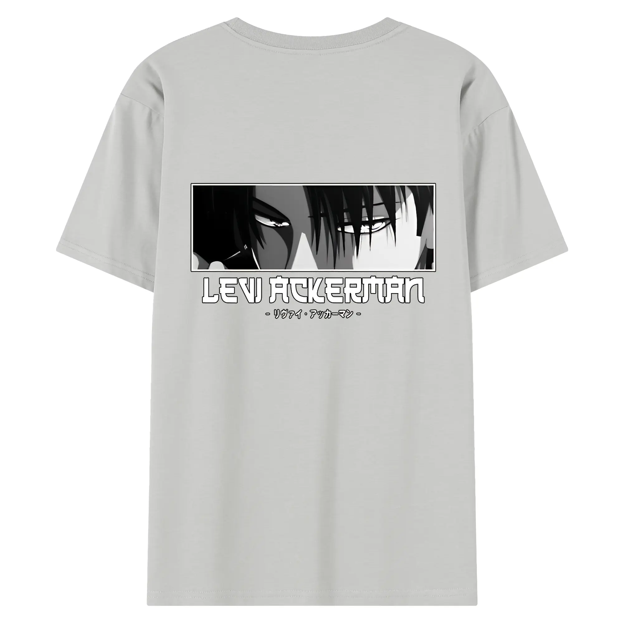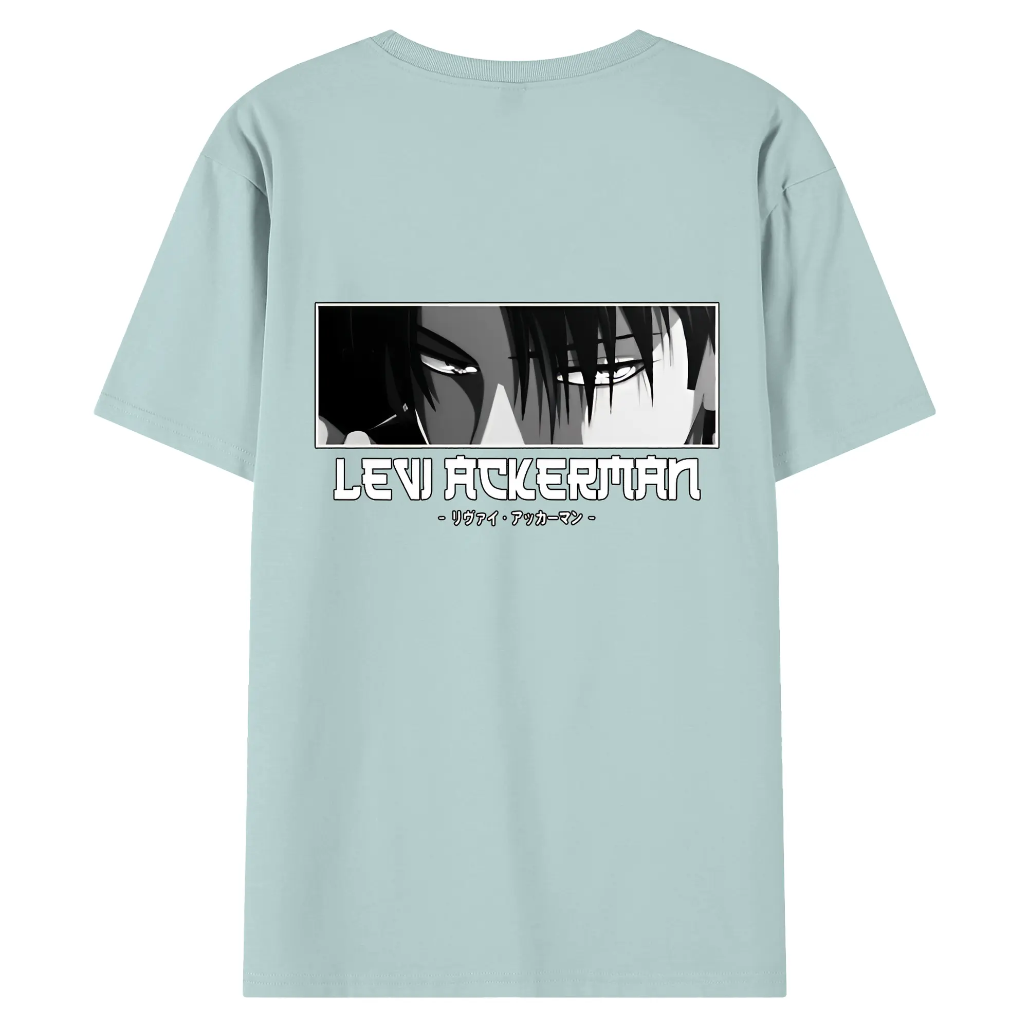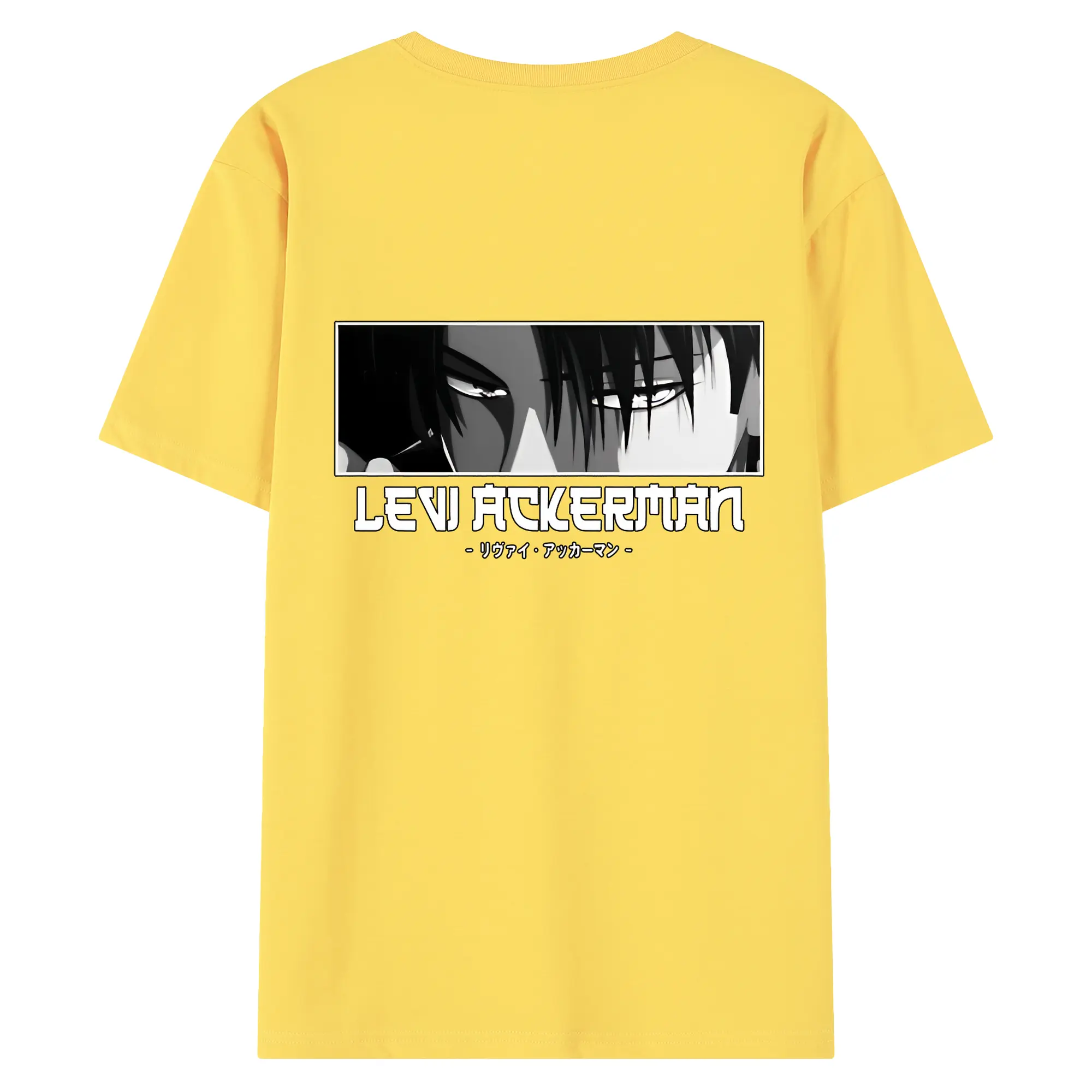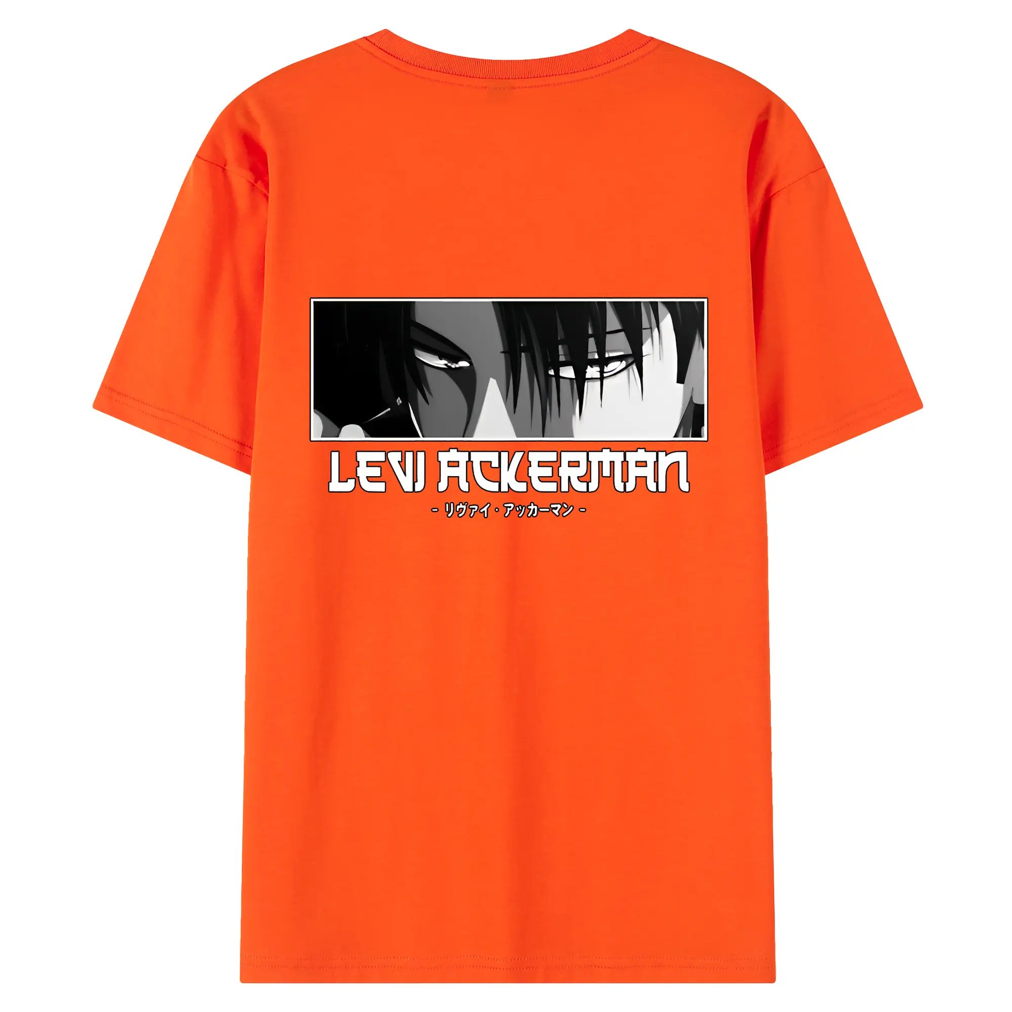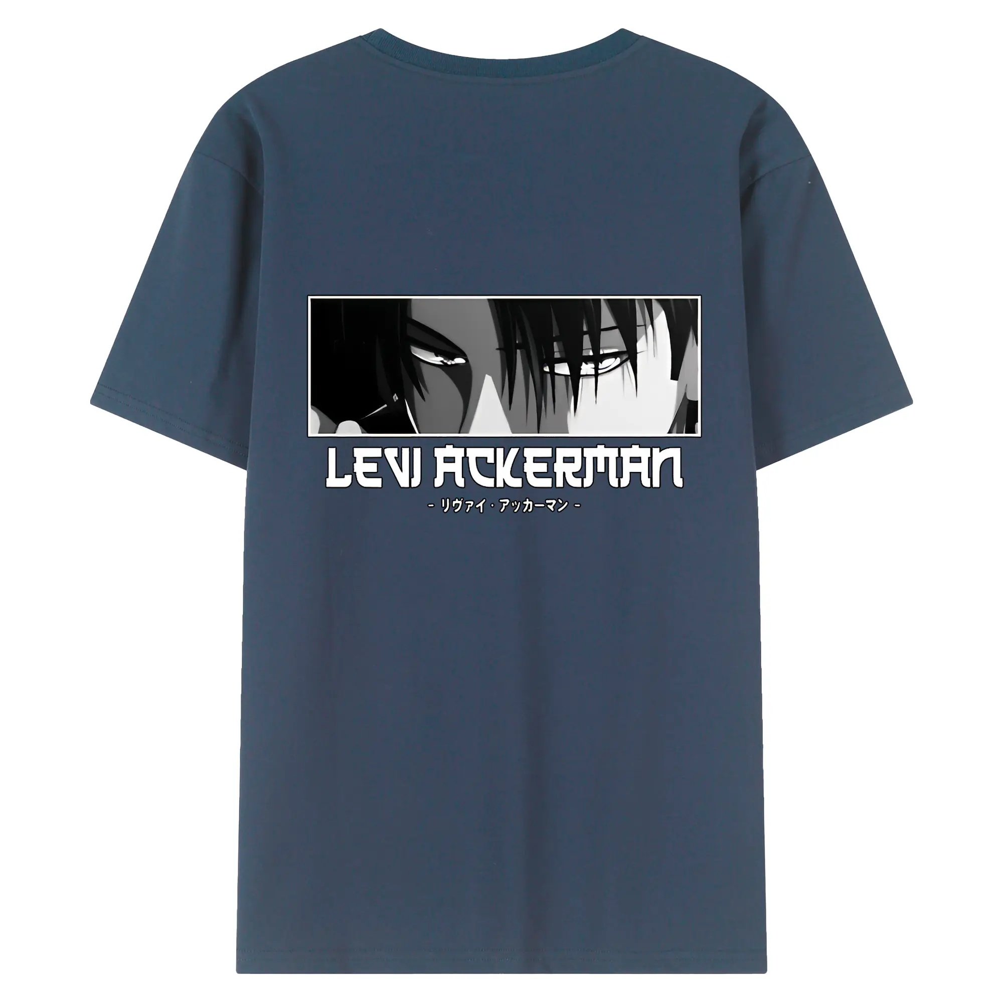 進撃の巨人 グッズ リヴァイ・アッカーマン - 綿100% ヴィンテージ風 半袖Tシャツ ・ 背面プリント ・ 柔らか肌触り ・ 通気性 快適 ・ スポーツ カジュアル 外出用