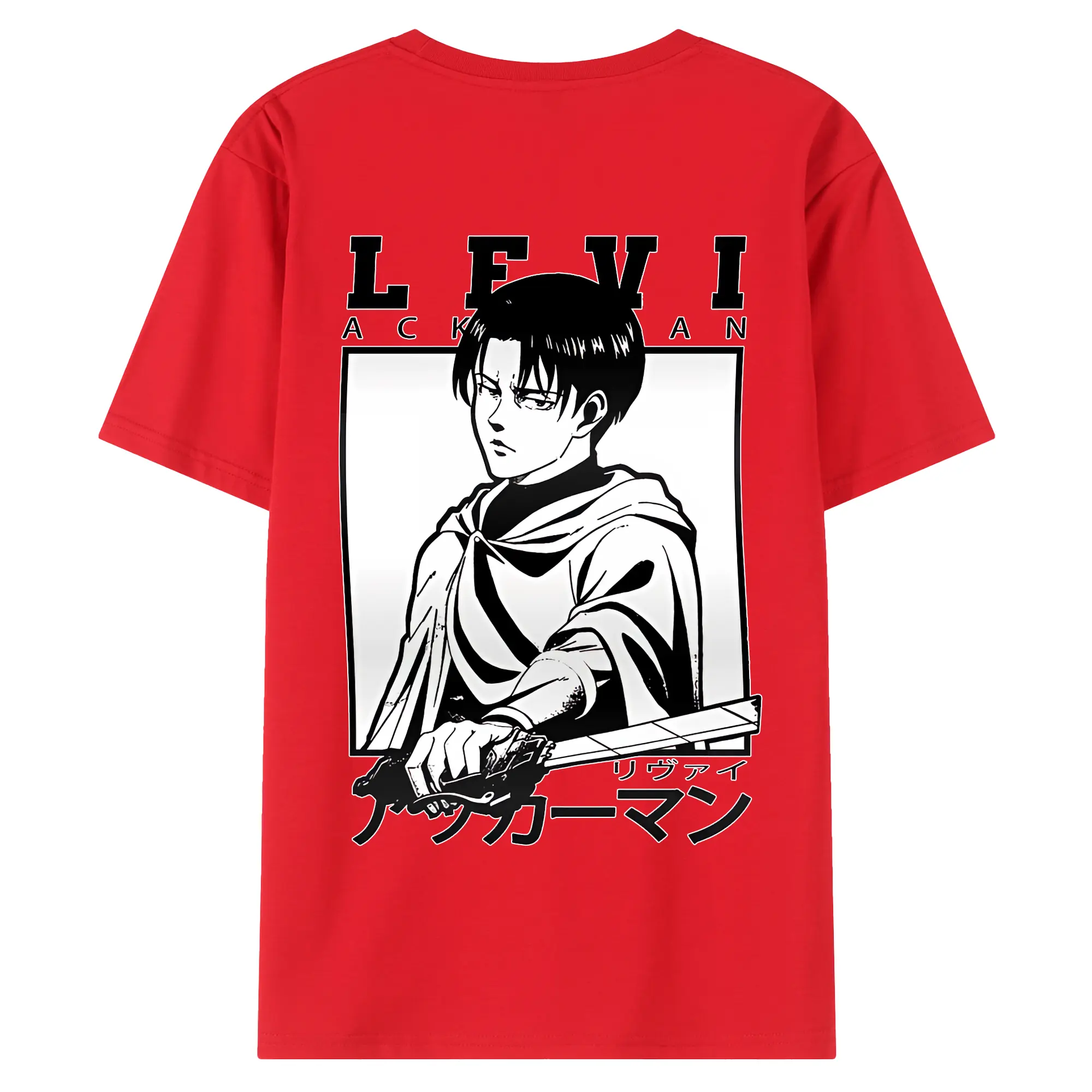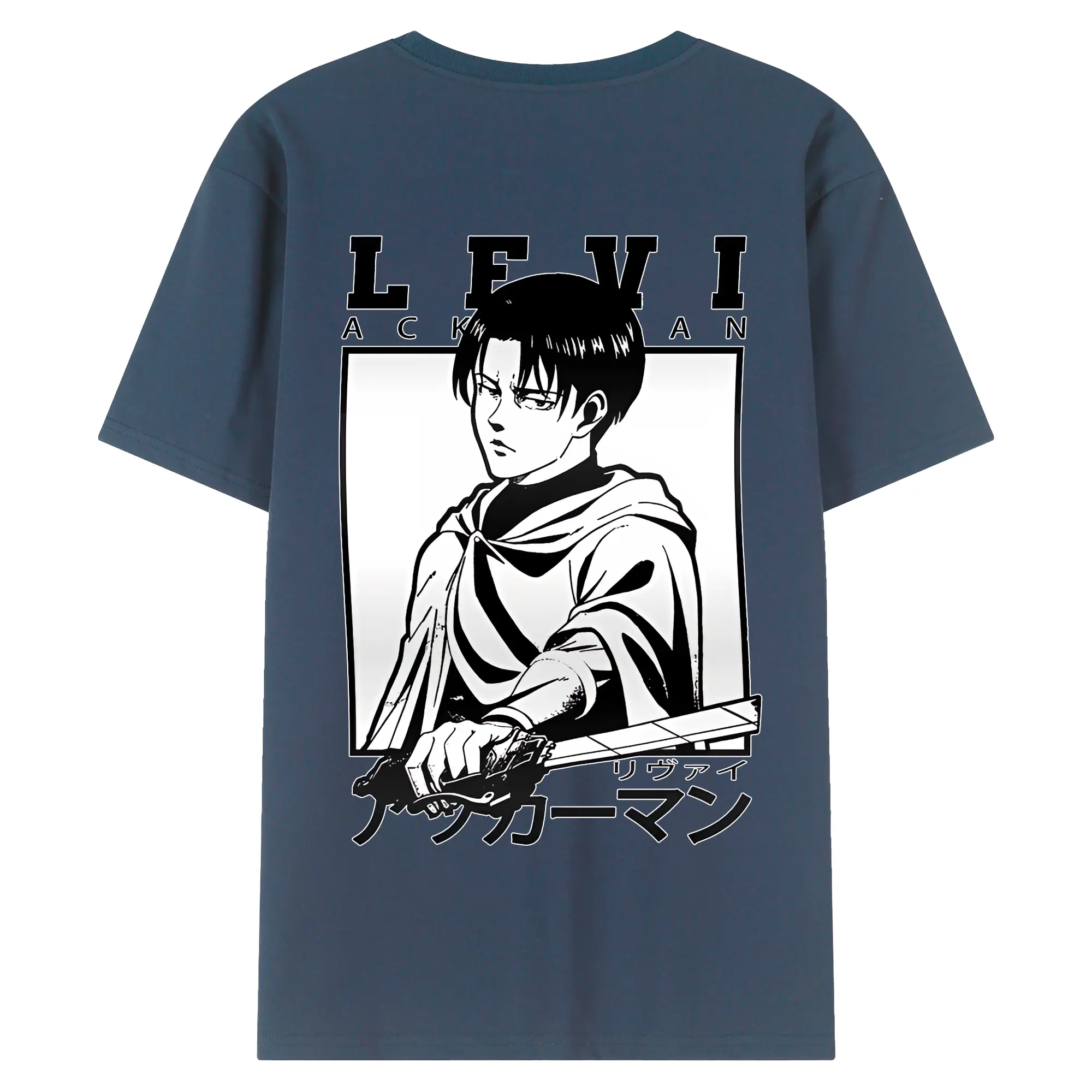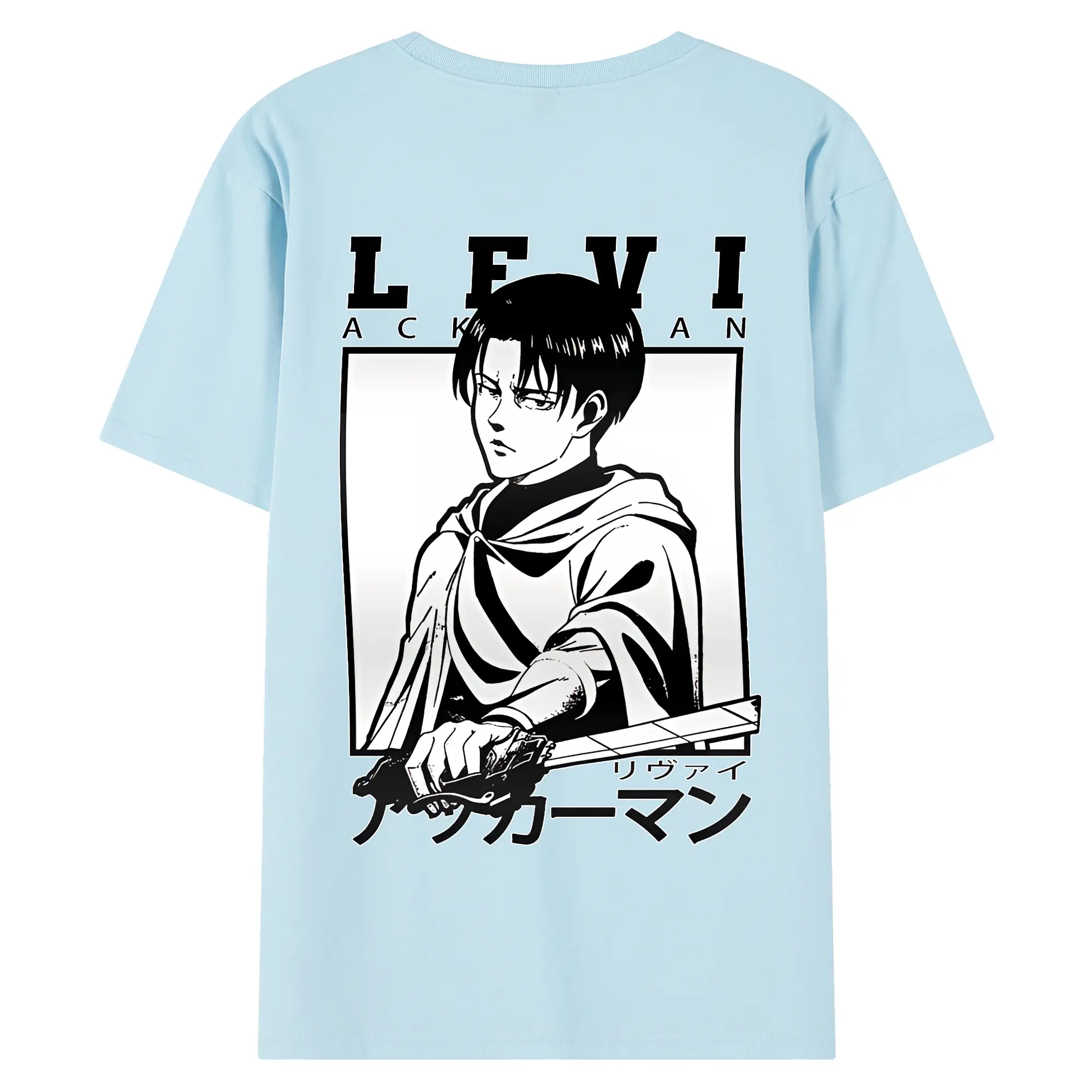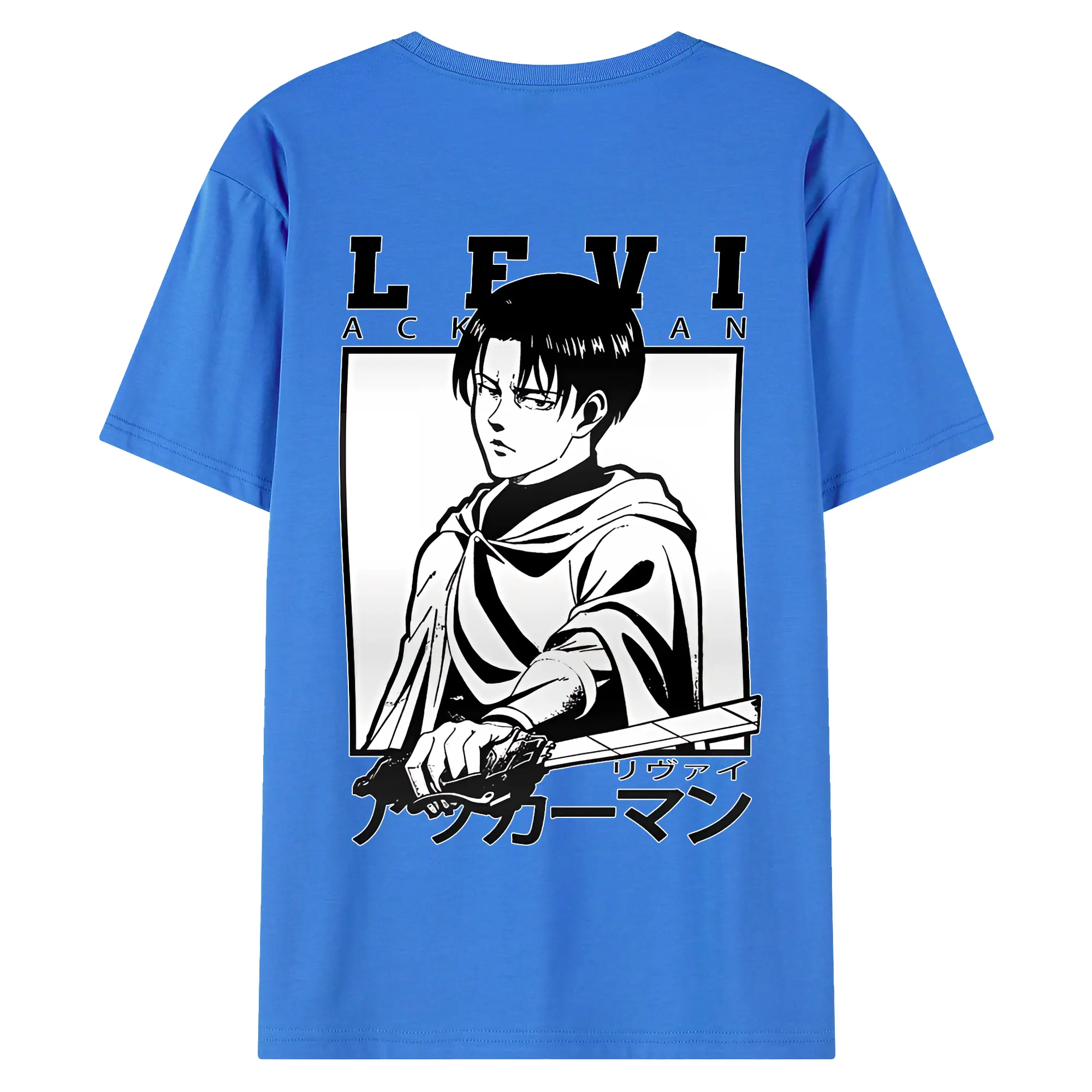 進撃の巨人 グッズ リヴァイ・アッカーマン - 綿100% 半袖Tシャツ ・ フロントプリント ・ 快適 通気性 ・ 日常使い 散歩 スポーツ用