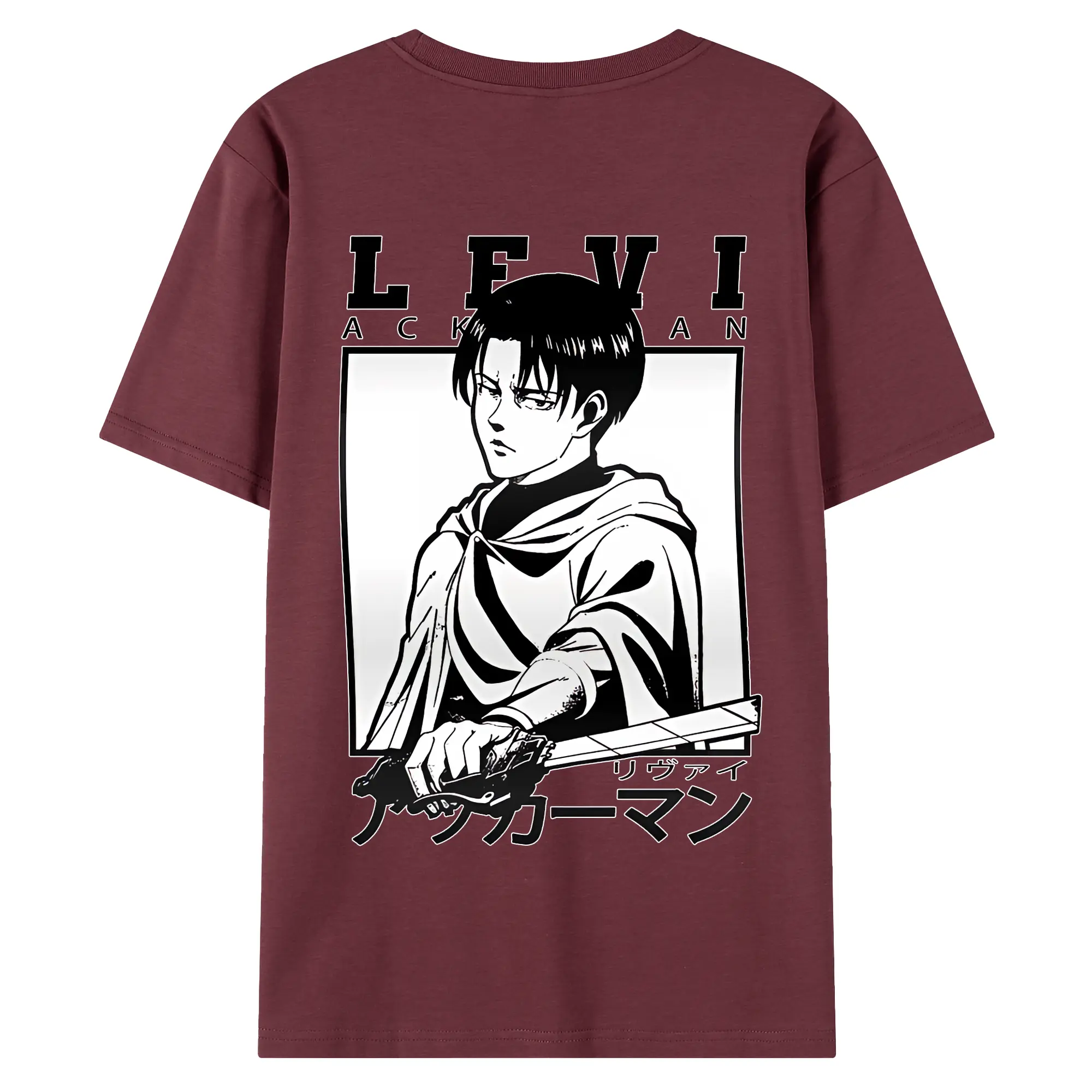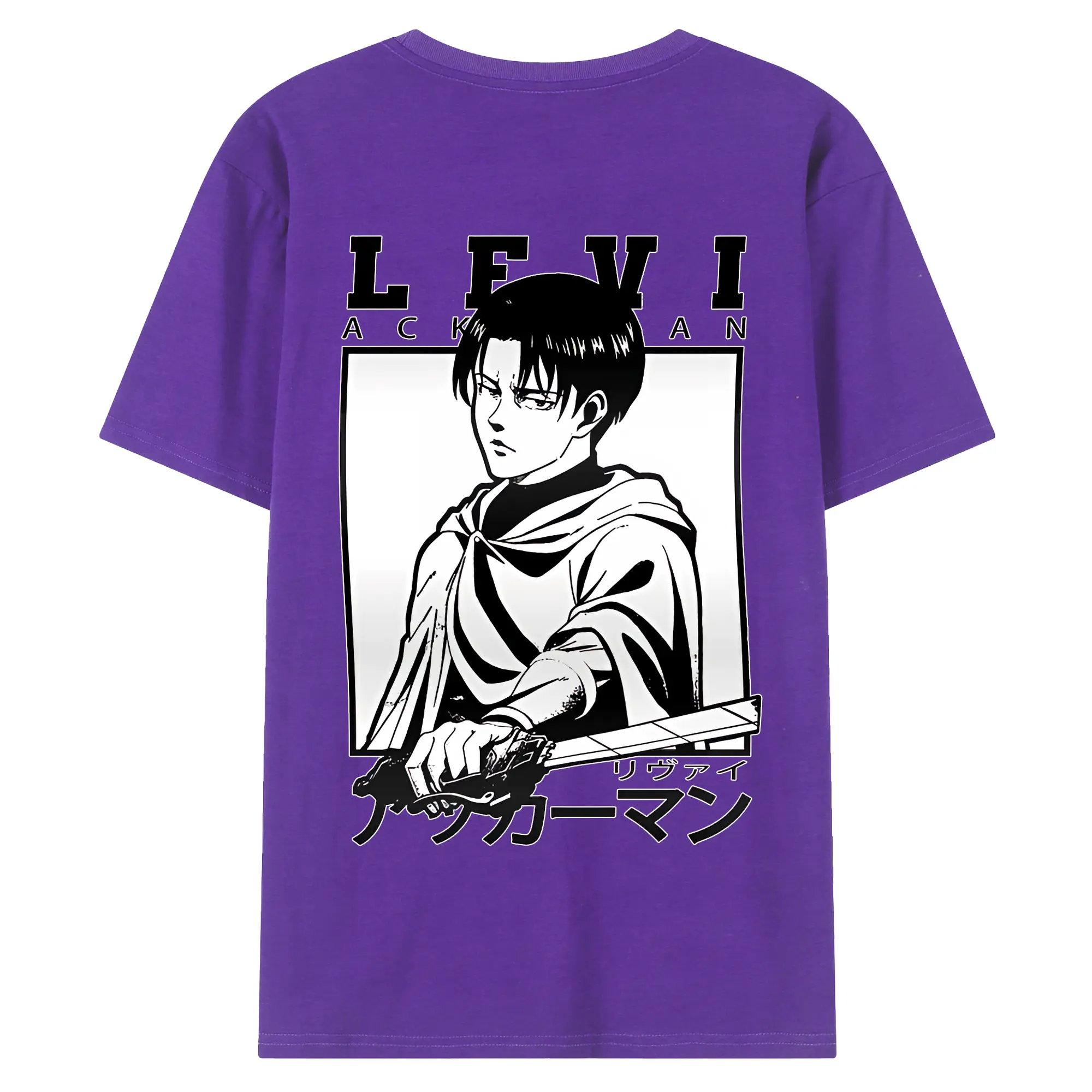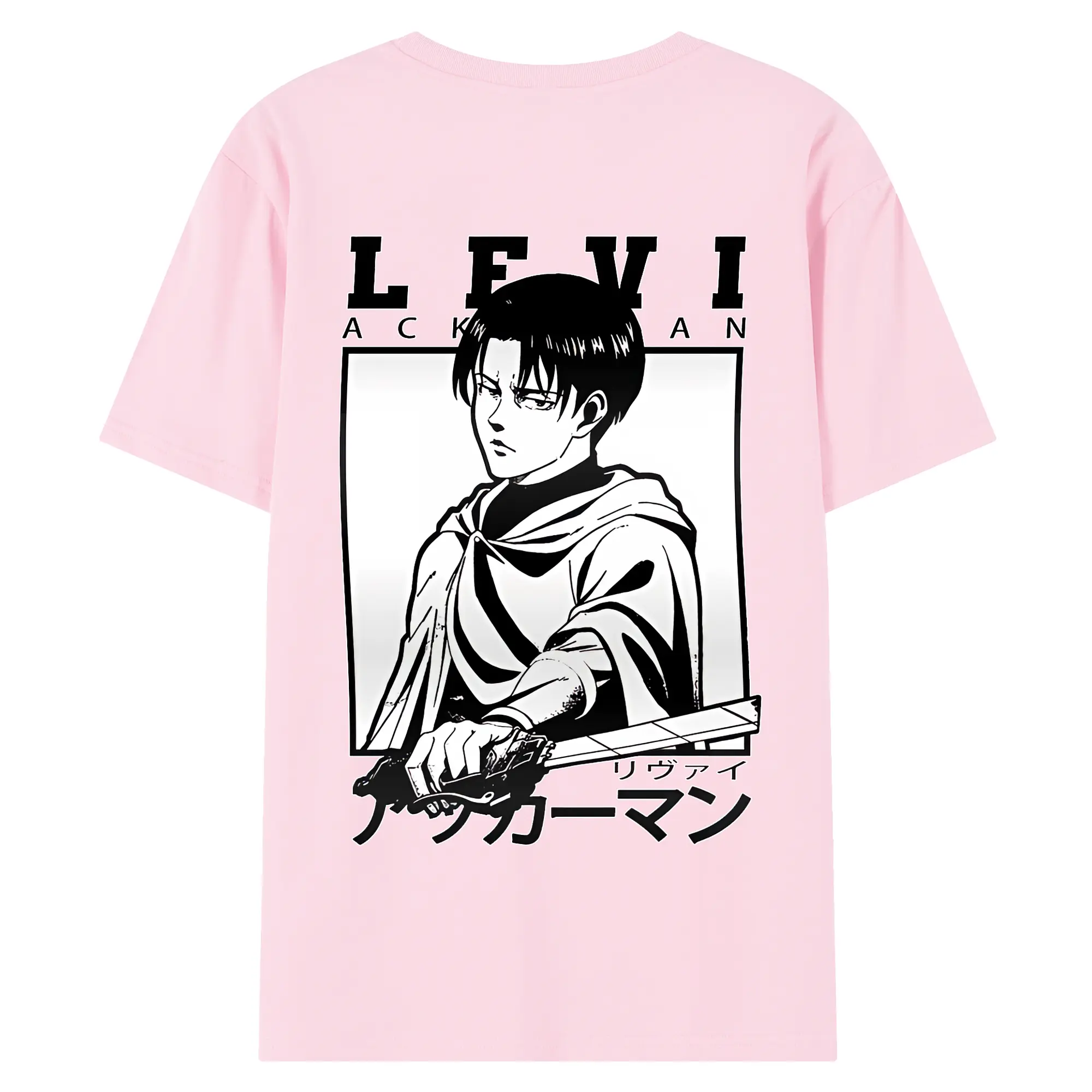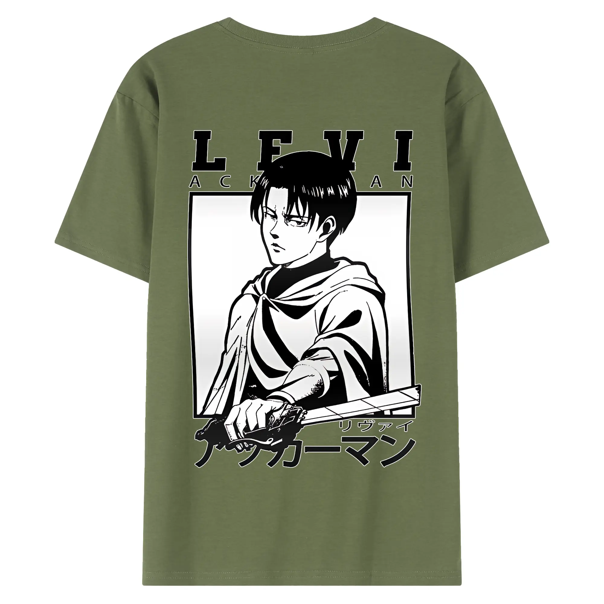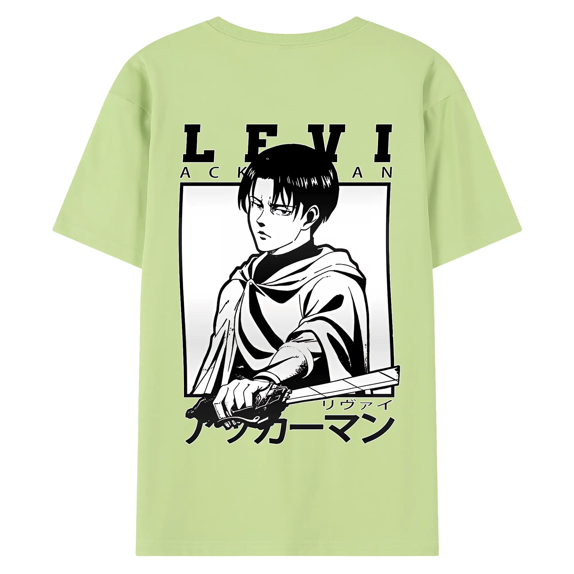 進撃の巨人 グッズ リヴァイ・アッカーマン - 綿100% 半袖Tシャツ ・ フロントプリント ・ 快適 通気性 ・ 日常使い 散歩 スポーツ用