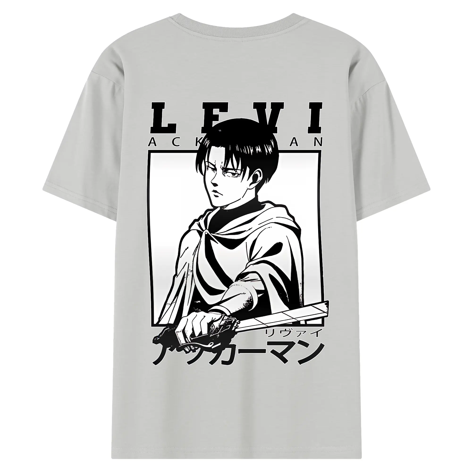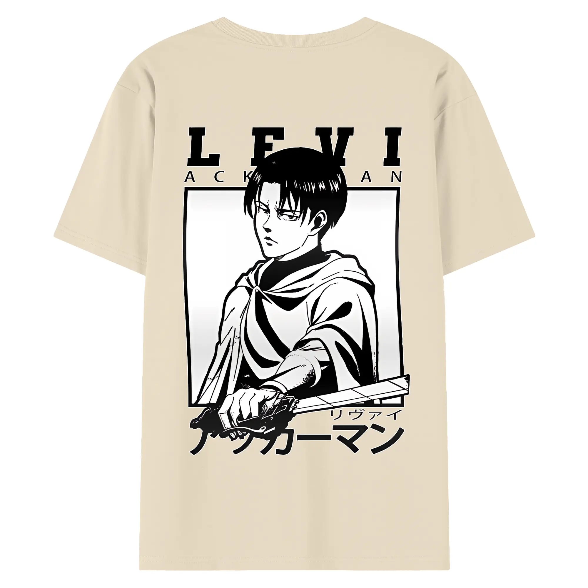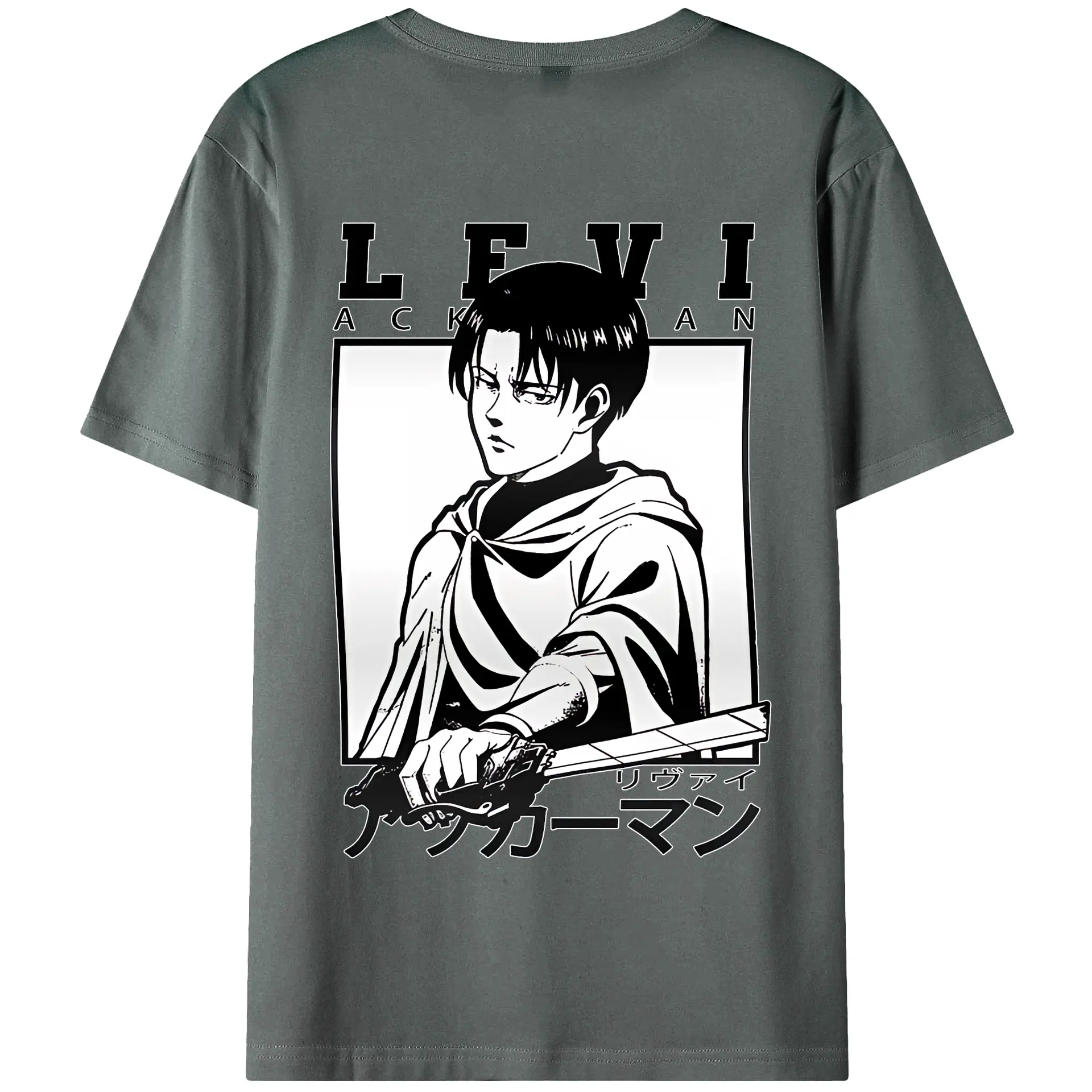 進撃の巨人 グッズ リヴァイ・アッカーマン - 綿100% ヴィンテージ風 半袖Tシャツ ・ 背面プリント ・ 柔らか肌触り ・ 通気性 快適 ・ スポーツ カジュアル 外出用