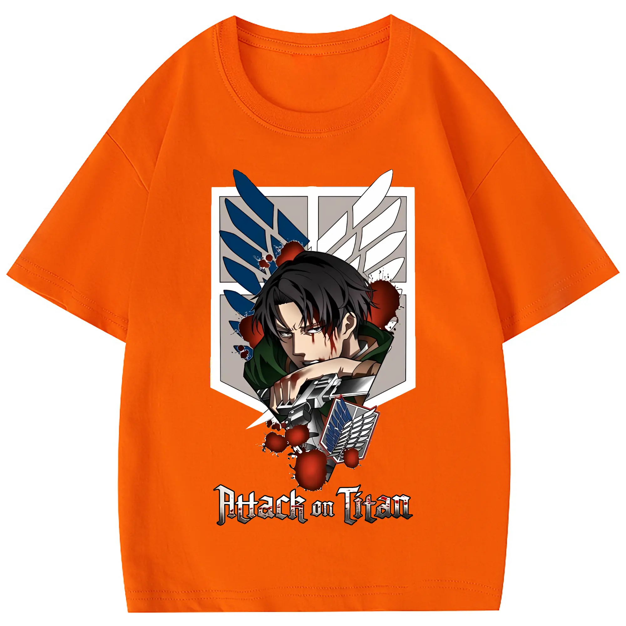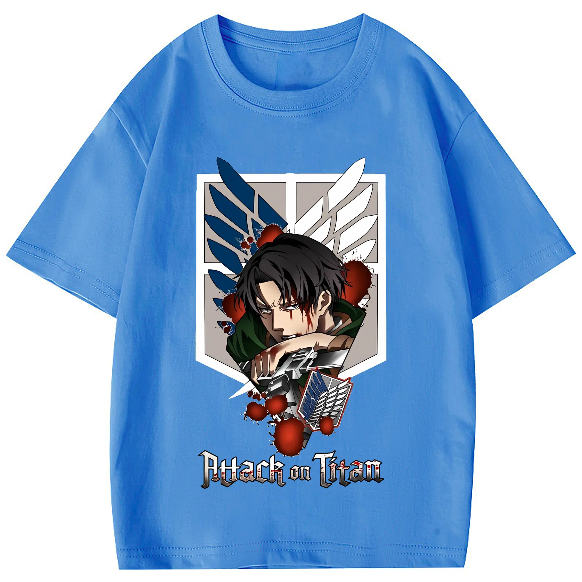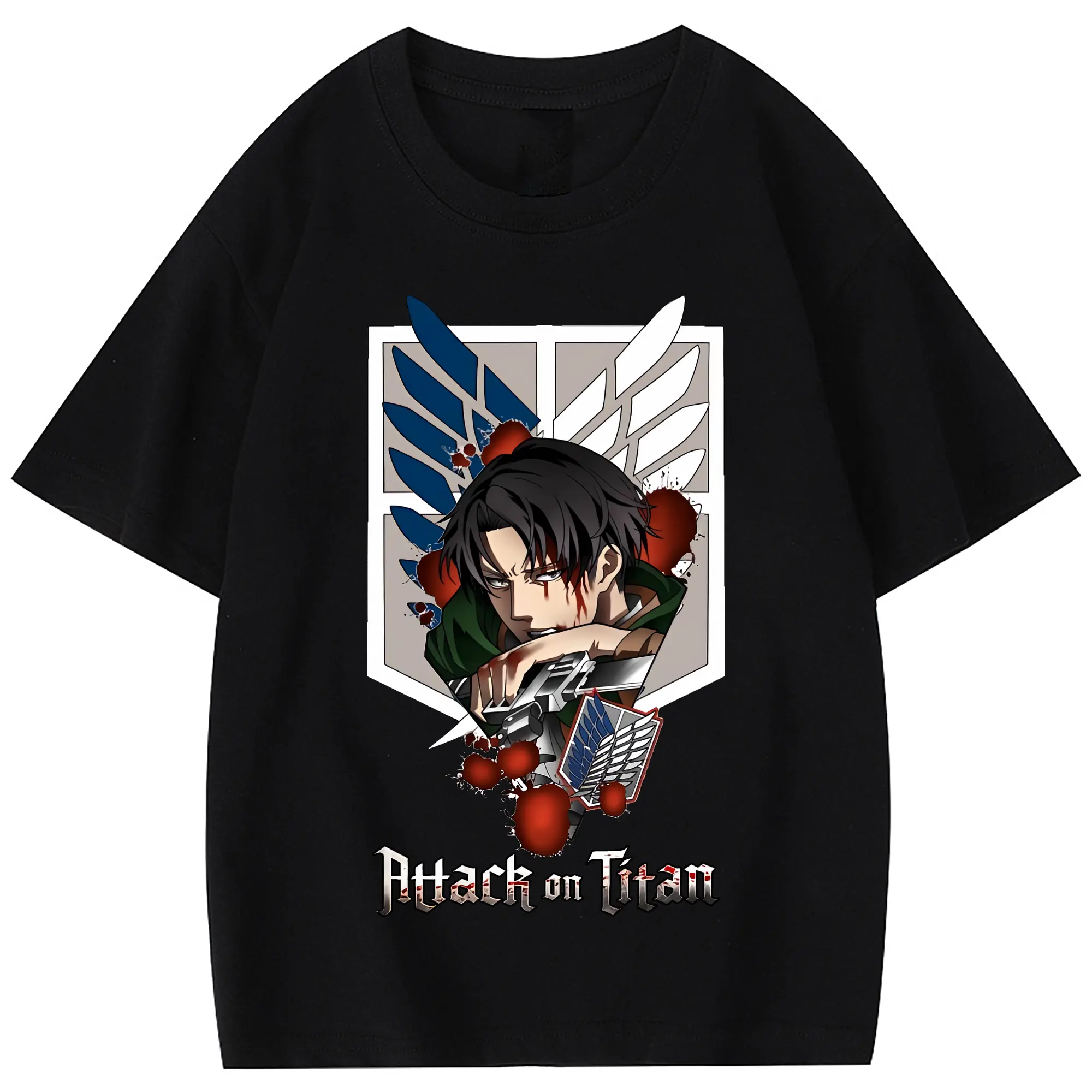 進撃の巨人 グッズ リヴァイ・アッカーマン - 綿100% 半袖Tシャツ ・ フロントプリント ・ 快適 通気性 ・ 日常使い 散歩 スポーツ用