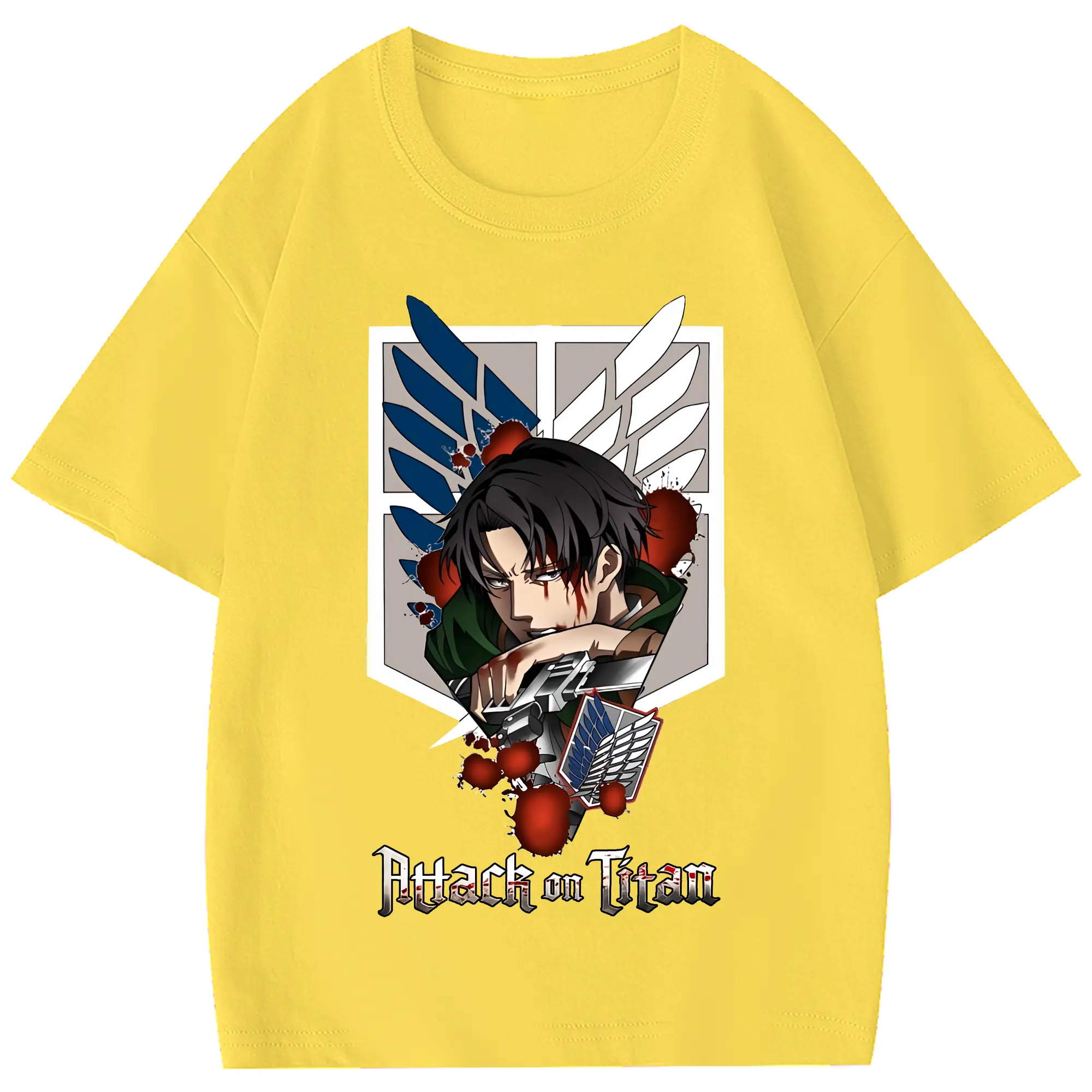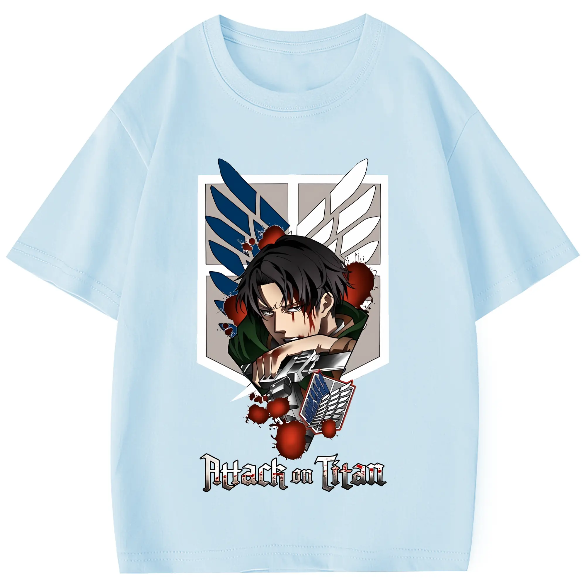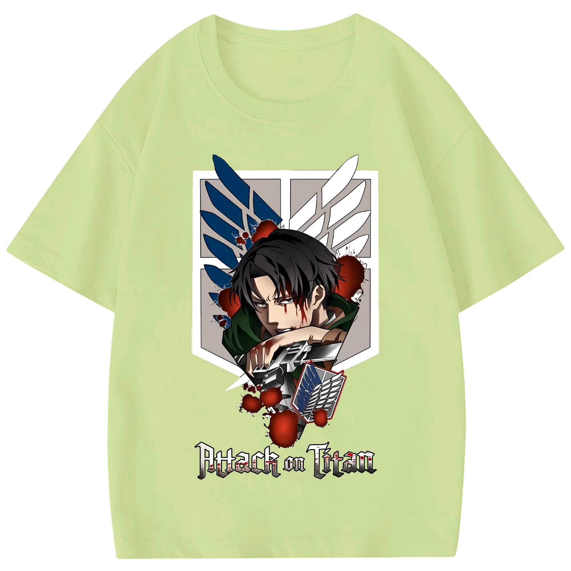 進撃の巨人 グッズ リヴァイ・アッカーマン - 綿100% 半袖Tシャツ ・ フロントプリント ・ 快適 通気性 ・ 日常使い 散歩 スポーツ用