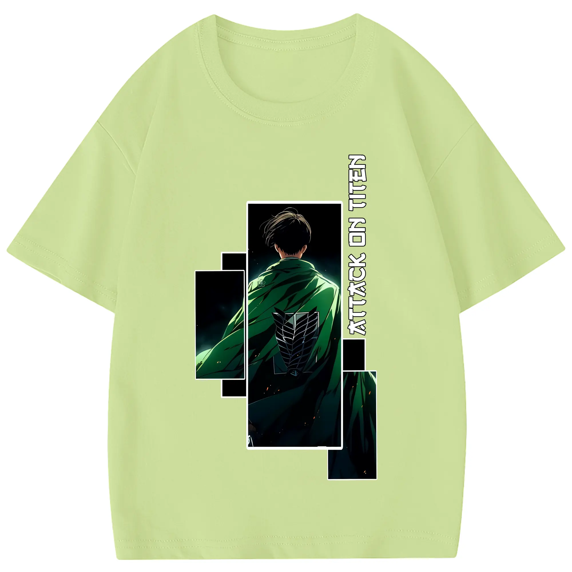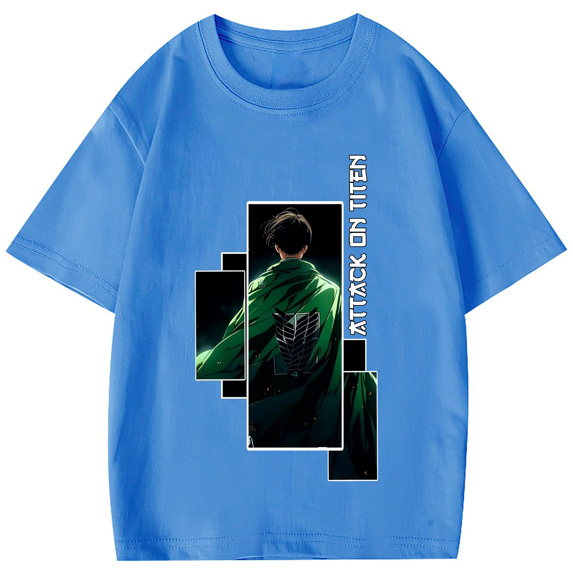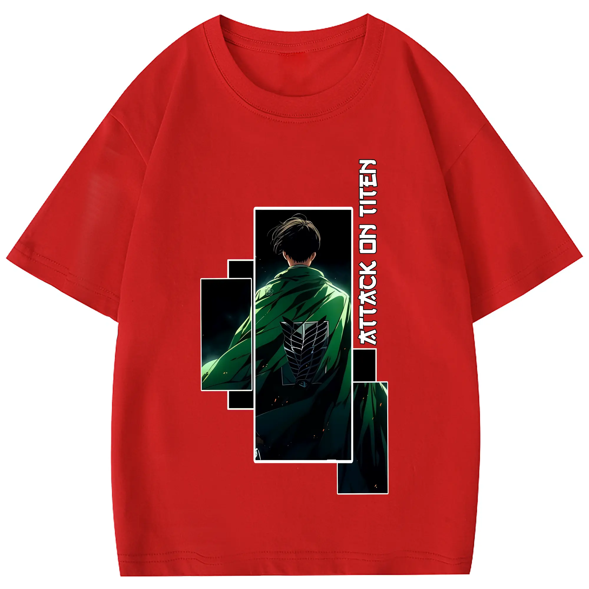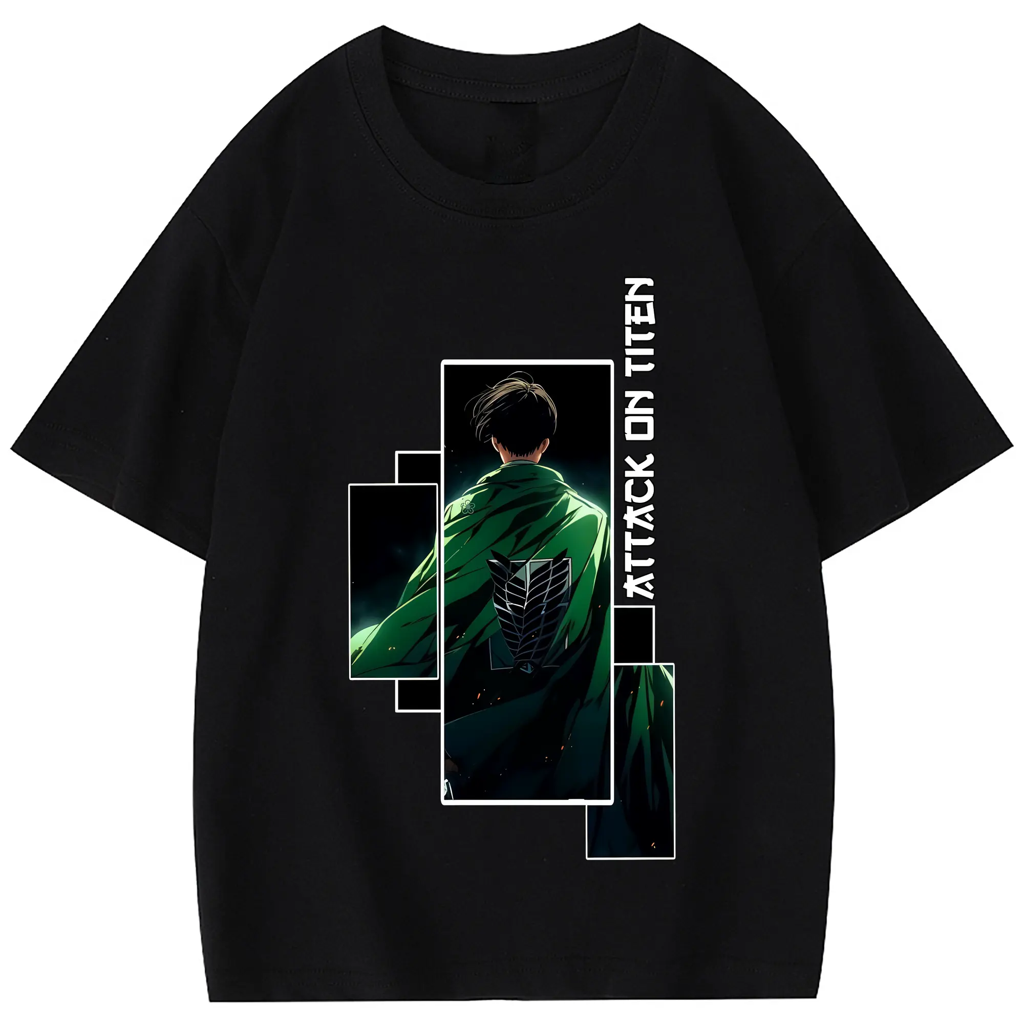 進撃の巨人 グッズ リヴァイ・アッカーマン - 綿100% 半袖Tシャツ ・ バックプリント ・ 快適 通気性 ・ 日常使い 散歩 スポーツ用