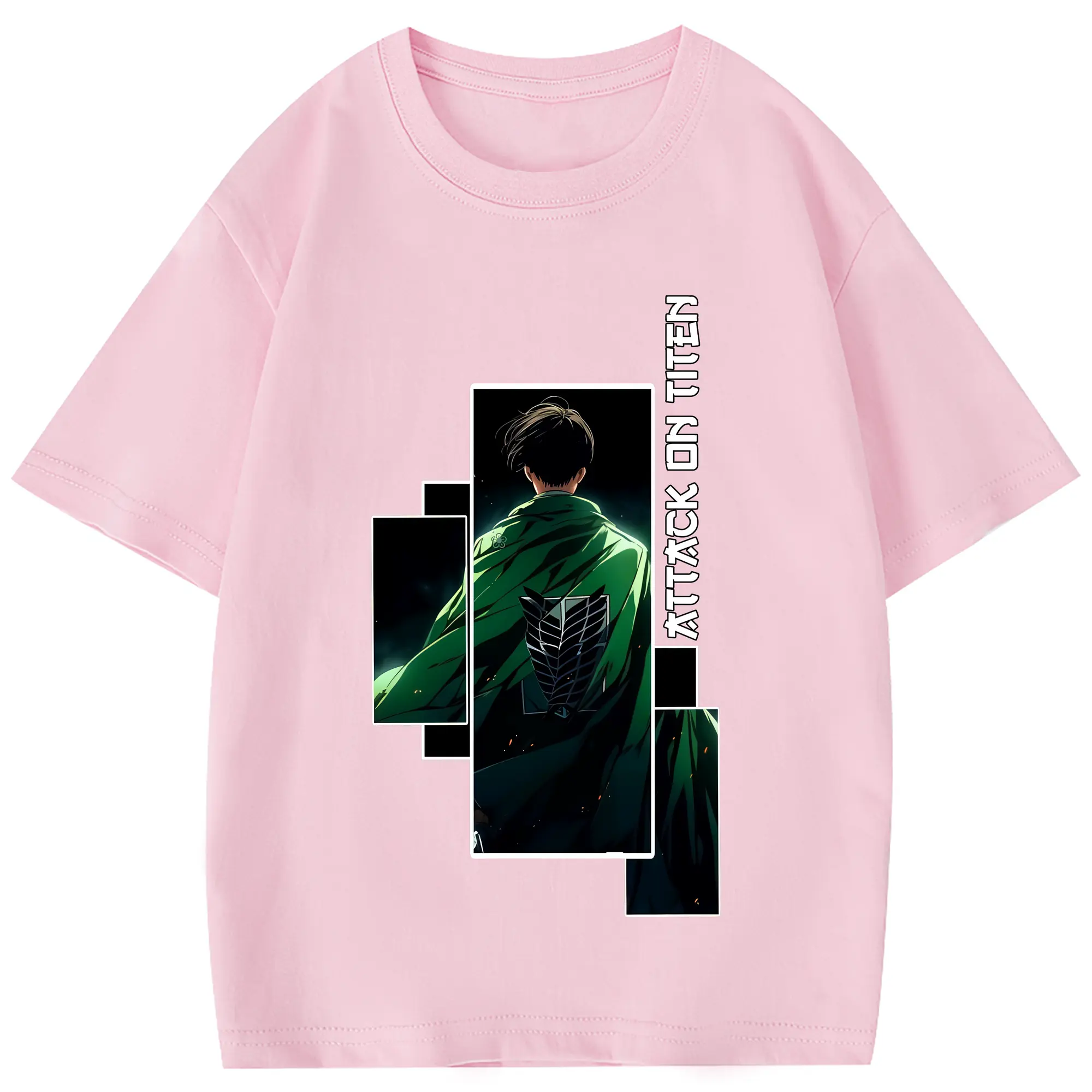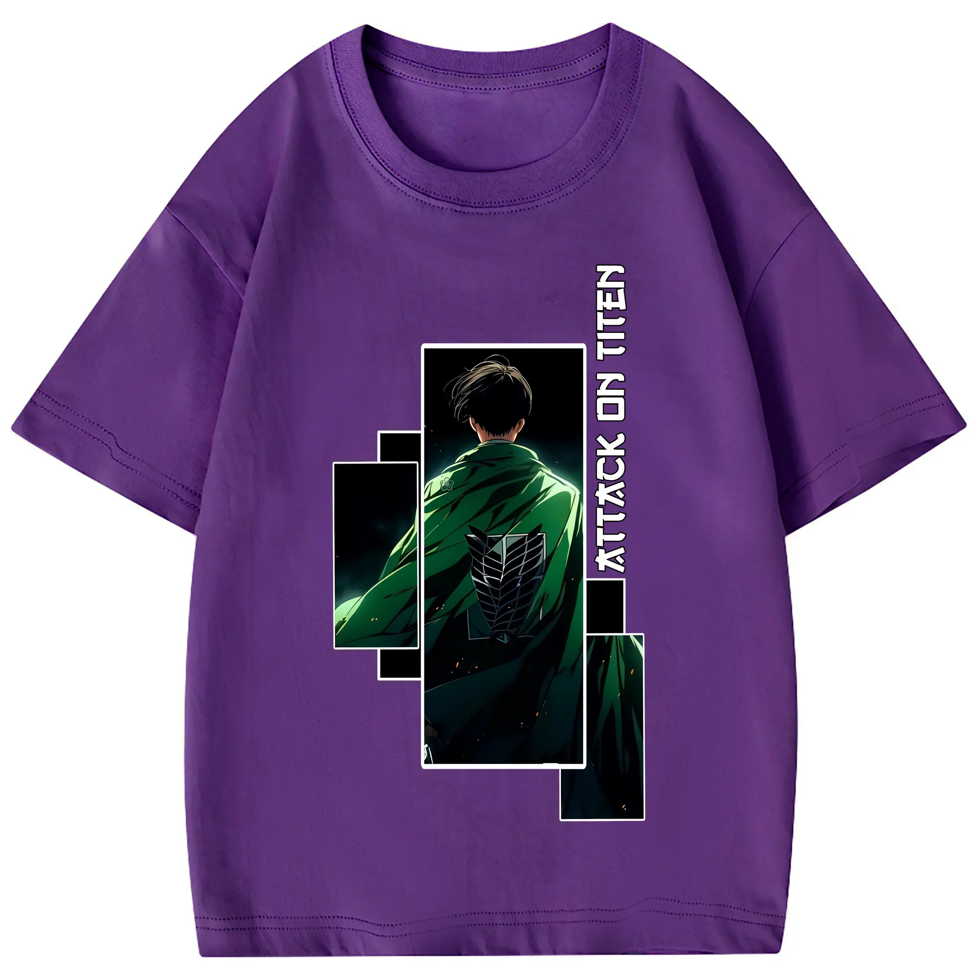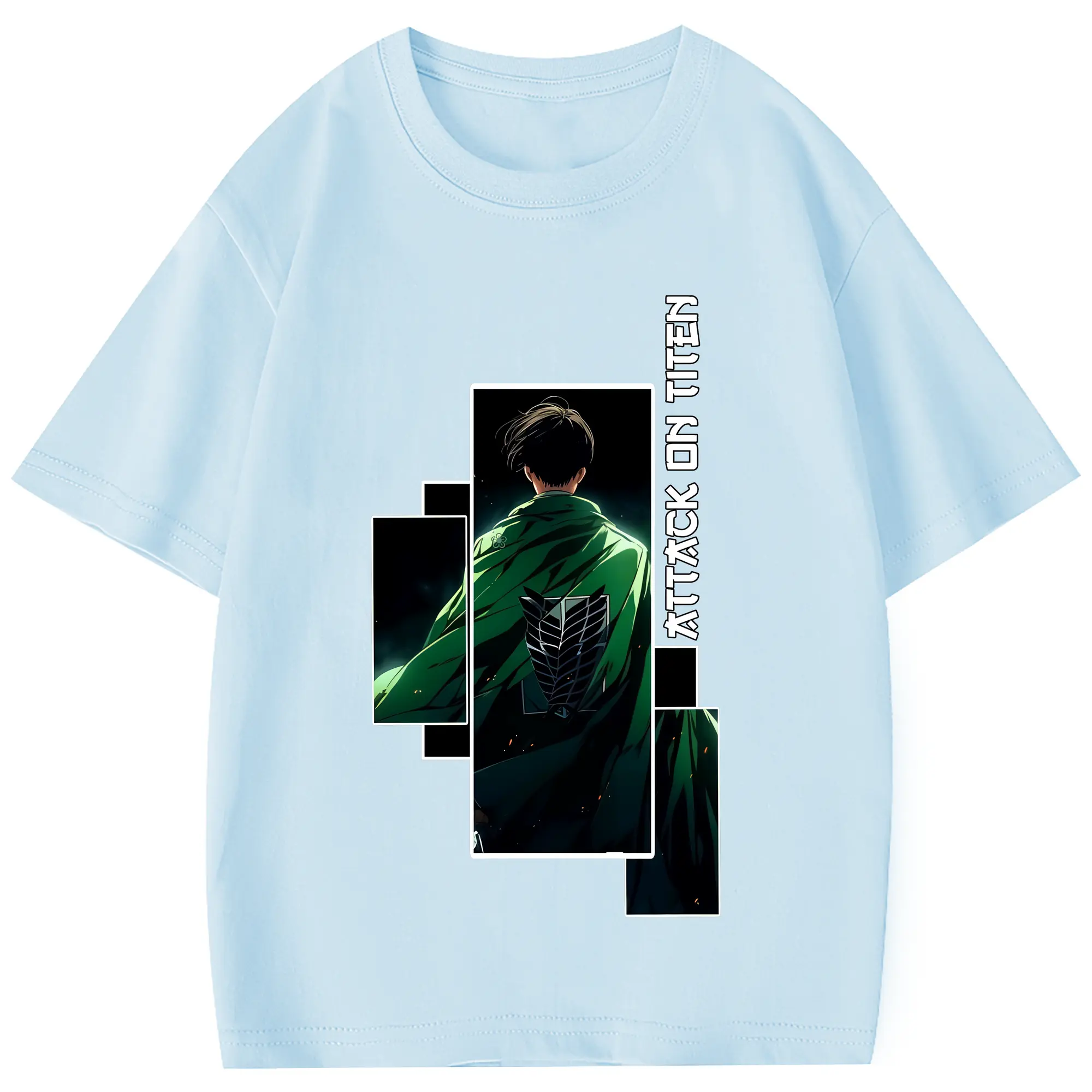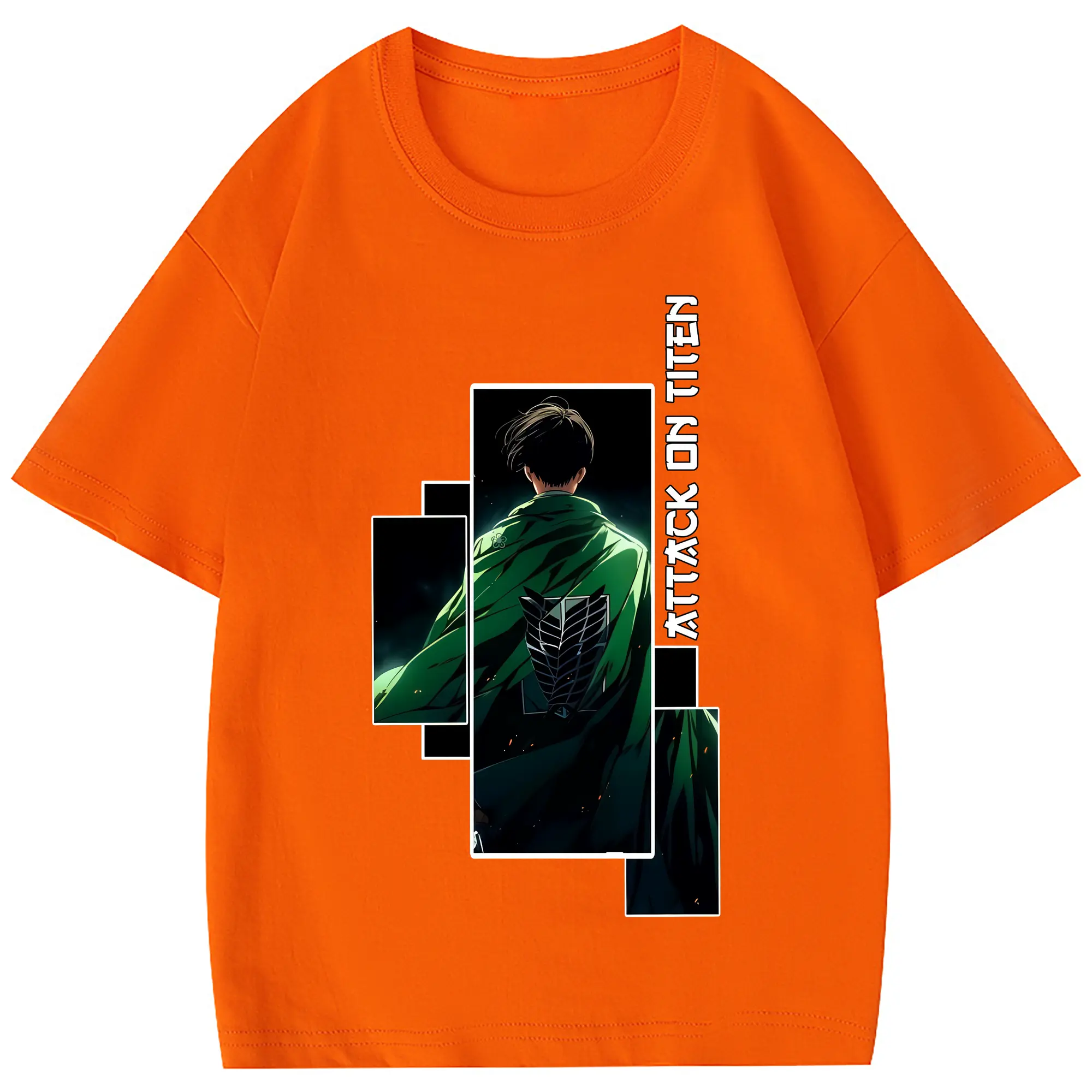 進撃の巨人 グッズ リヴァイ・アッカーマン - 綿100% 半袖Tシャツ ・ バックプリント ・ 快適 通気性 ・ 日常使い 散歩 スポーツ用