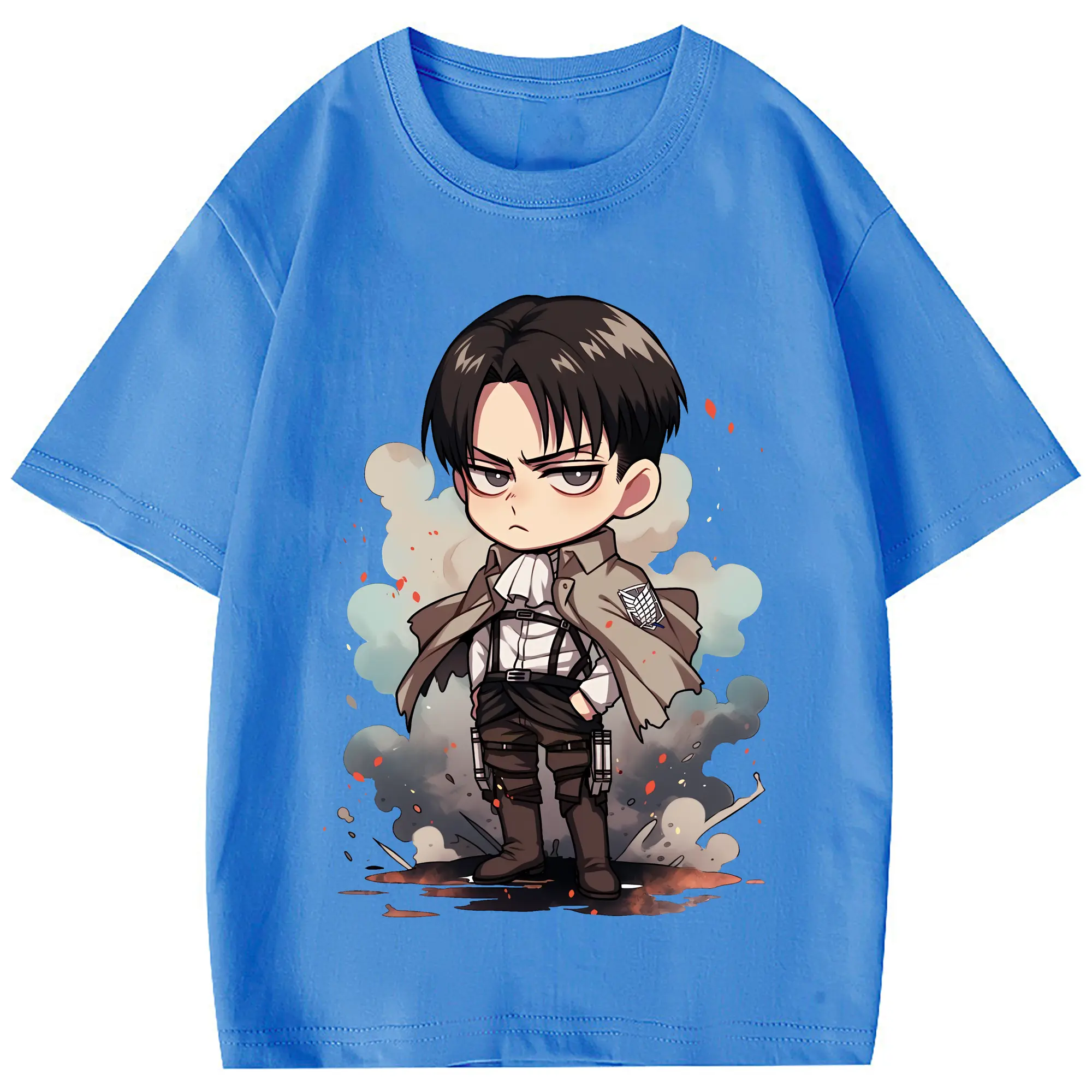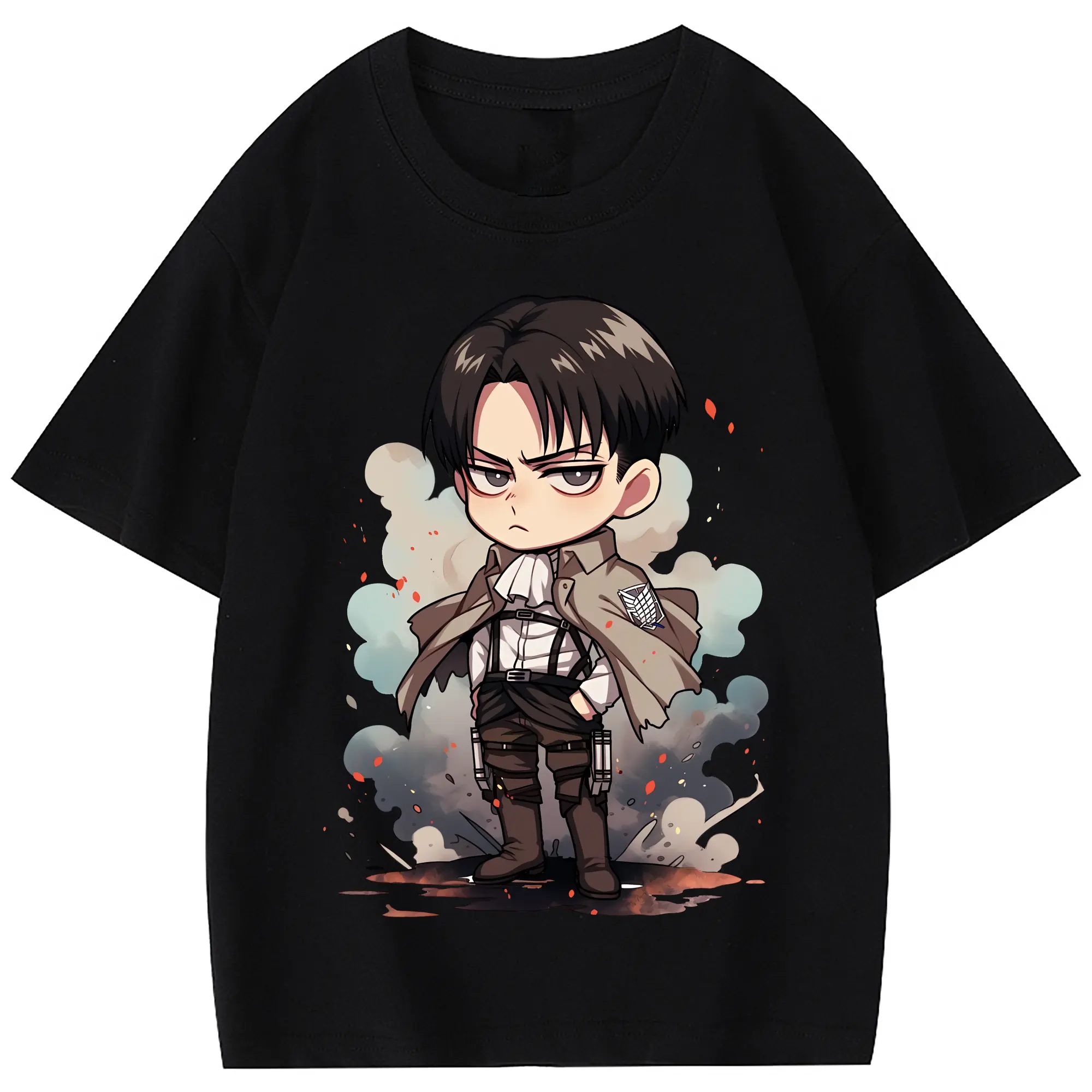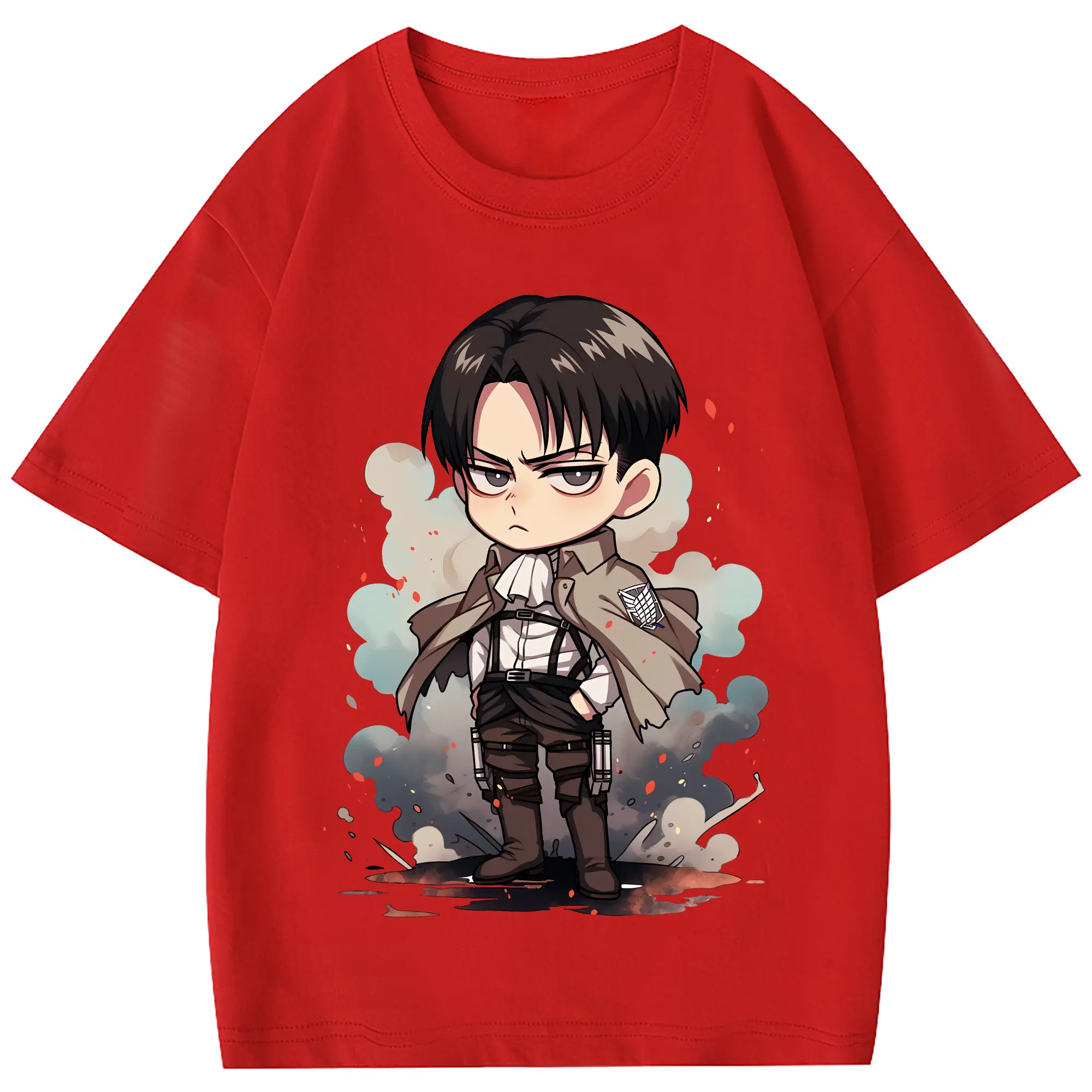 進撃の巨人 グッズ リヴァイ・アッカーマン - 綿100% 半袖Tシャツ ・ フロントプリント ・ 快適 通気性 ・ 日常使い 散歩 スポーツ用