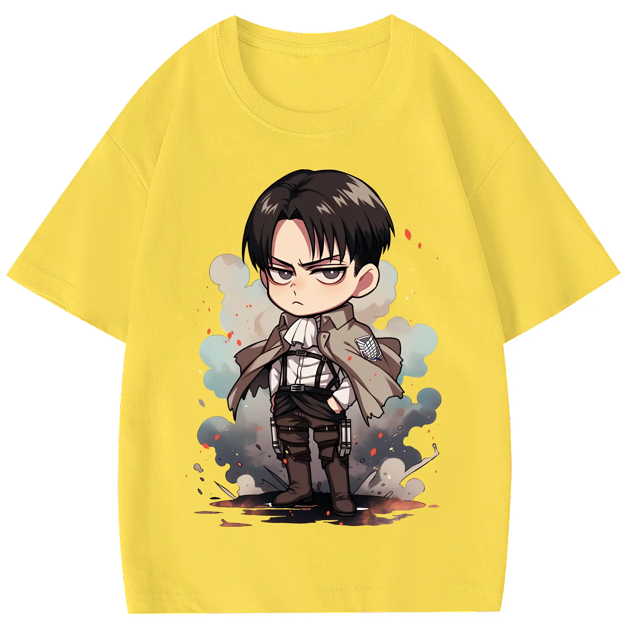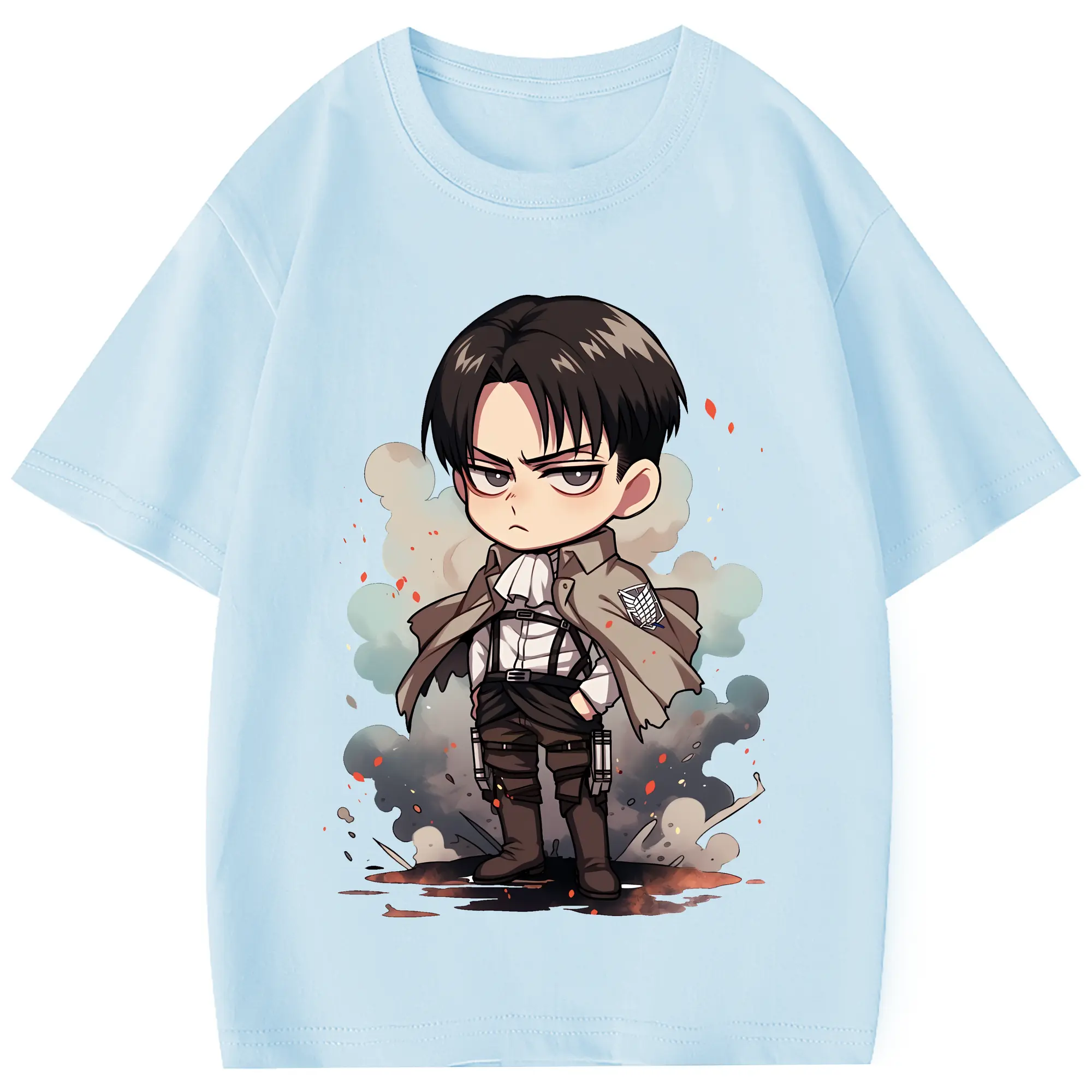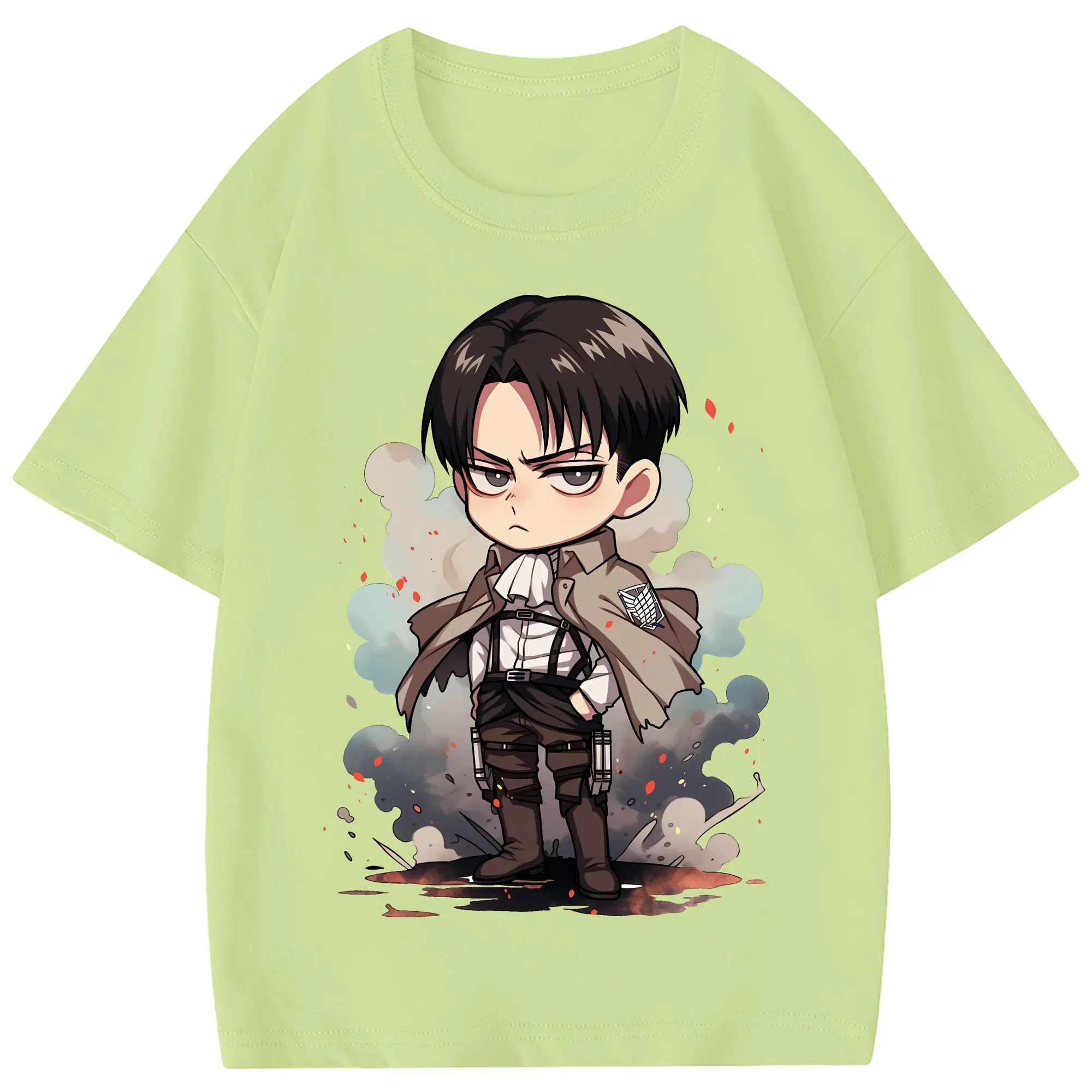 進撃の巨人 グッズ リヴァイ・アッカーマン - 綿100% 半袖Tシャツ ・ フロントプリント ・ 快適 通気性 ・ 日常使い 散歩 スポーツ用