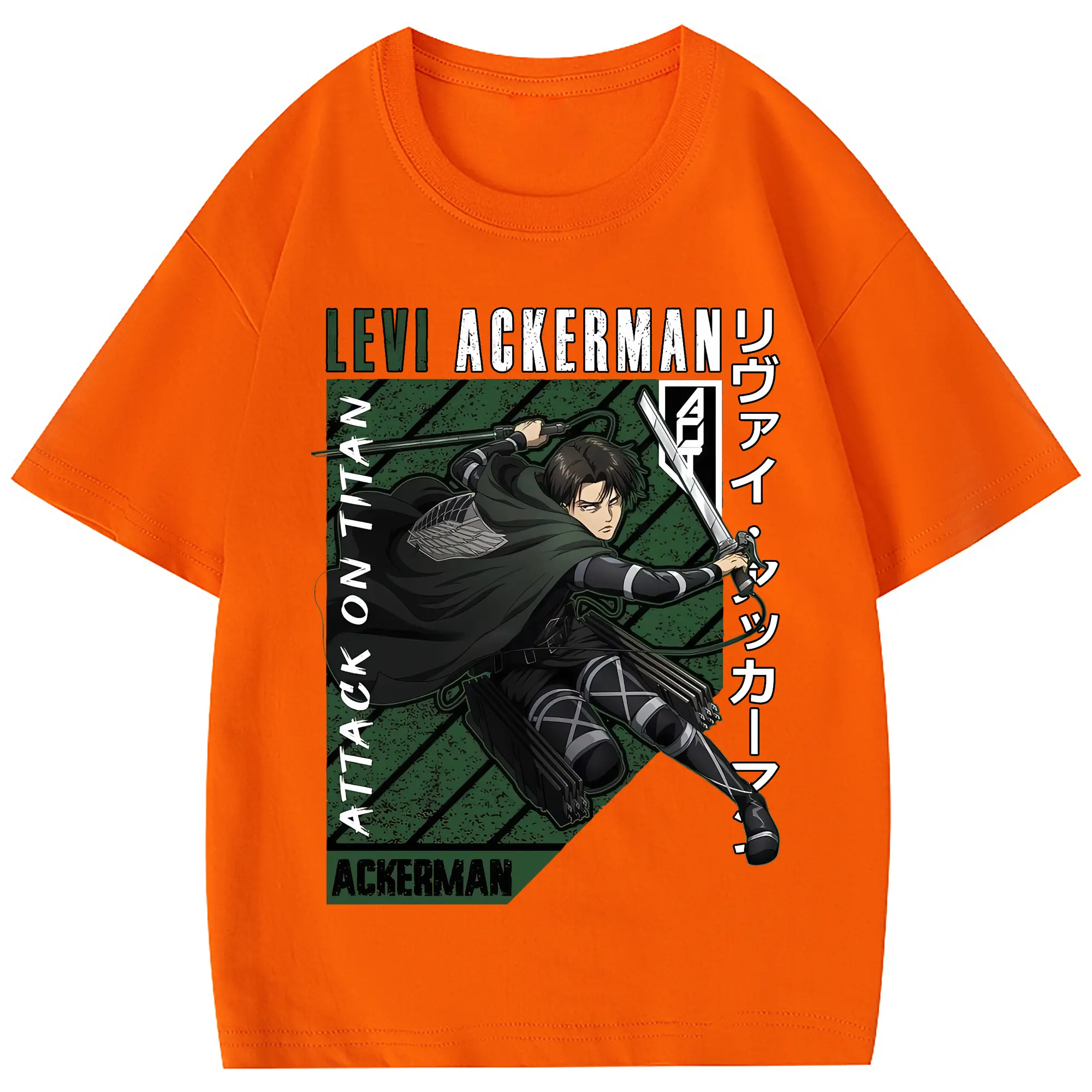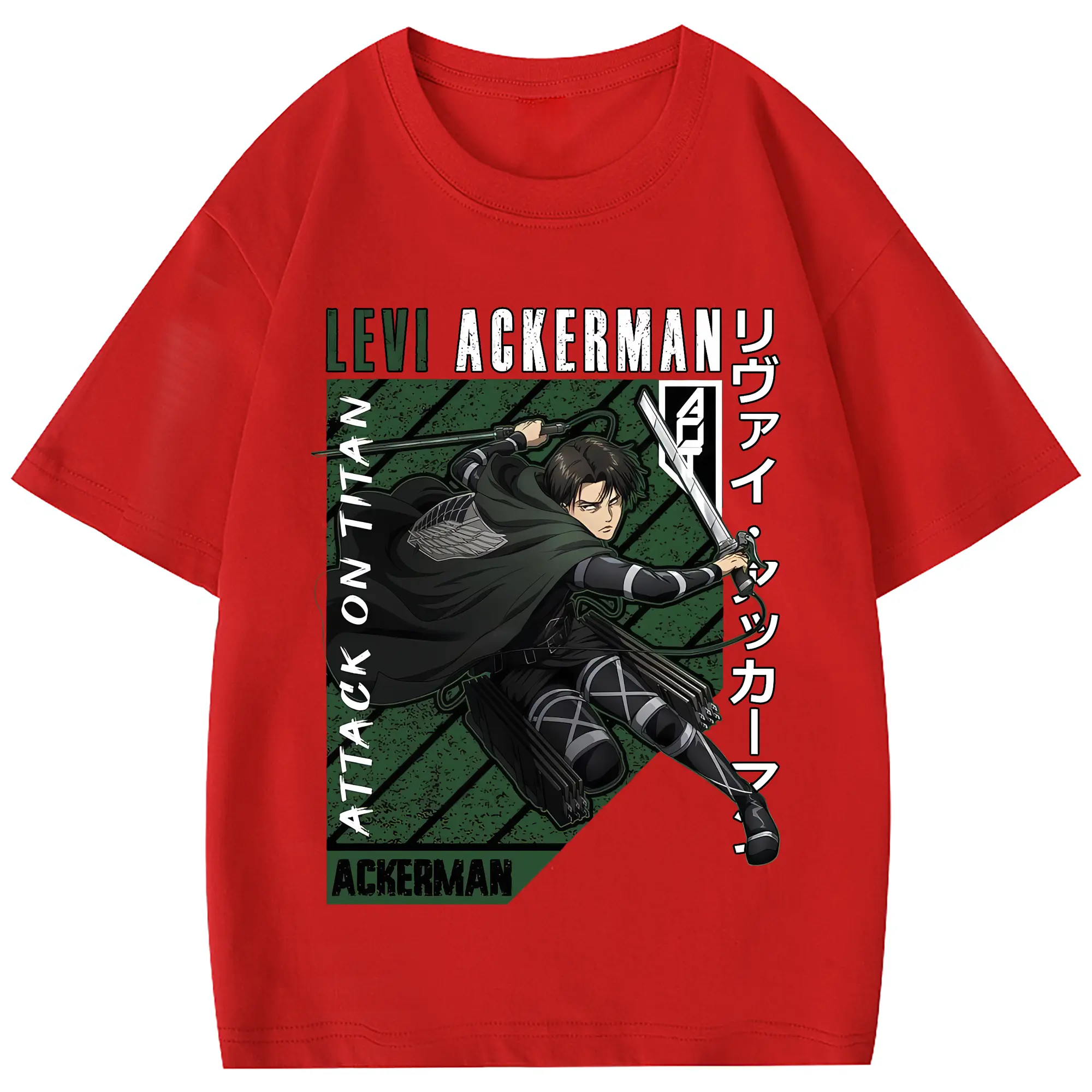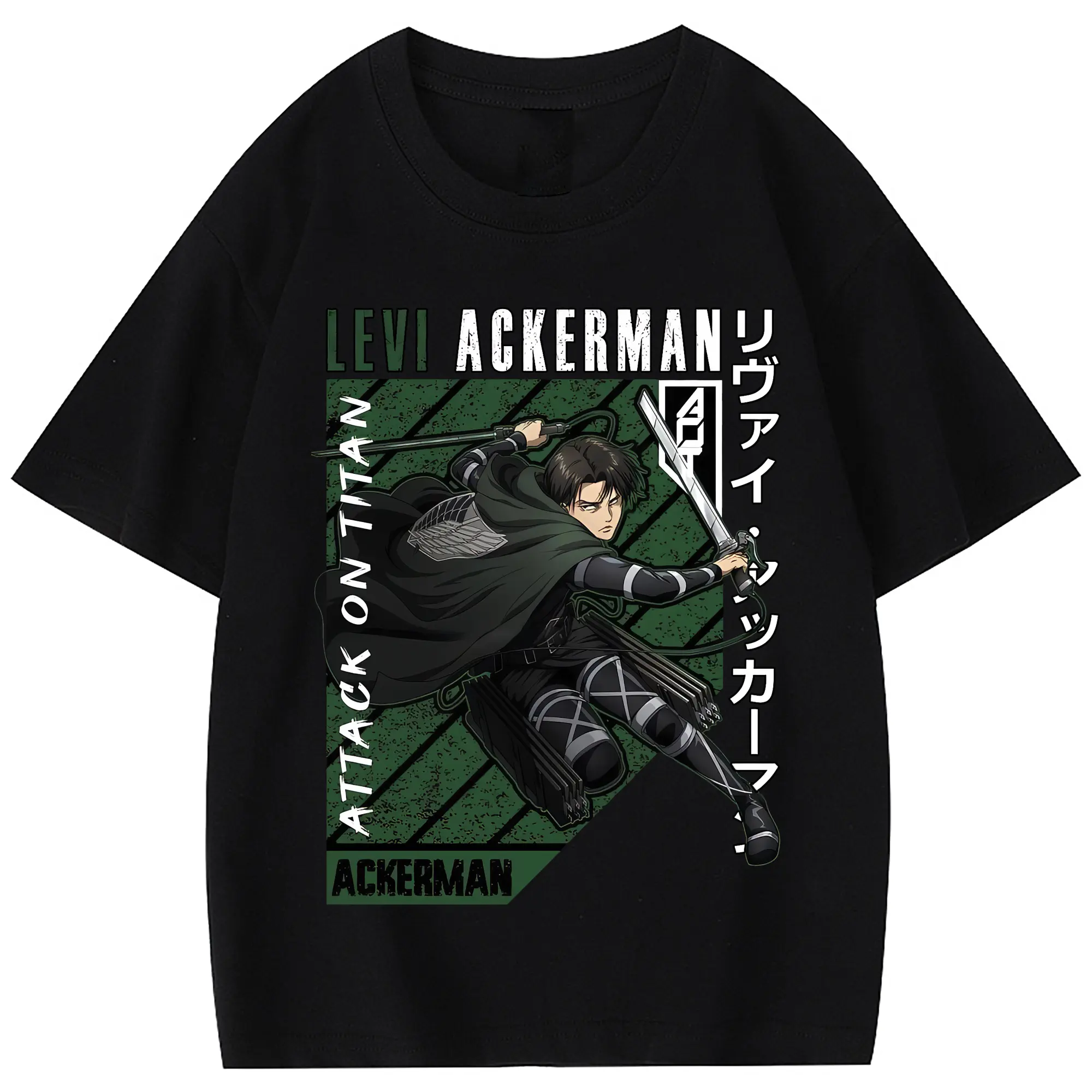 進撃の巨人 グッズ リヴァイ・アッカーマン - 綿100% 半袖Tシャツ ・ フロントプリント ・ 快適 通気性 ・ 日常使い 散歩 スポーツ用