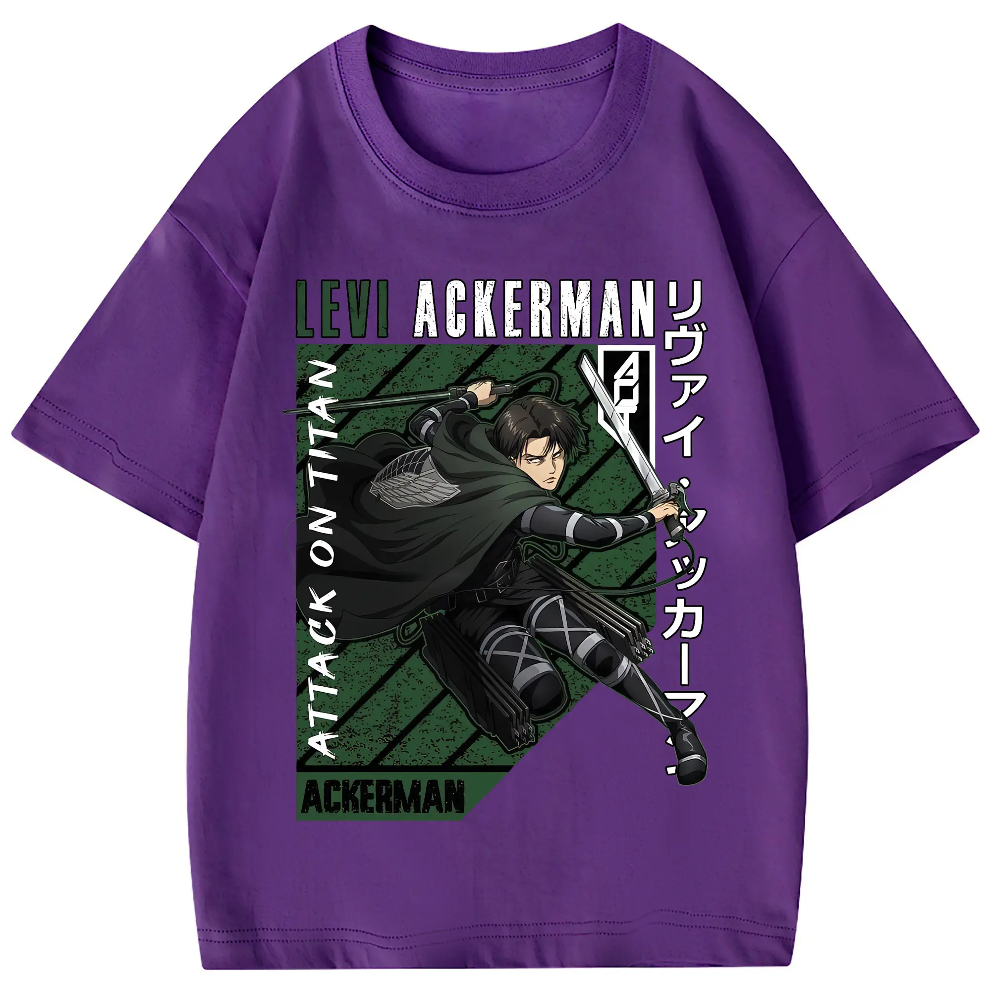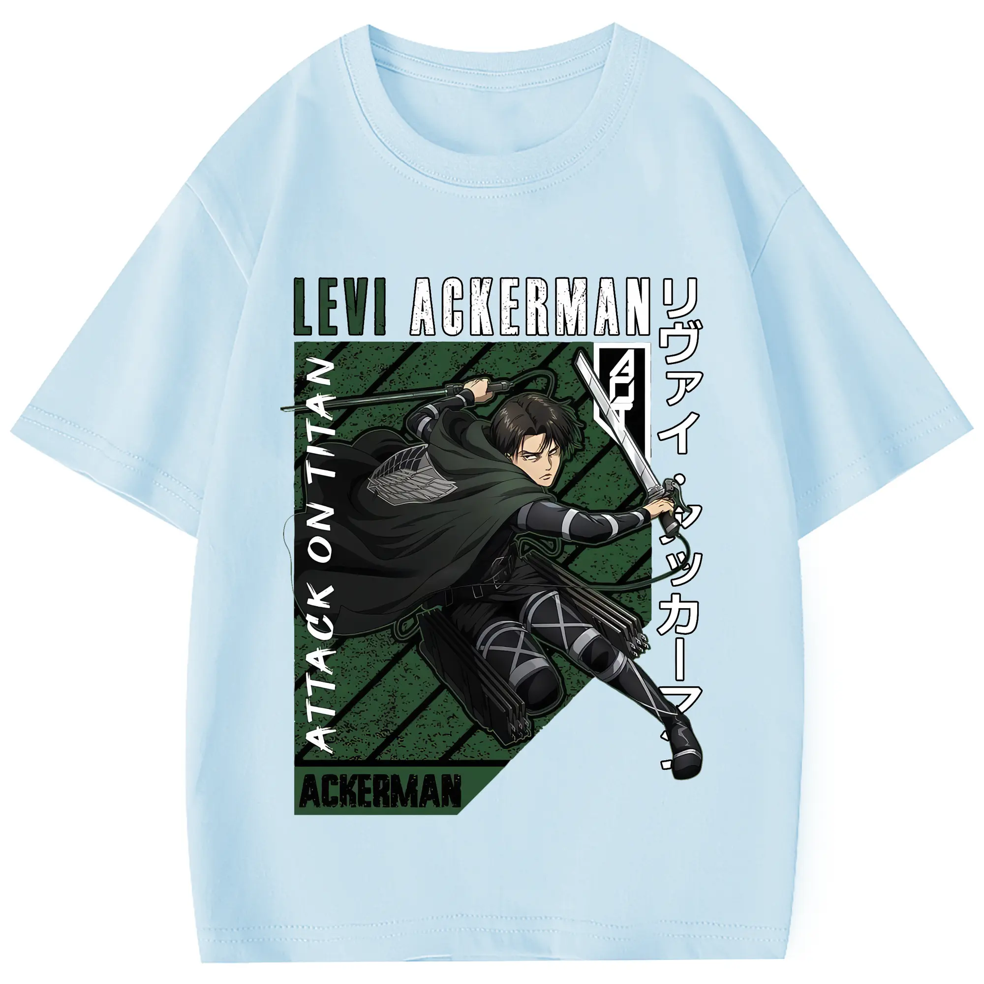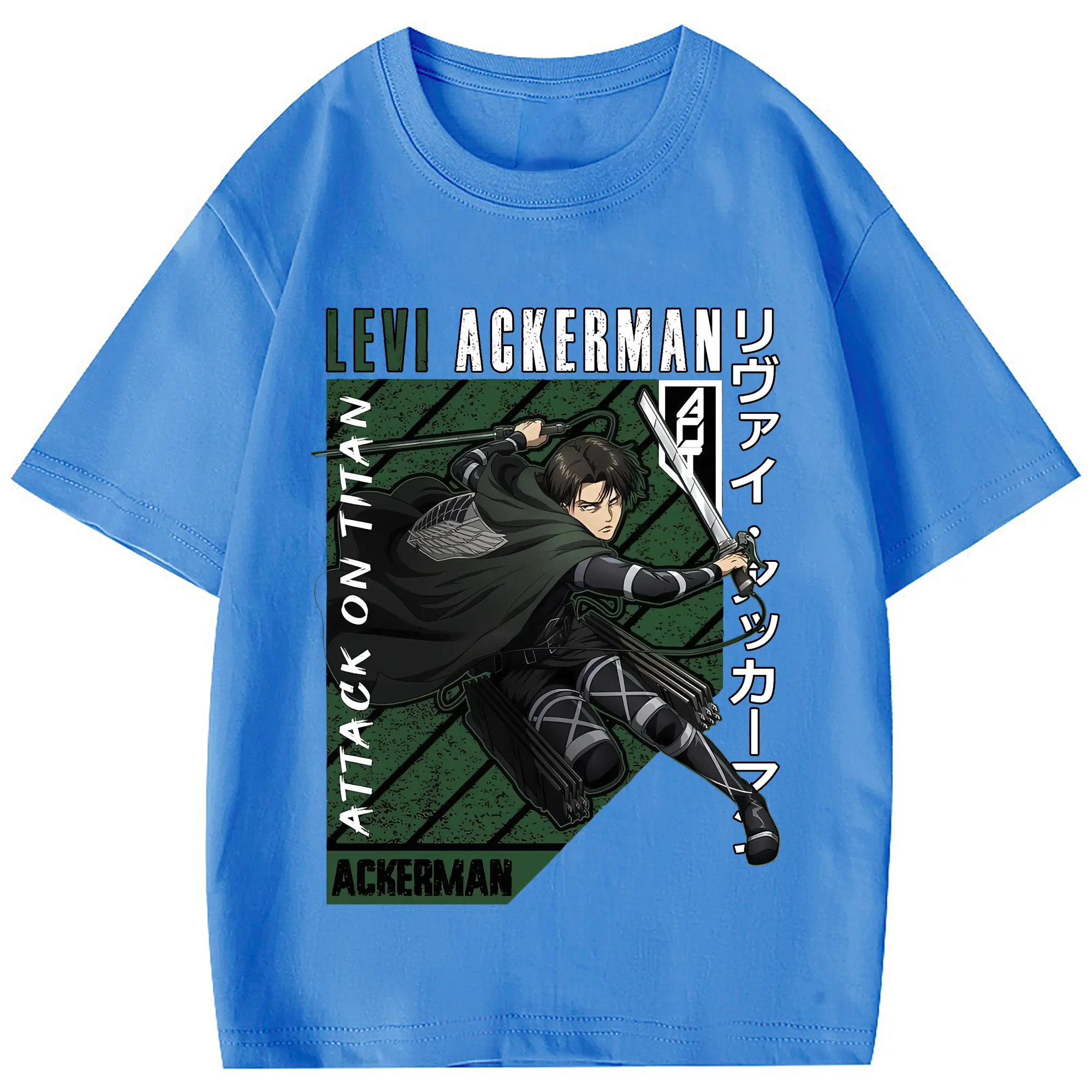 進撃の巨人 グッズ リヴァイ・アッカーマン - 綿100% 半袖Tシャツ ・ フロントプリント ・ 快適 通気性 ・ 日常使い 散歩 スポーツ用