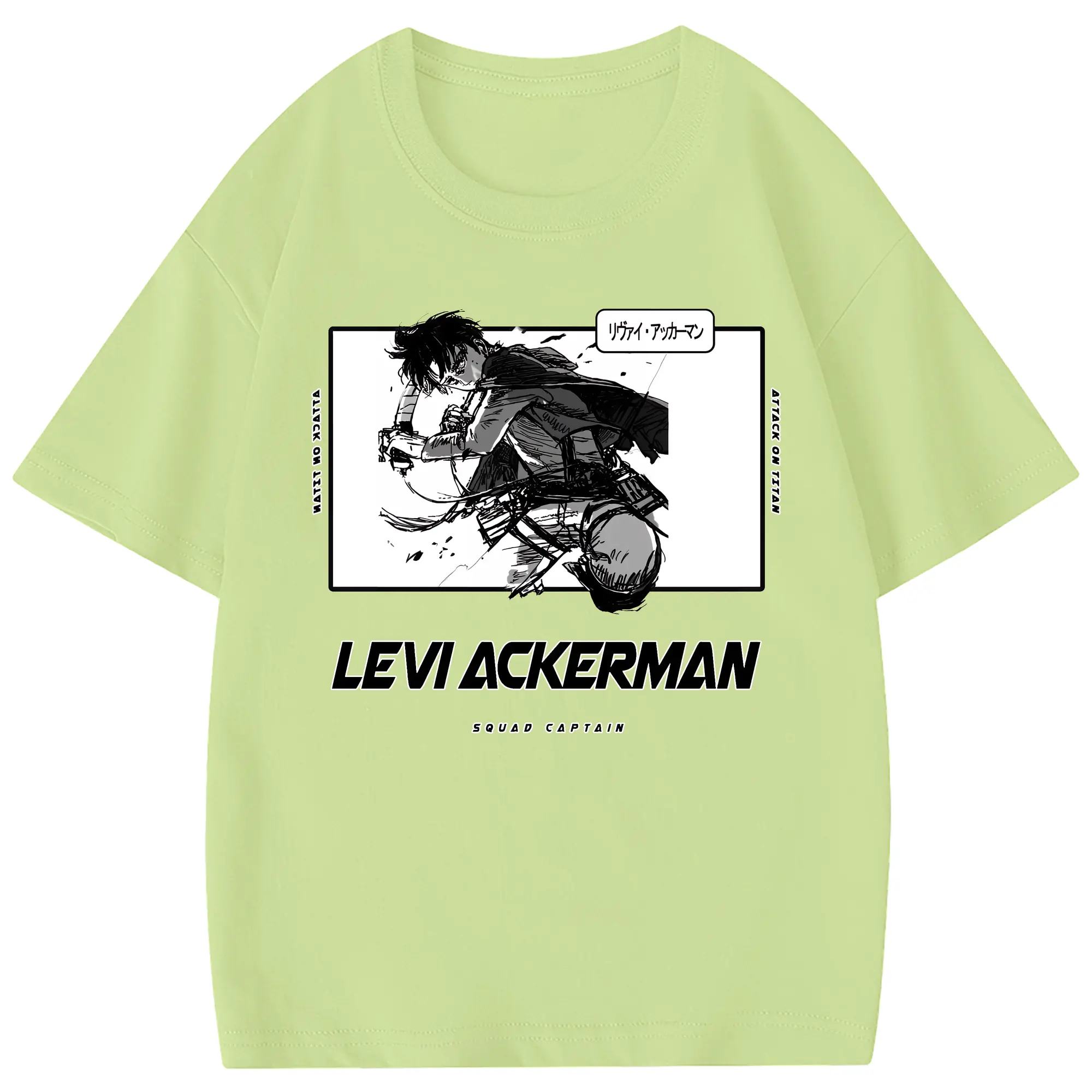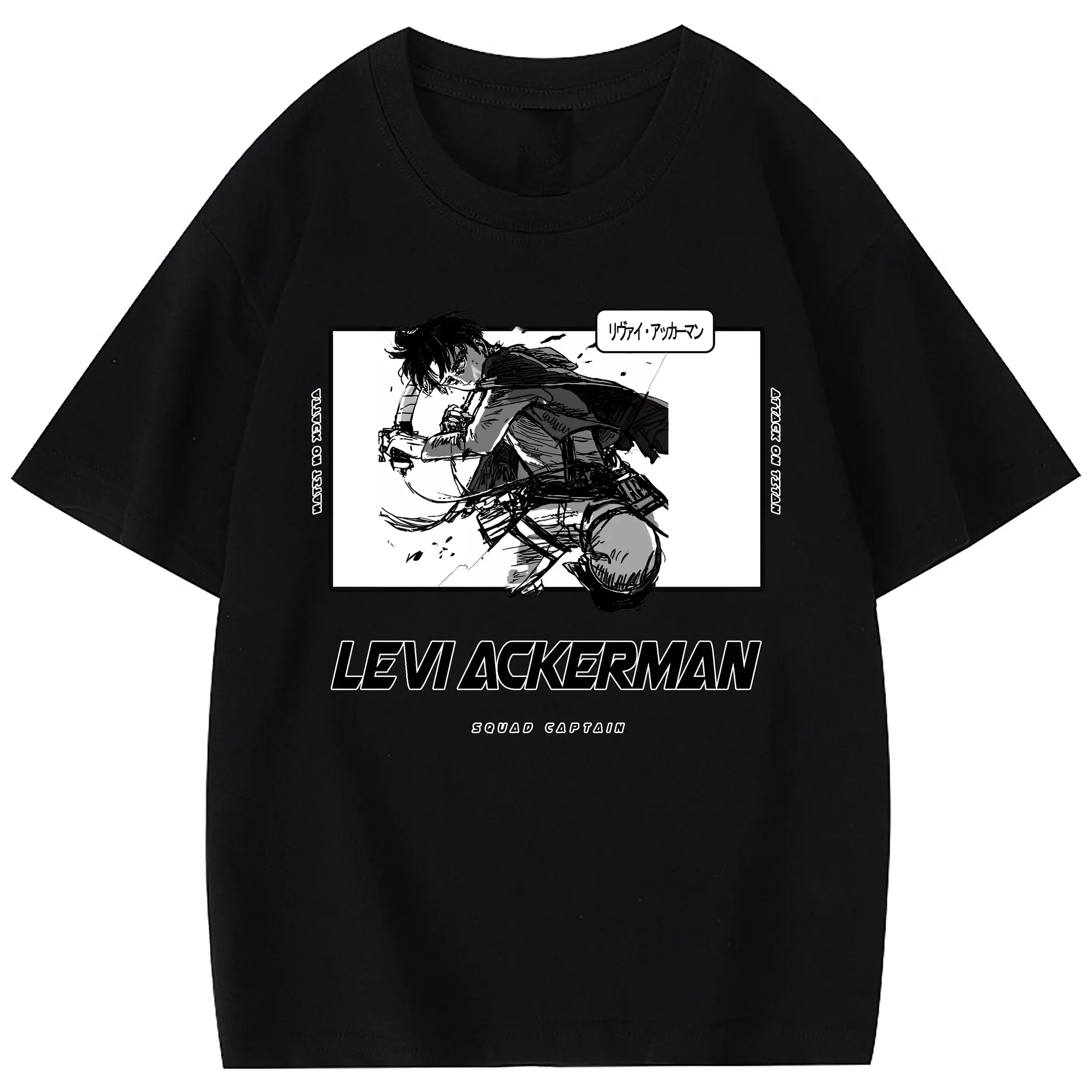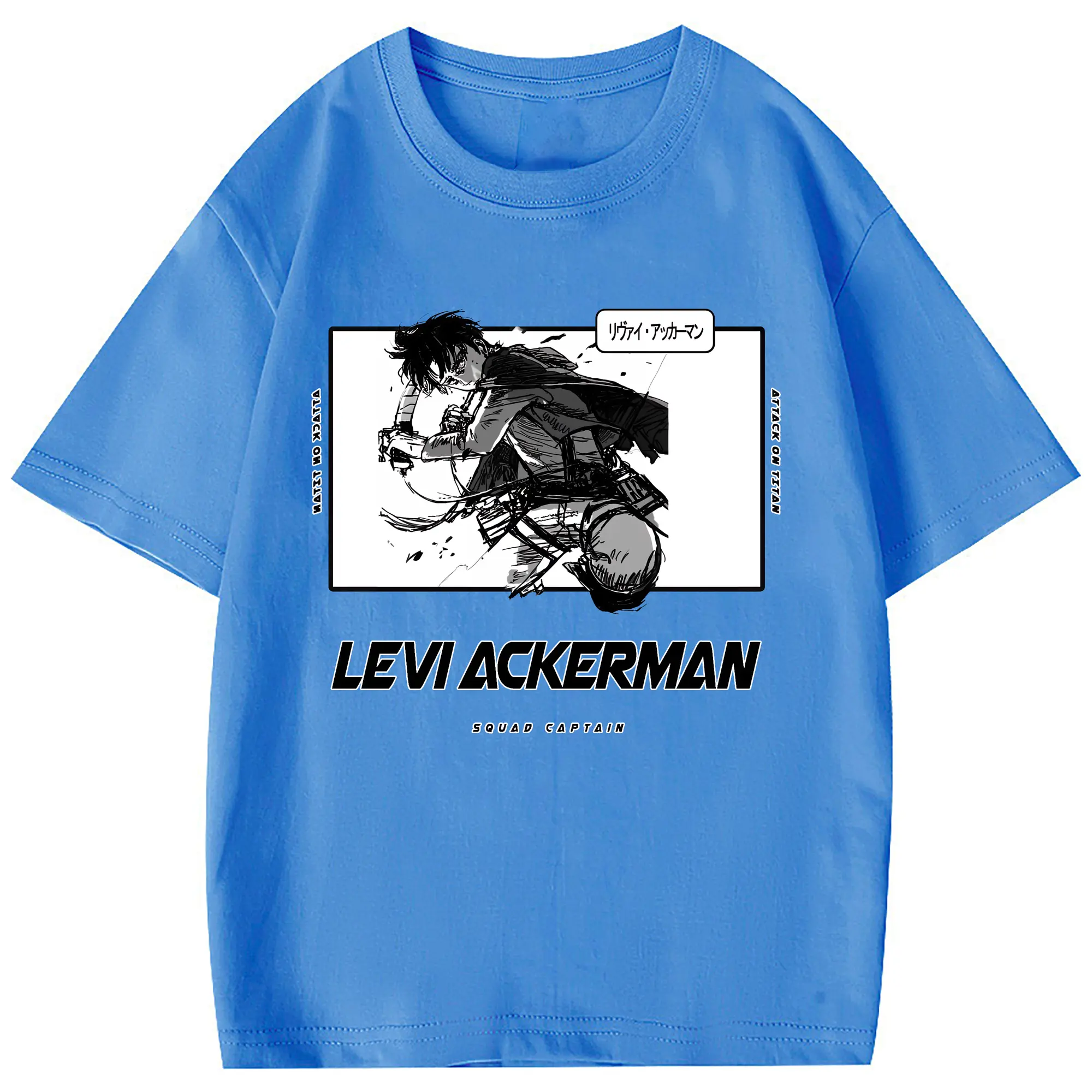 進撃の巨人 グッズ リヴァイ・アッカーマン - 綿100% 半袖Tシャツ ・ フロントプリント ・ 快適 通気性 ・ 日常使い 散歩 スポーツ用