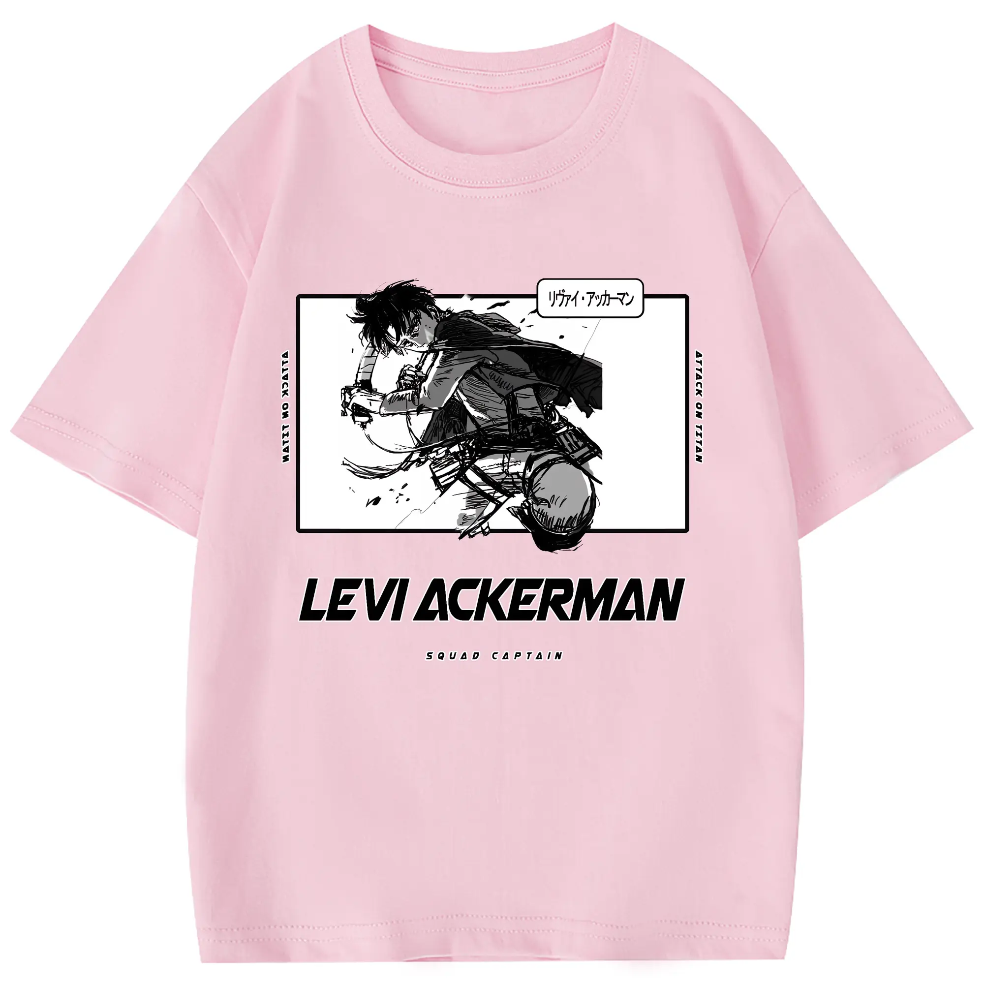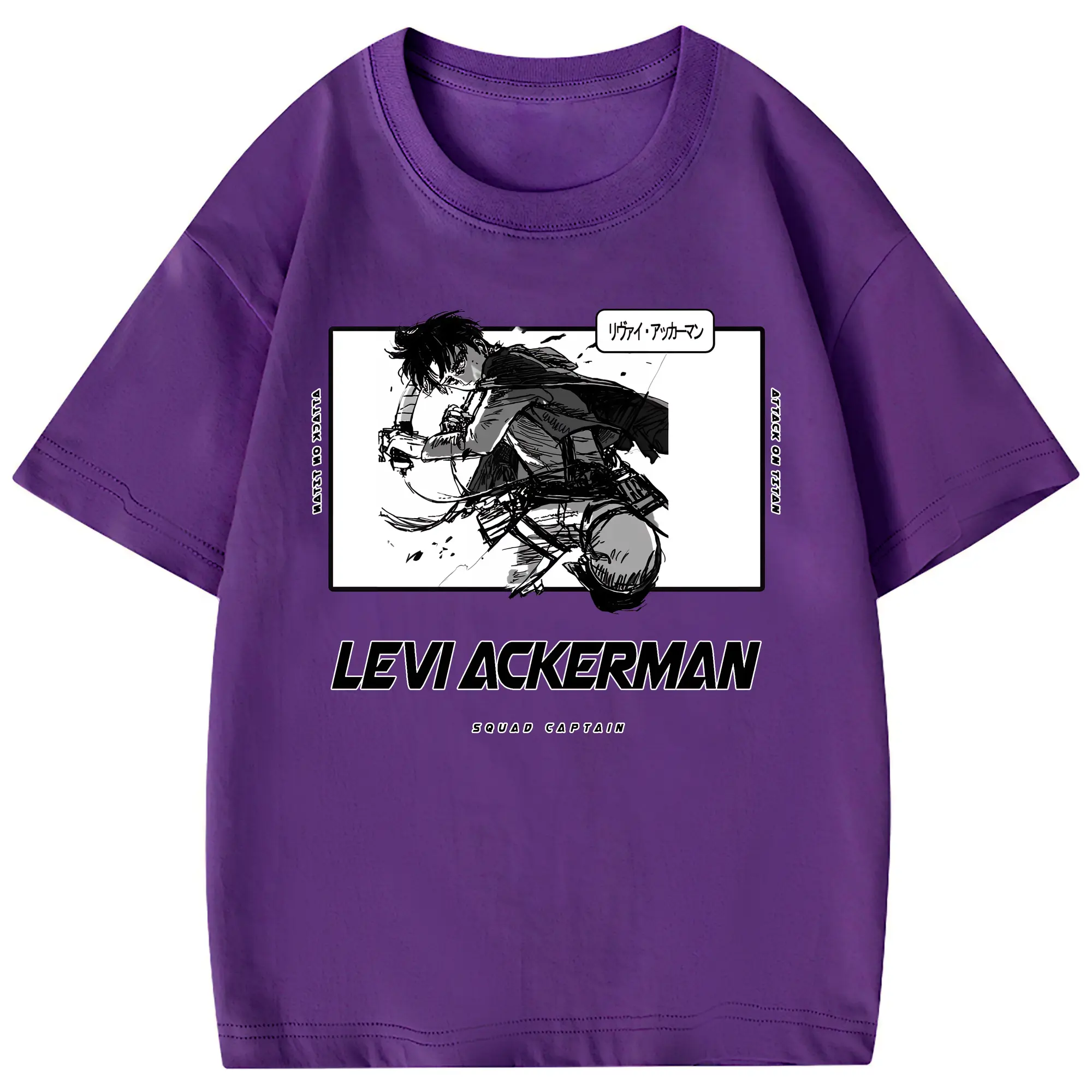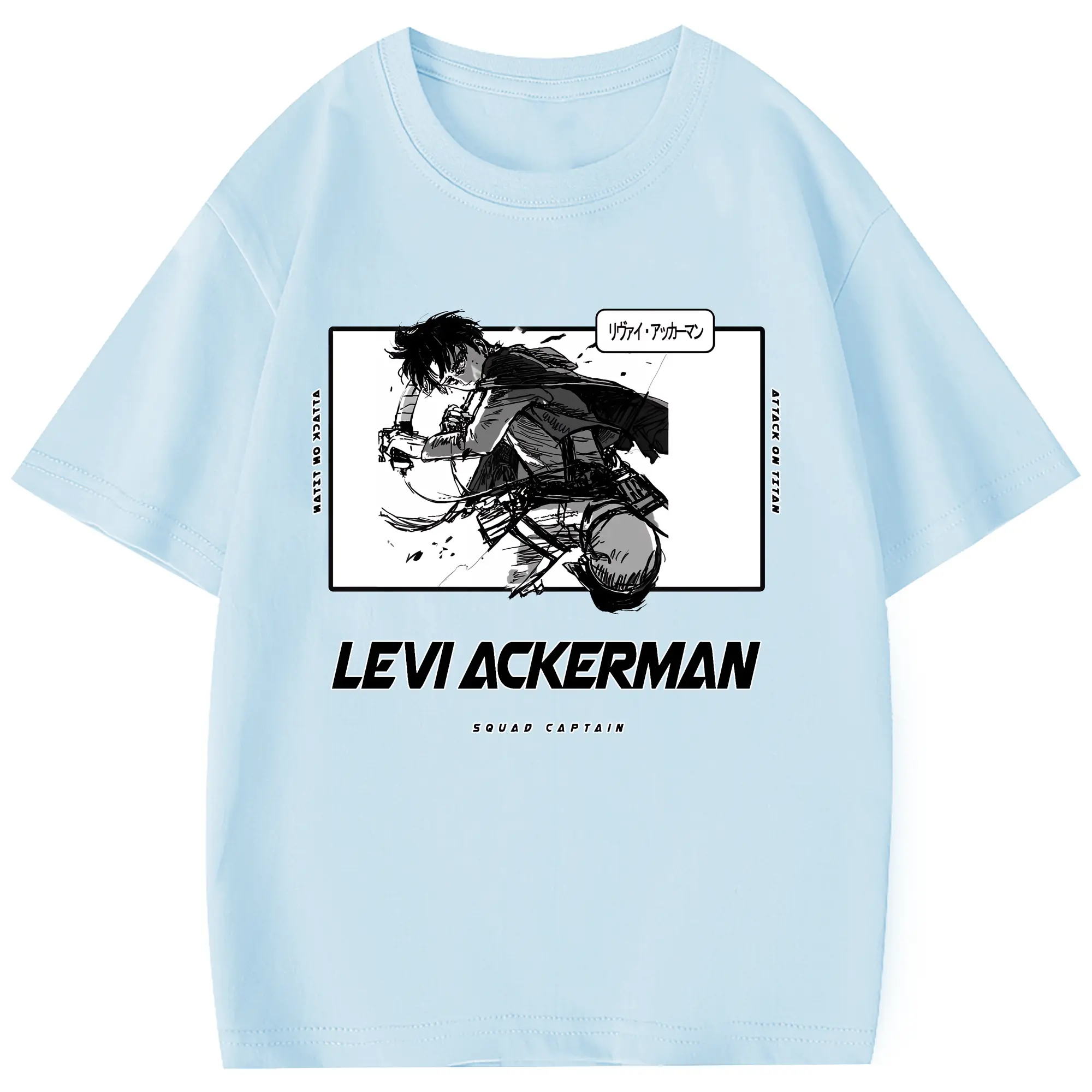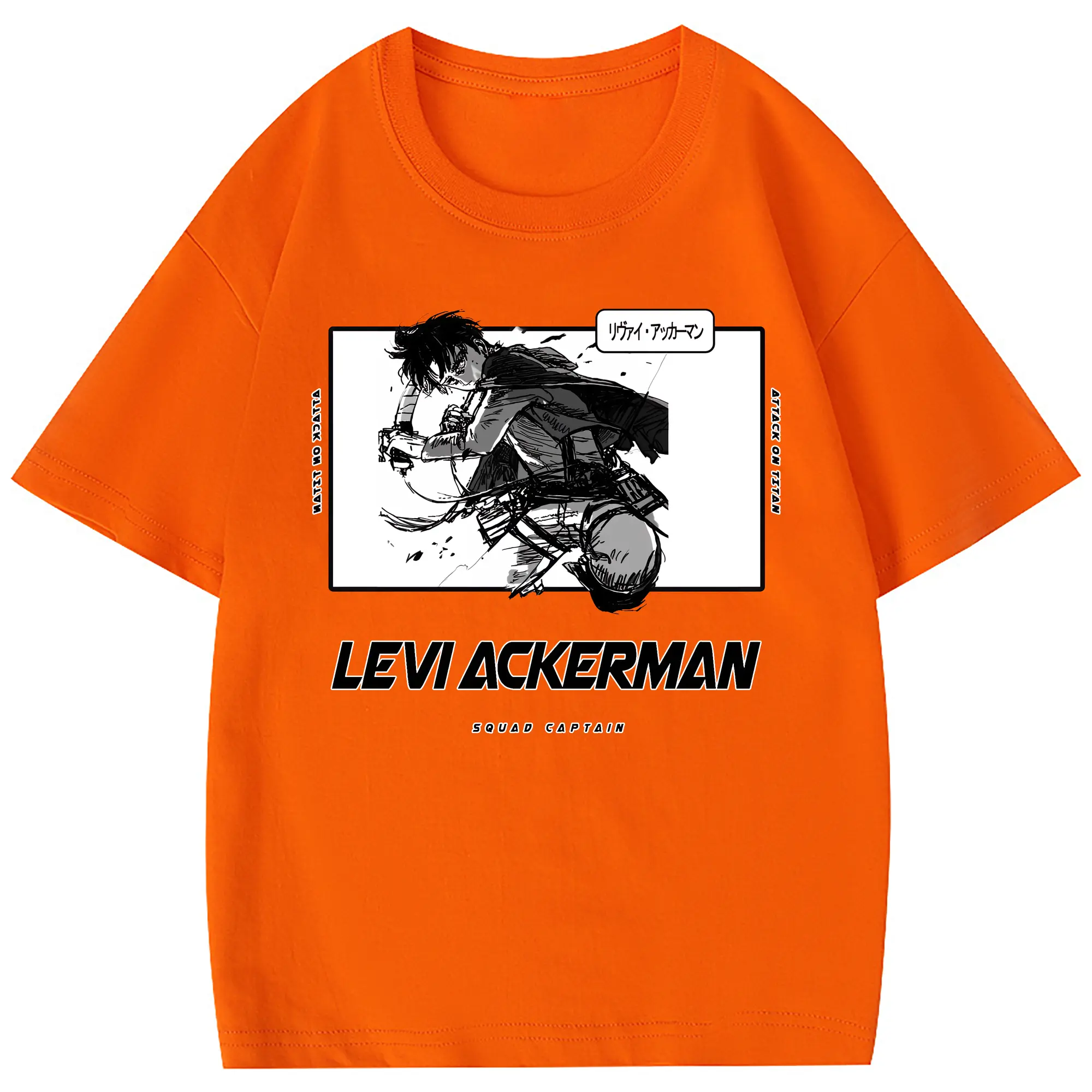 進撃の巨人 グッズ リヴァイ・アッカーマン - 綿100% 半袖Tシャツ ・ フロントプリント ・ 快適 通気性 ・ 日常使い 散歩 スポーツ用