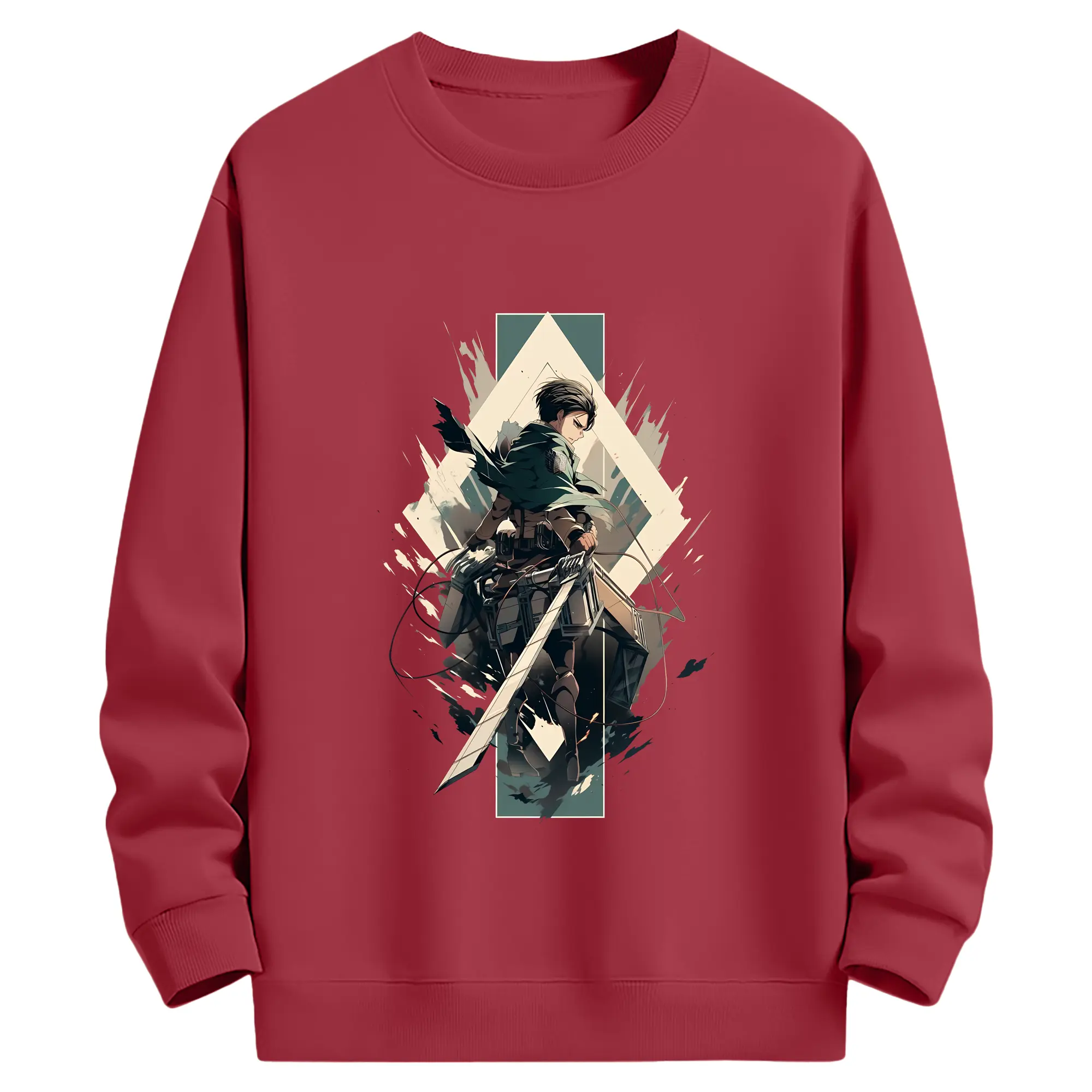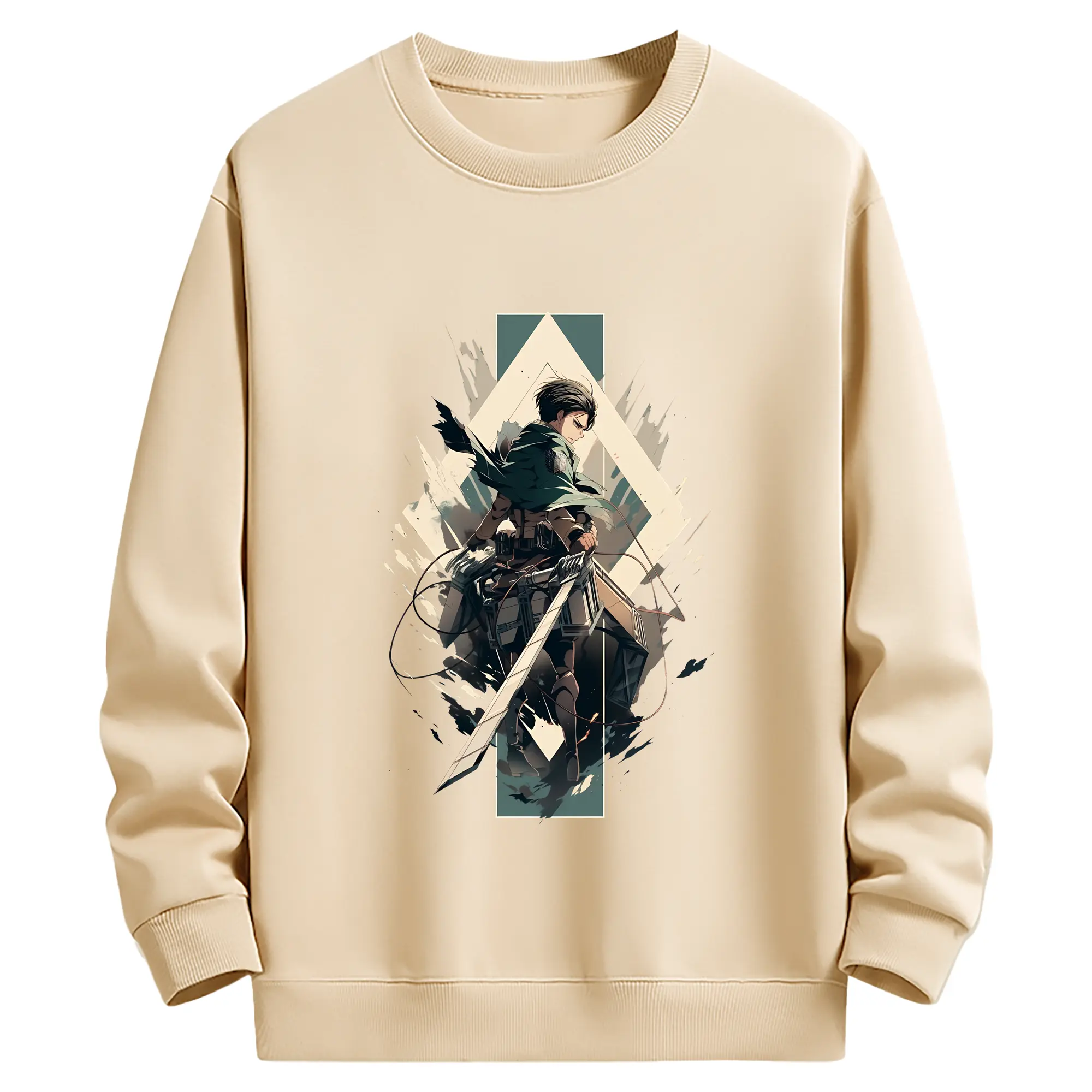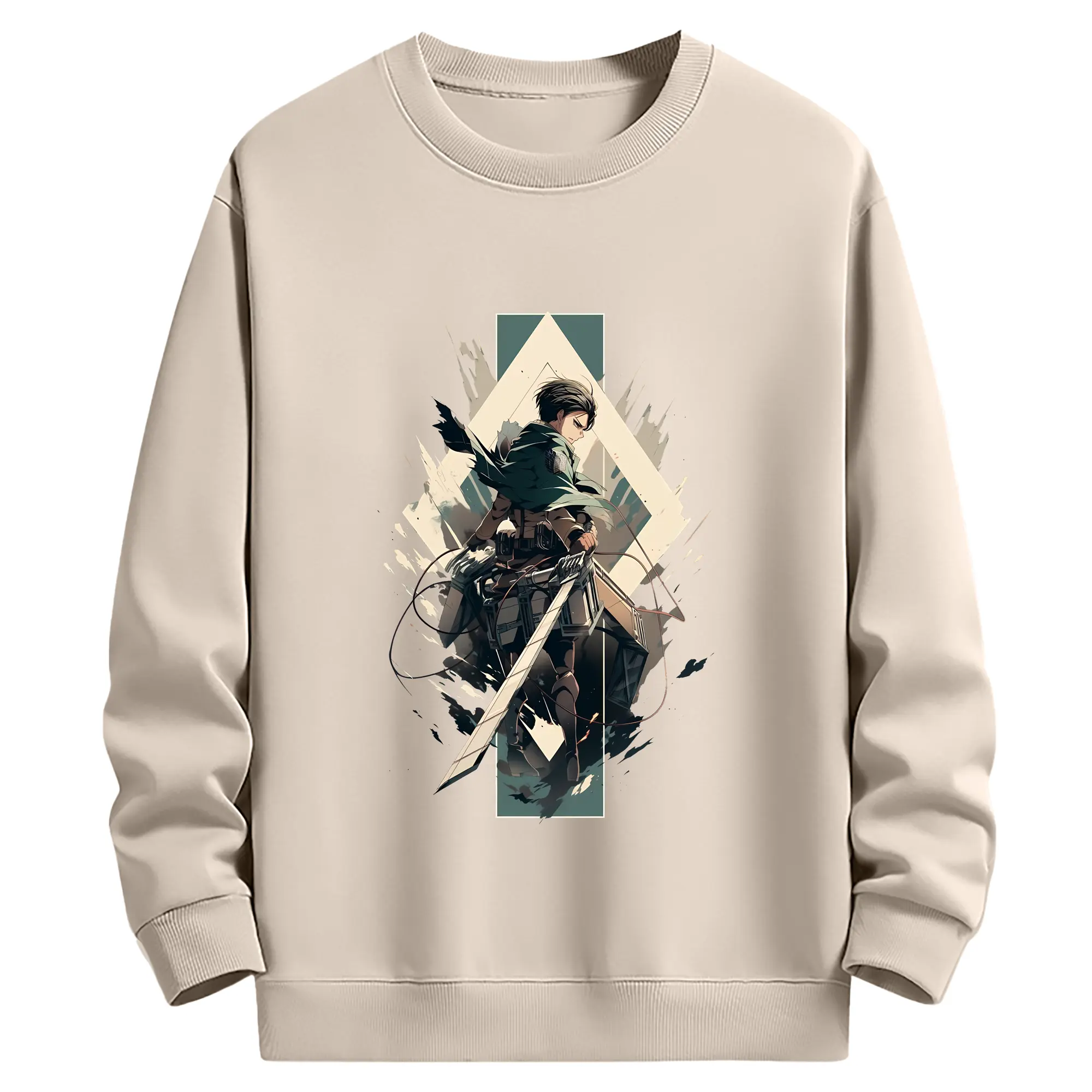 進撃の巨人 グッズ リヴァイ・アッカーマン - 薄手 クルーネック スウェット 裏毛260g · ポリエステル 春秋向け カジュアル 男女兼用 · トレーナー デイリー スポーツ 散歩に最適