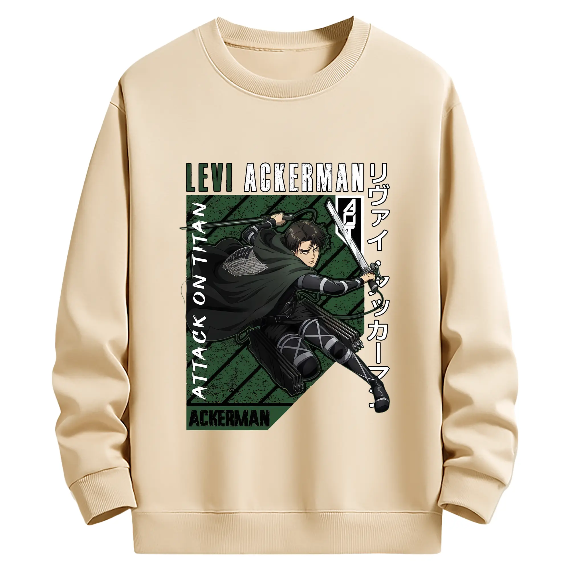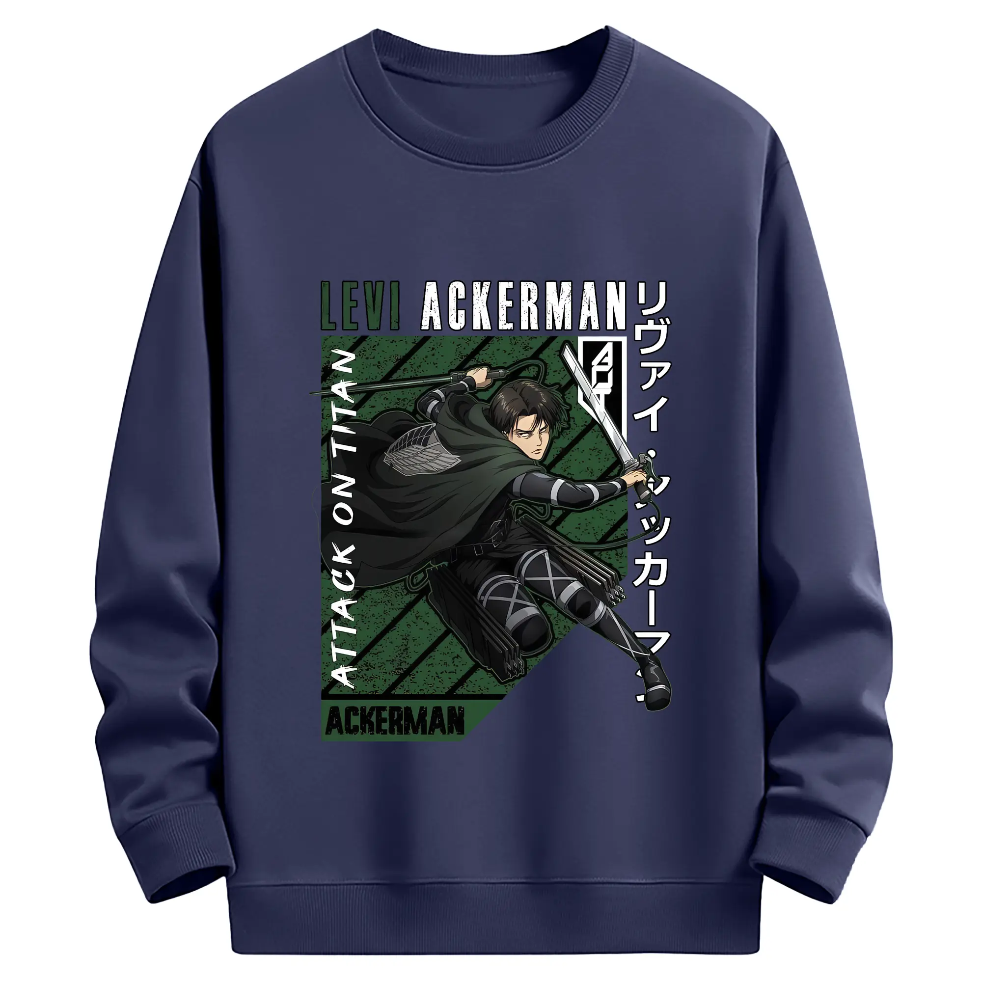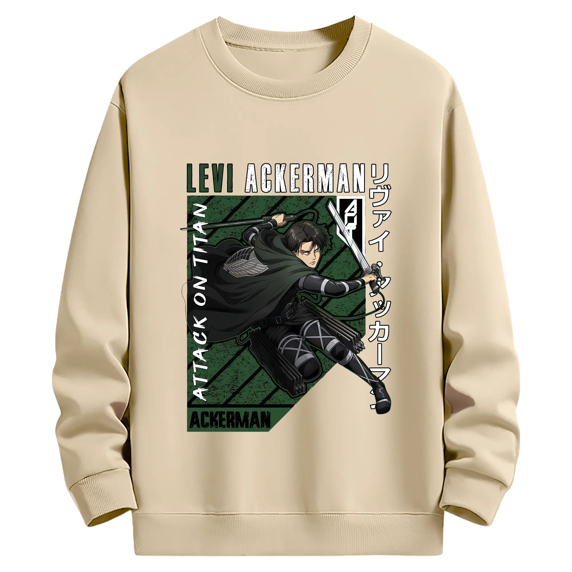 進撃の巨人 グッズ リヴァイ・アッカーマン - 薄手 クルーネック スウェット 裏毛260g · ポリエステル 春秋向け カジュアル 男女兼用 · トレーナー デイリー スポーツ 散歩に最適