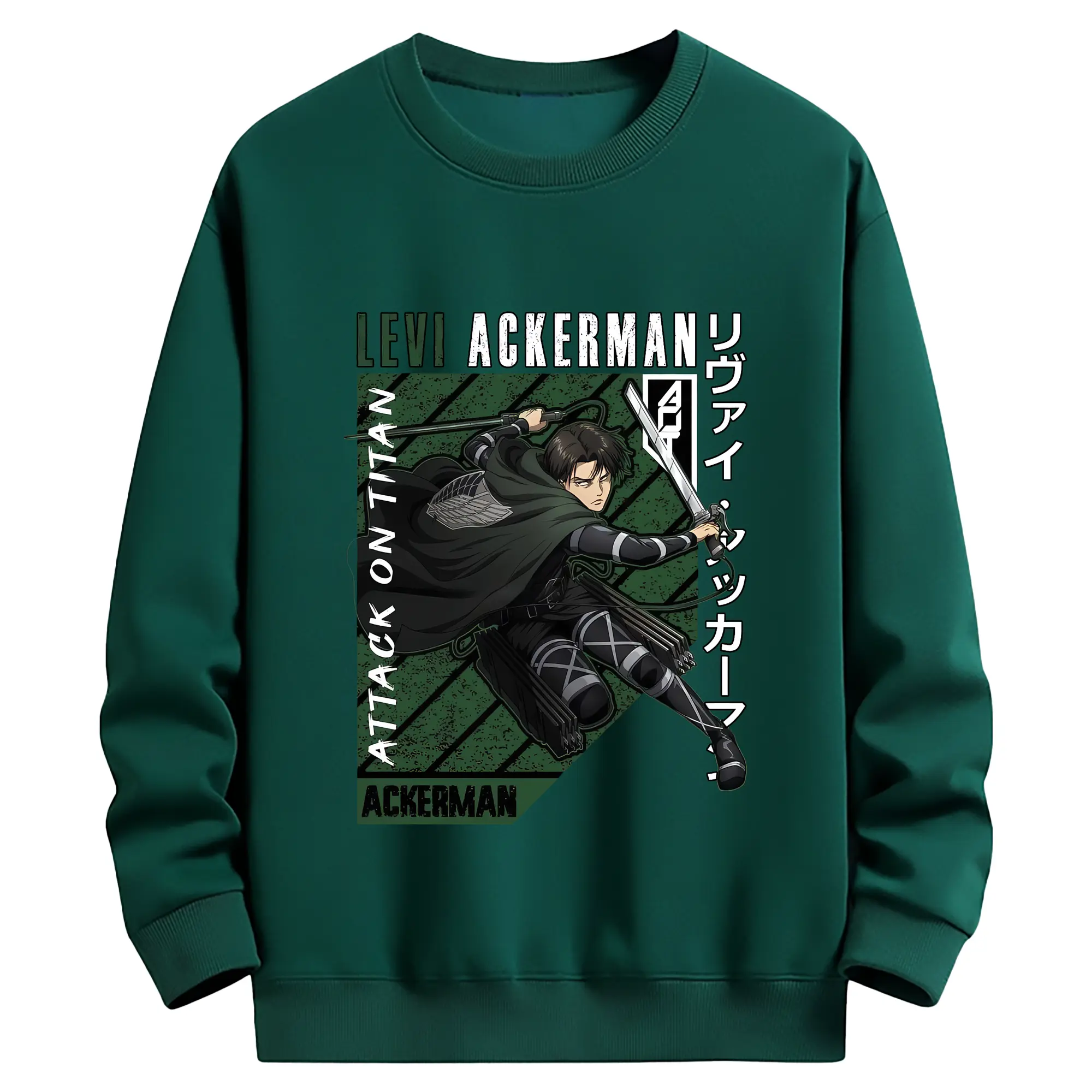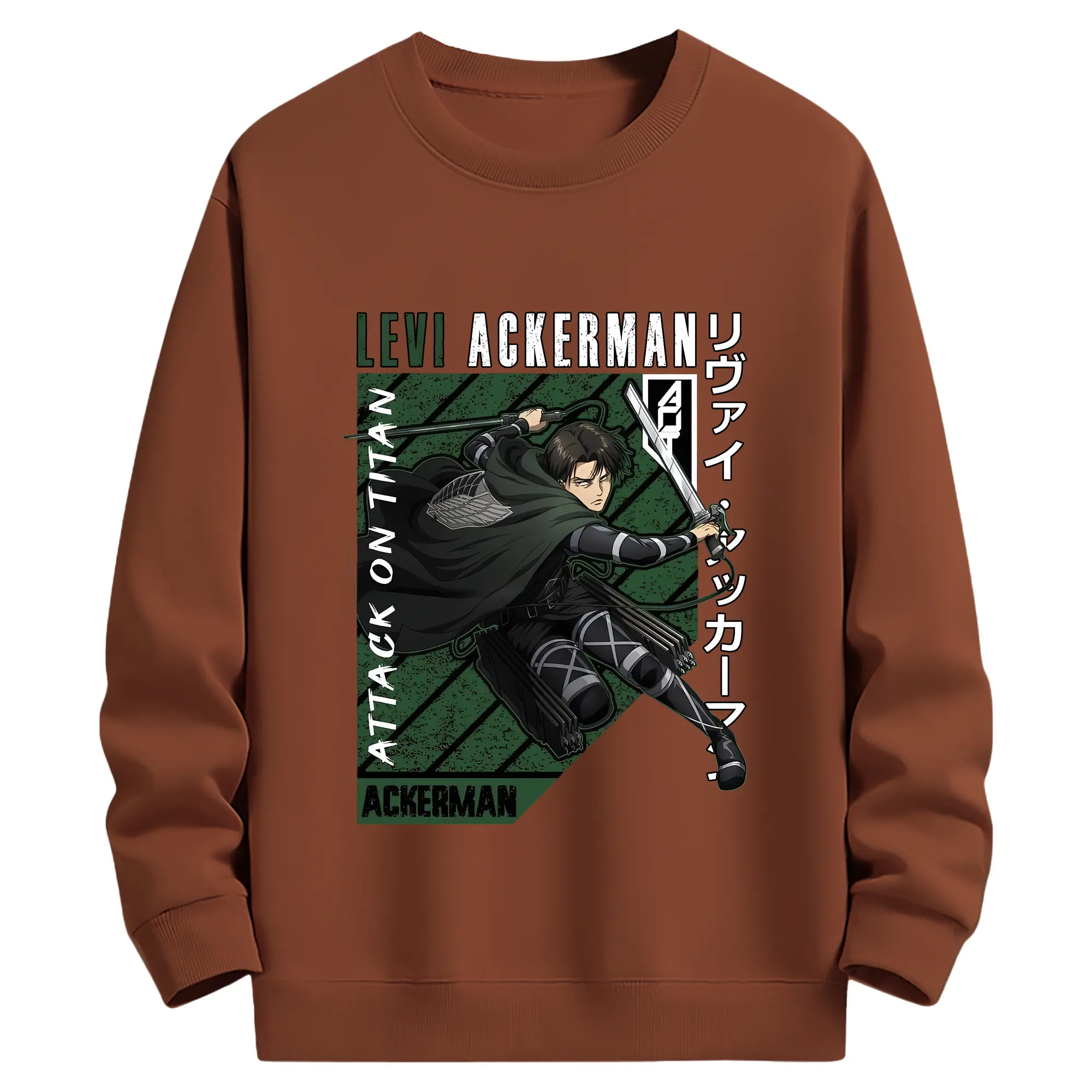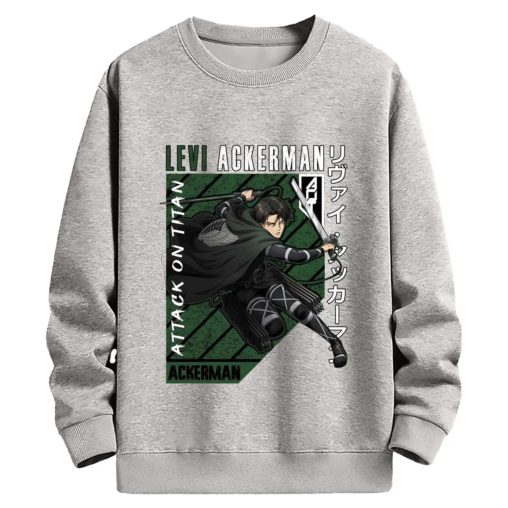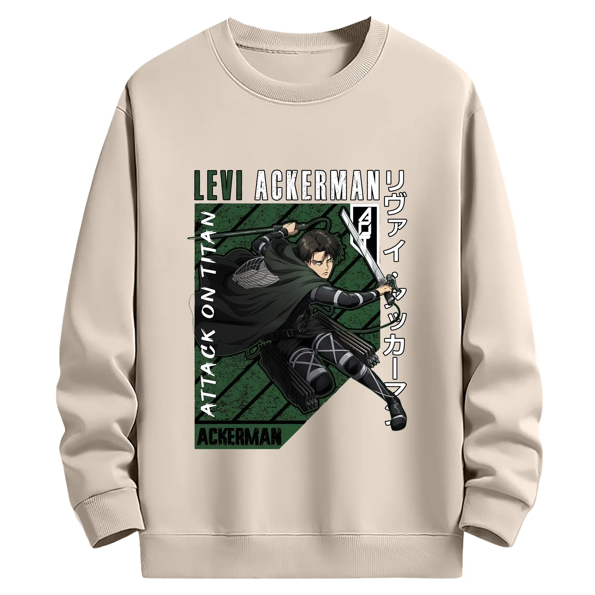 進撃の巨人 グッズ リヴァイ・アッカーマン - 薄手 クルーネック スウェット 裏毛260g · ポリエステル 春秋向け カジュアル 男女兼用 · トレーナー デイリー スポーツ 散歩に最適