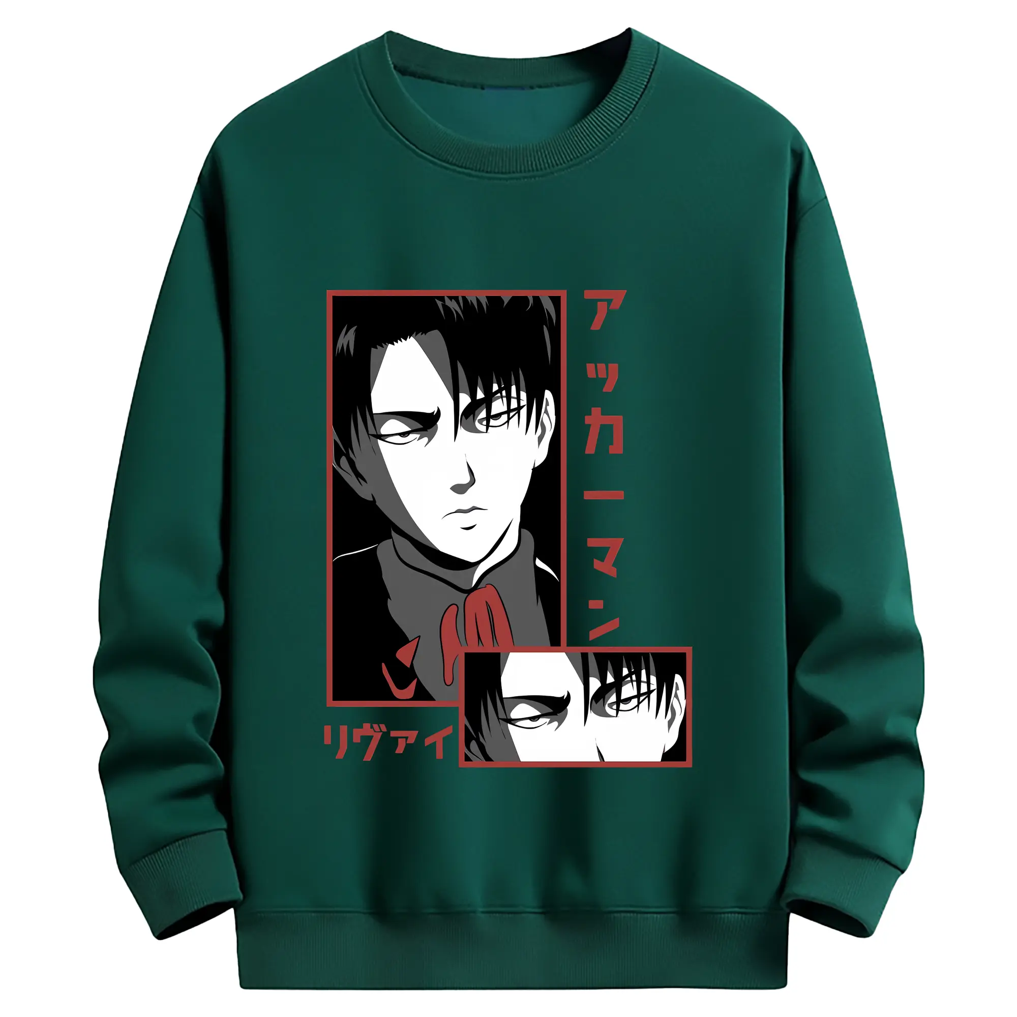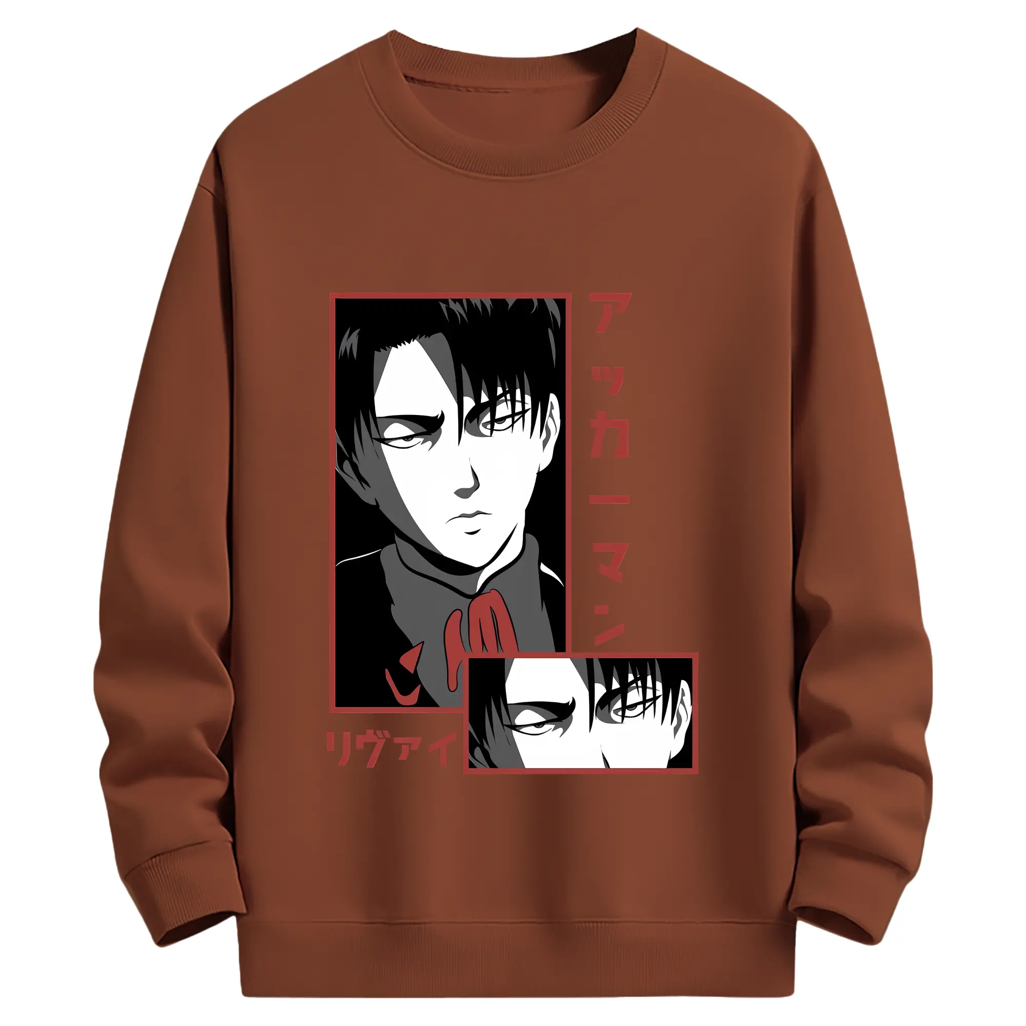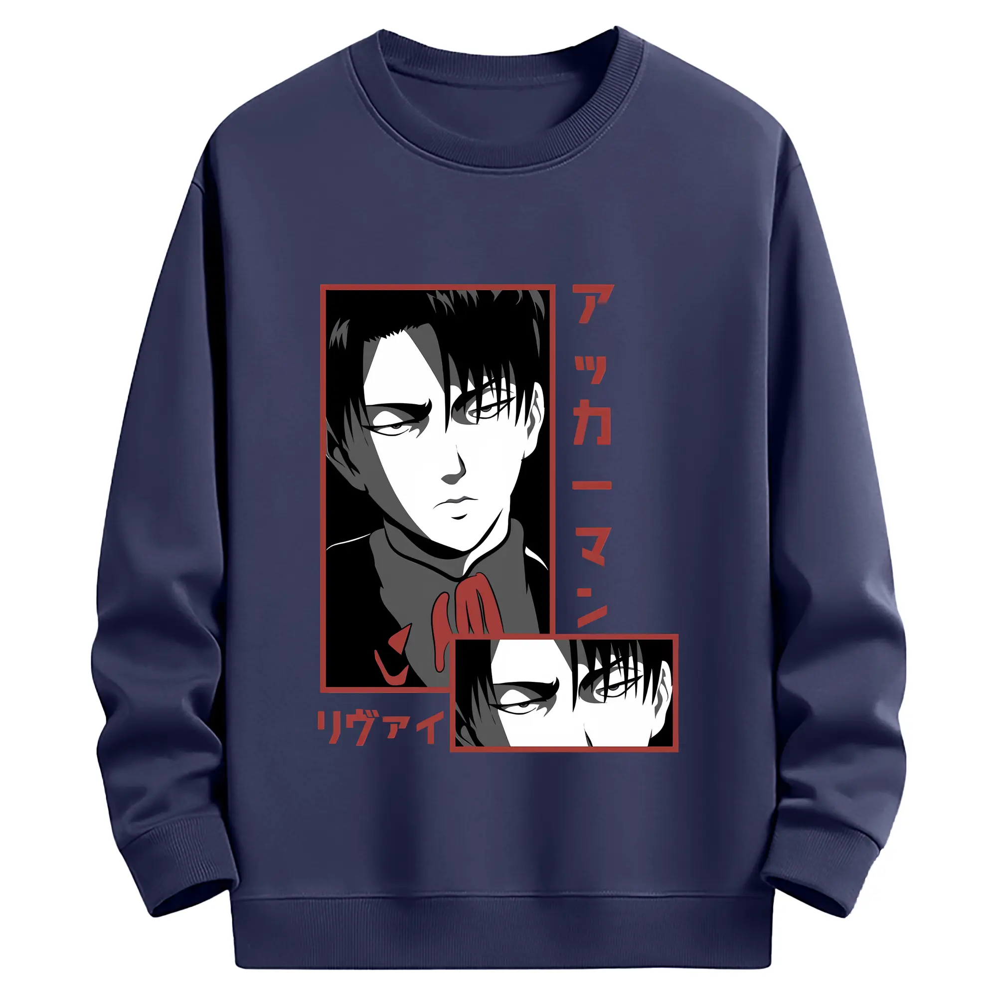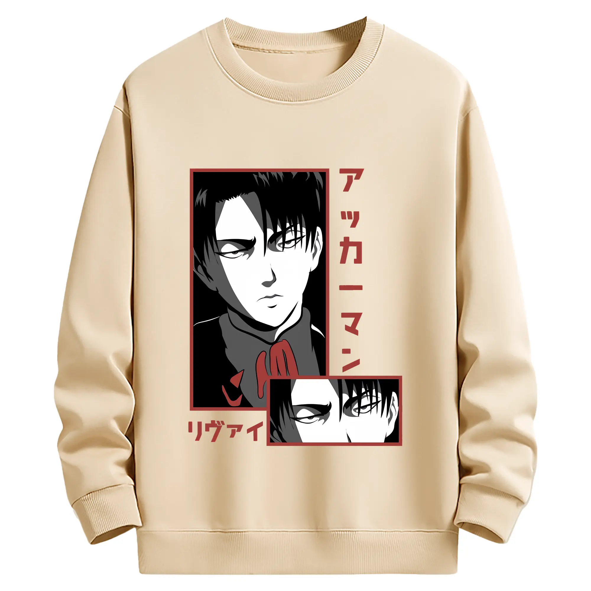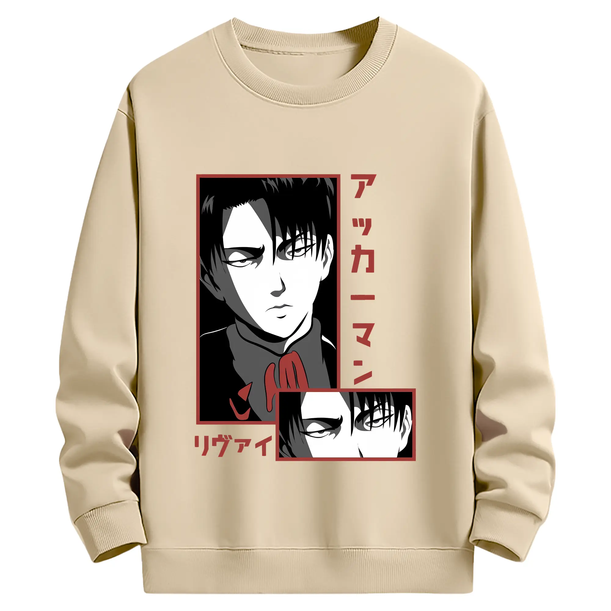 進撃の巨人 グッズ リヴァイ・アッカーマン - 薄手 クルーネック スウェット 裏毛260g · ポリエステル 春秋向け カジュアル 男女兼用 · トレーナー デイリー スポーツ 散歩に最適
