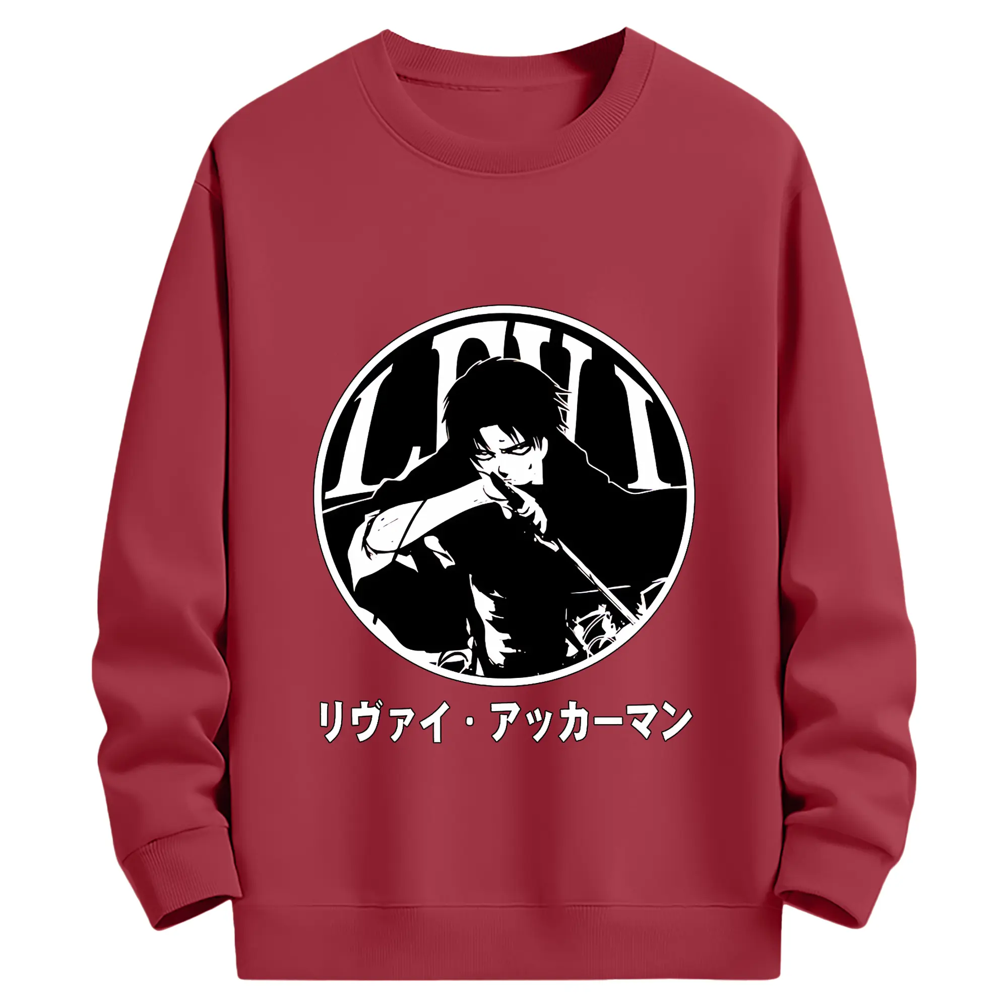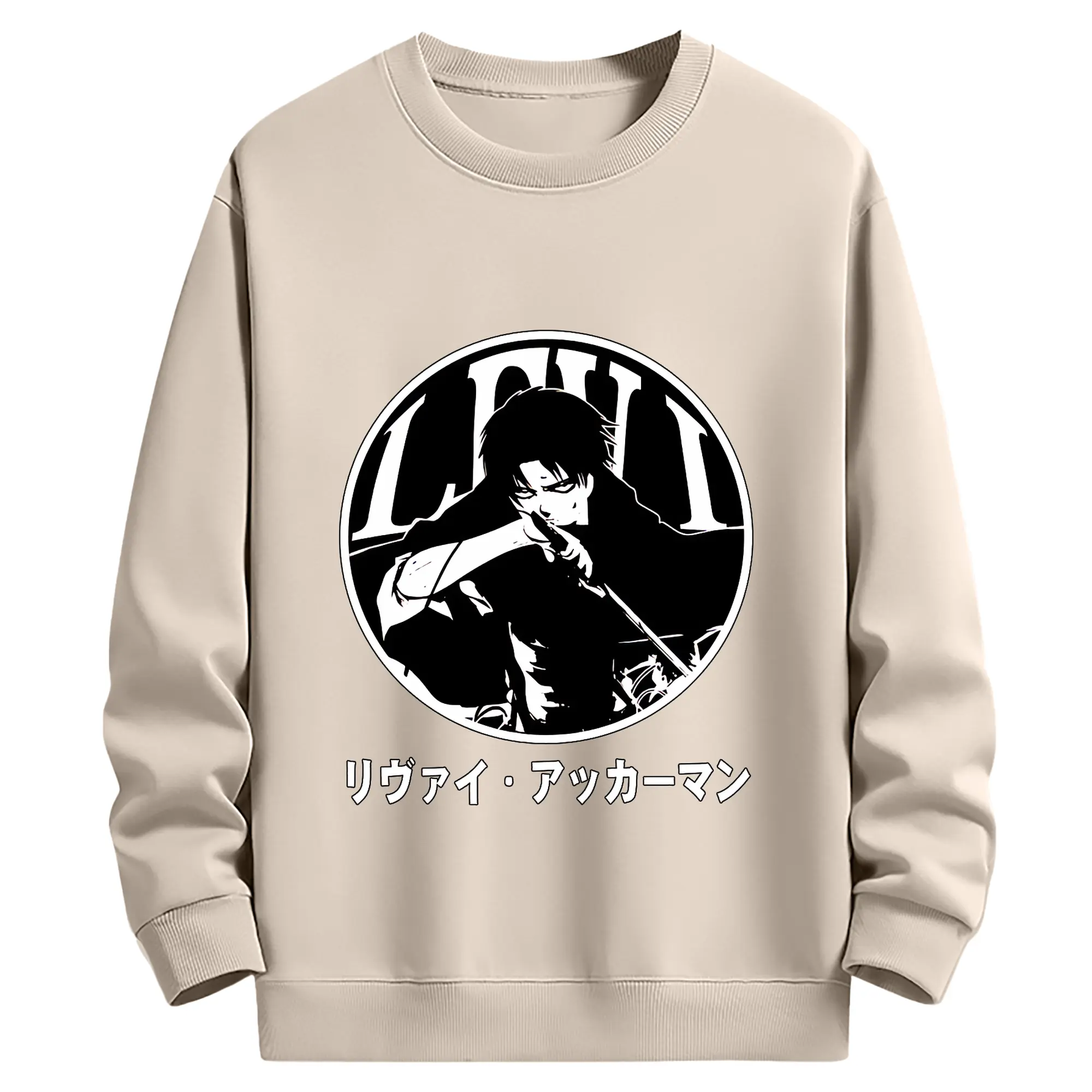 進撃の巨人 グッズ リヴァイ・アッカーマン - 薄手 クルーネック スウェット 裏毛260g · ポリエステル 春秋向け カジュアル 男女兼用 · トレーナー デイリー スポーツ 散歩に最適
