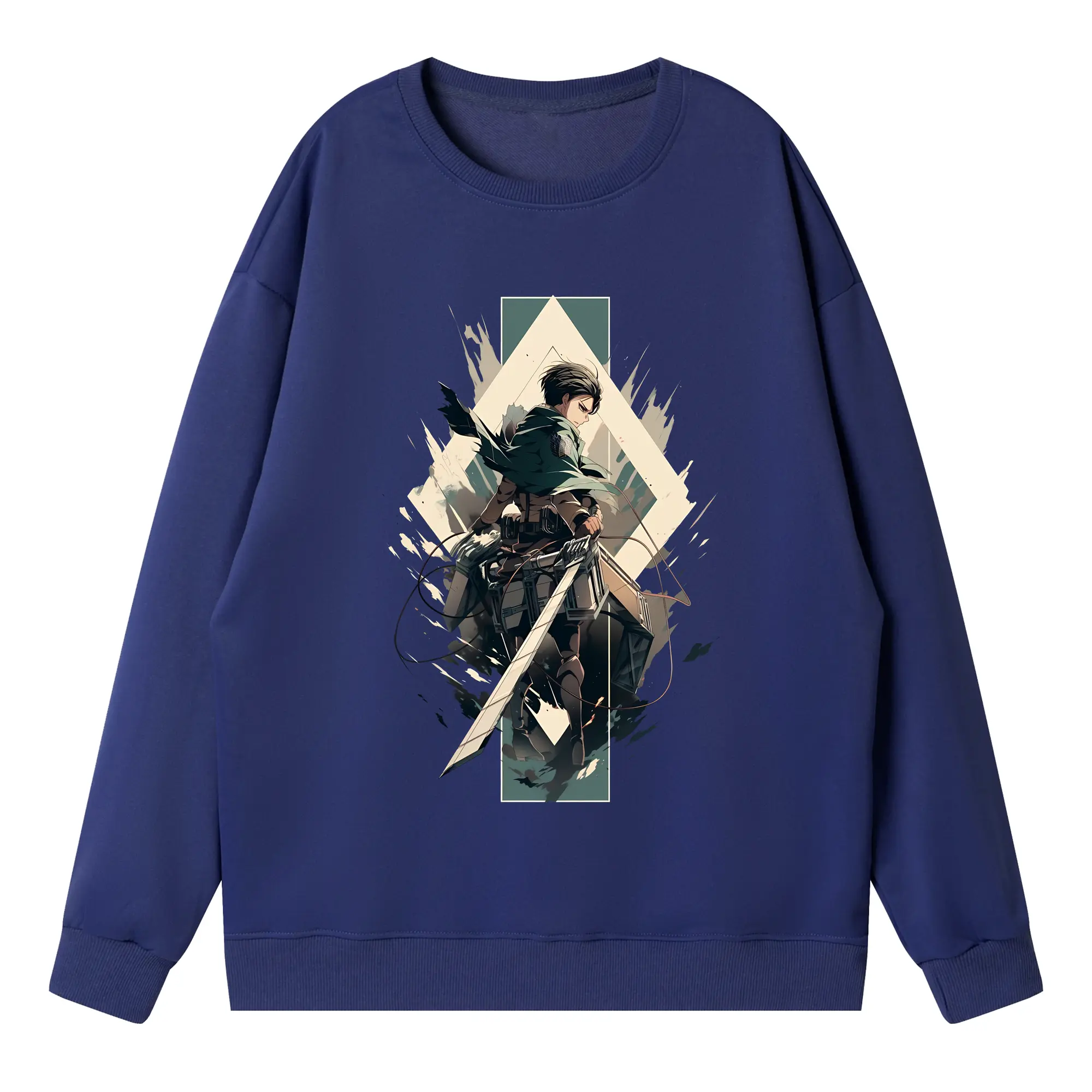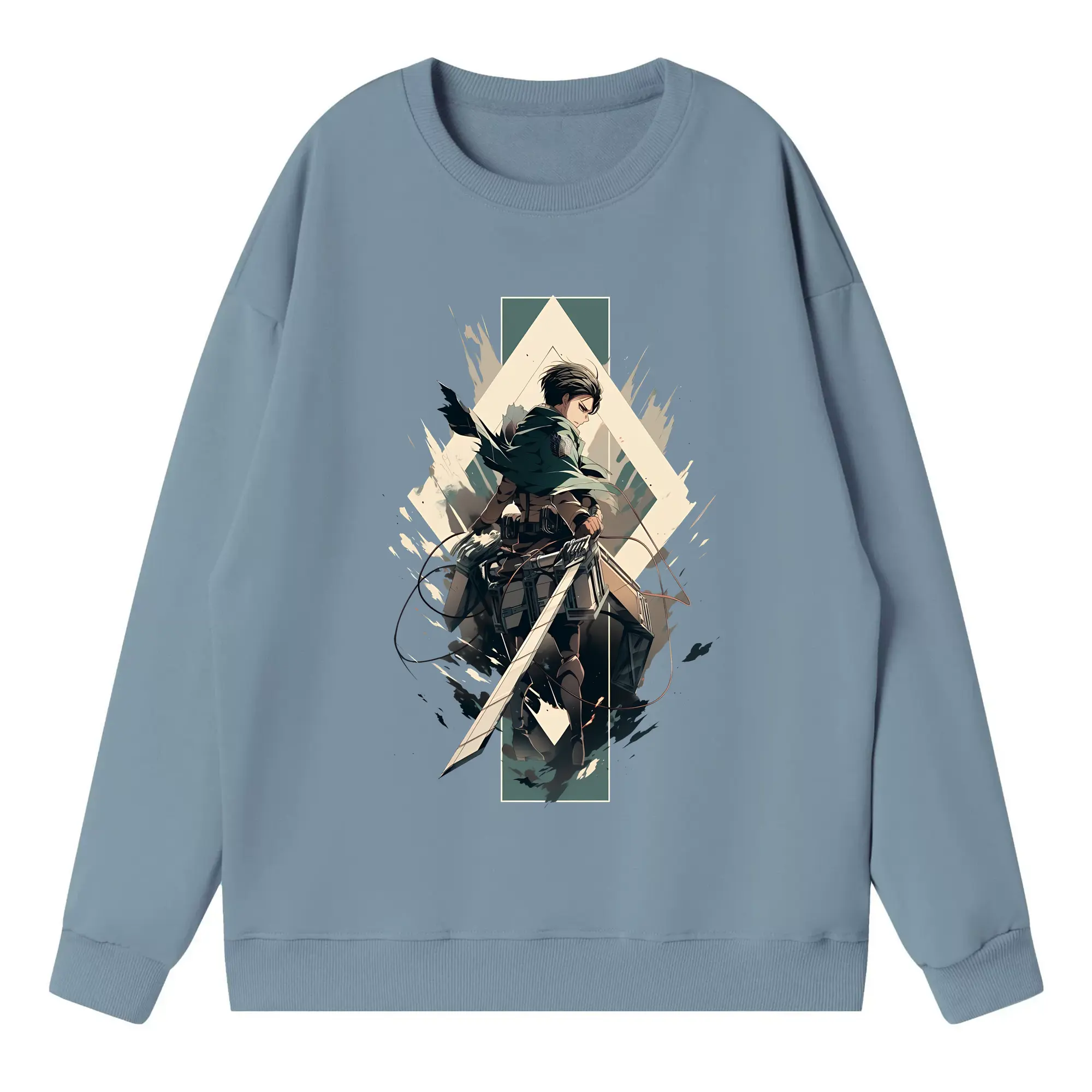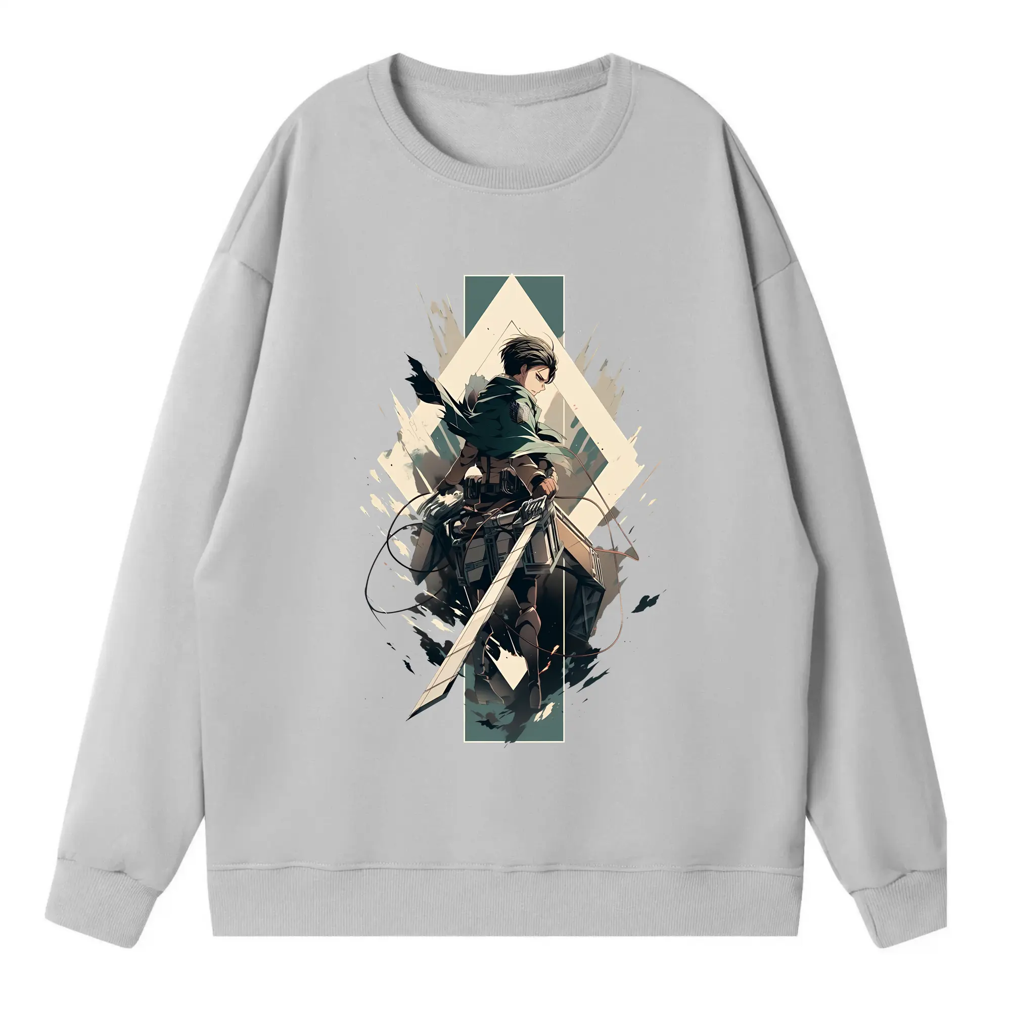 進撃の巨人 グッズ リヴァイ・アッカーマン - 高品質 クルーネック スウェット ・ コットン59% ポリエステル41% ・ ユニセックス 長袖 トレーナー ・ カジュアル デイリー スポーツ 散歩用