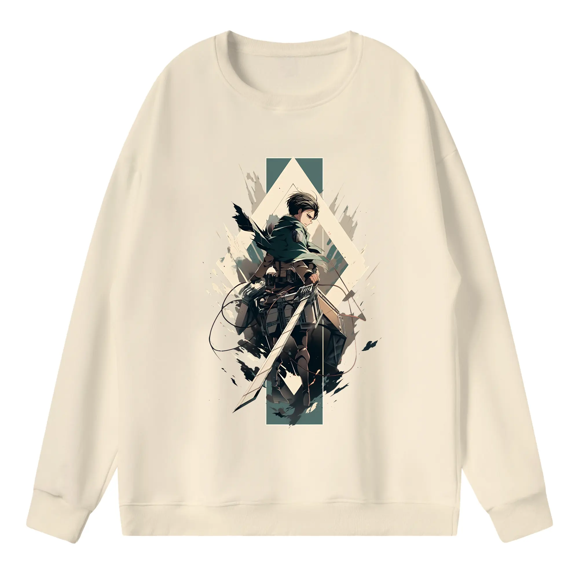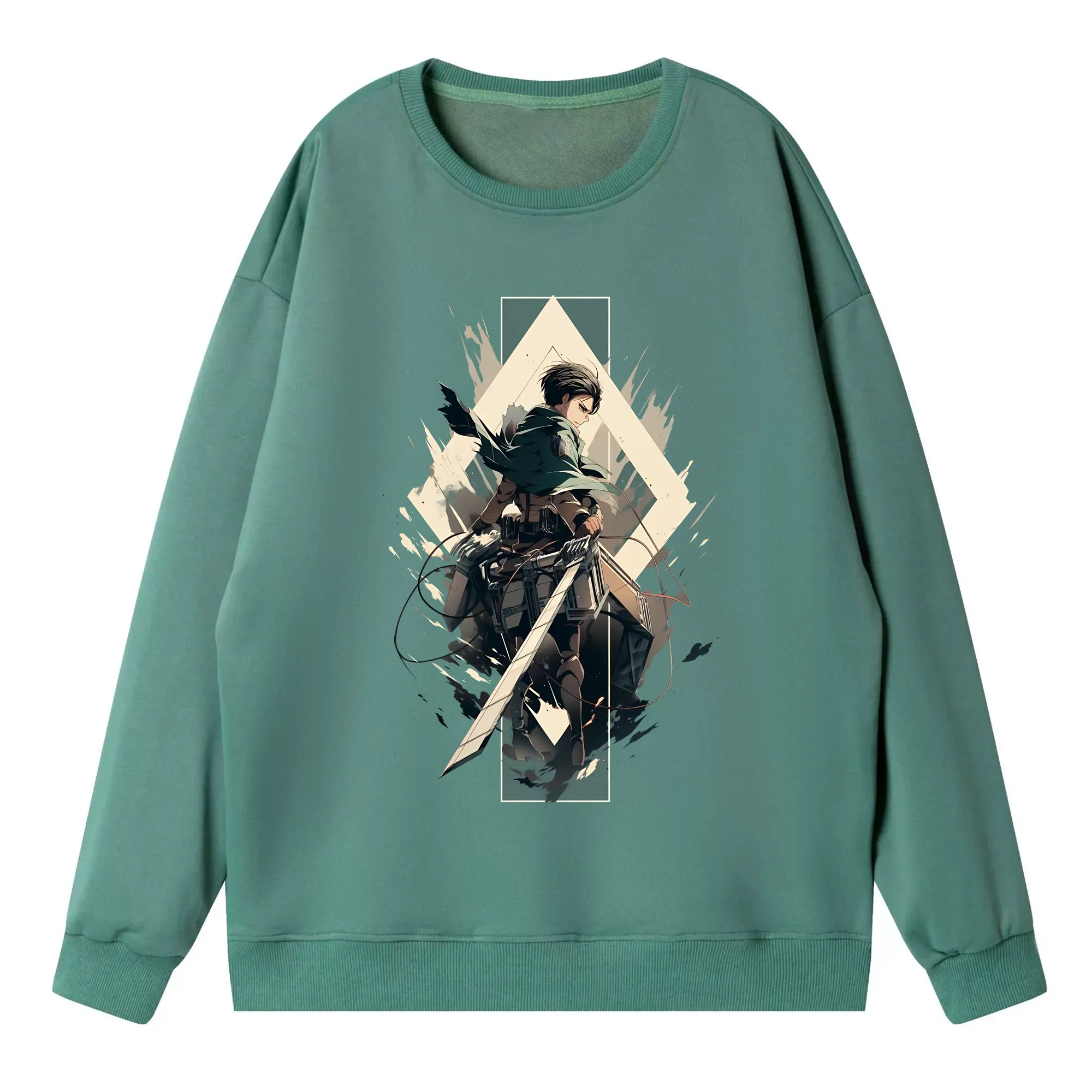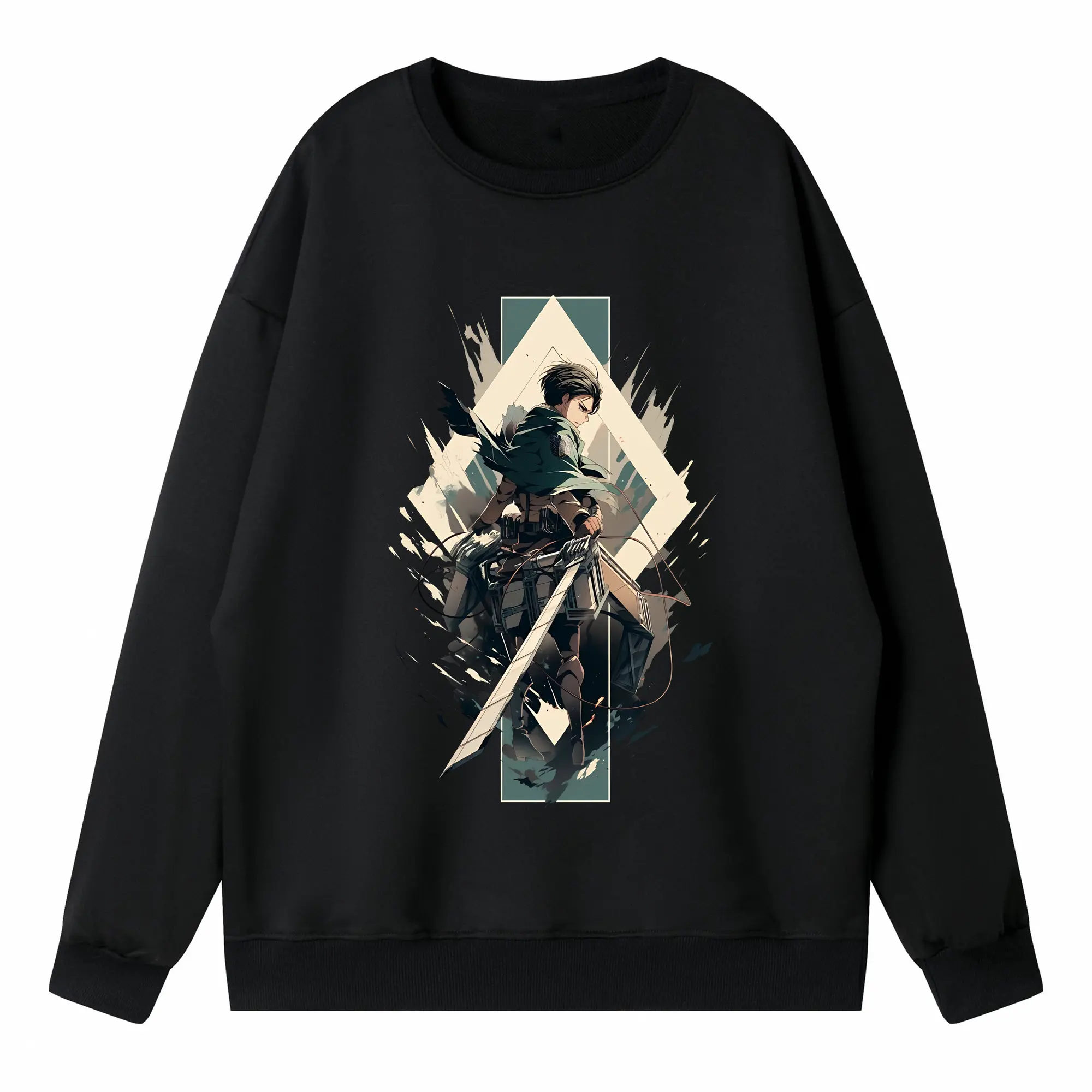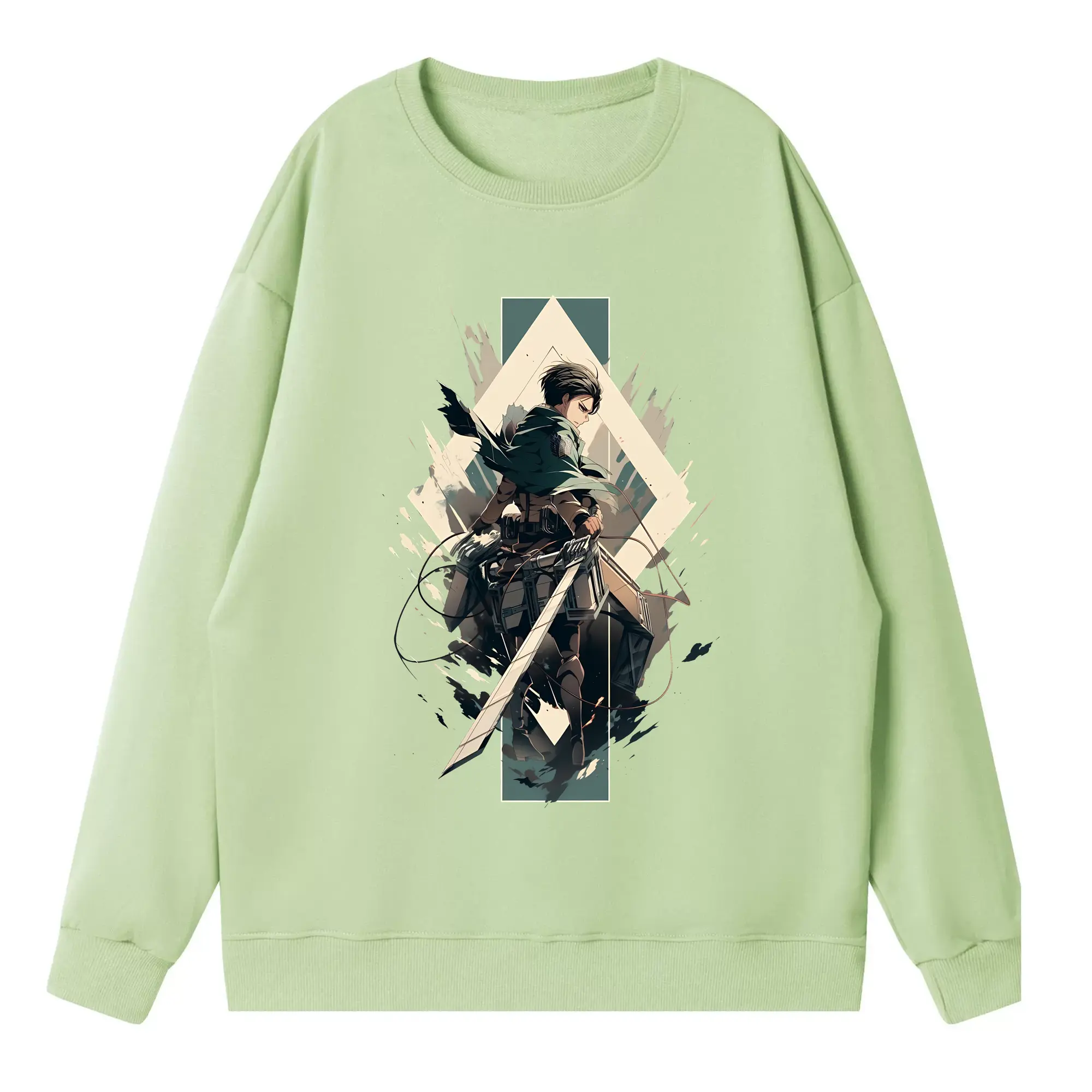 進撃の巨人 グッズ リヴァイ・アッカーマン - 高品質 クルーネック スウェット ・ コットン59% ポリエステル41% ・ ユニセックス 長袖 トレーナー ・ カジュアル デイリー スポーツ 散歩用