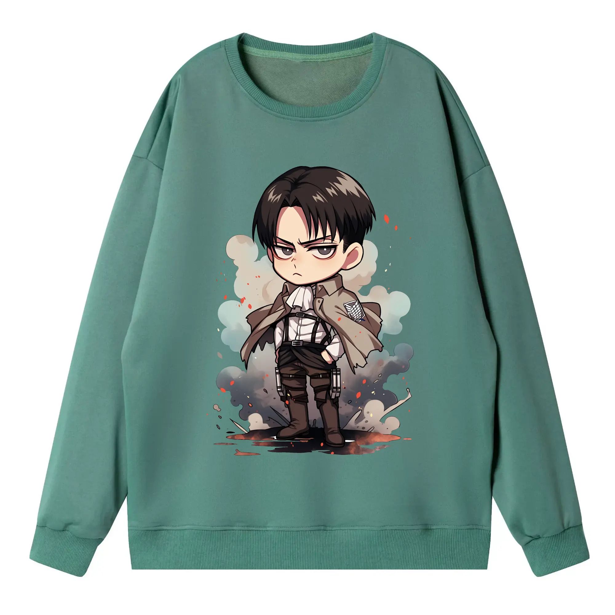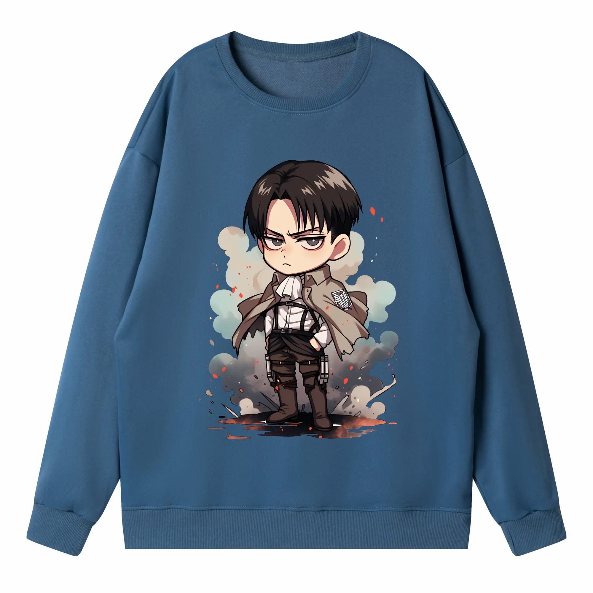 進撃の巨人 グッズ リヴァイ・アッカーマン - 薄手 クルーネック スウェット 裏毛260g · ポリエステル 春秋向け カジュアル 男女兼用 · トレーナー デイリー スポーツ 散歩に最適