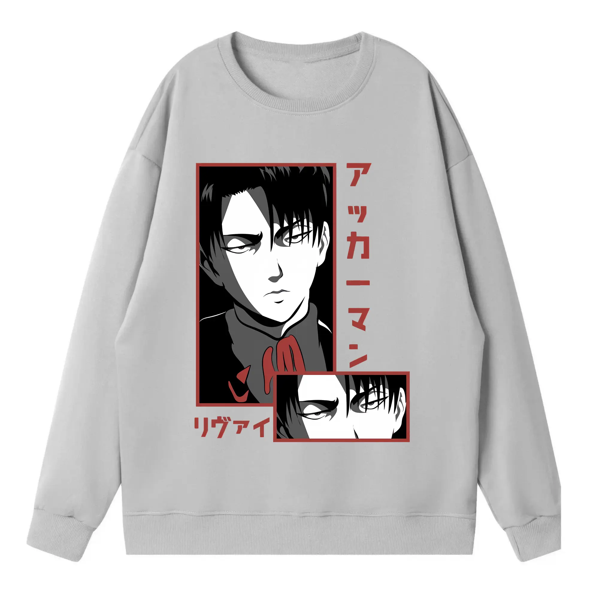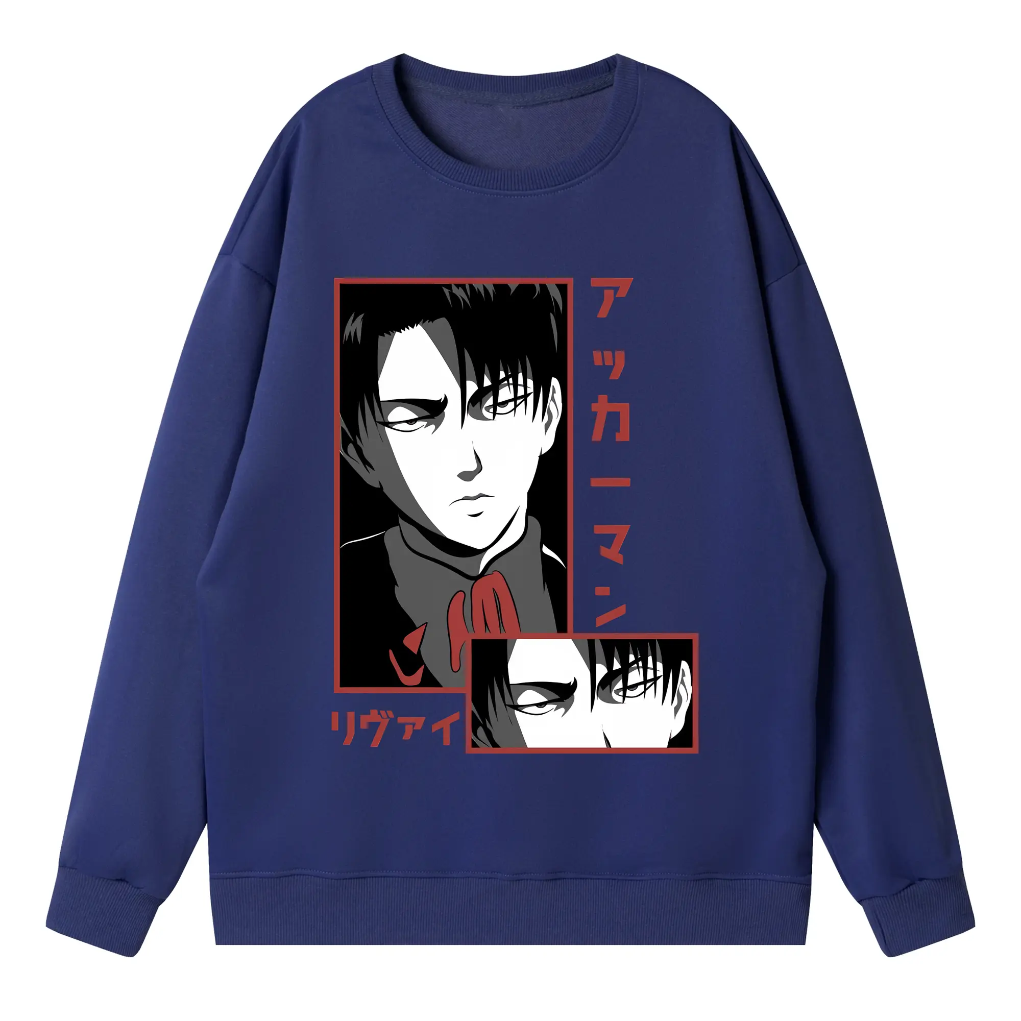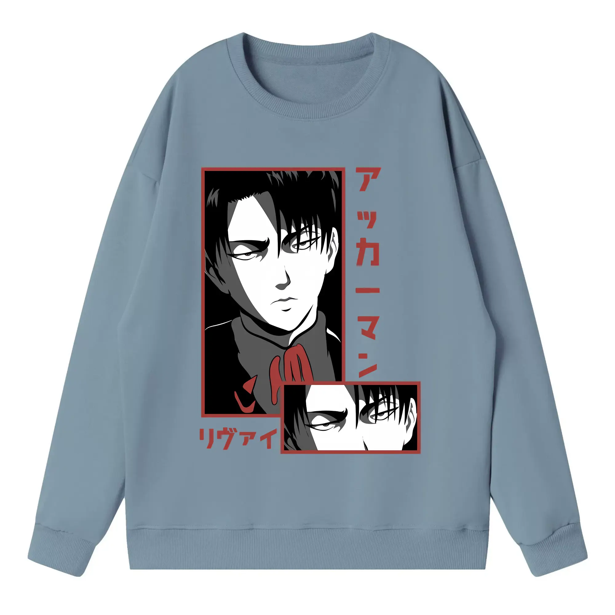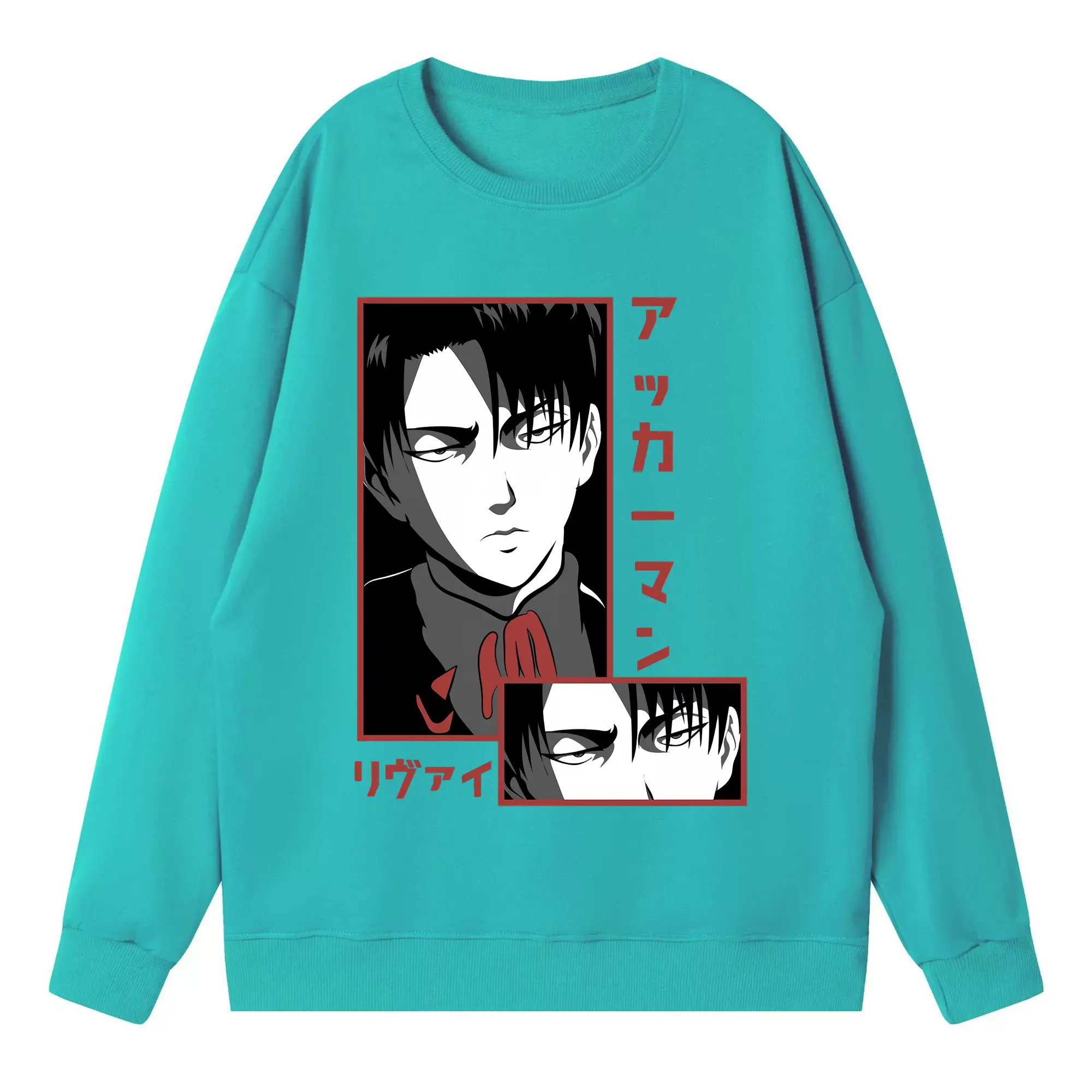 進撃の巨人 グッズ リヴァイ・アッカーマン - 高品質 クルーネック スウェット ・ コットン59% ポリエステル41% ・ ユニセックス 長袖 トレーナー ・ カジュアル デイリー スポーツ 散歩用
