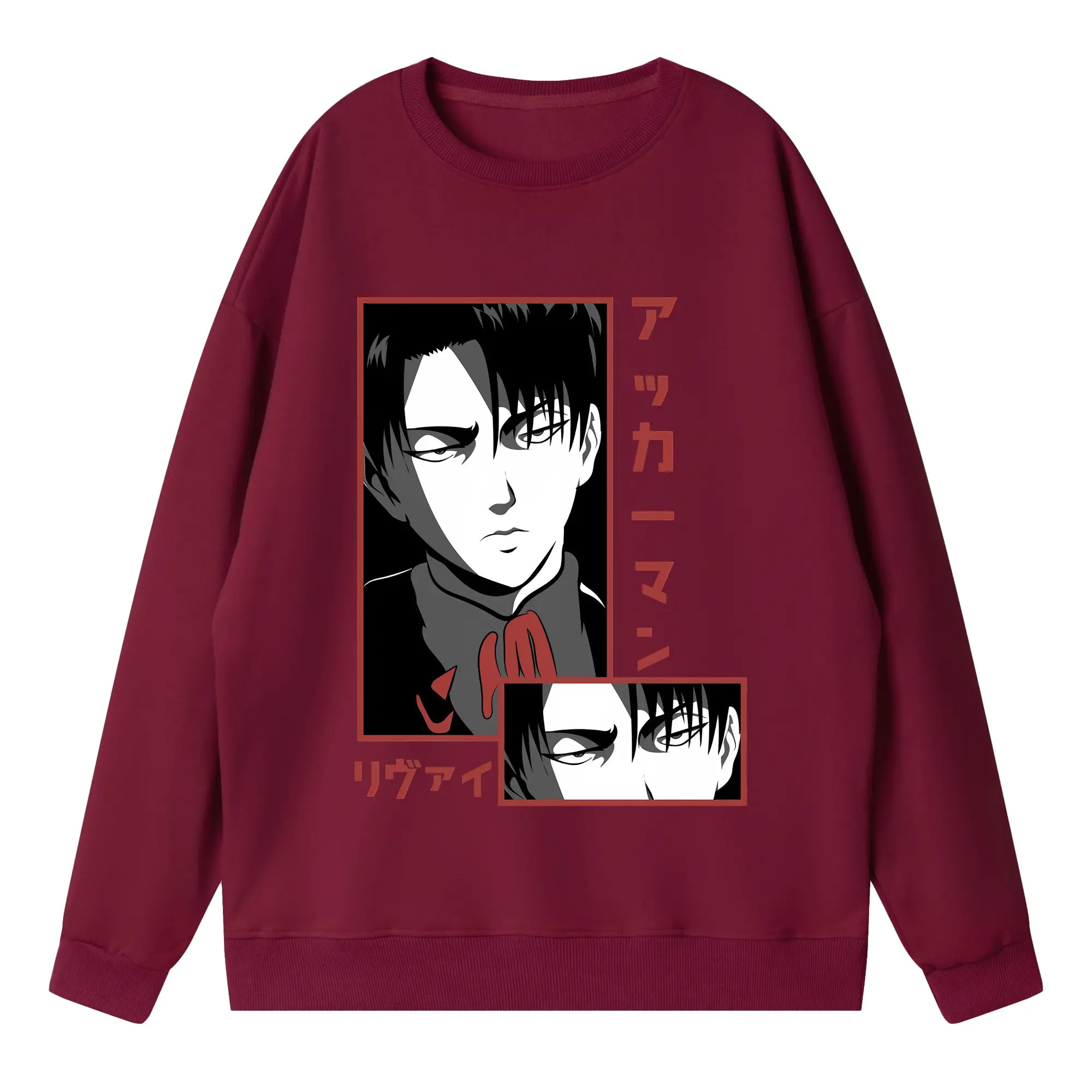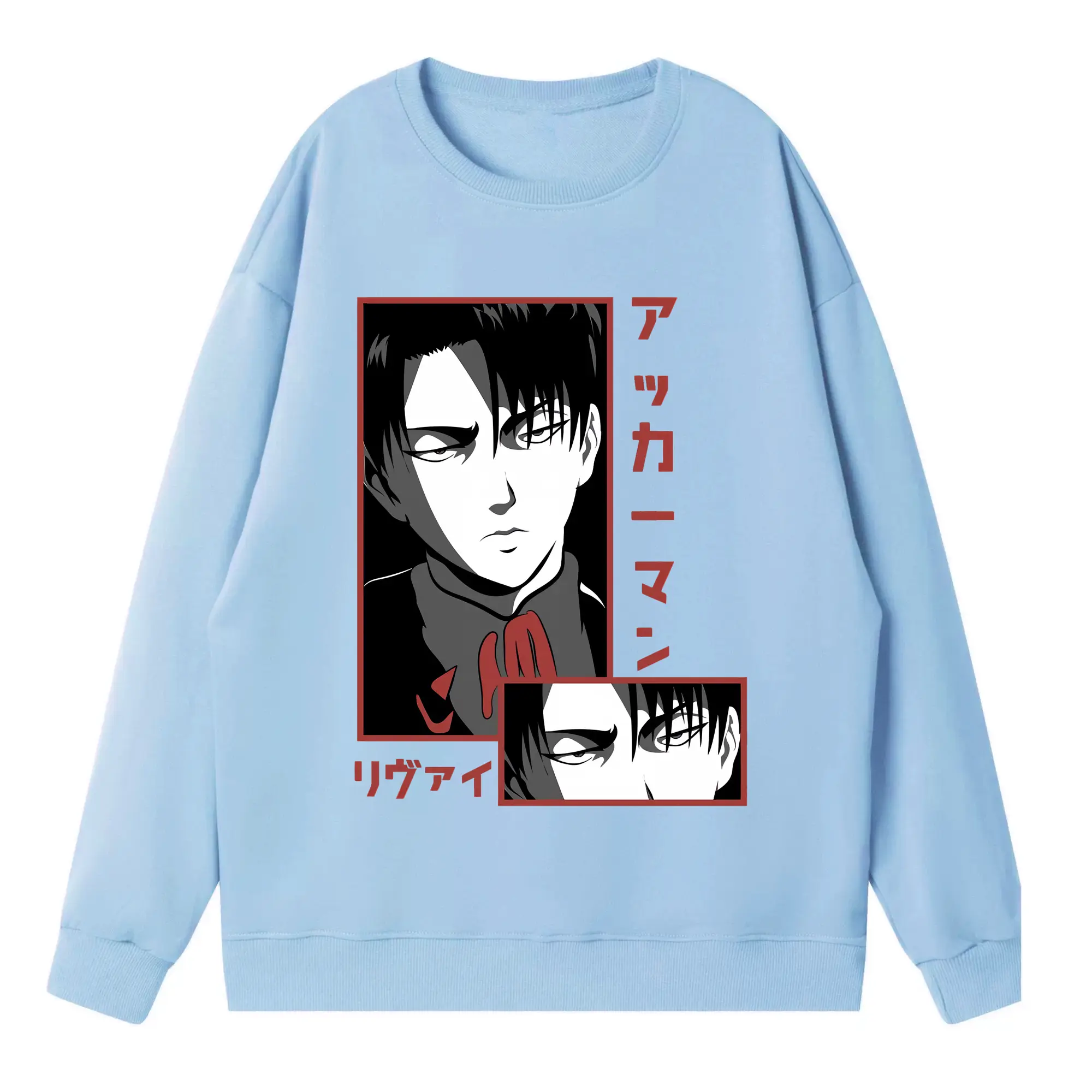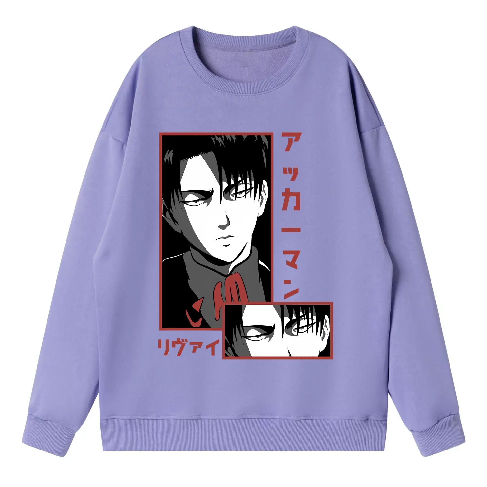 進撃の巨人 グッズ リヴァイ・アッカーマン - 高品質 クルーネック スウェット ・ コットン59% ポリエステル41% ・ ユニセックス 長袖 トレーナー ・ カジュアル デイリー スポーツ 散歩用