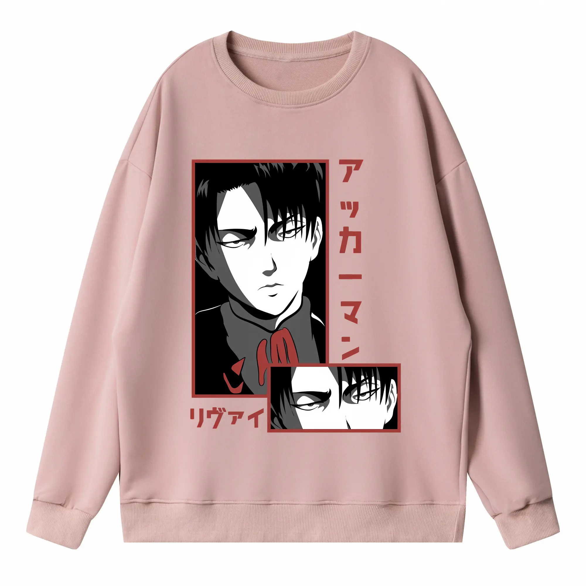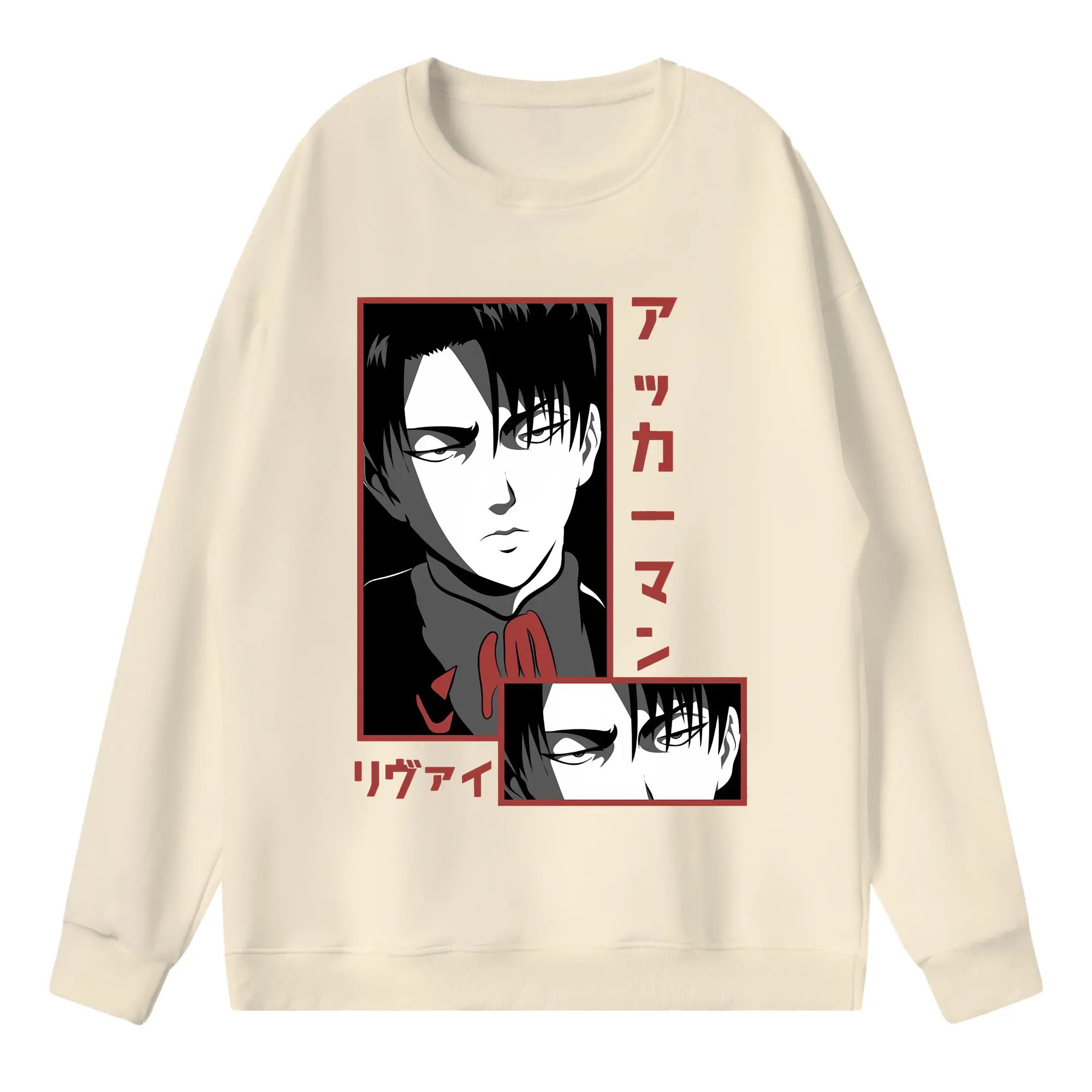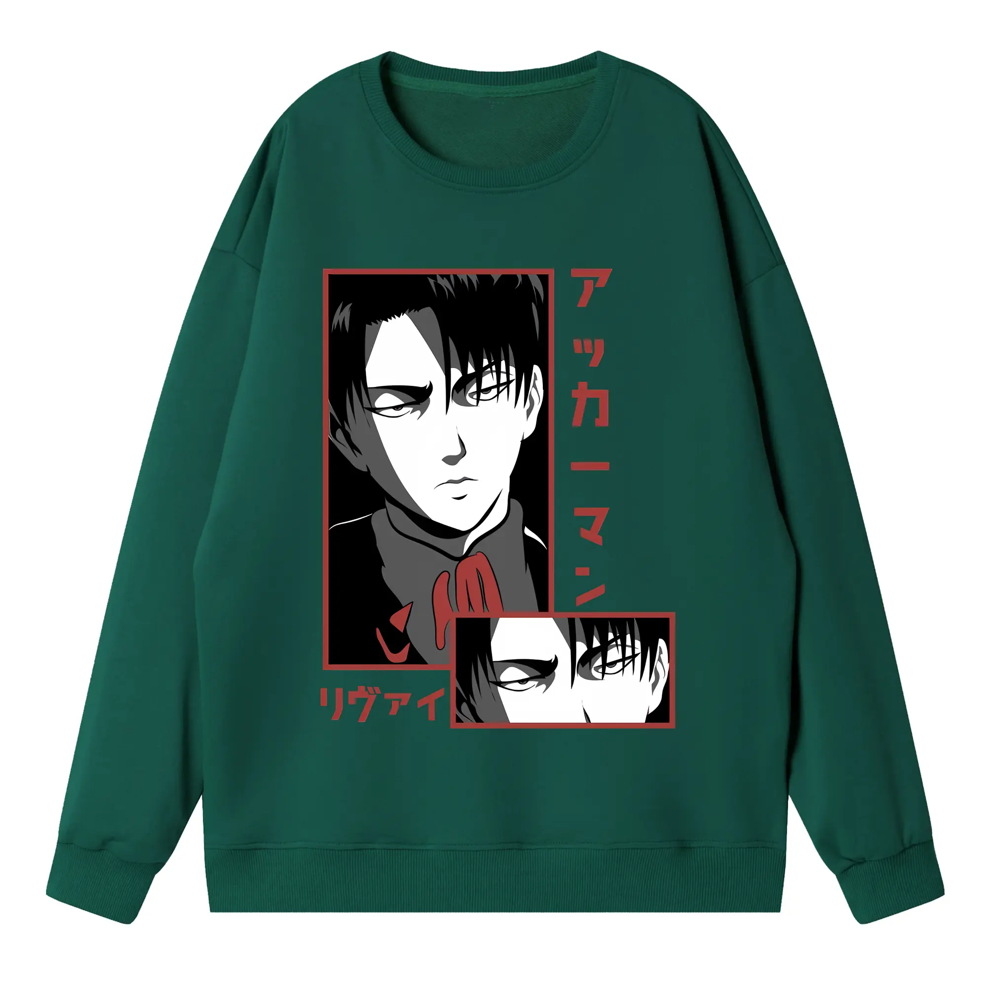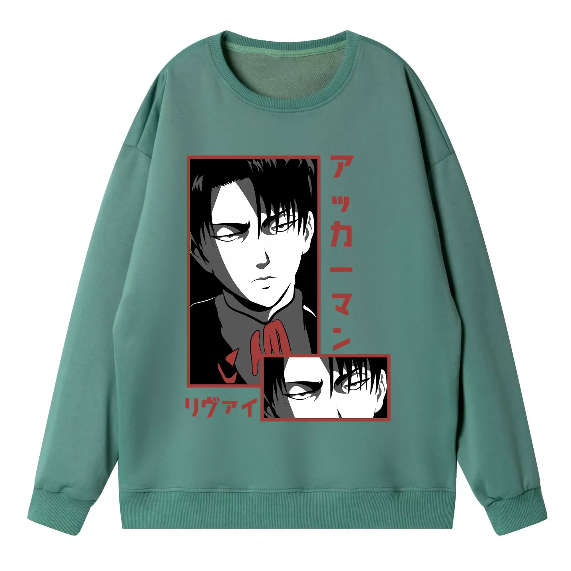 進撃の巨人 グッズ リヴァイ・アッカーマン - 高品質 クルーネック スウェット ・ コットン59% ポリエステル41% ・ ユニセックス 長袖 トレーナー ・ カジュアル デイリー スポーツ 散歩用