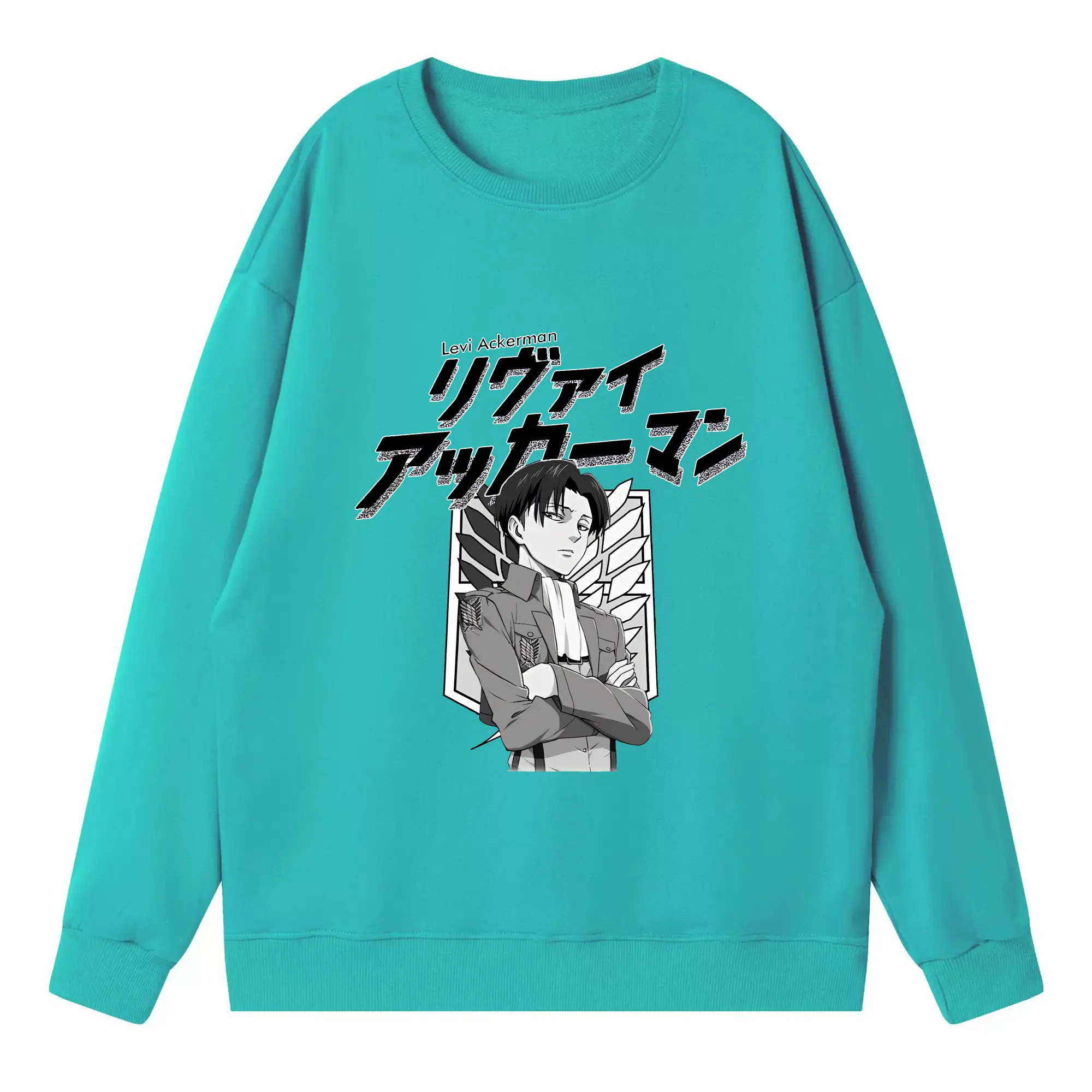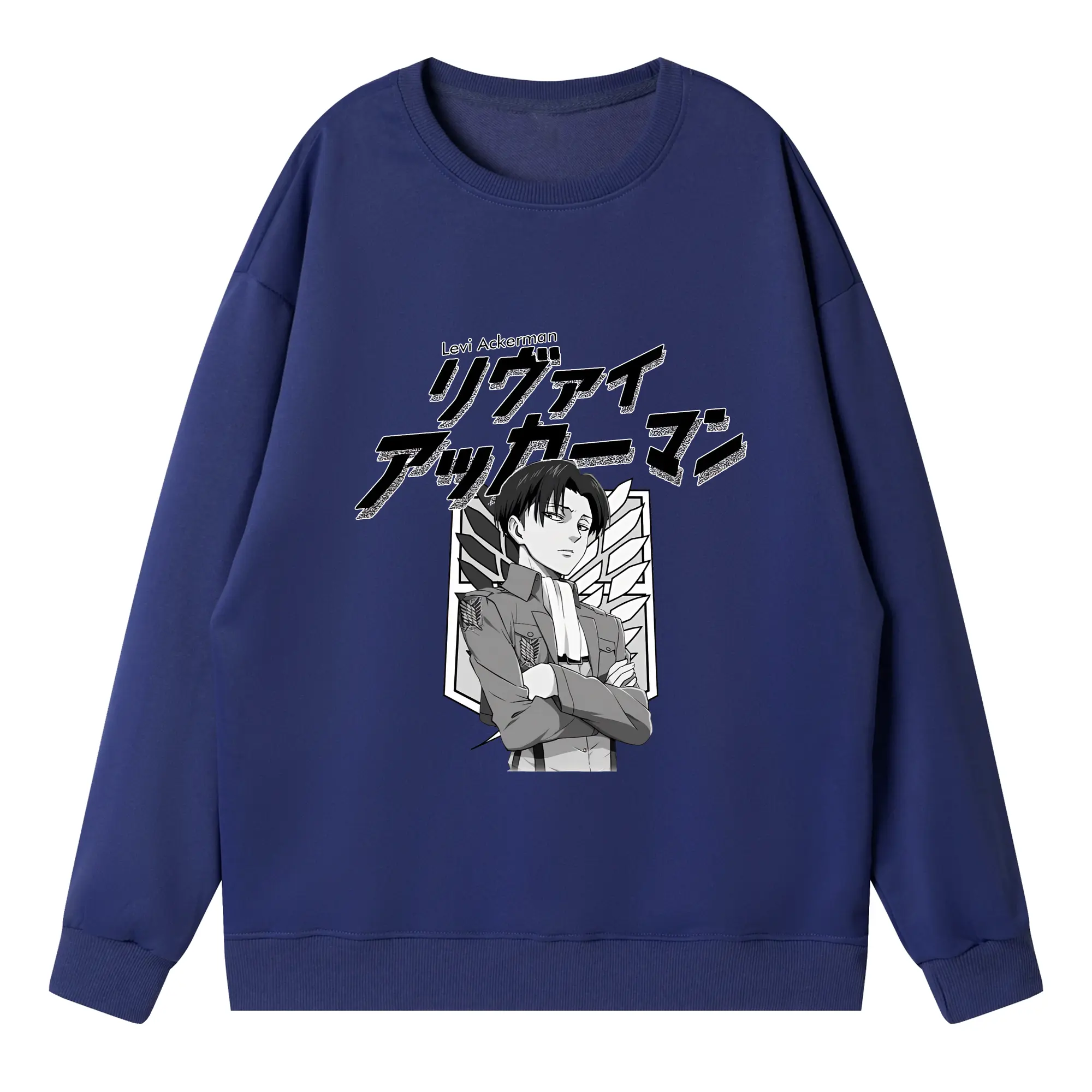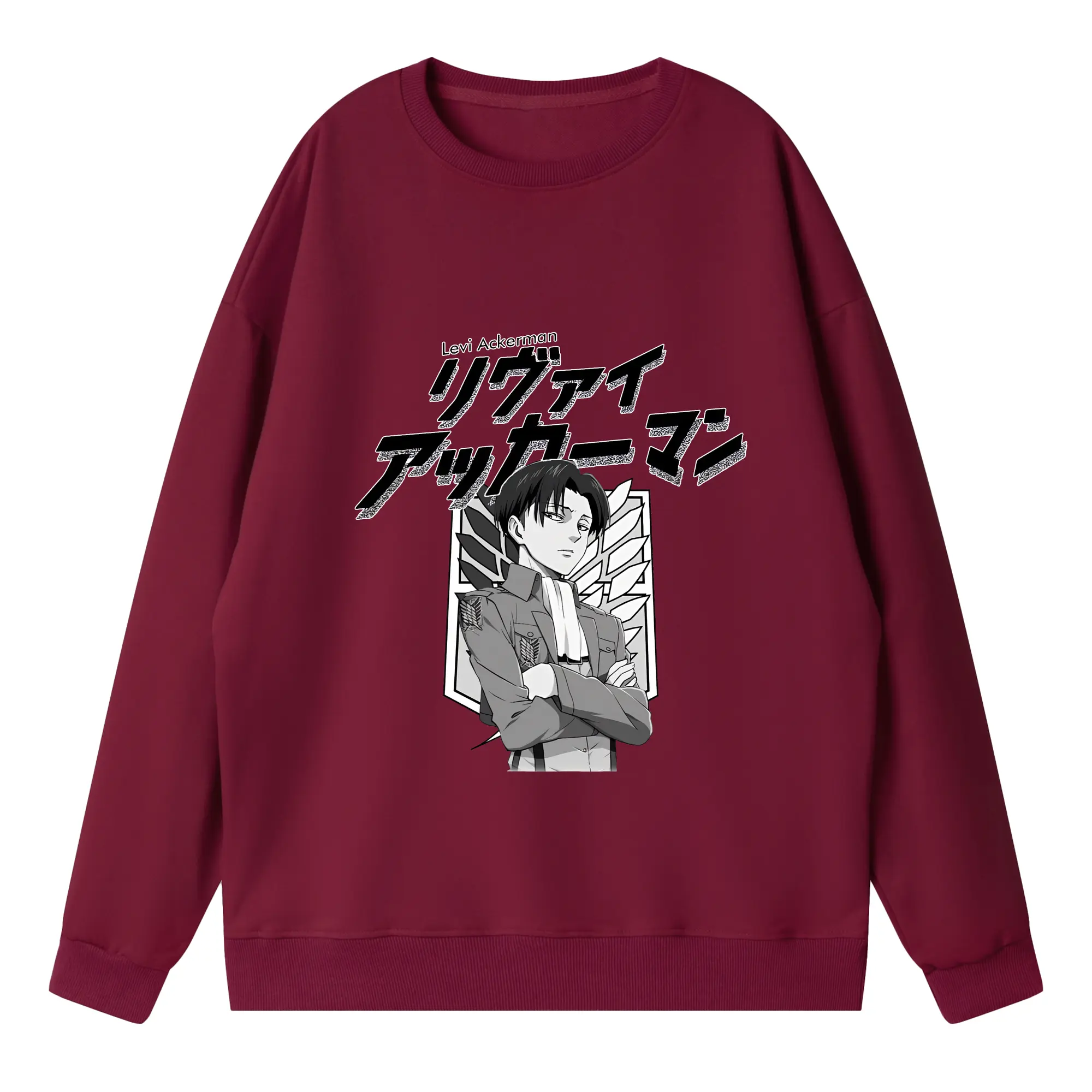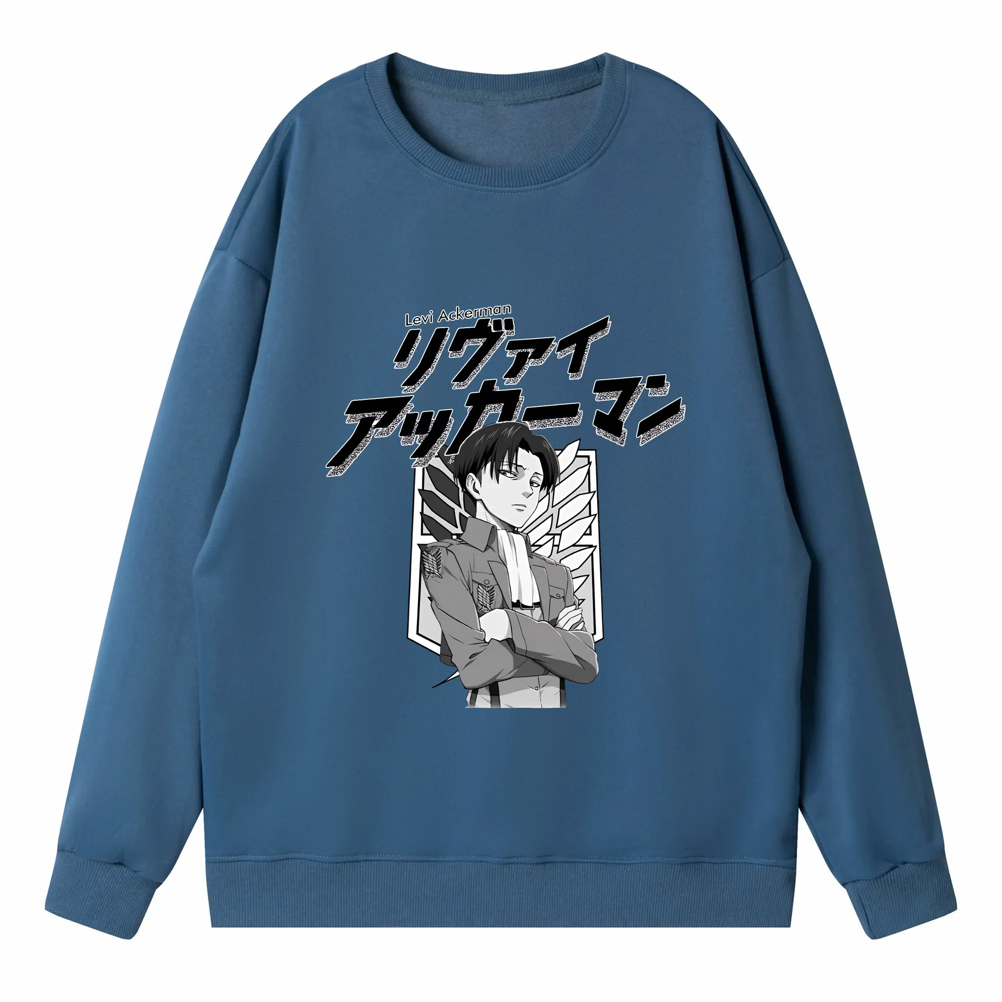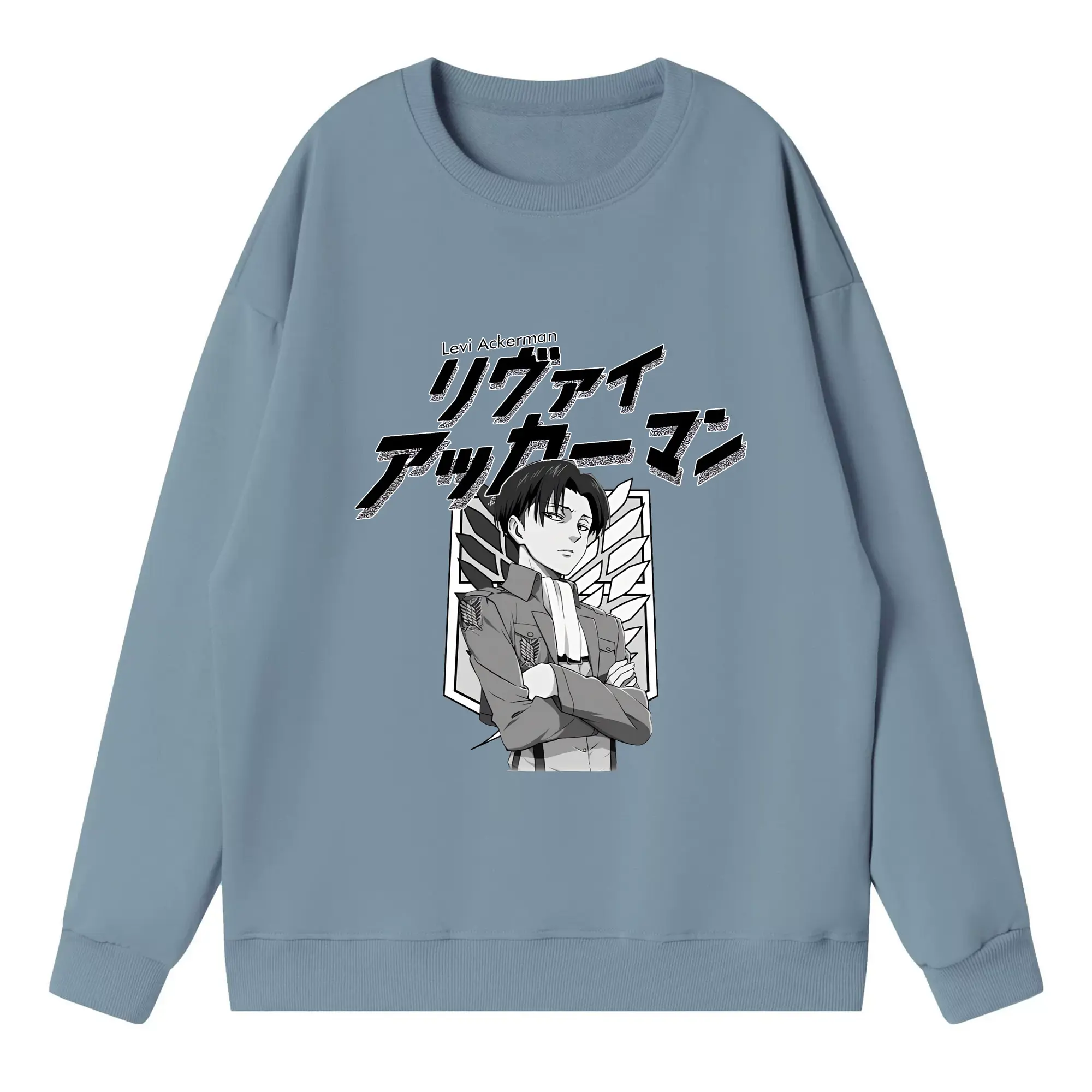 進撃の巨人 グッズ リヴァイ・アッカーマン - 高品質 クルーネック スウェット ・ コットン59% ポリエステル41% ・ ユニセックス 長袖 トレーナー ・ カジュアル デイリー スポーツ 散歩用