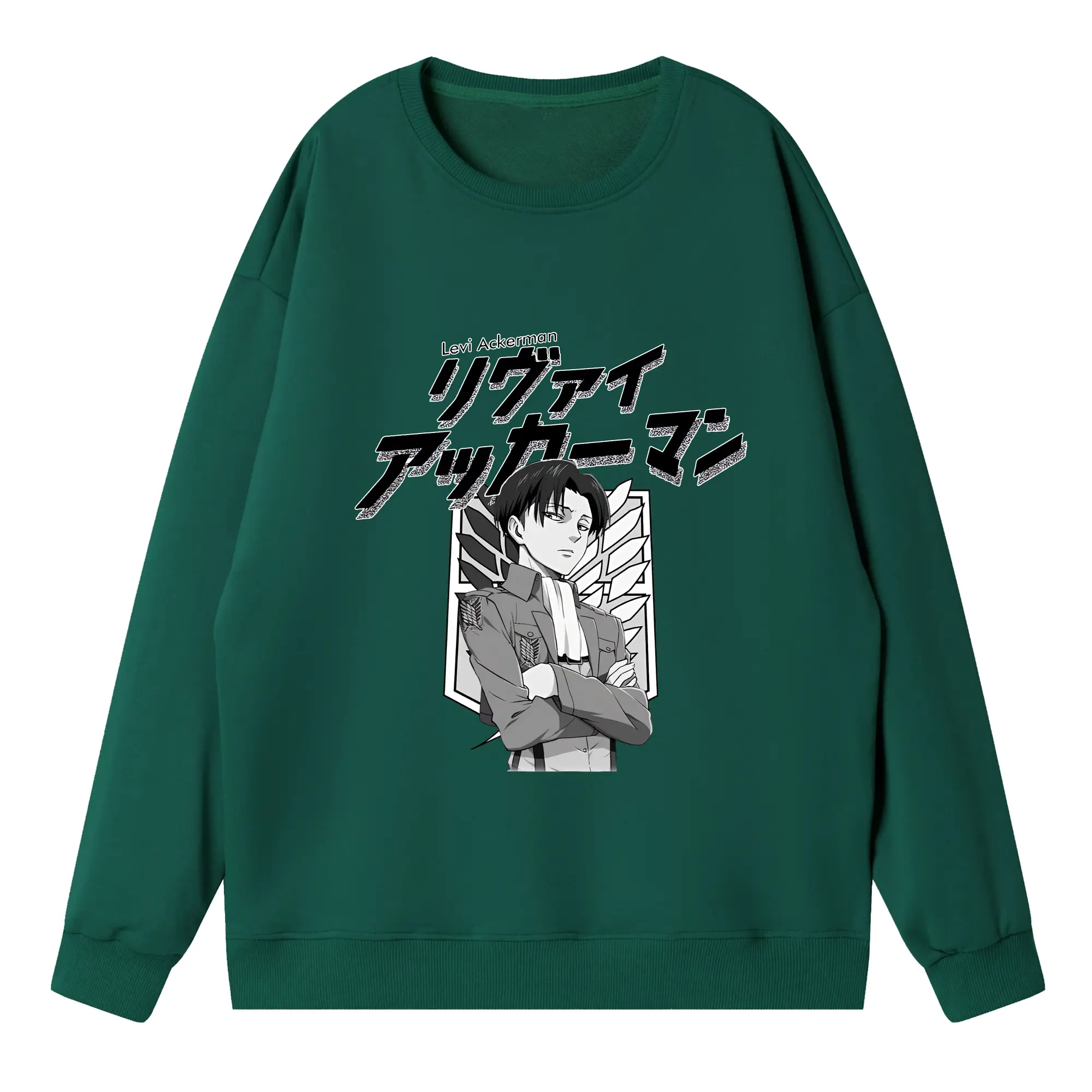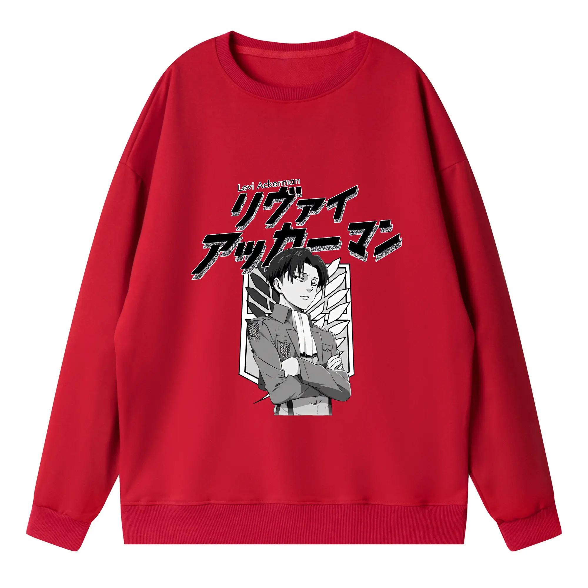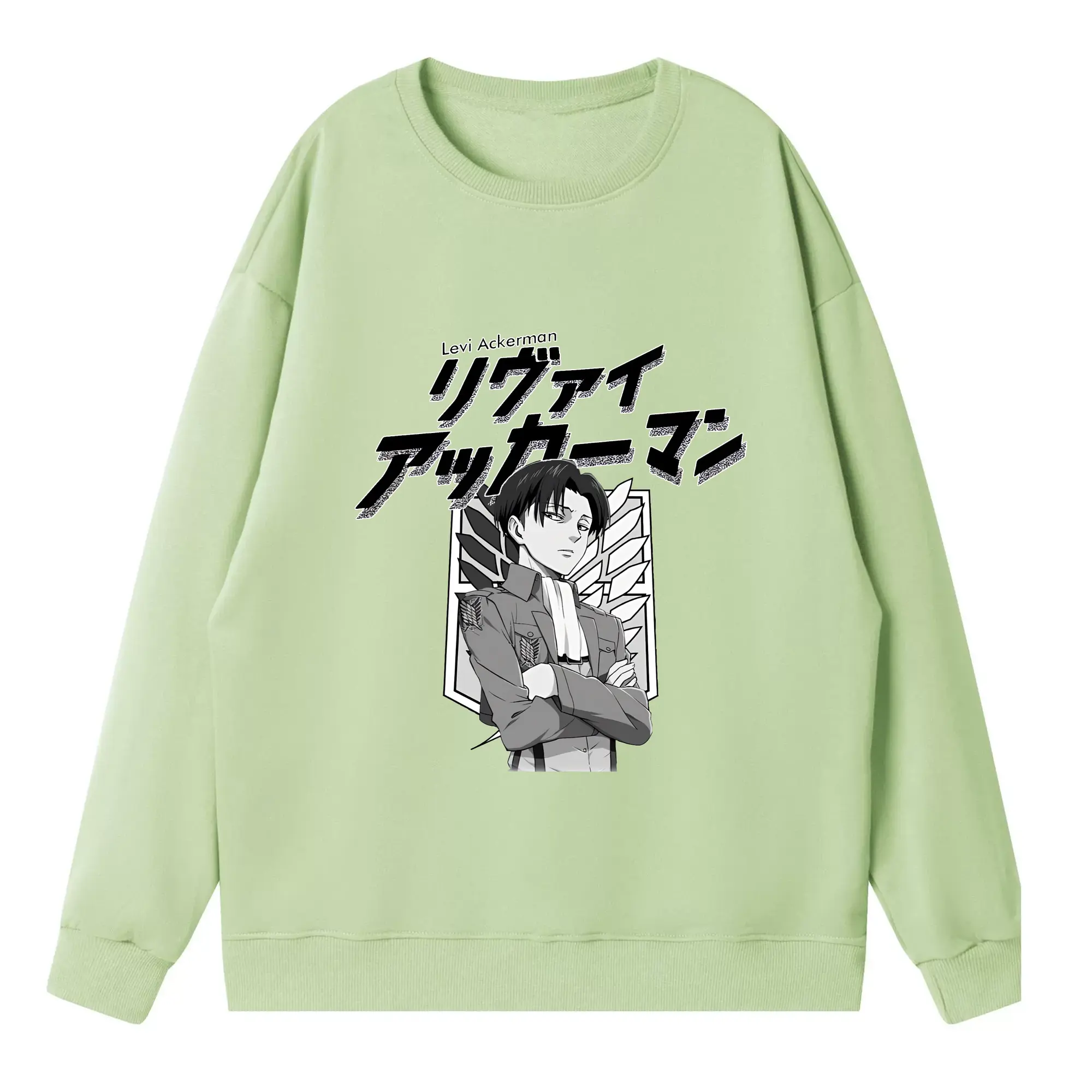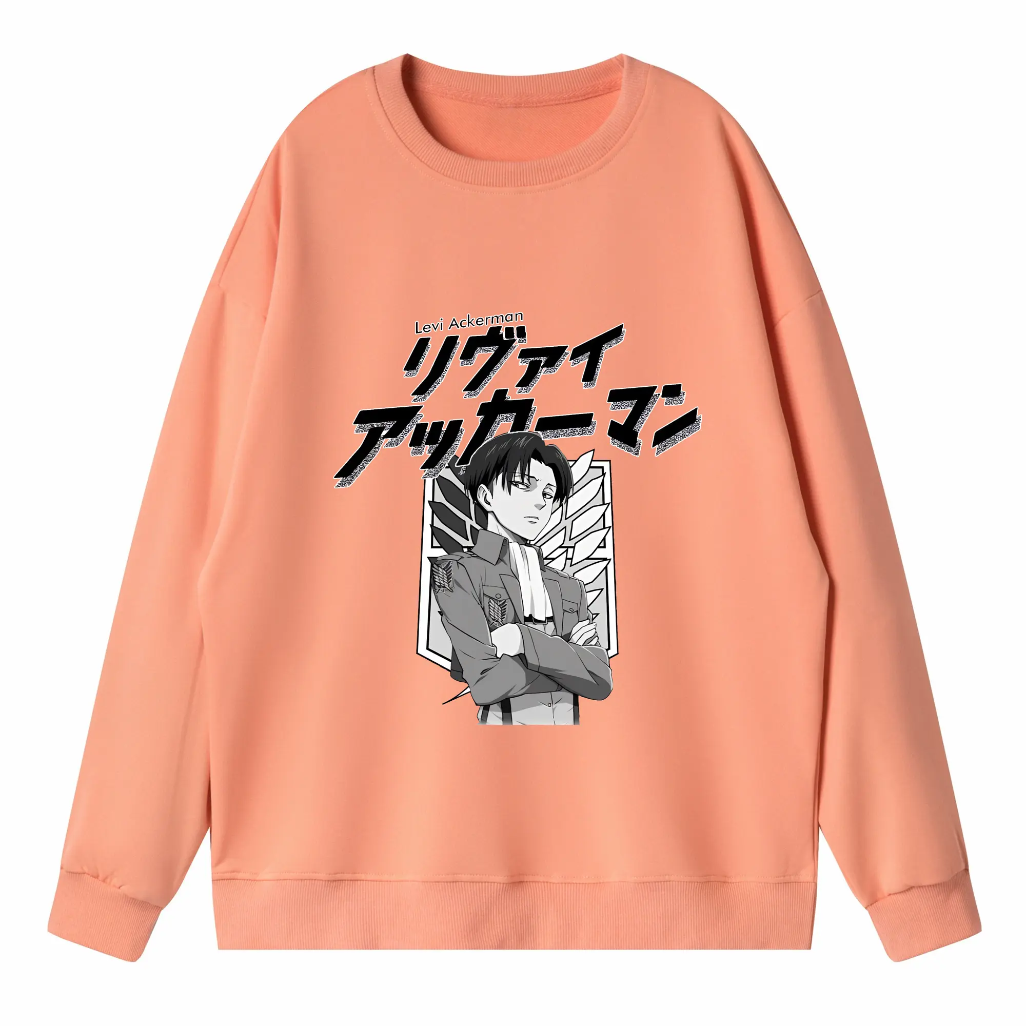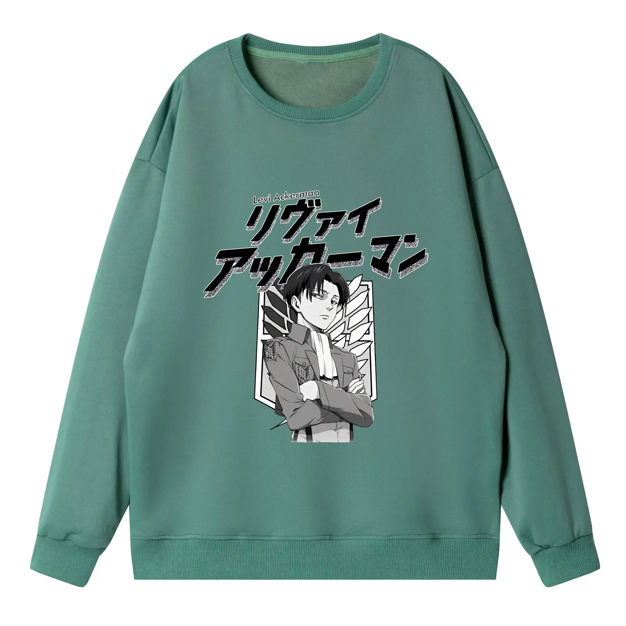 進撃の巨人 グッズ リヴァイ・アッカーマン - 高品質 クルーネック スウェット ・ コットン59% ポリエステル41% ・ ユニセックス 長袖 トレーナー ・ カジュアル デイリー スポーツ 散歩用