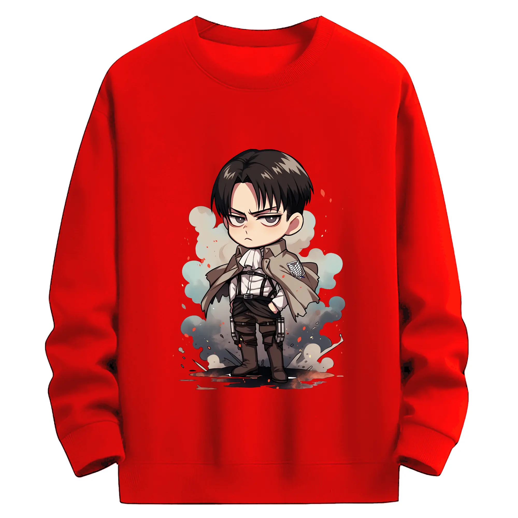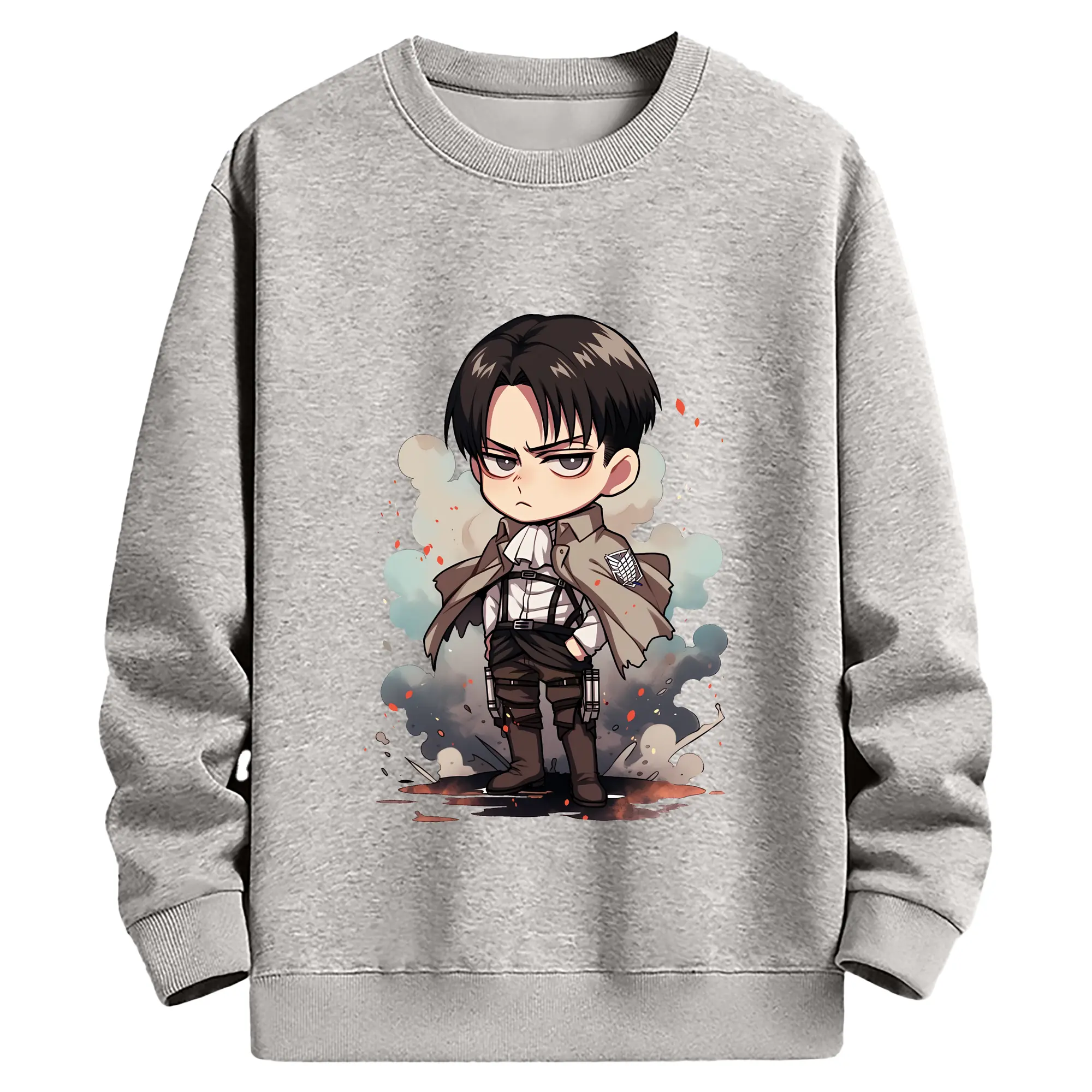 進撃の巨人 グッズ リヴァイ・アッカーマン - 薄手 クルーネック スウェット 裏毛260g · ポリエステル 春秋向け カジュアル 男女兼用 · トレーナー デイリー スポーツ 散歩に最適