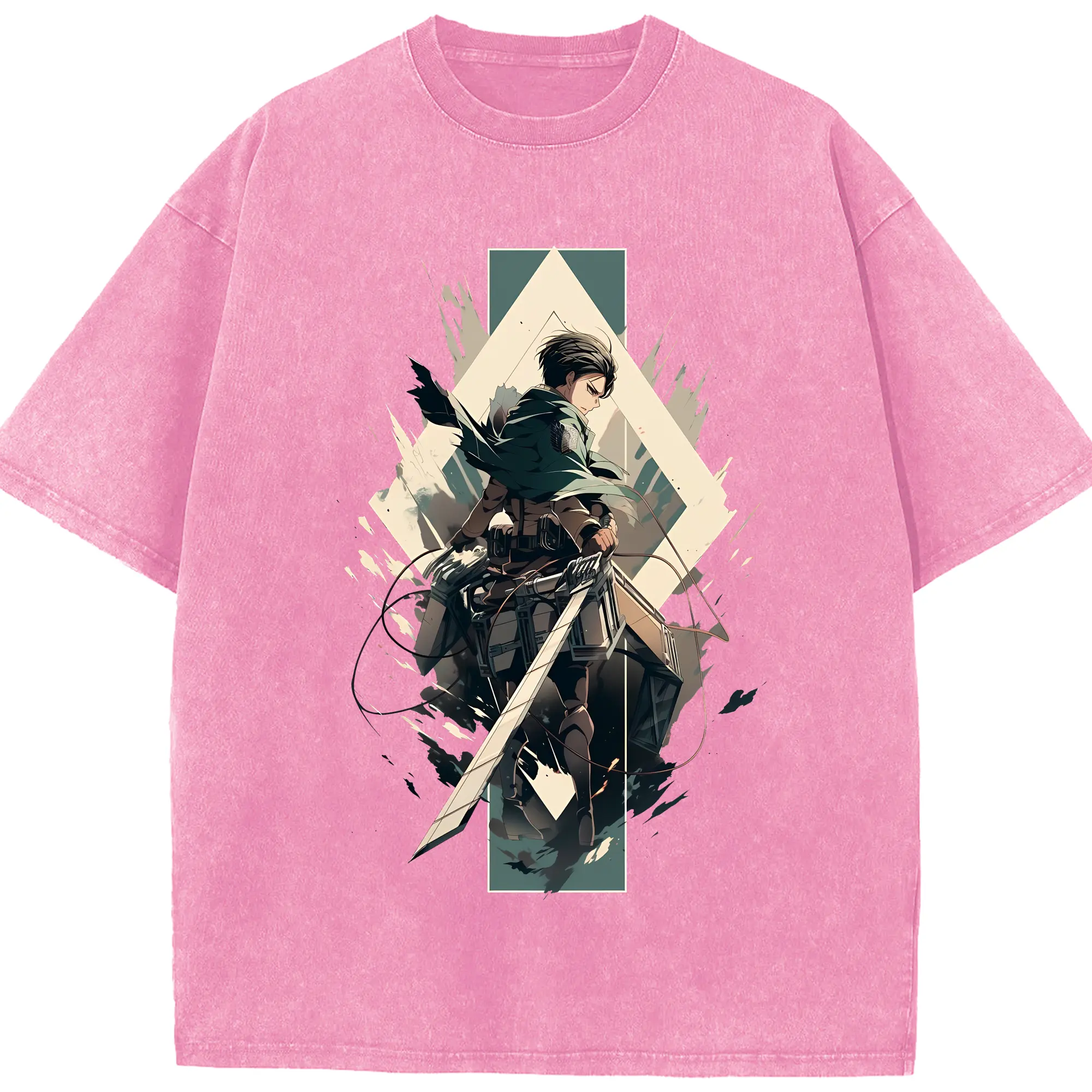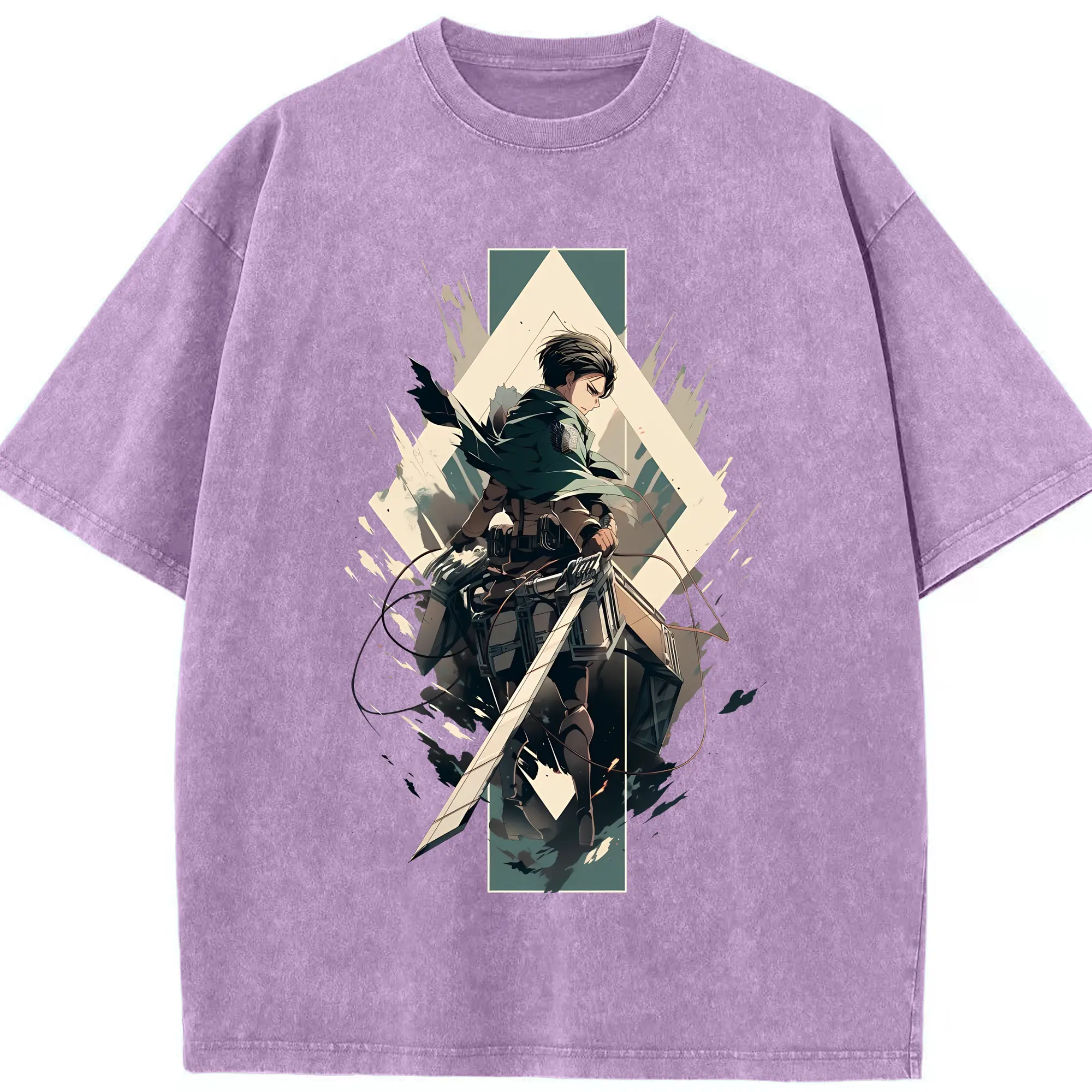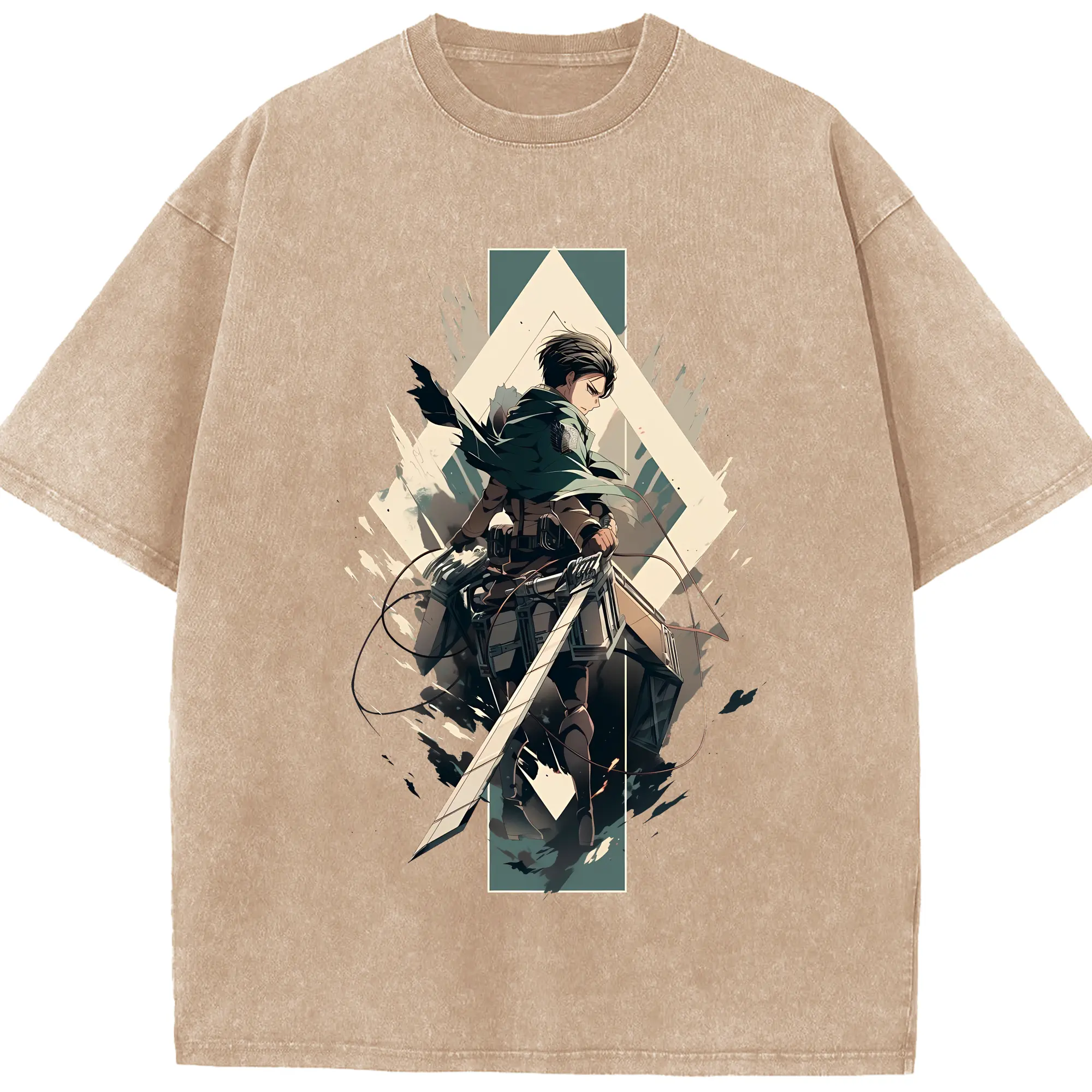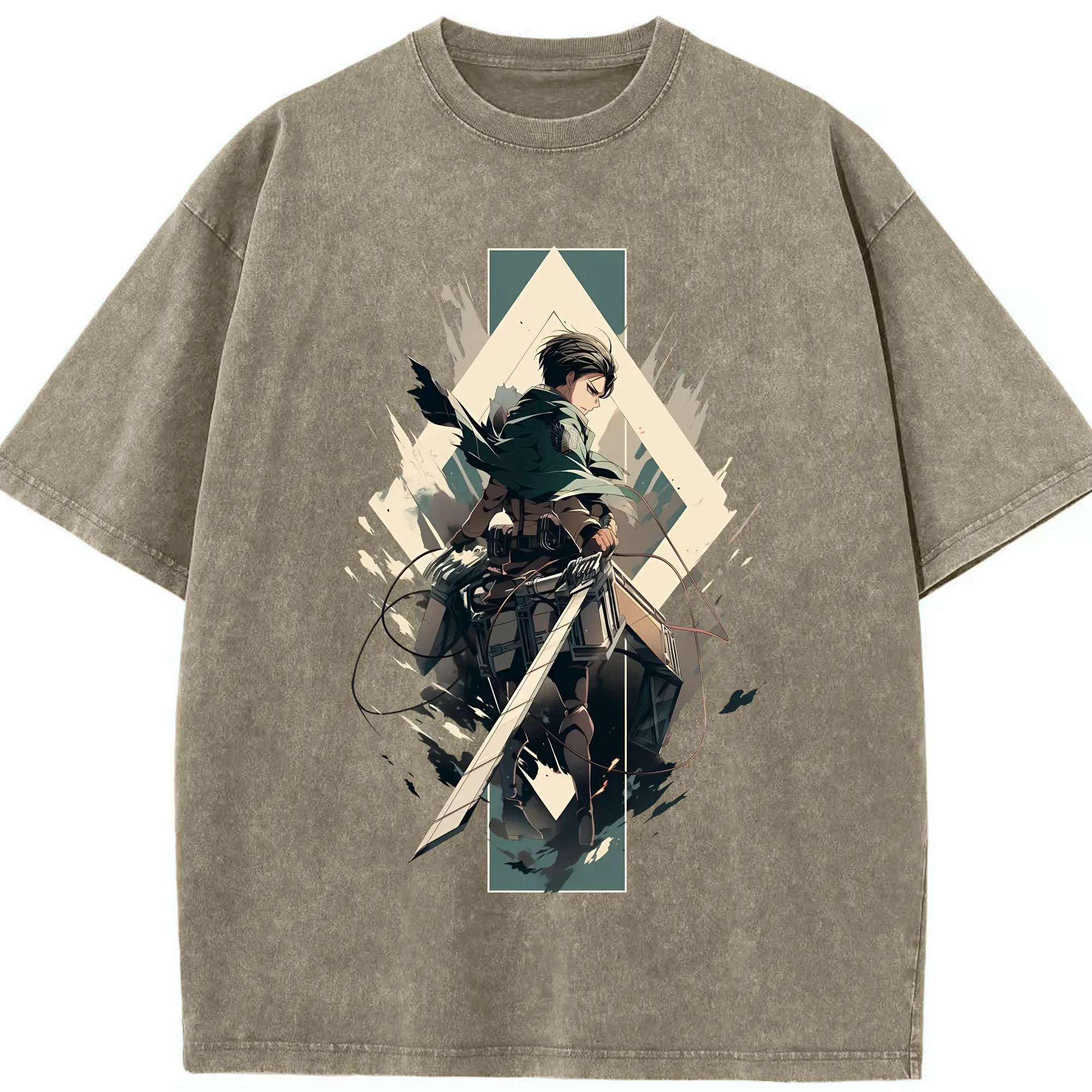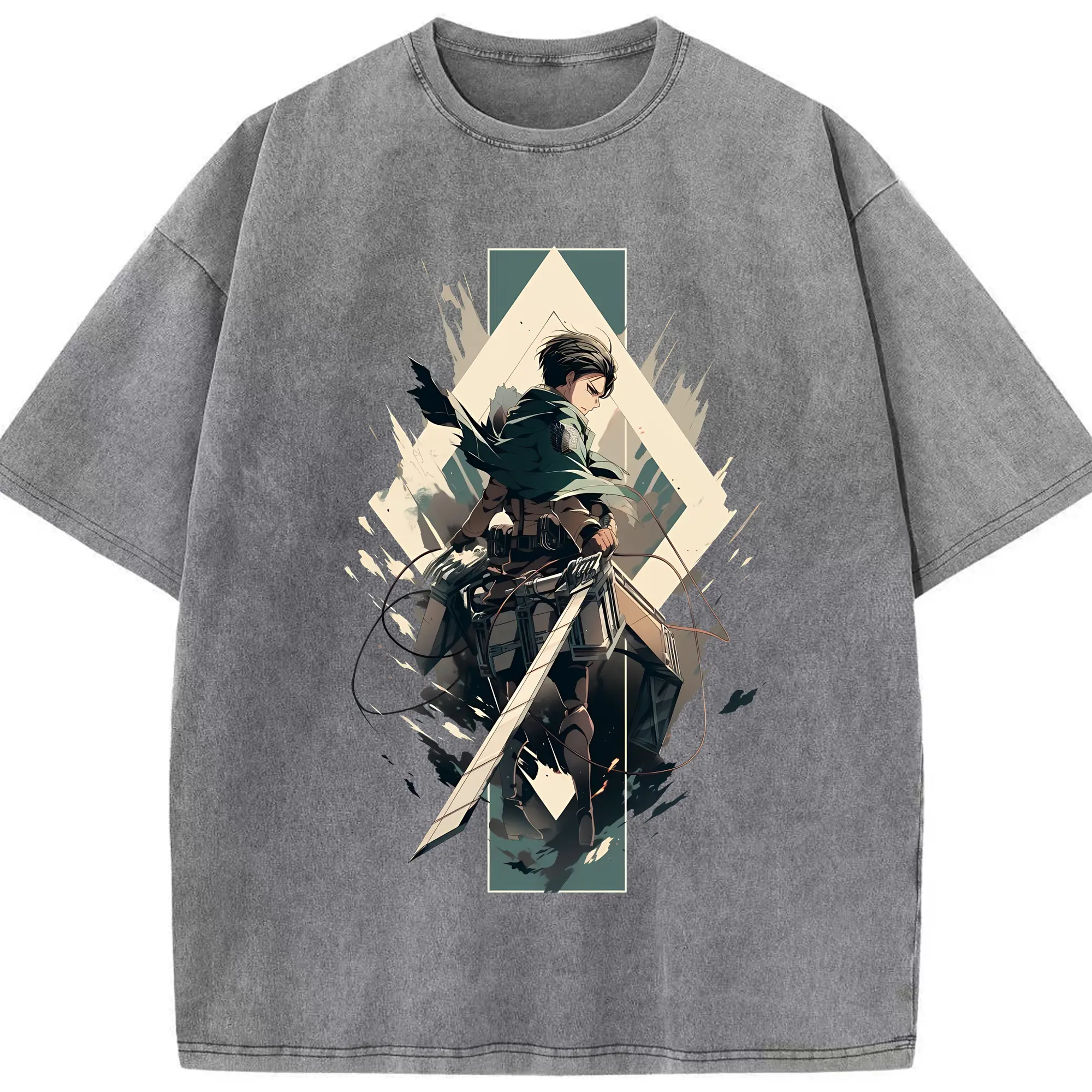 進撃の巨人 グッズ リヴァイ・アッカーマン - 綿100% ヴィンテージ風 半袖Tシャツ ・ 背面プリント ・ 柔らか肌触り ・ 通気性 快適 ・ スポーツ カジュアル 外出用