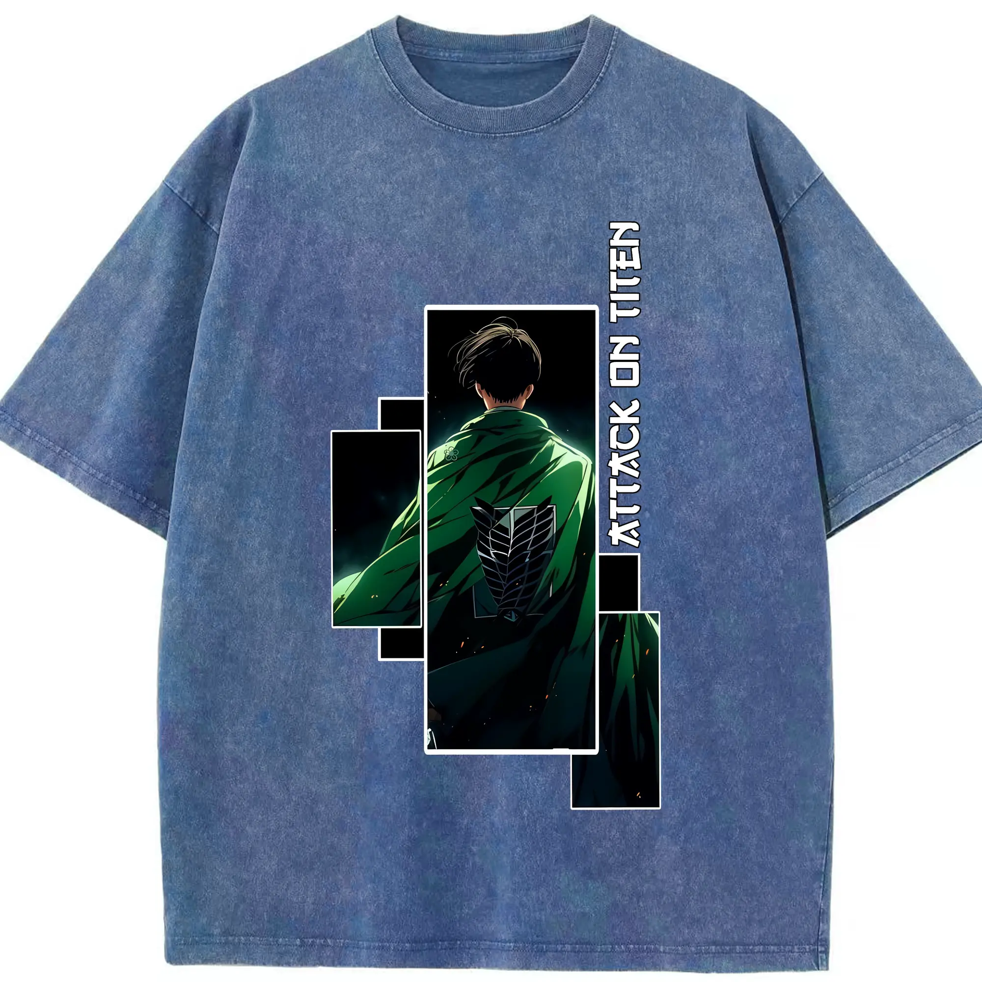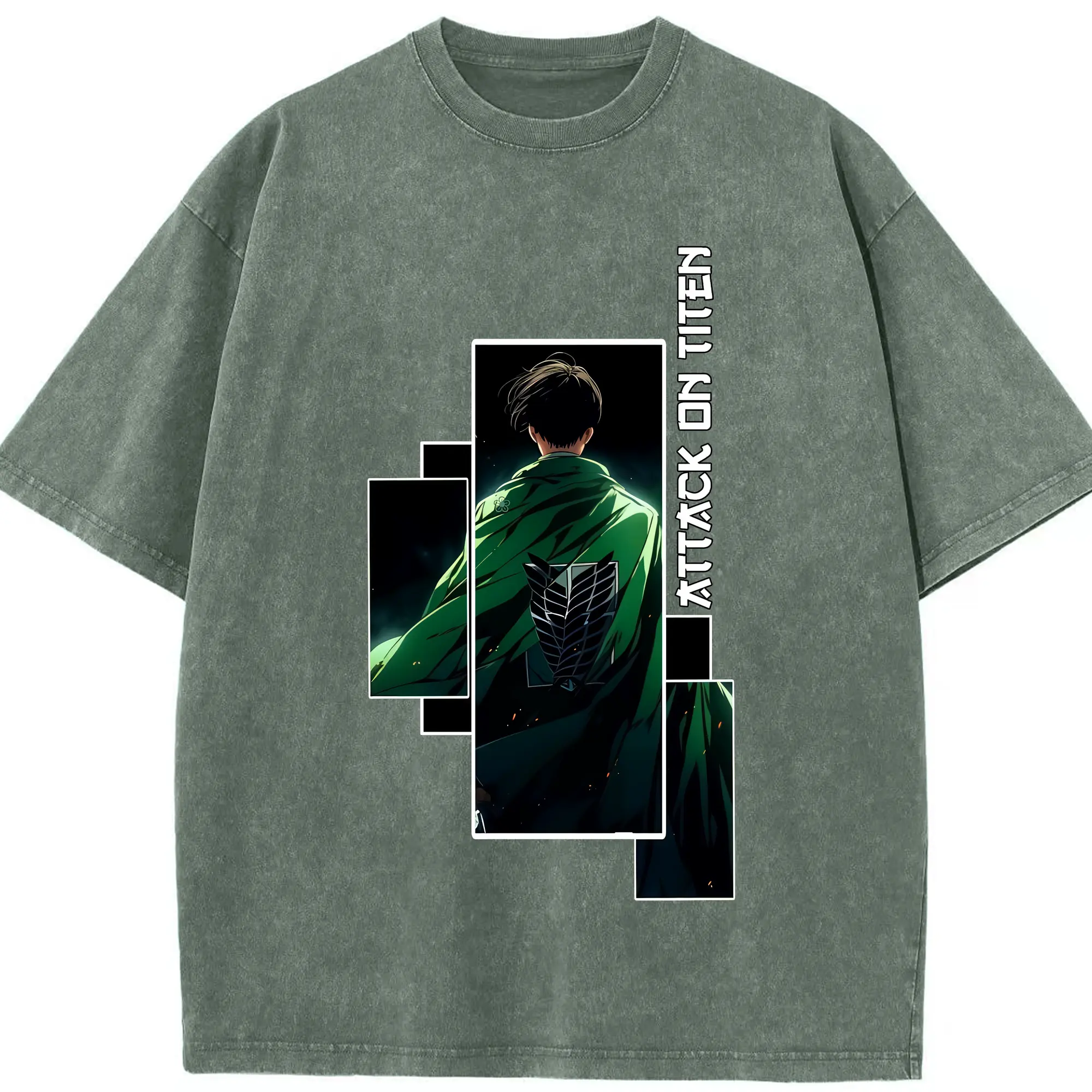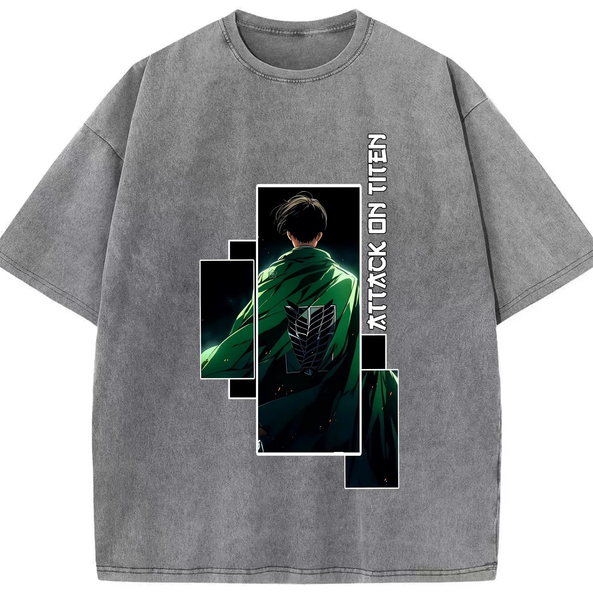 進撃の巨人 グッズ リヴァイ・アッカーマン - 綿100% ヴィンテージ風 半袖Tシャツ ・ 背面プリント ・ 柔らか肌触り ・ 通気性 快適 ・ スポーツ カジュアル 外出用