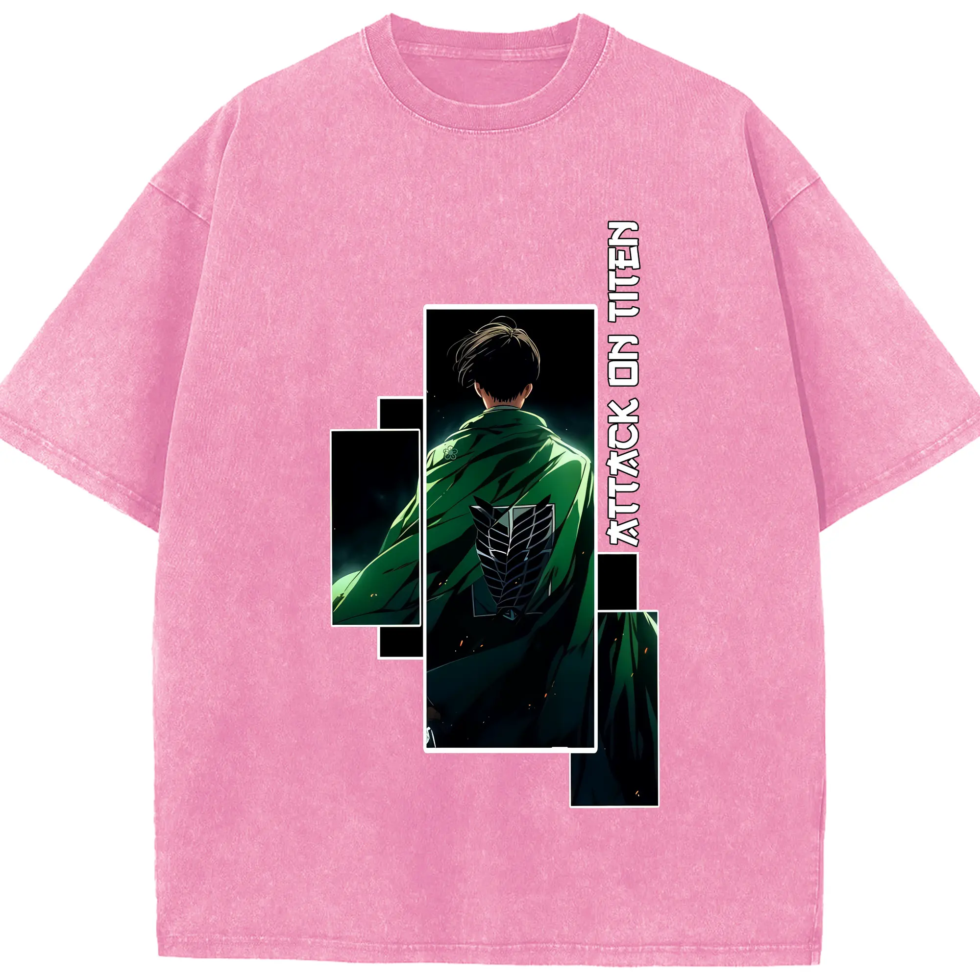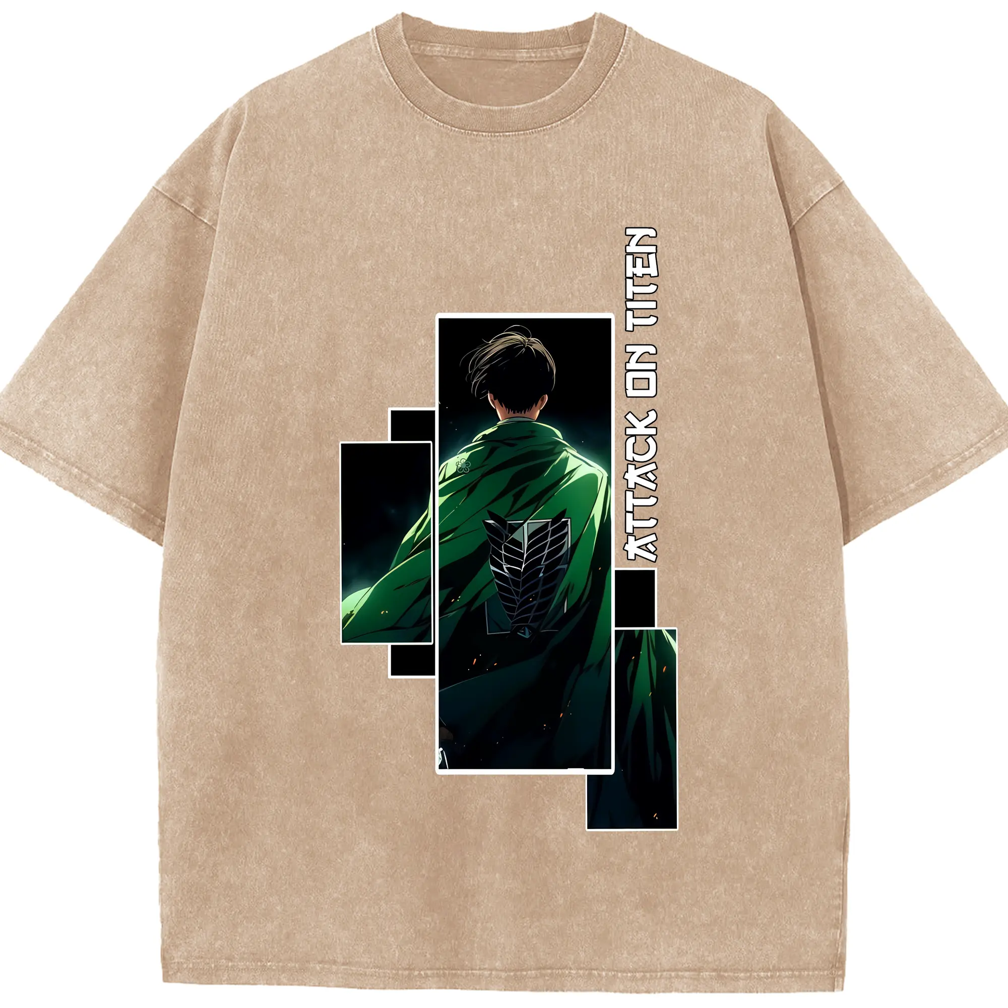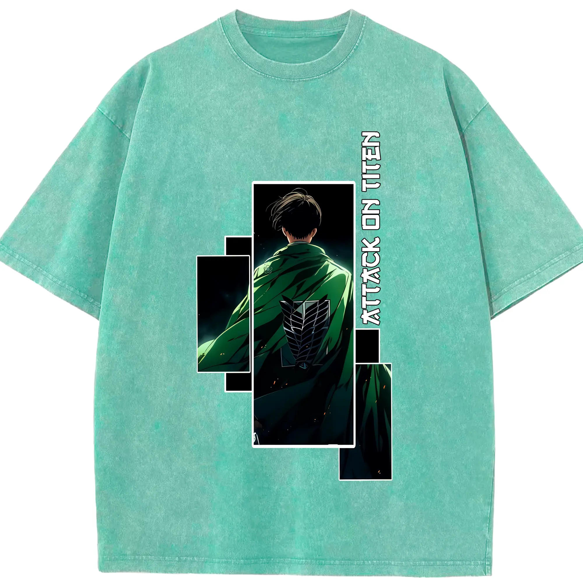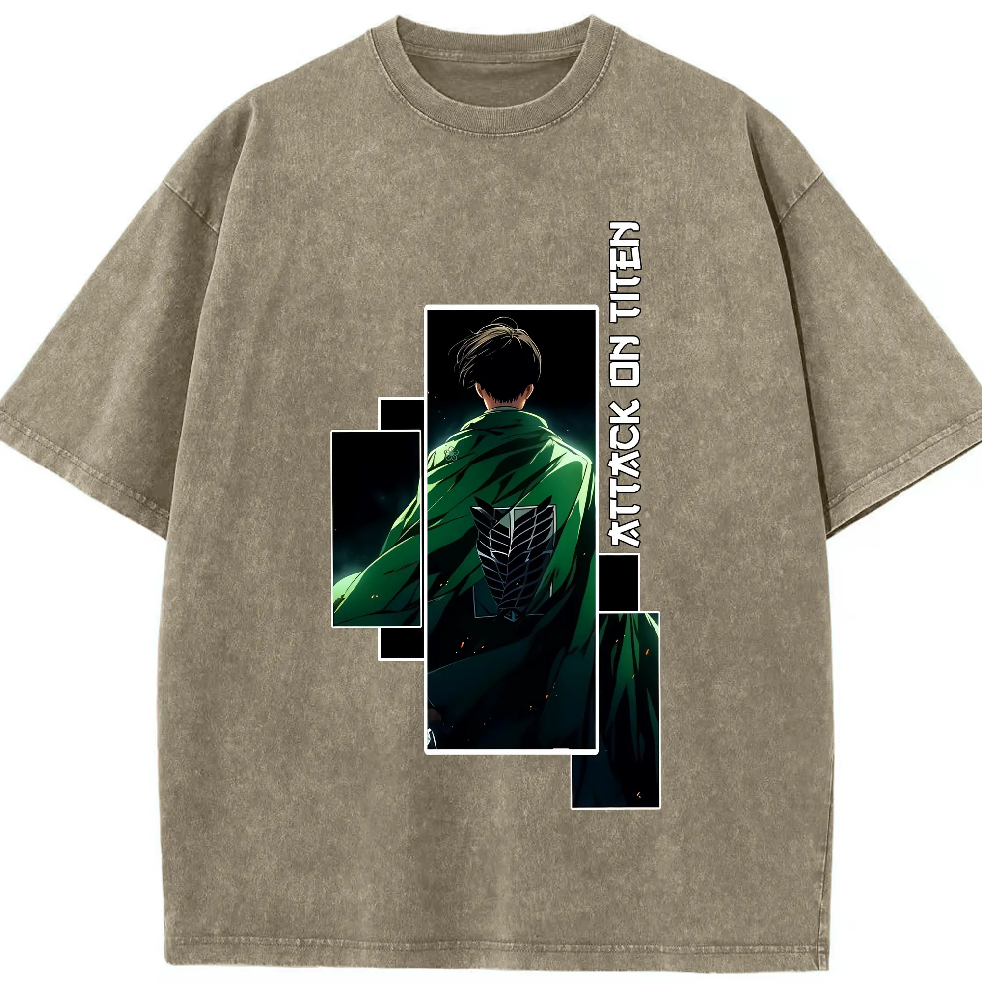 進撃の巨人 グッズ リヴァイ・アッカーマン - 綿100% ヴィンテージ風 半袖Tシャツ ・ 背面プリント ・ 柔らか肌触り ・ 通気性 快適 ・ スポーツ カジュアル 外出用