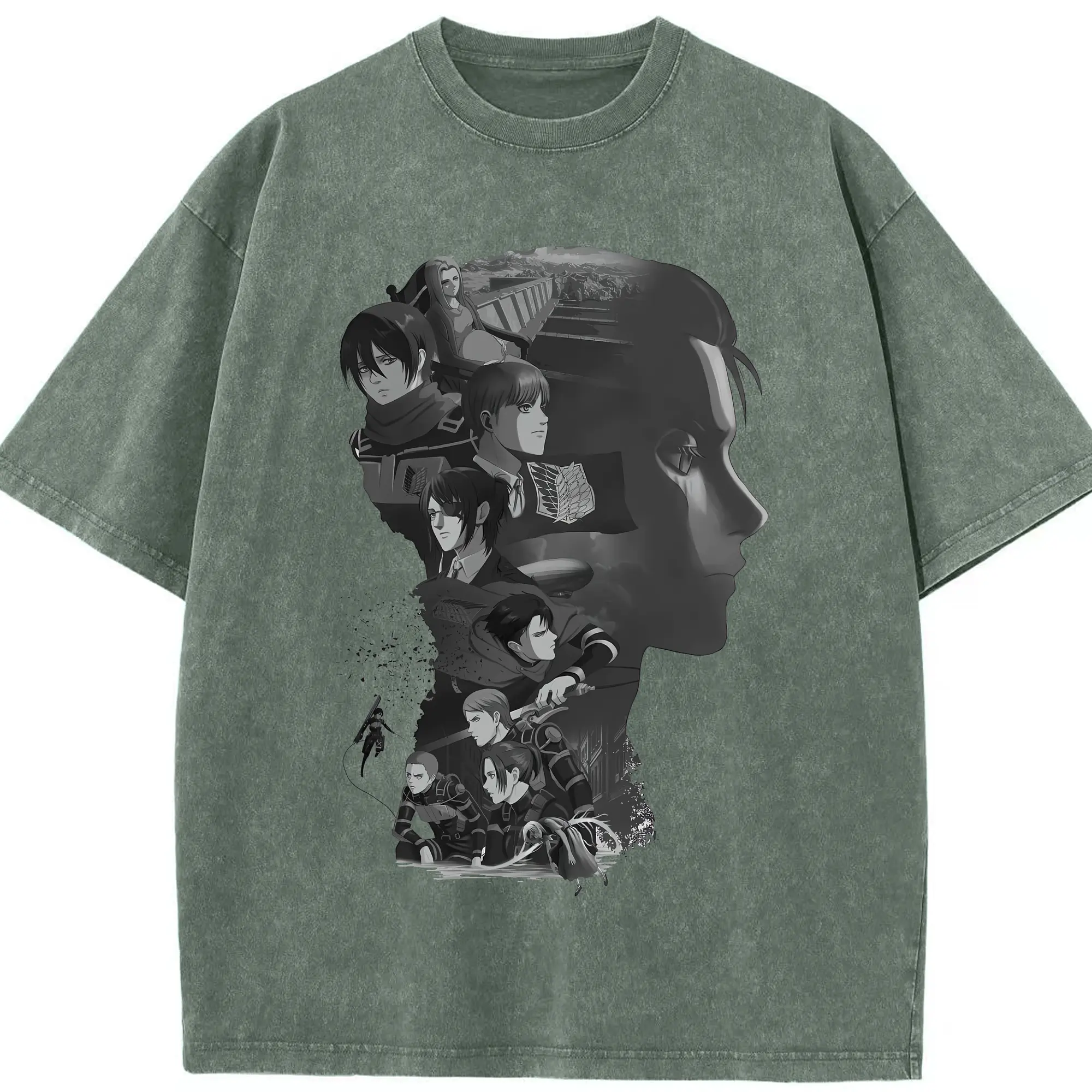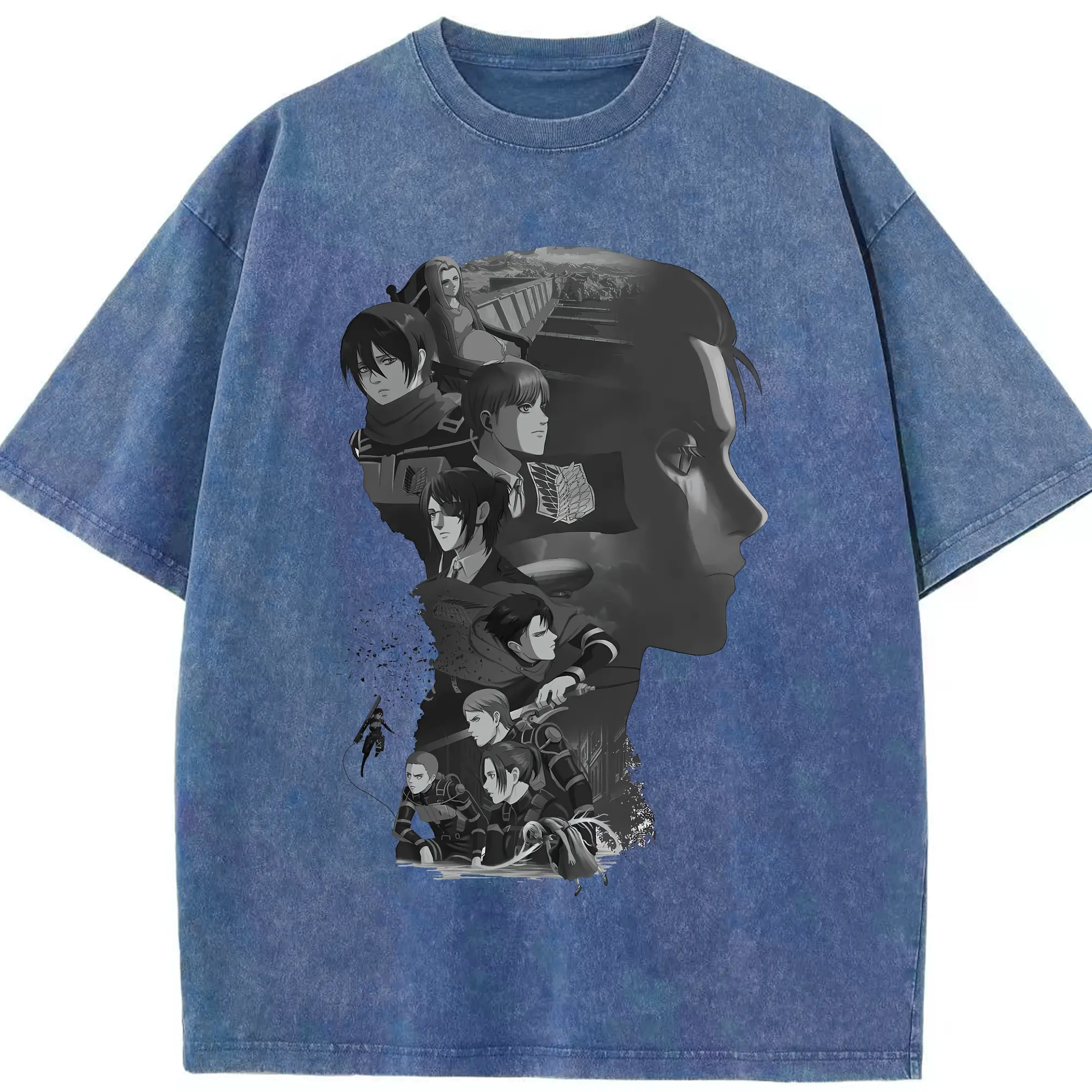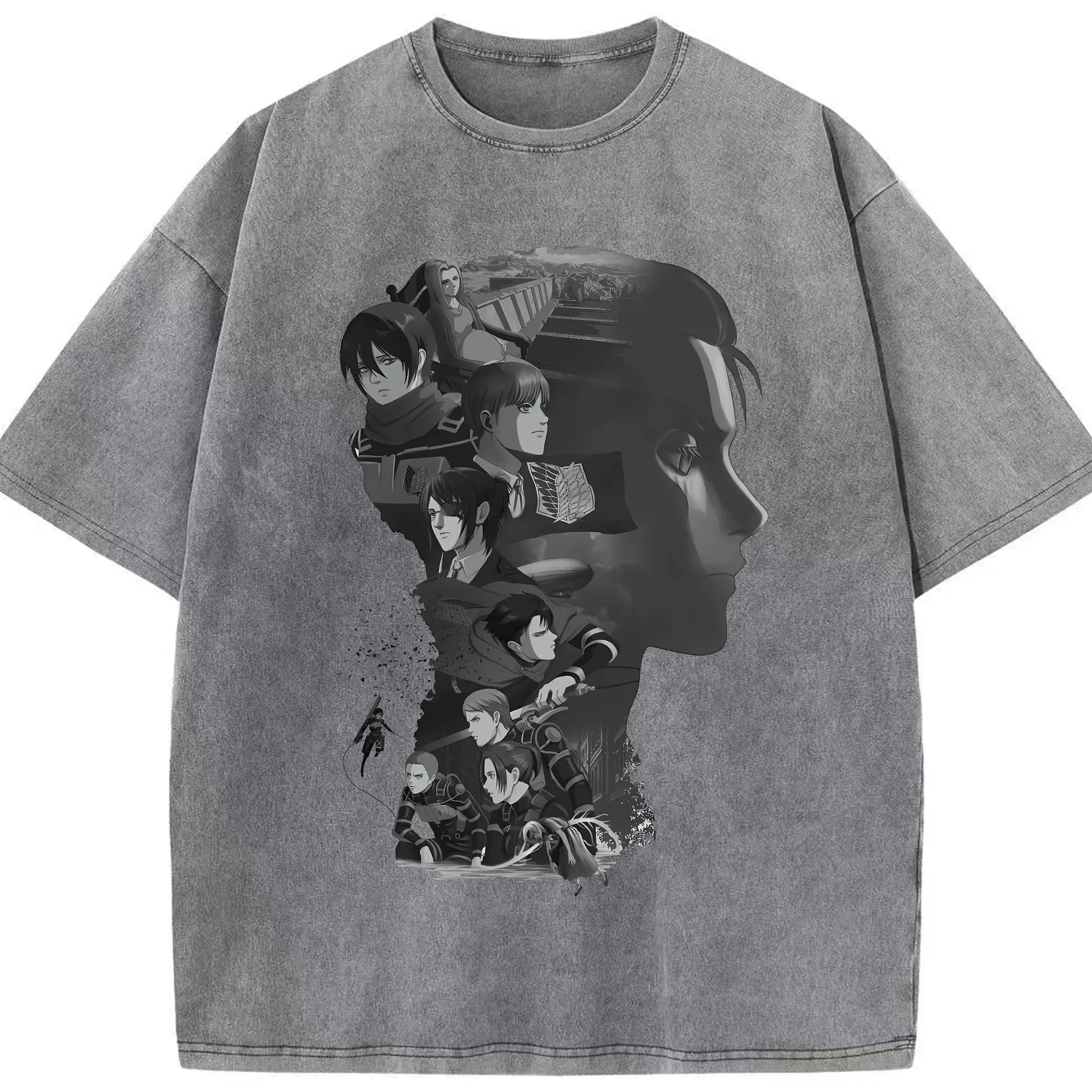 進撃の巨人 グッズ リヴァイ・アッカーマン - 綿100% ヴィンテージ風 半袖Tシャツ ・ 背面プリント ・ 柔らか肌触り ・ 通気性 快適 ・ スポーツ カジュアル 外出用
