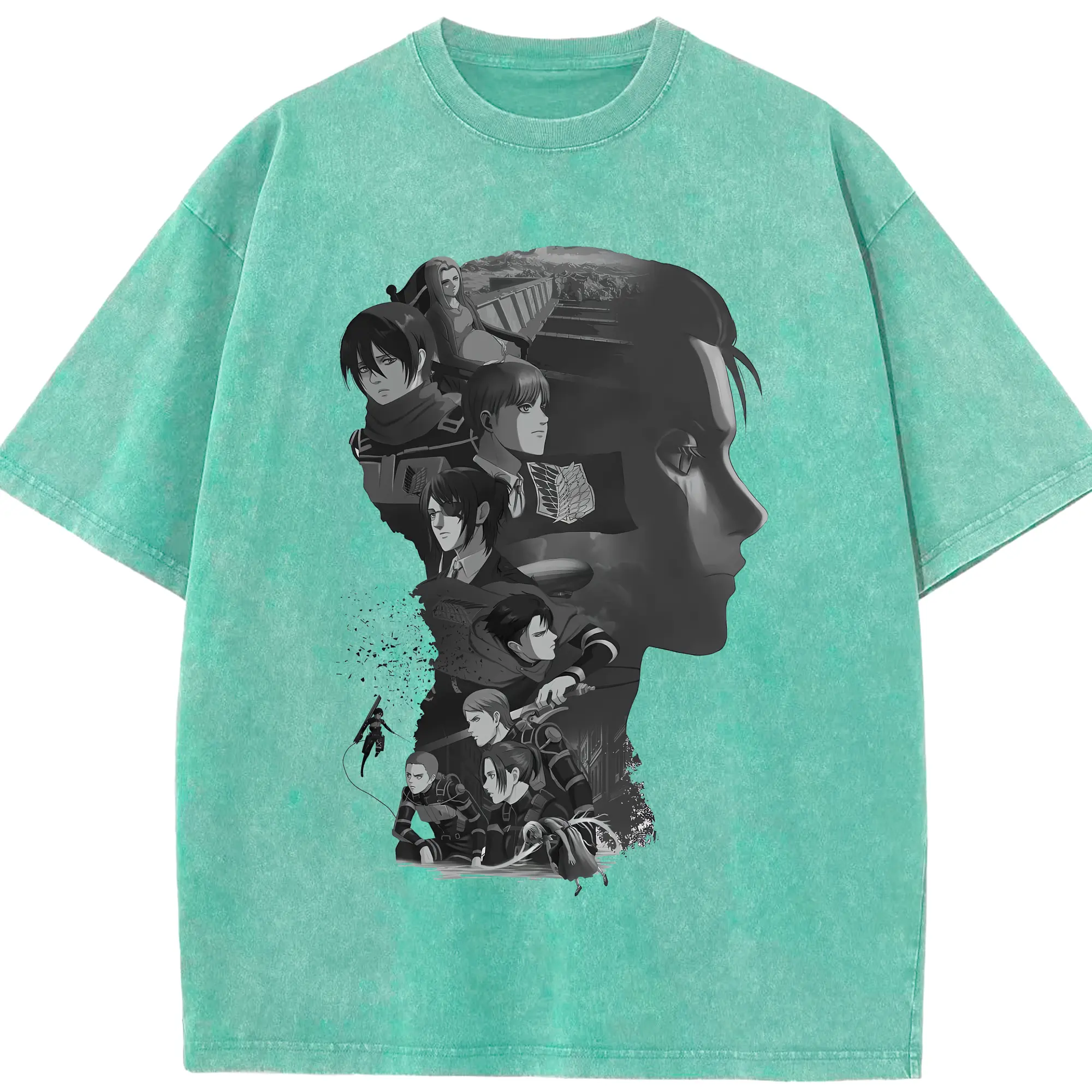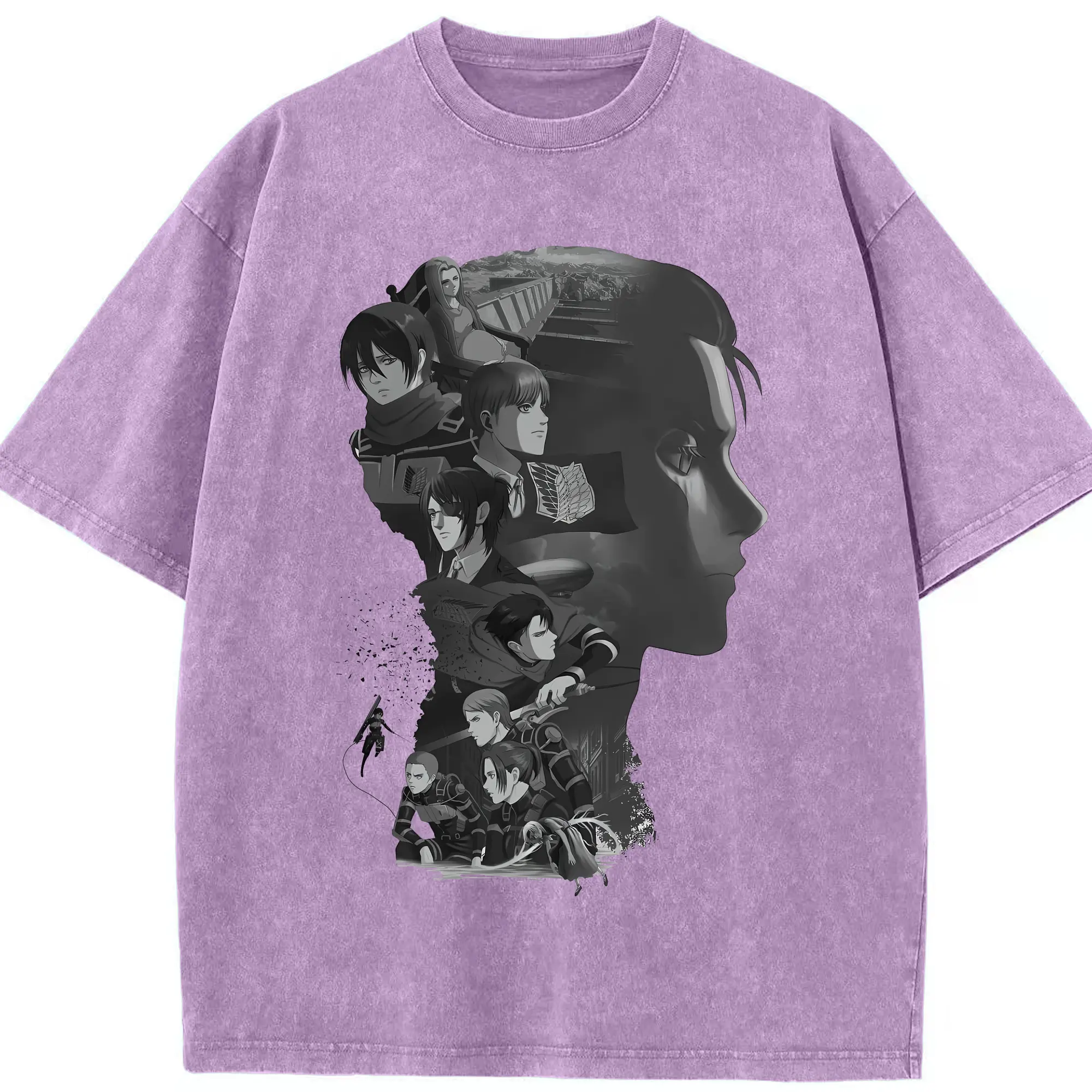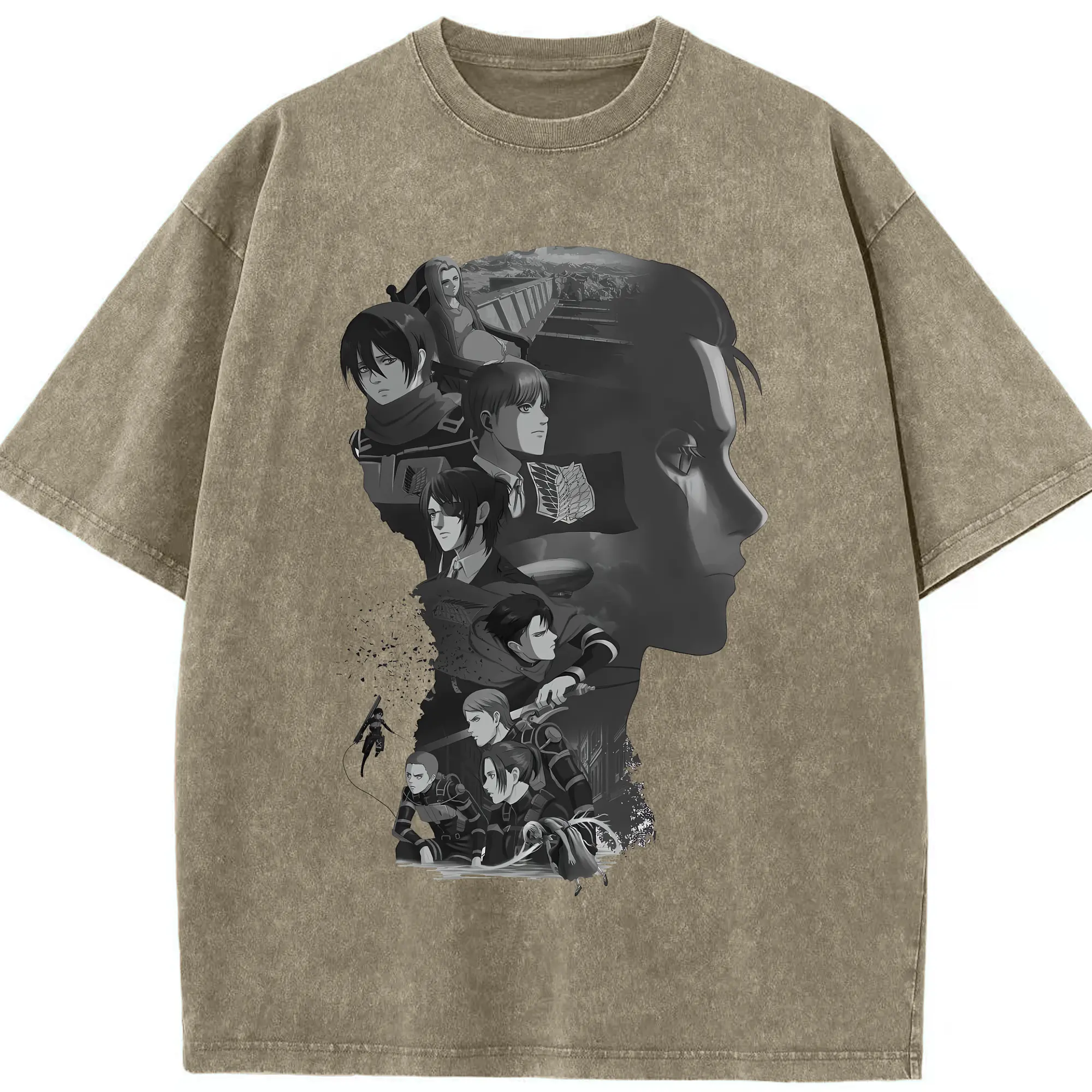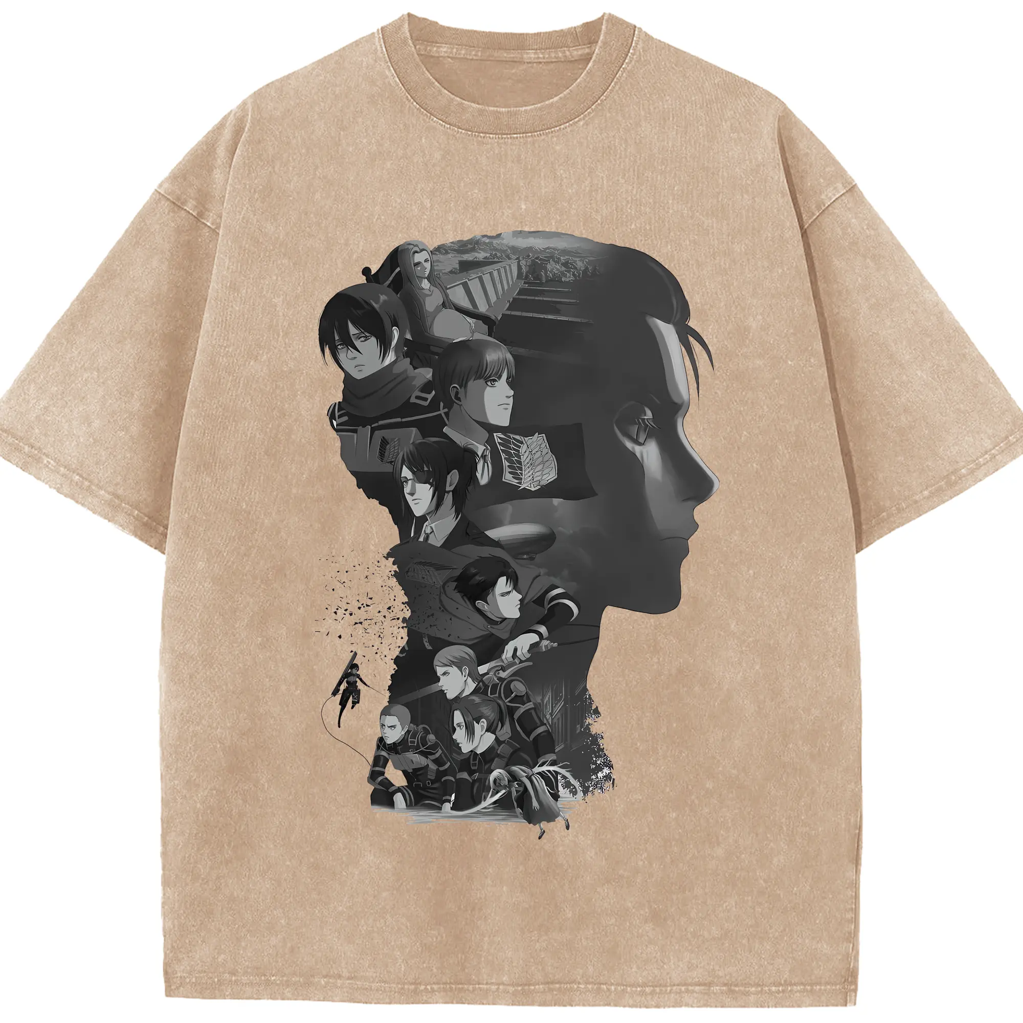 進撃の巨人 グッズ リヴァイ・アッカーマン - 綿100% ヴィンテージ風 半袖Tシャツ ・ 背面プリント ・ 柔らか肌触り ・ 通気性 快適 ・ スポーツ カジュアル 外出用