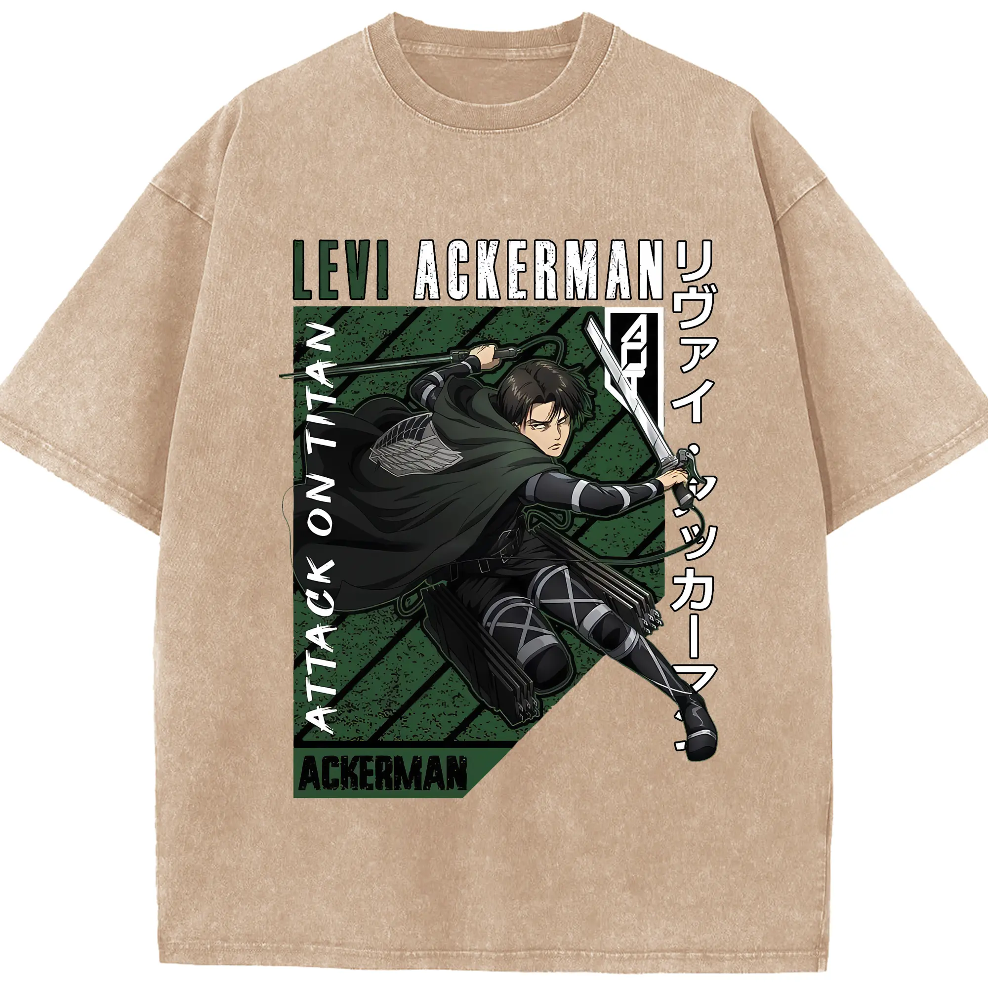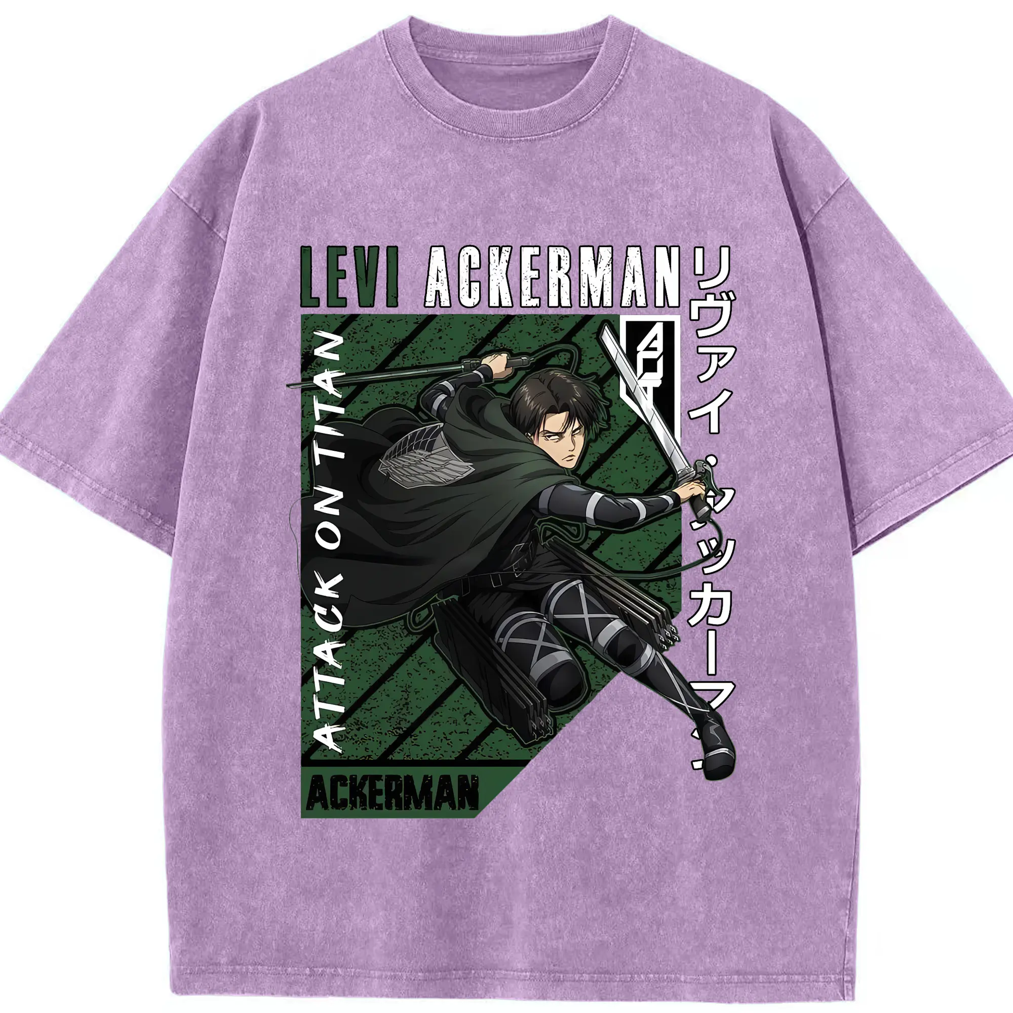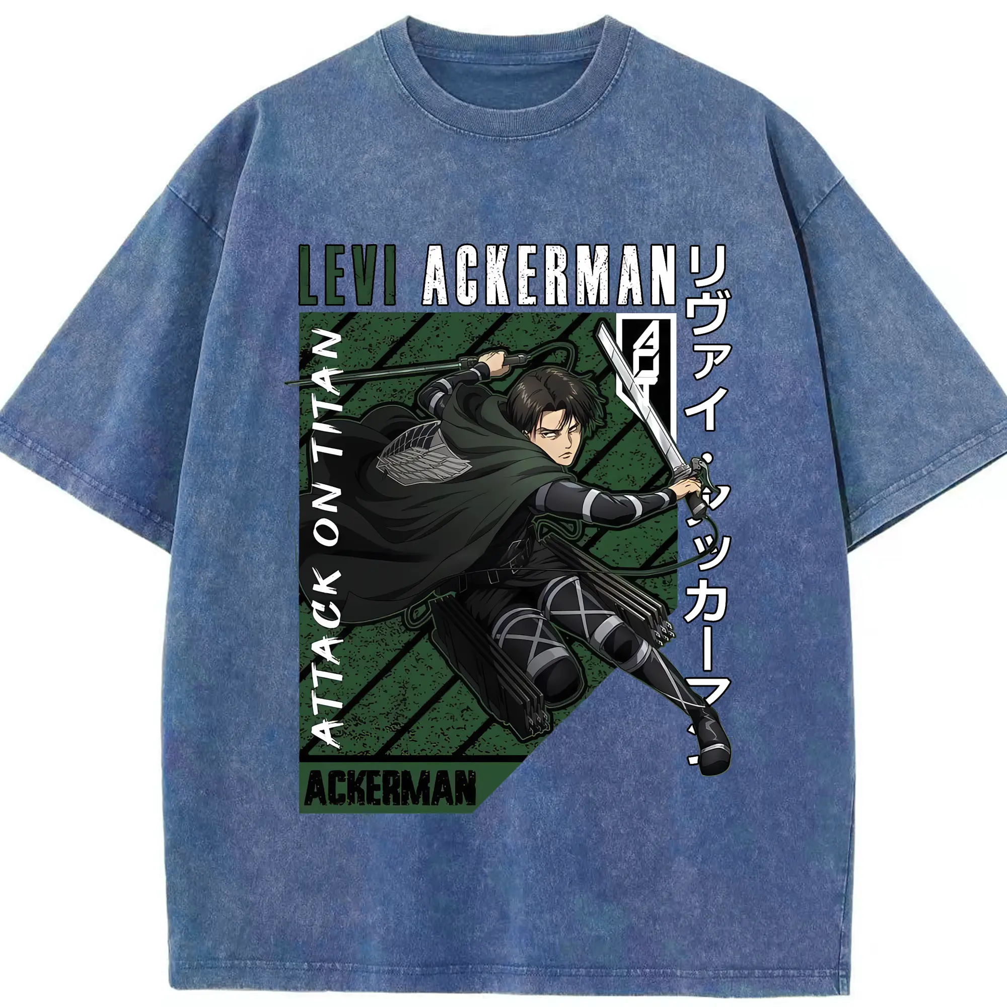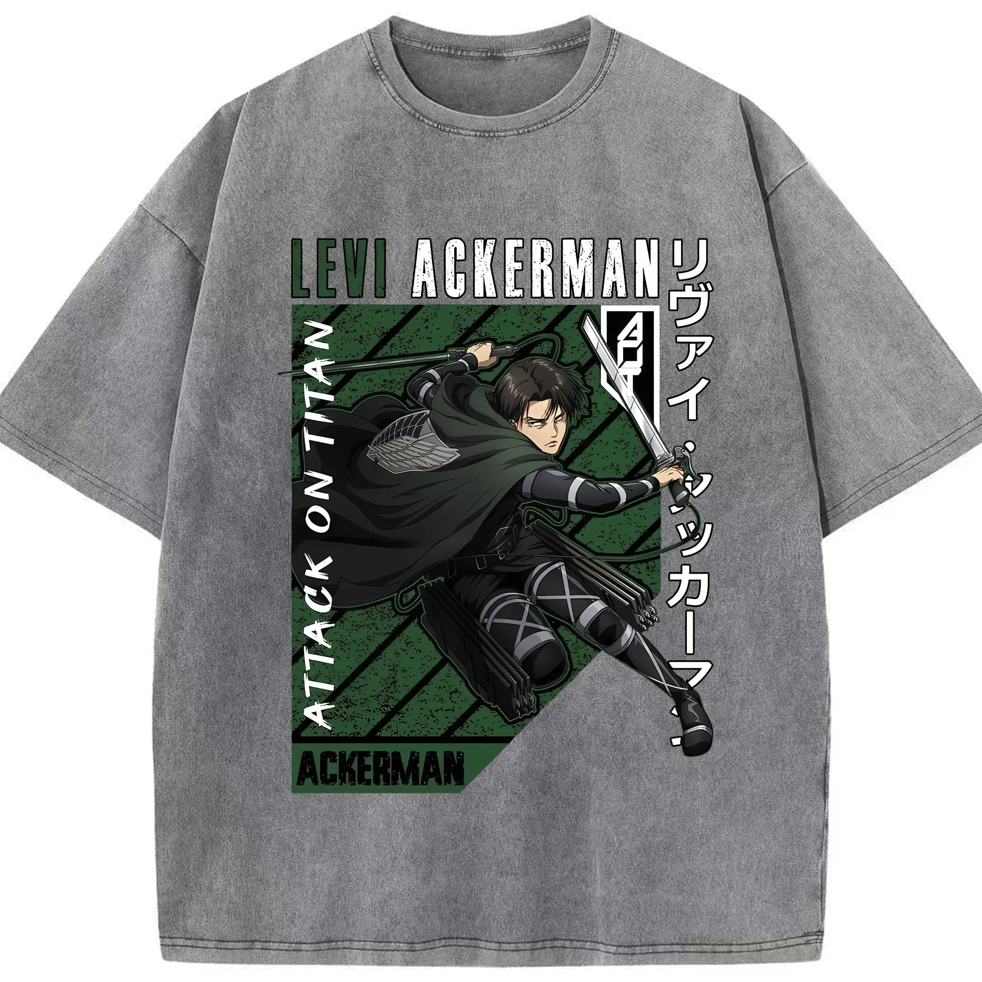 進撃の巨人 グッズ リヴァイ・アッカーマン - 綿100% ヴィンテージ風 半袖Tシャツ ・ 背面プリント ・ 柔らか肌触り ・ 通気性 快適 ・ スポーツ カジュアル 外出用