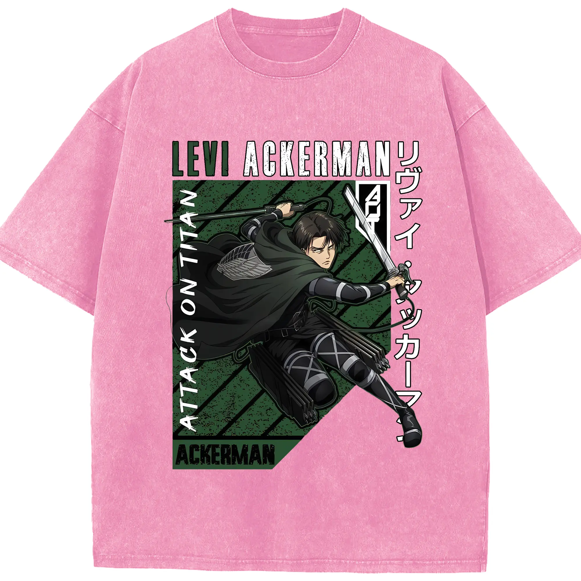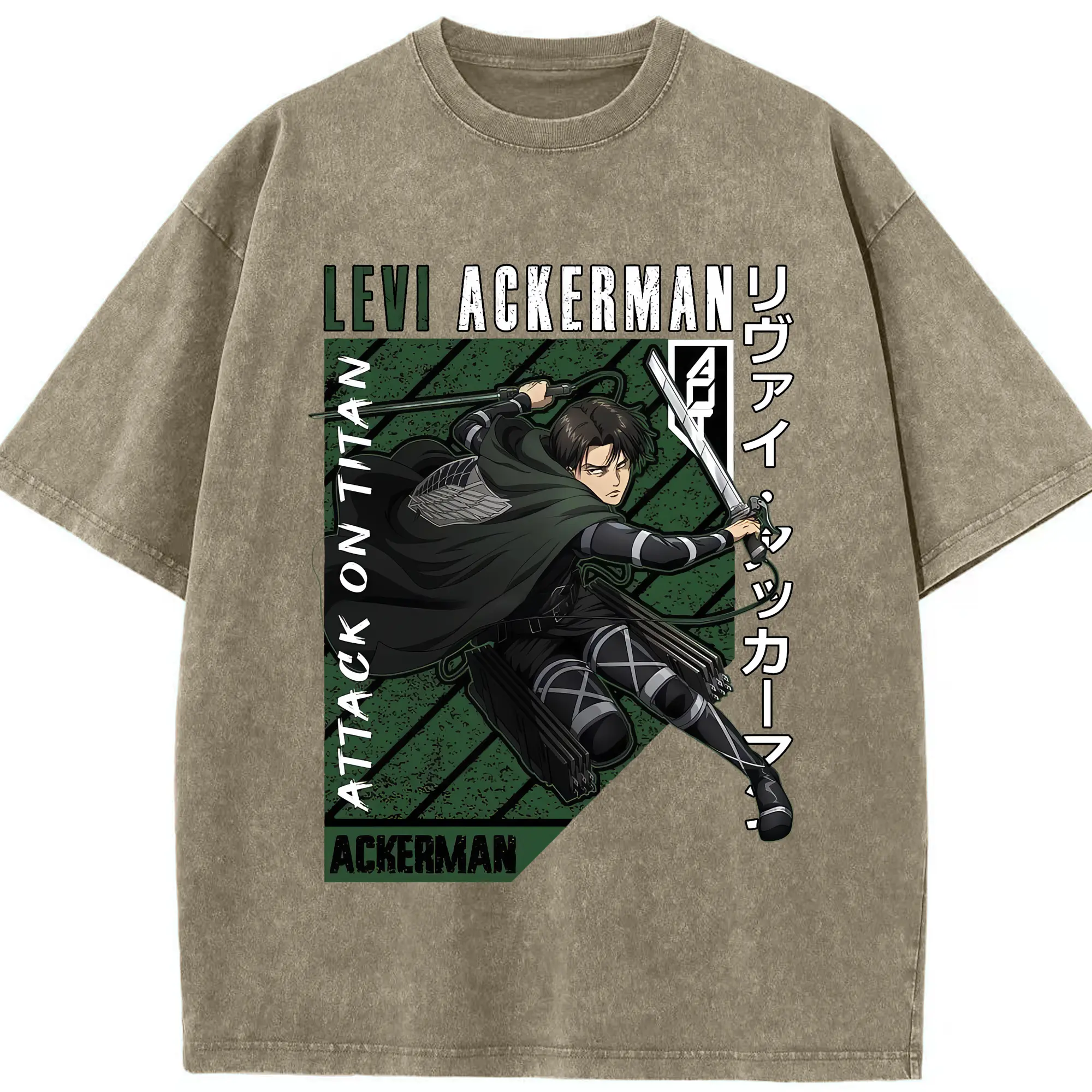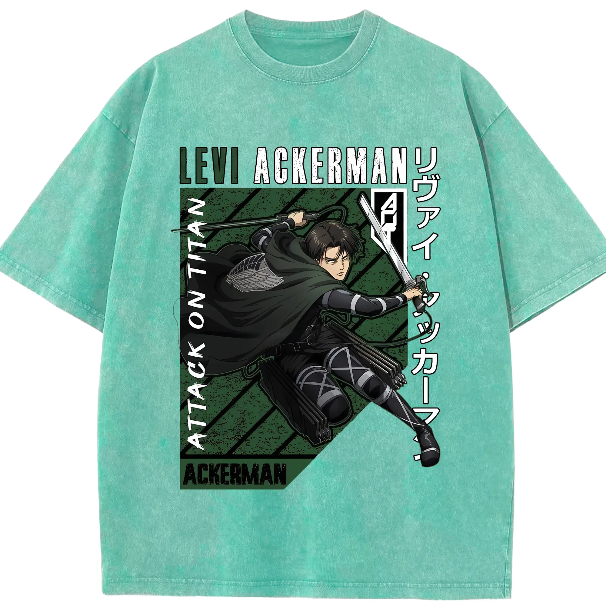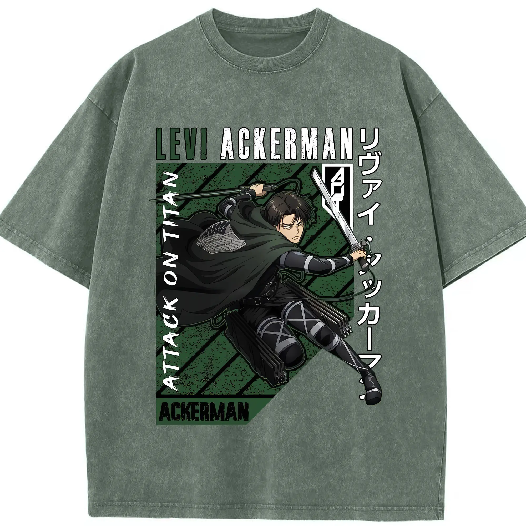 進撃の巨人 グッズ リヴァイ・アッカーマン - 綿100% ヴィンテージ風 半袖Tシャツ ・ 背面プリント ・ 柔らか肌触り ・ 通気性 快適 ・ スポーツ カジュアル 外出用