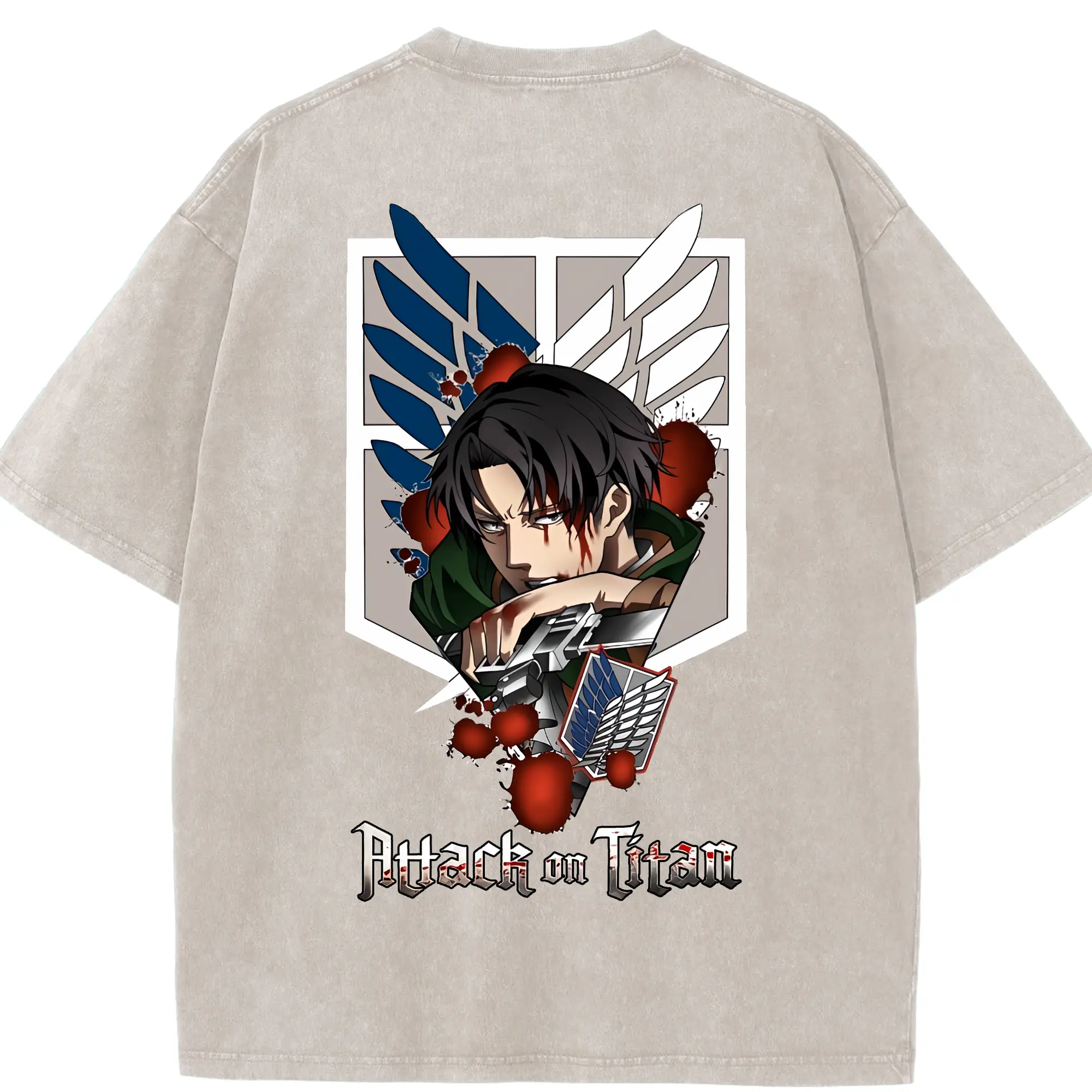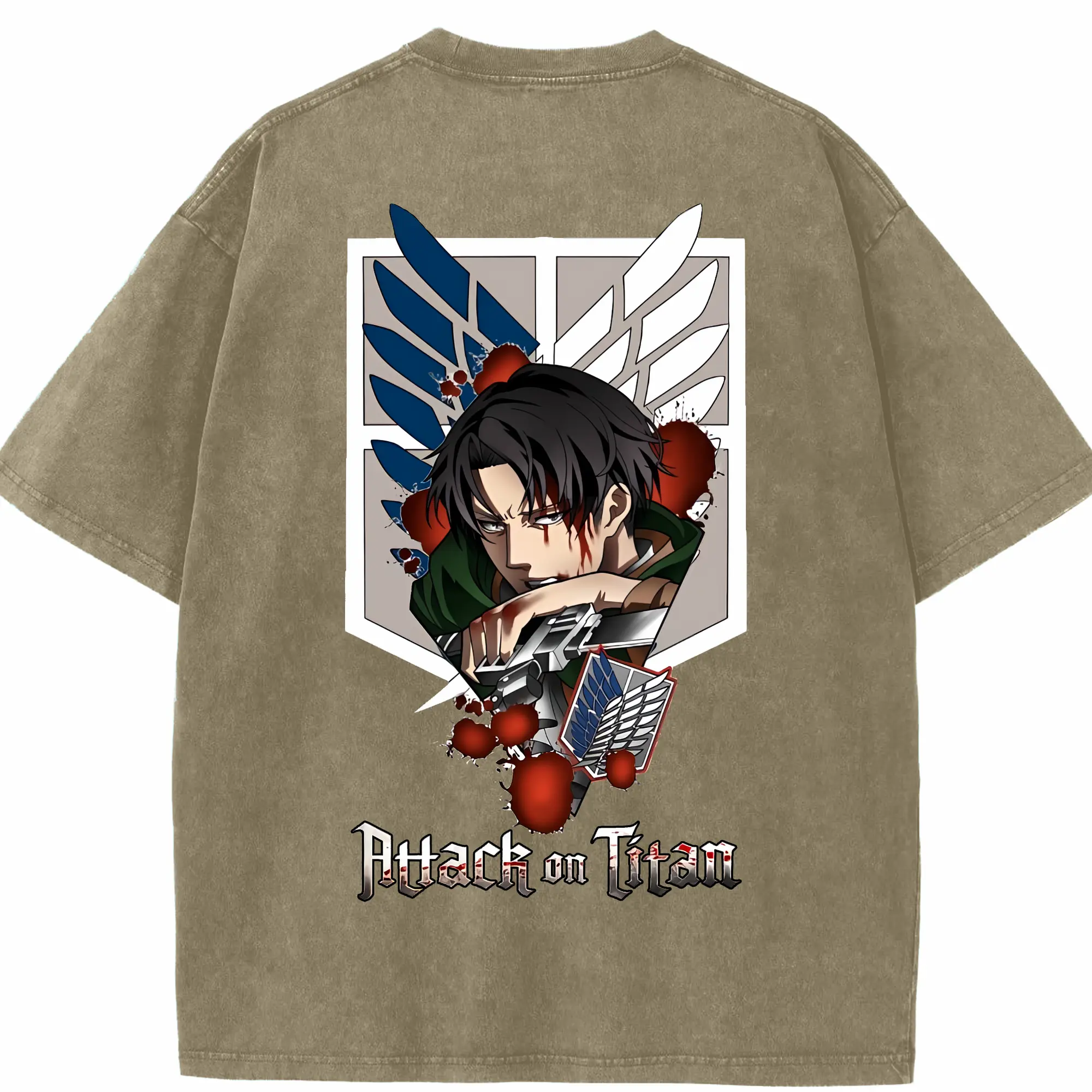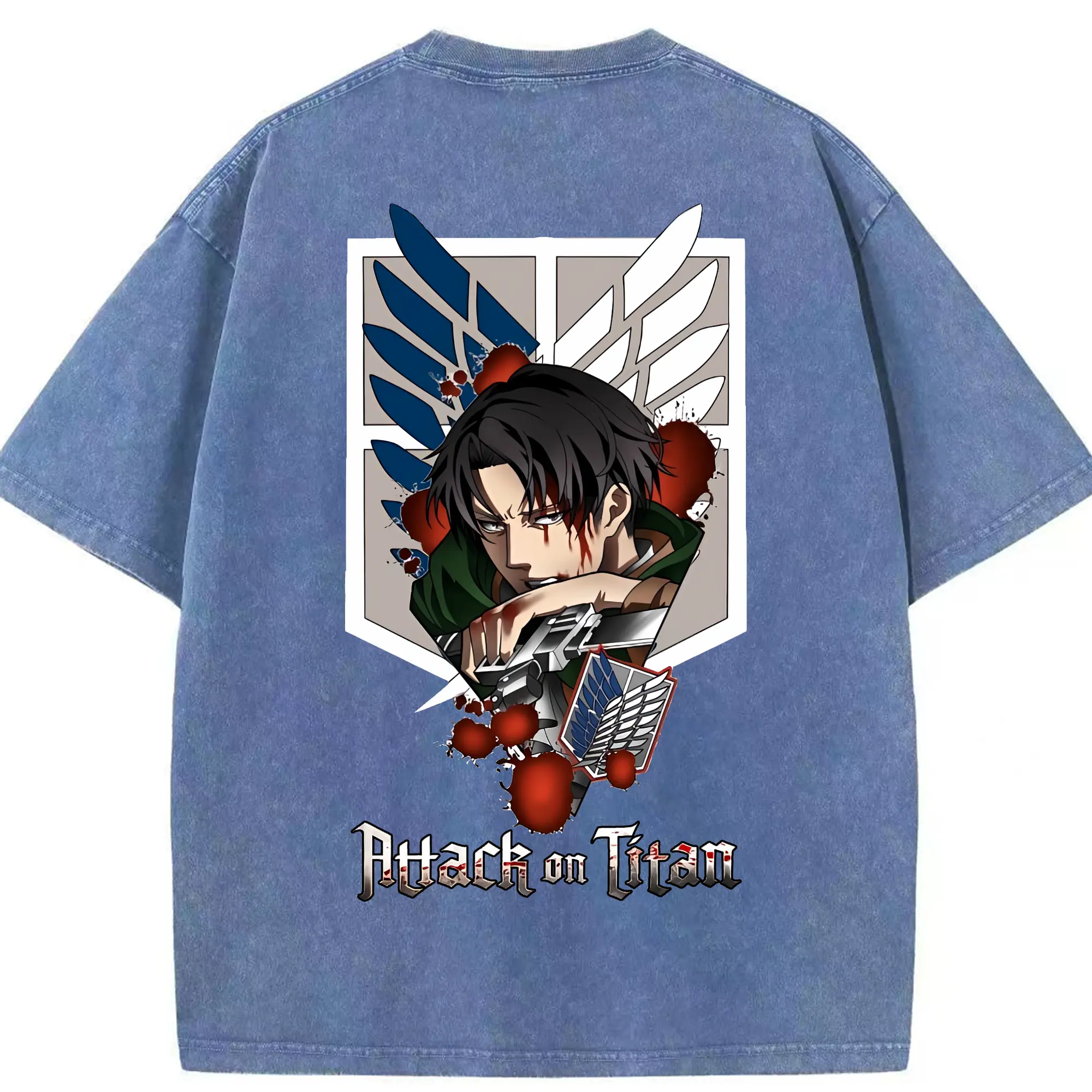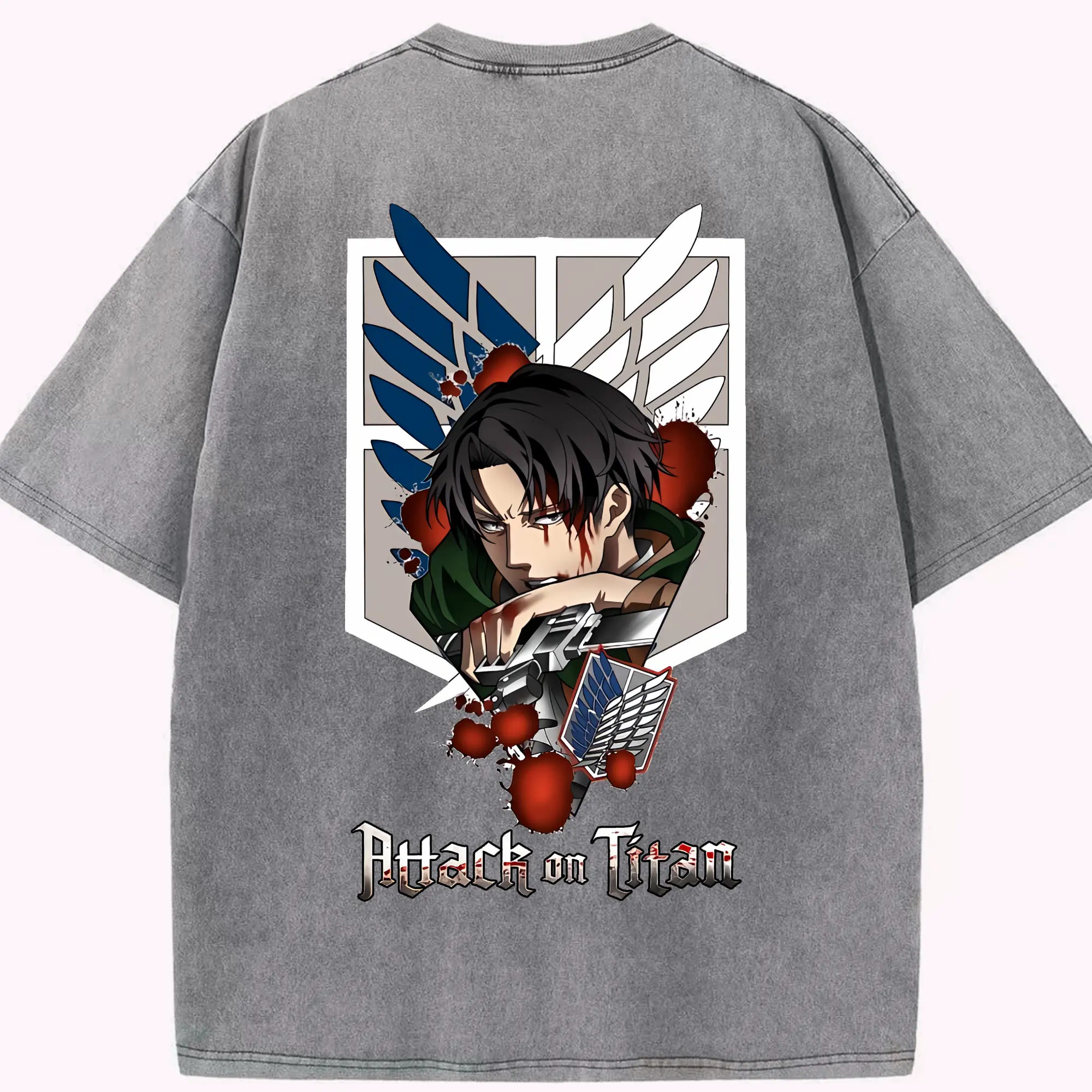 進撃の巨人 グッズ リヴァイ・アッカーマン - 綿100% ヴィンテージ風 半袖Tシャツ ・ フロントプリント ・ 柔らか肌触り ・ 通気性 快適 ・ スポーツ カジュアル 外出用