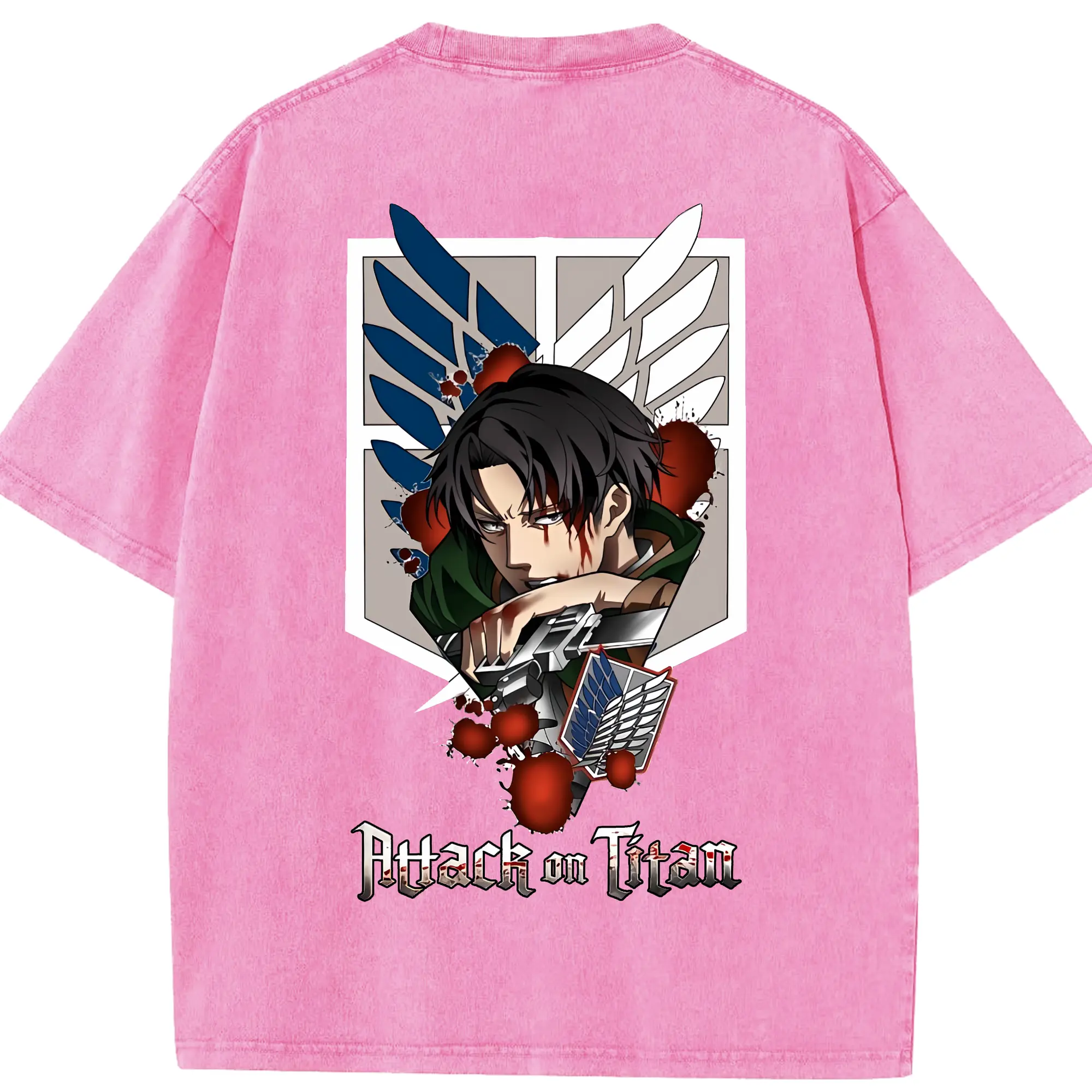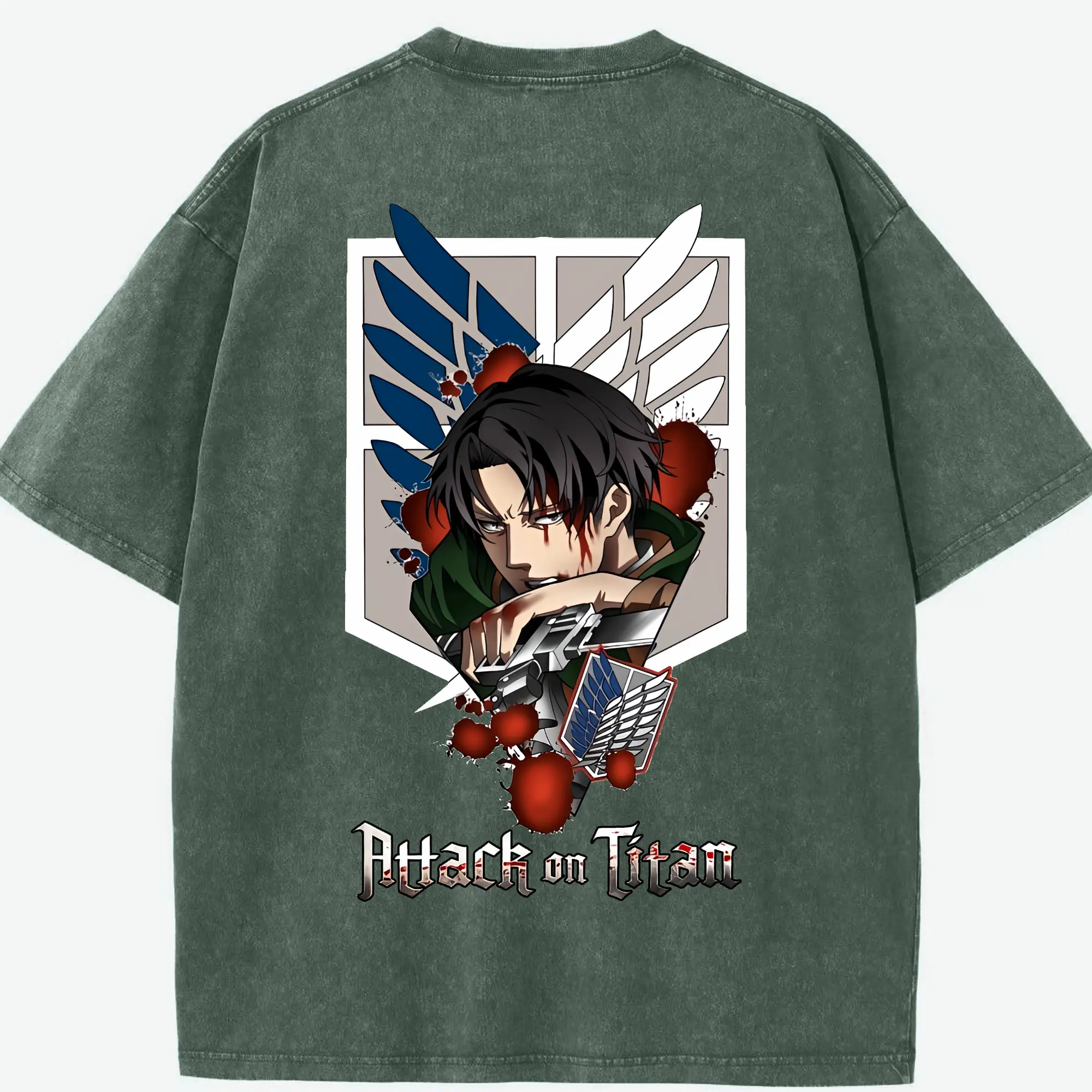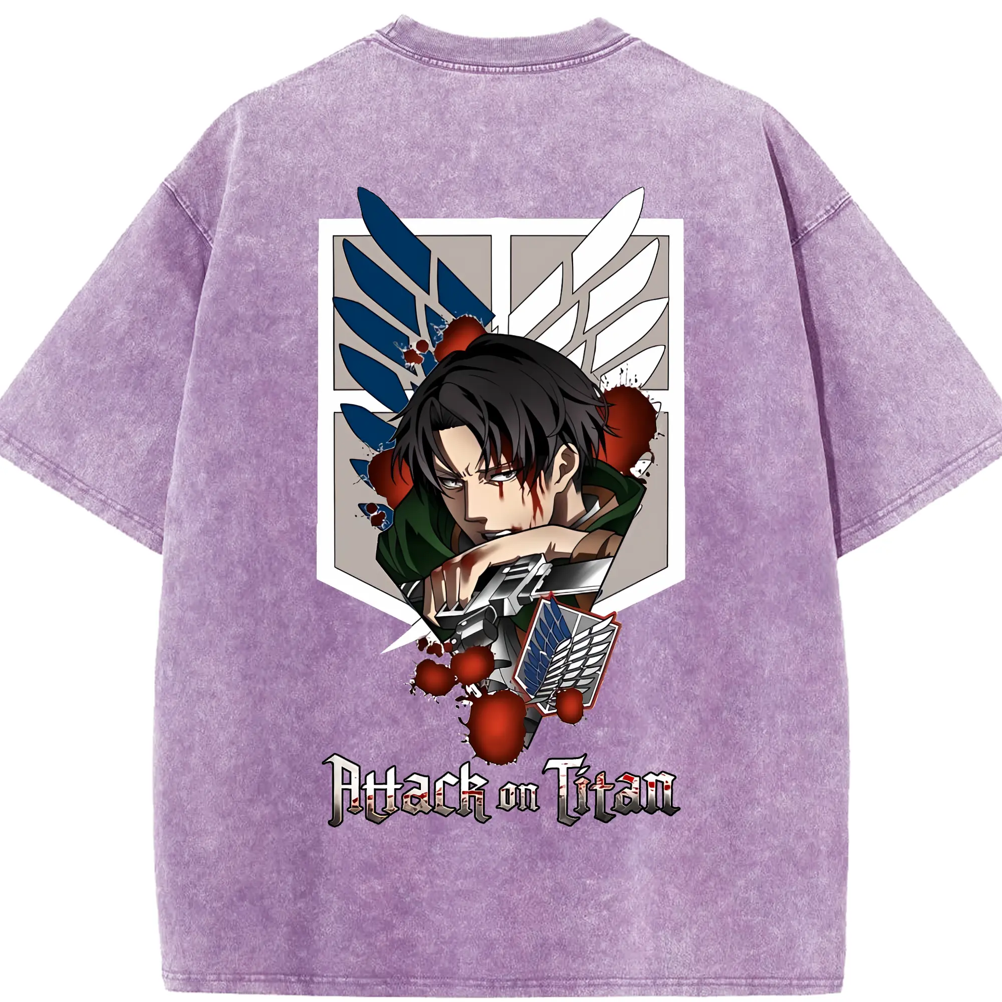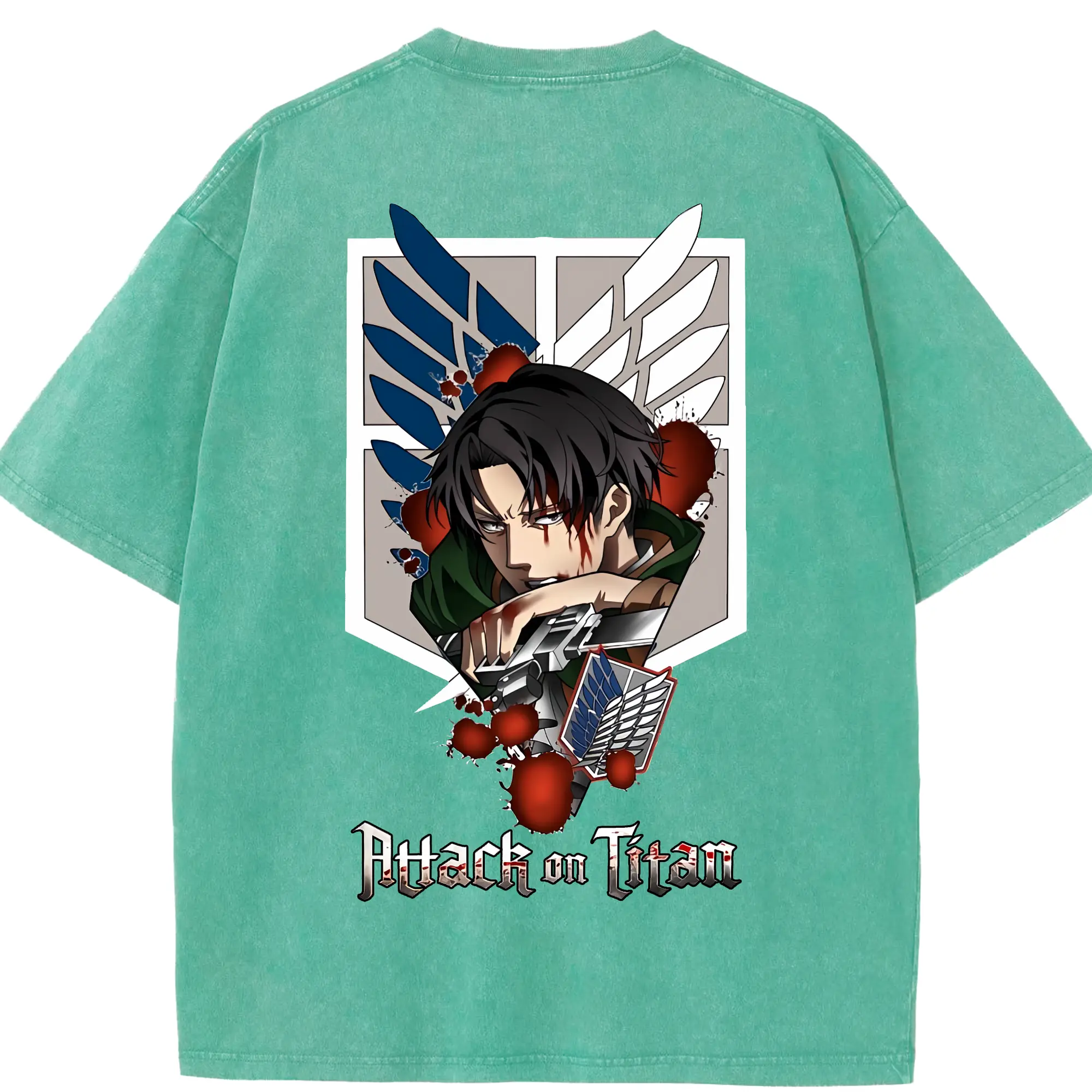 進撃の巨人 グッズ リヴァイ・アッカーマン - 綿100% ヴィンテージ風 半袖Tシャツ ・ フロントプリント ・ 柔らか肌触り ・ 通気性 快適 ・ スポーツ カジュアル 外出用