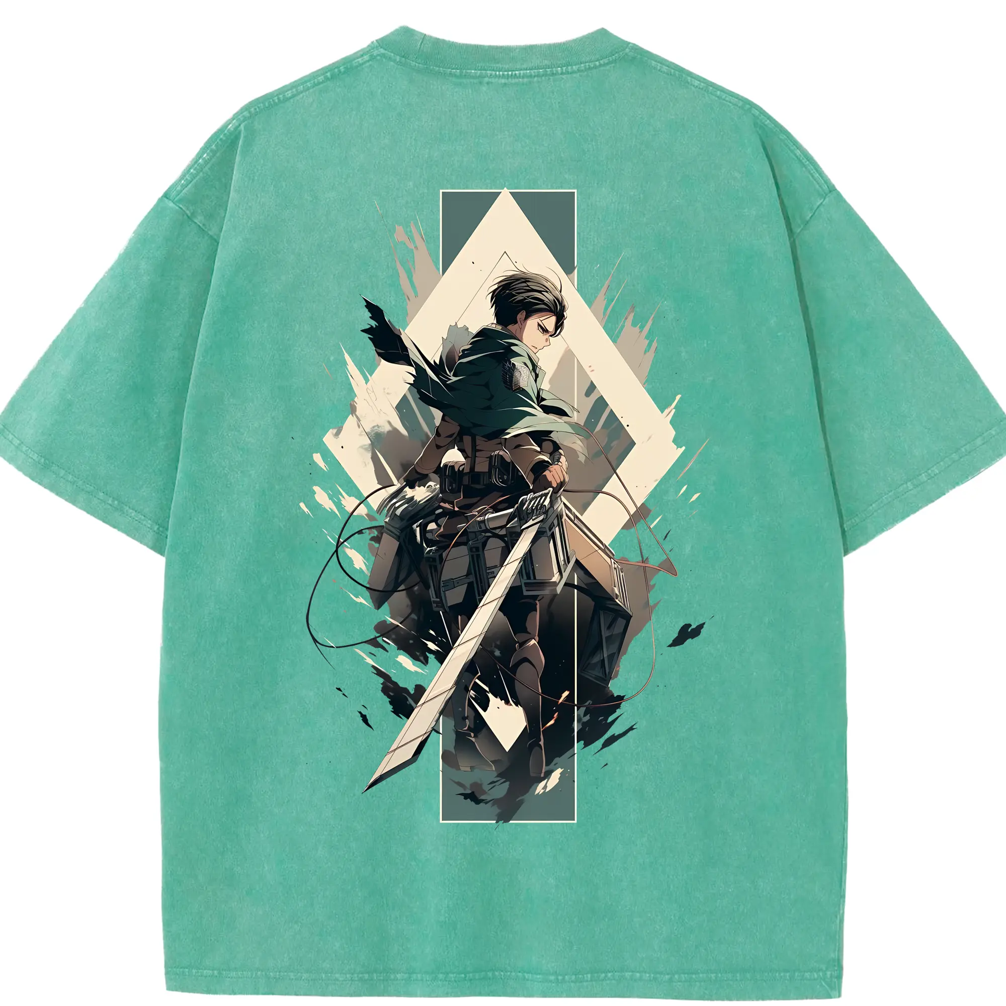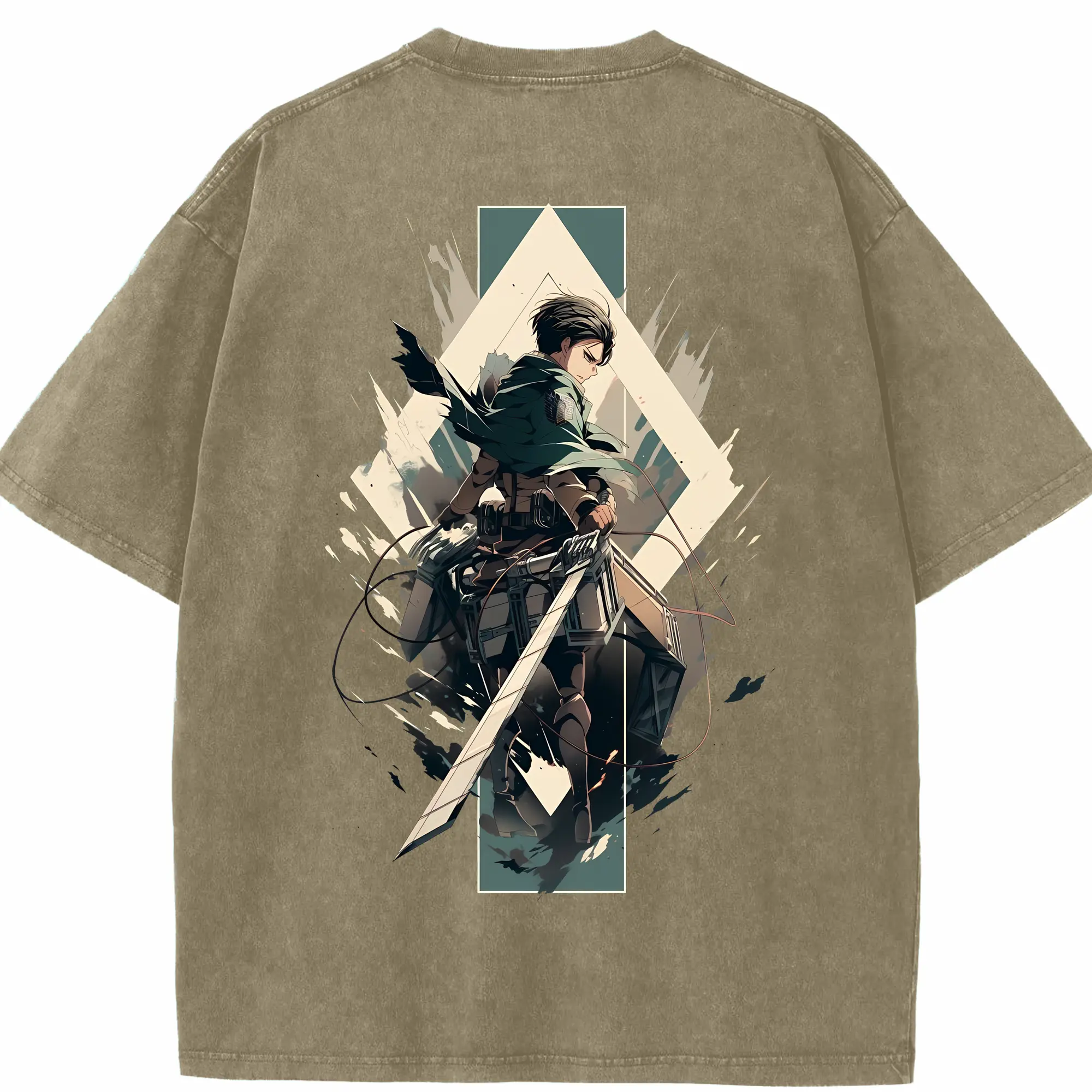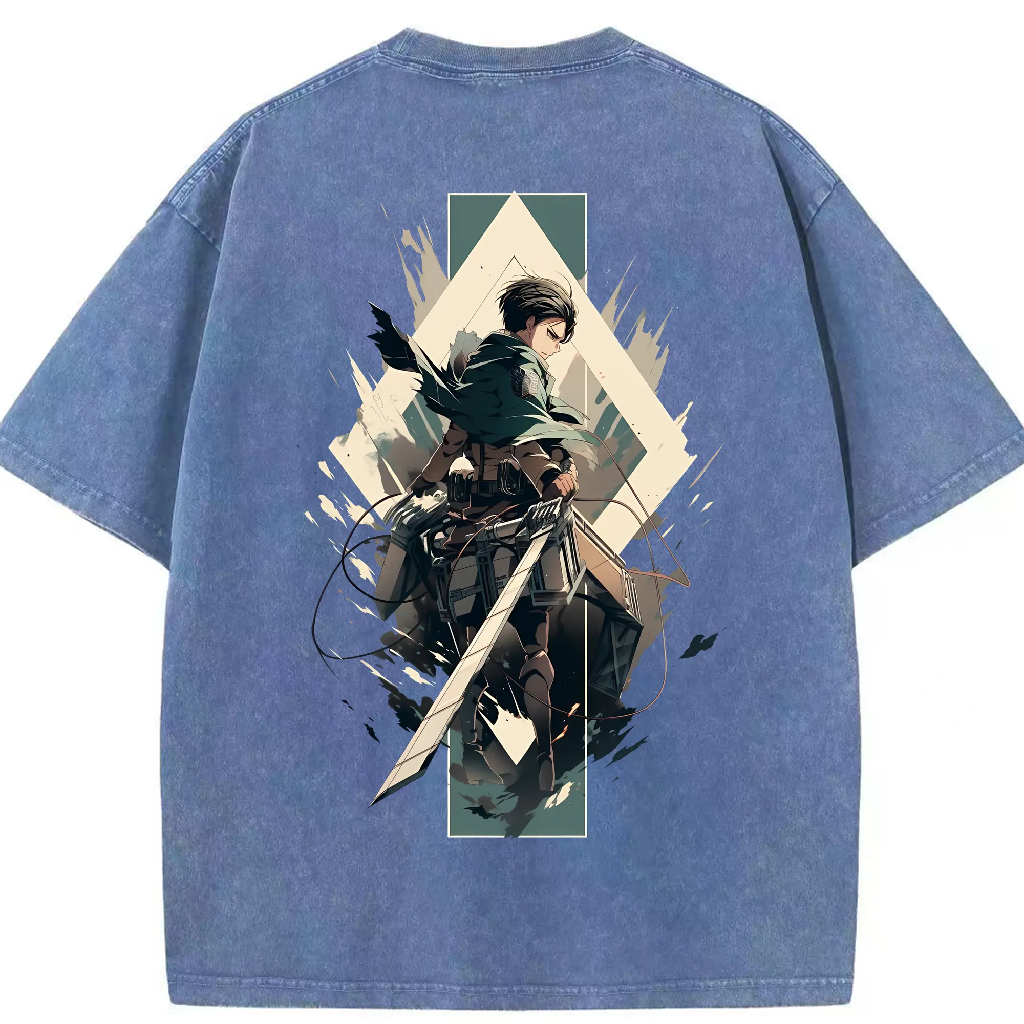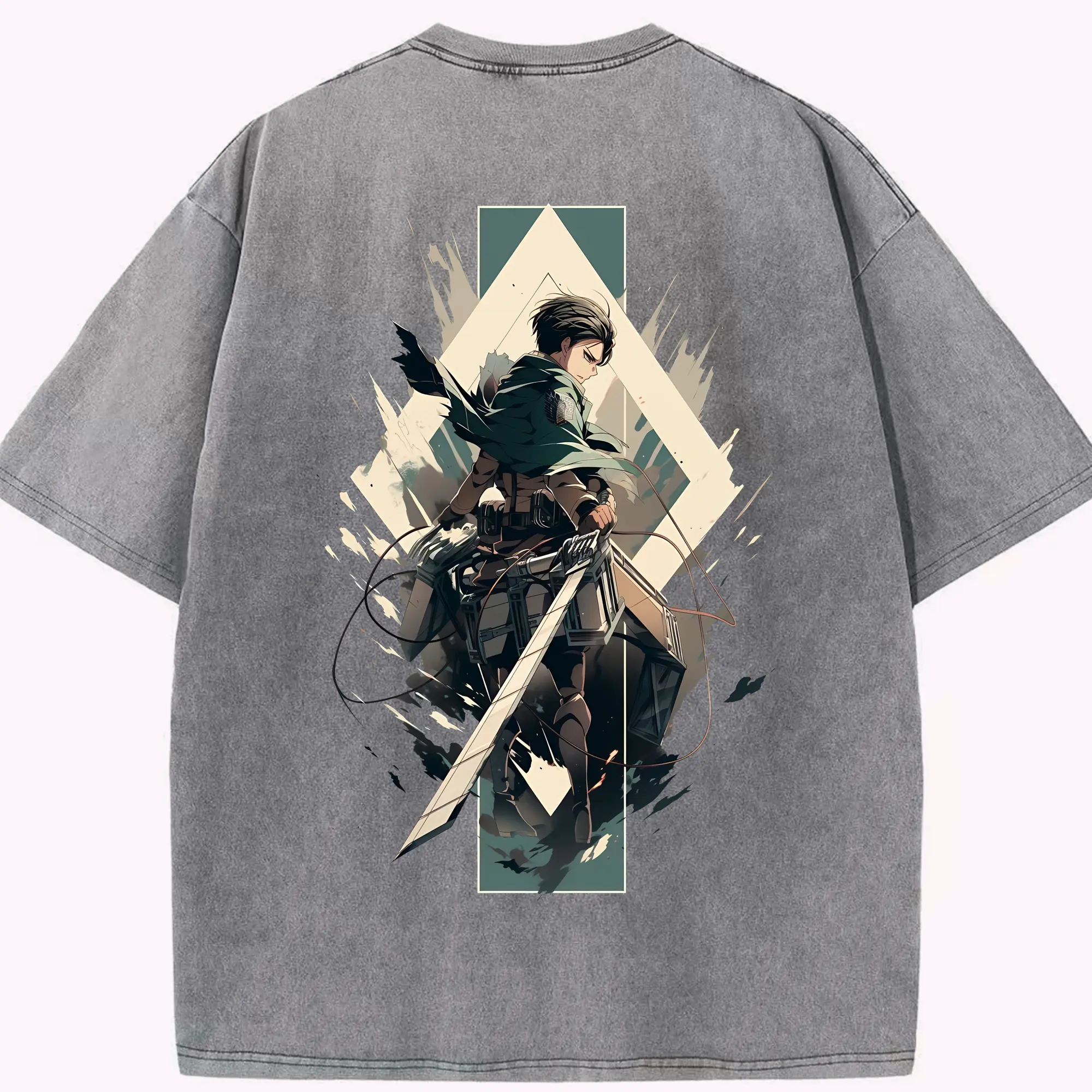 進撃の巨人 グッズ リヴァイ・アッカーマン - 綿100% ヴィンテージ風 半袖Tシャツ ・ フロントプリント ・ 柔らか肌触り ・ 通気性 快適 ・ スポーツ カジュアル 外出用
