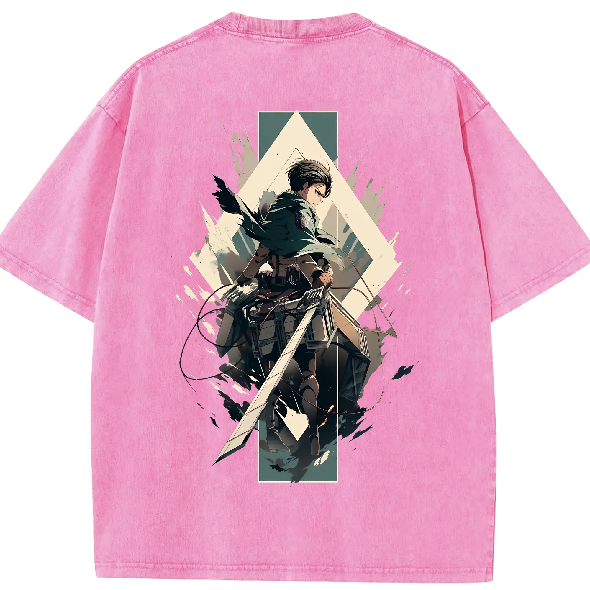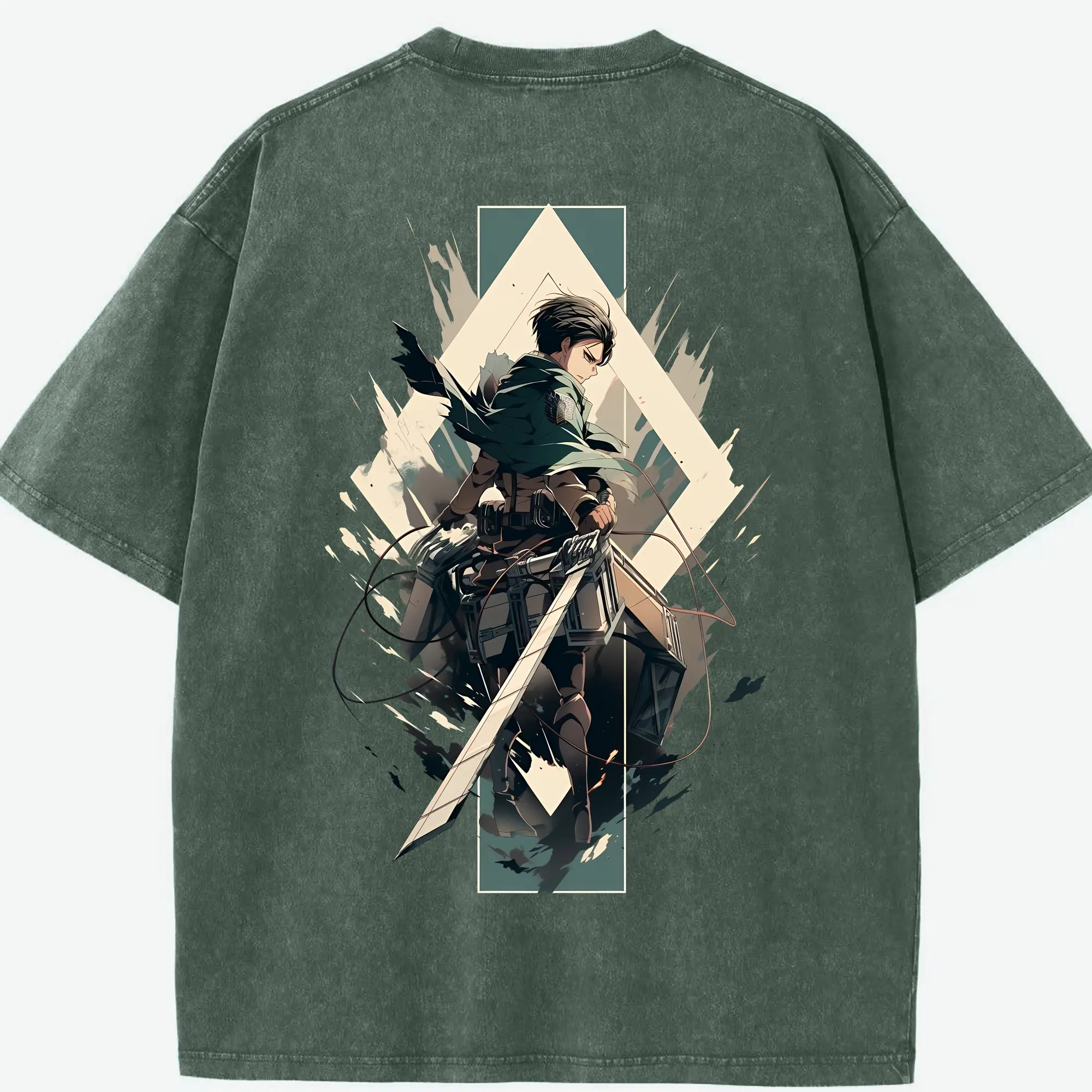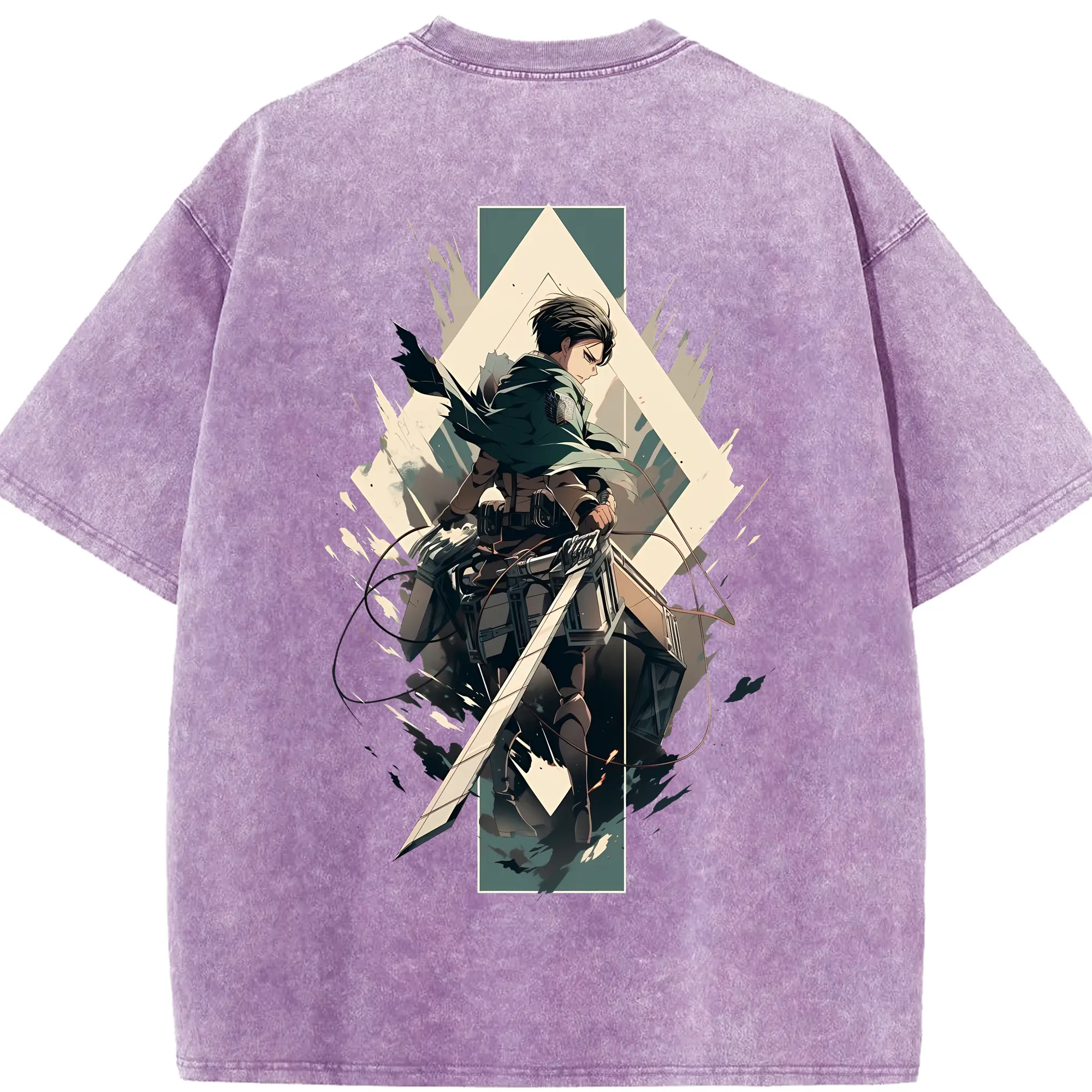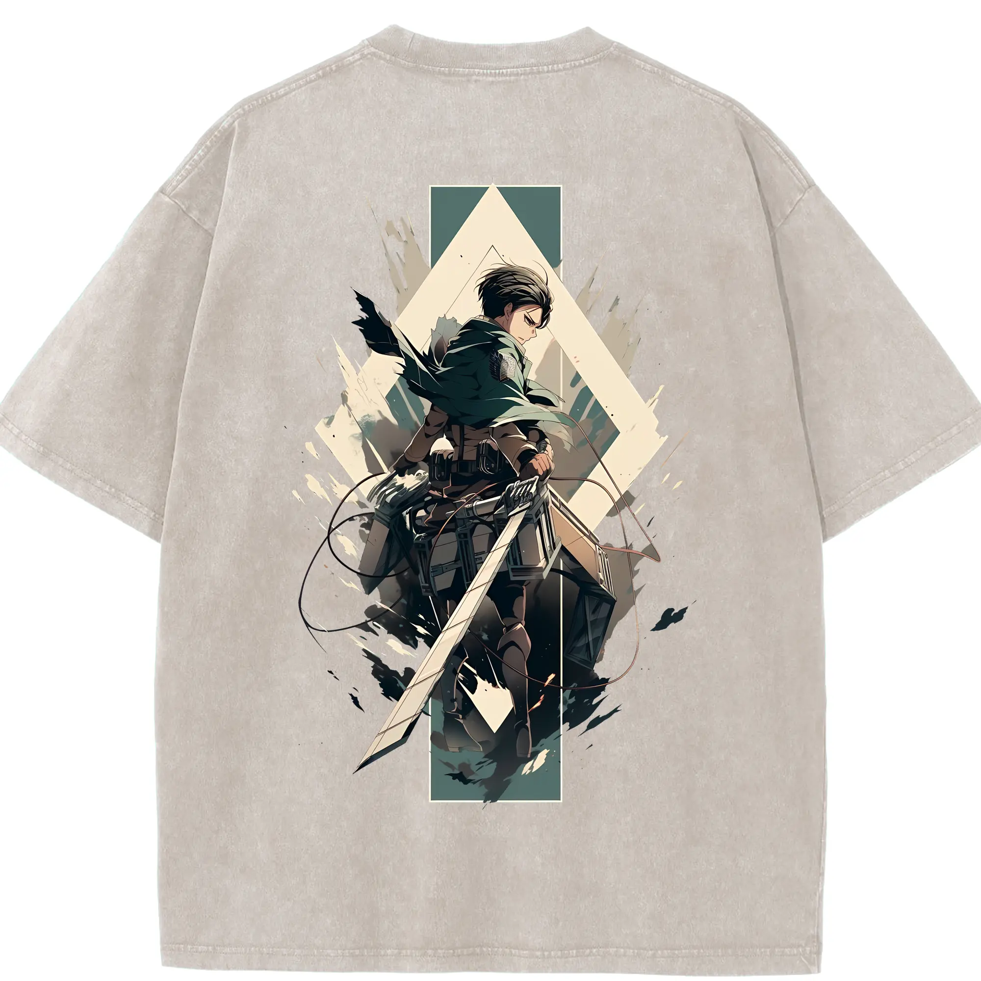 進撃の巨人 グッズ リヴァイ・アッカーマン - 綿100% ヴィンテージ風 半袖Tシャツ ・ フロントプリント ・ 柔らか肌触り ・ 通気性 快適 ・ スポーツ カジュアル 外出用