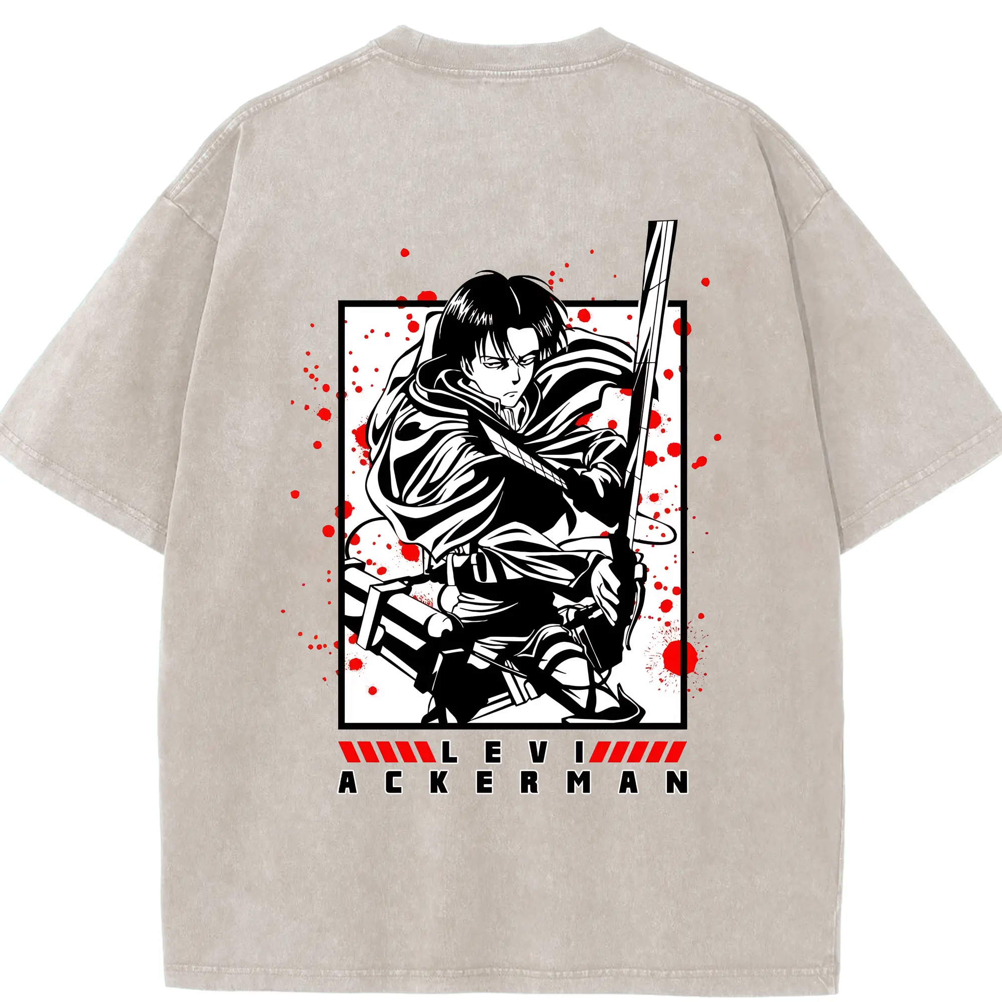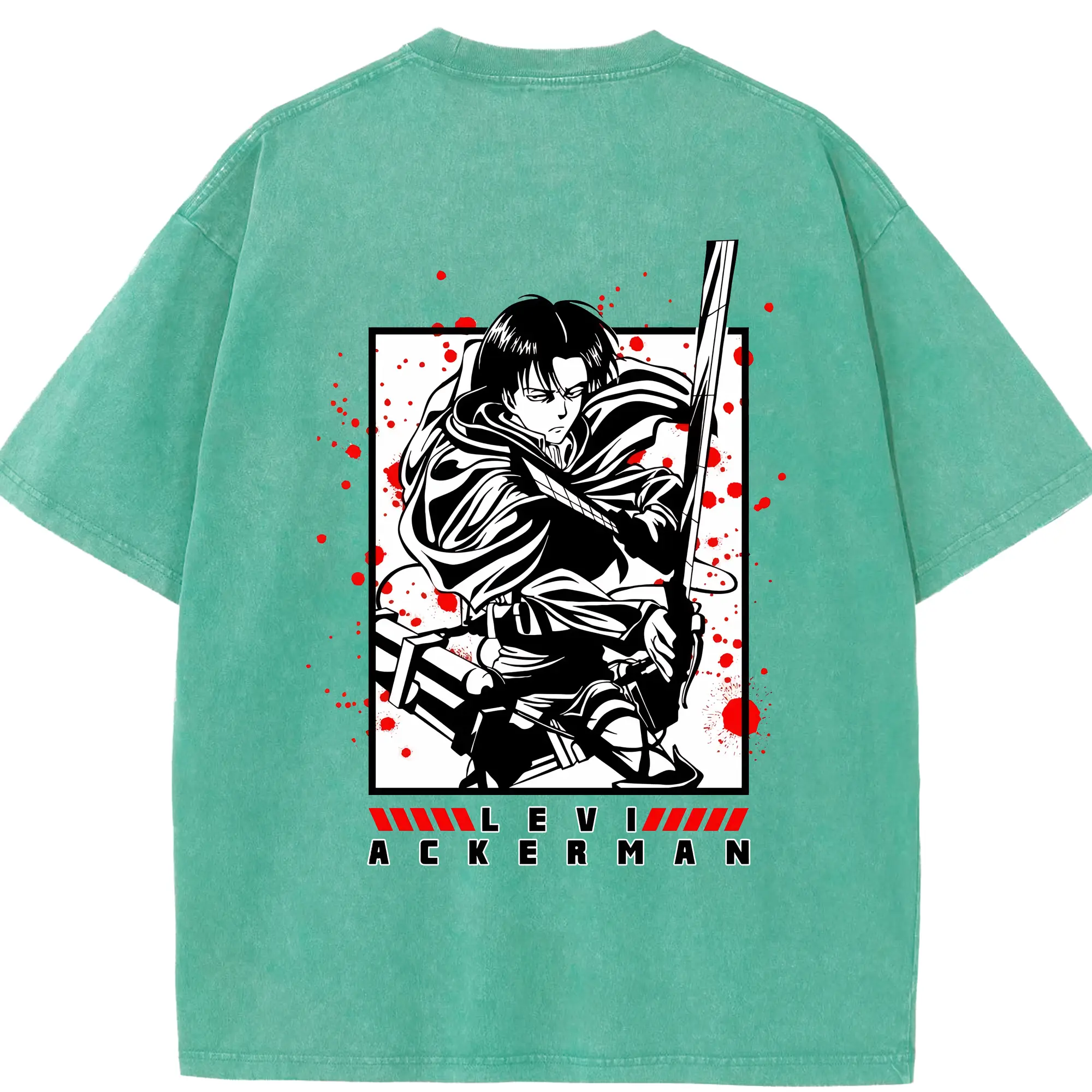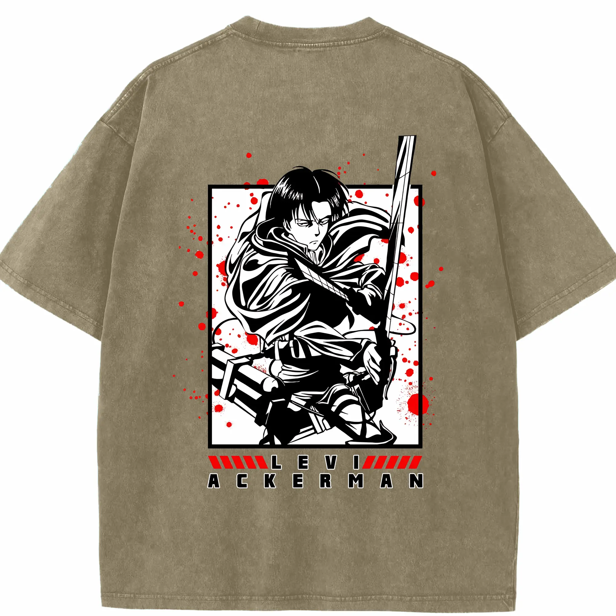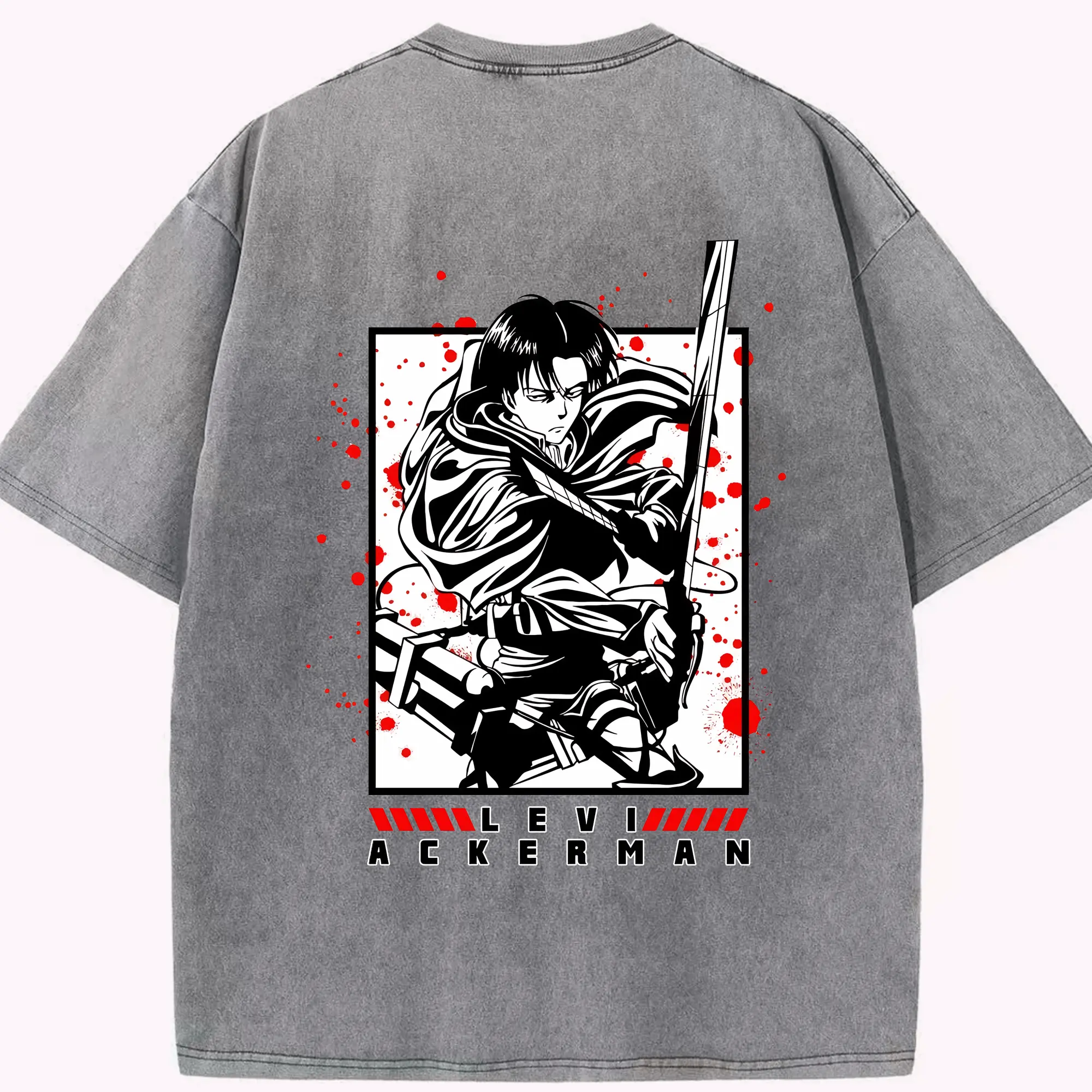 進撃の巨人 グッズ リヴァイ・アッカーマン - 綿100% ヴィンテージ風 半袖Tシャツ ・ フロントプリント ・ 柔らか肌触り ・ 通気性 快適 ・ スポーツ カジュアル 外出用