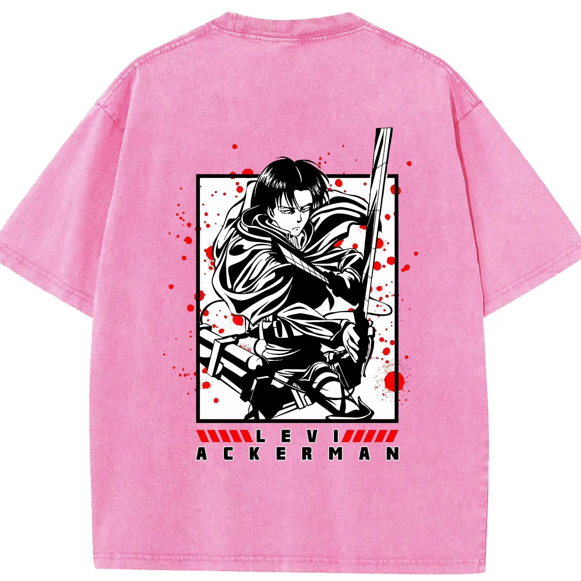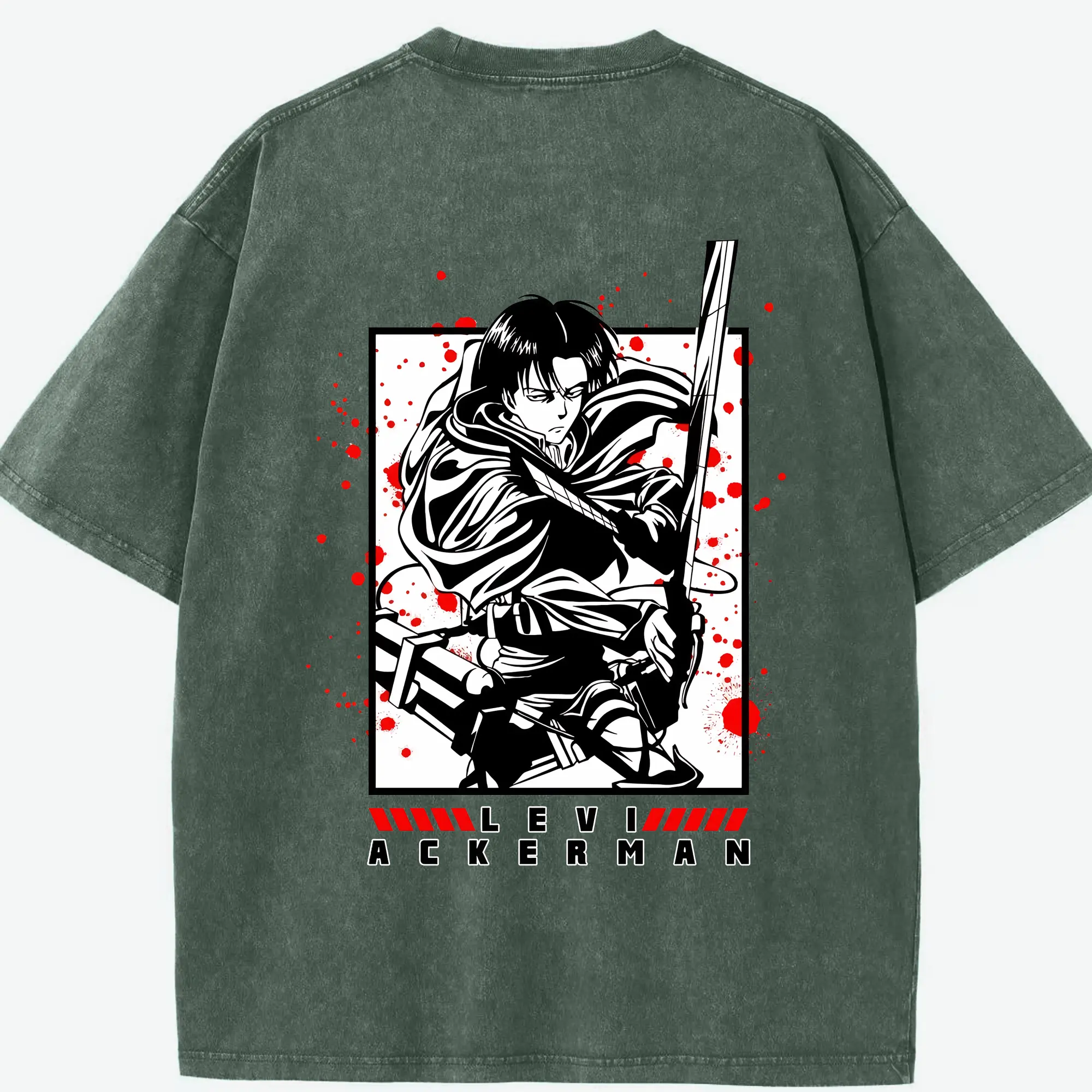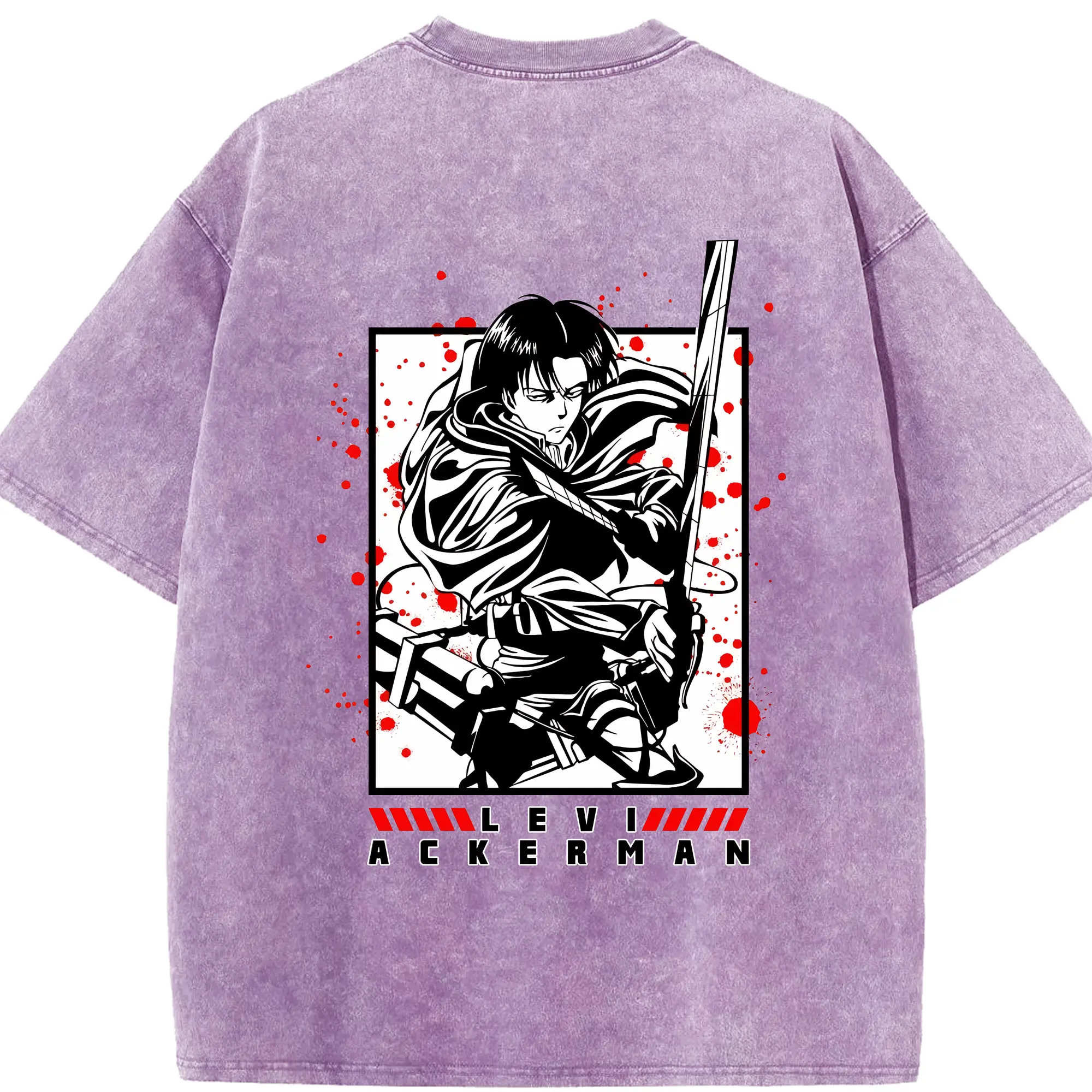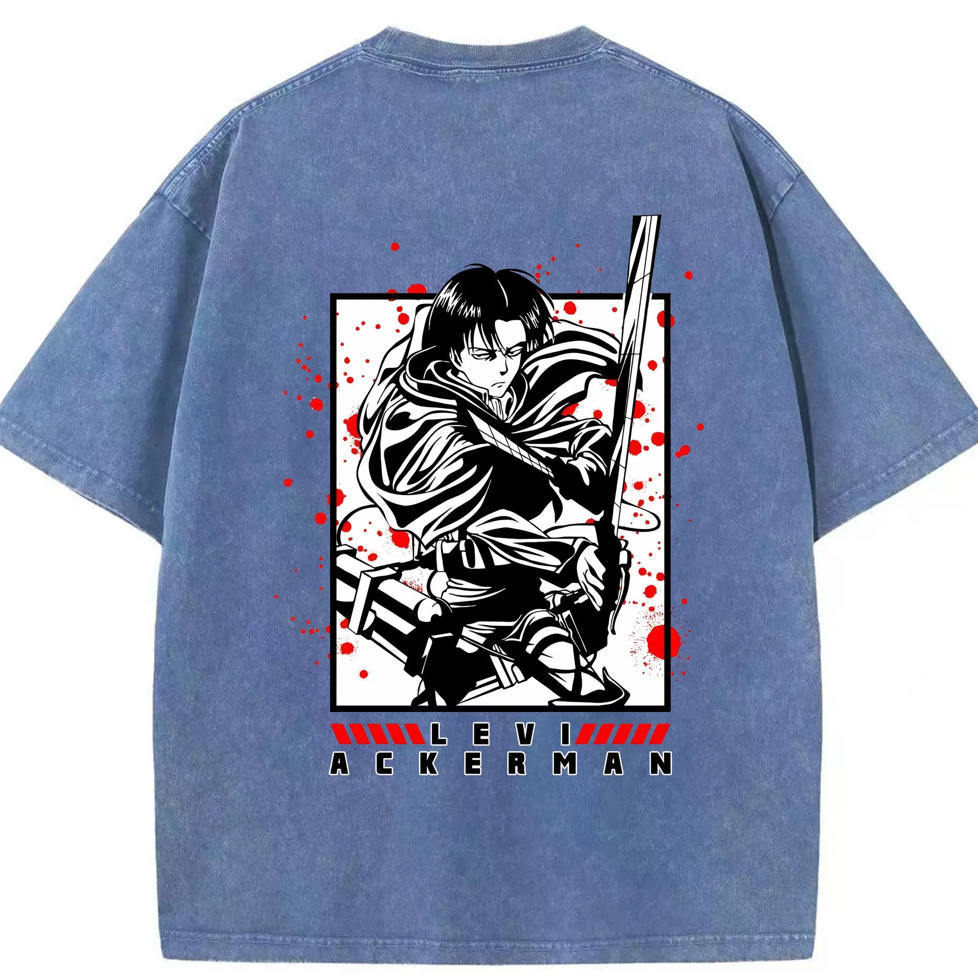 進撃の巨人 グッズ リヴァイ・アッカーマン - 綿100% ヴィンテージ風 半袖Tシャツ ・ フロントプリント ・ 柔らか肌触り ・ 通気性 快適 ・ スポーツ カジュアル 外出用